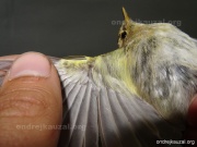 A rather interesting individual found by a birder in Czechia which was showing some marks typical for Iberian Chiffchaff (Phylloscopus ibericus), especially the song which contained syllables of an Iberian Chiffchaff as well as those of a Common Chiffchaff (P. collybita). It was later excelently documented by Jan Studecký (see his outstanding video recording on youtube ). We were then asked to trap it and perform genetical analysis. We analysed part of its mitochondrial DNA and were surprised to find out it's a Common Chiffchaff. The bird seemed clearly different in hand. We searched literature to find out if it is possible to identify a hybrid of Iberian Chiffchaff and Common Chiffchaff (as hybrids are reasonably common where these two overlap) but, unfortunatelly, with current knowledge, we were unable to identify it without any doubt. We could try to design our own genetic markers but that is currently way too expensive for a curious birders. Maybe we will be able to go back to this bird in the future. The bird was apparently paired with a female Common Chiffchaff and there were four nestlings in its presumed nest.