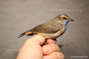 Quite exceptional individual as it does not have any throat spot. It resembles some of the spotless supbspecies, such as azuricollis or magna but even cyanecula occasionally lacks any throat spot.