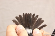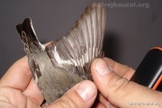 A bird infected with ticks. In flycatchers this is quite uncommon phenomenon. Tick infestation is more commonly found in birds foraging on the ground or at lower levels in vegetation.