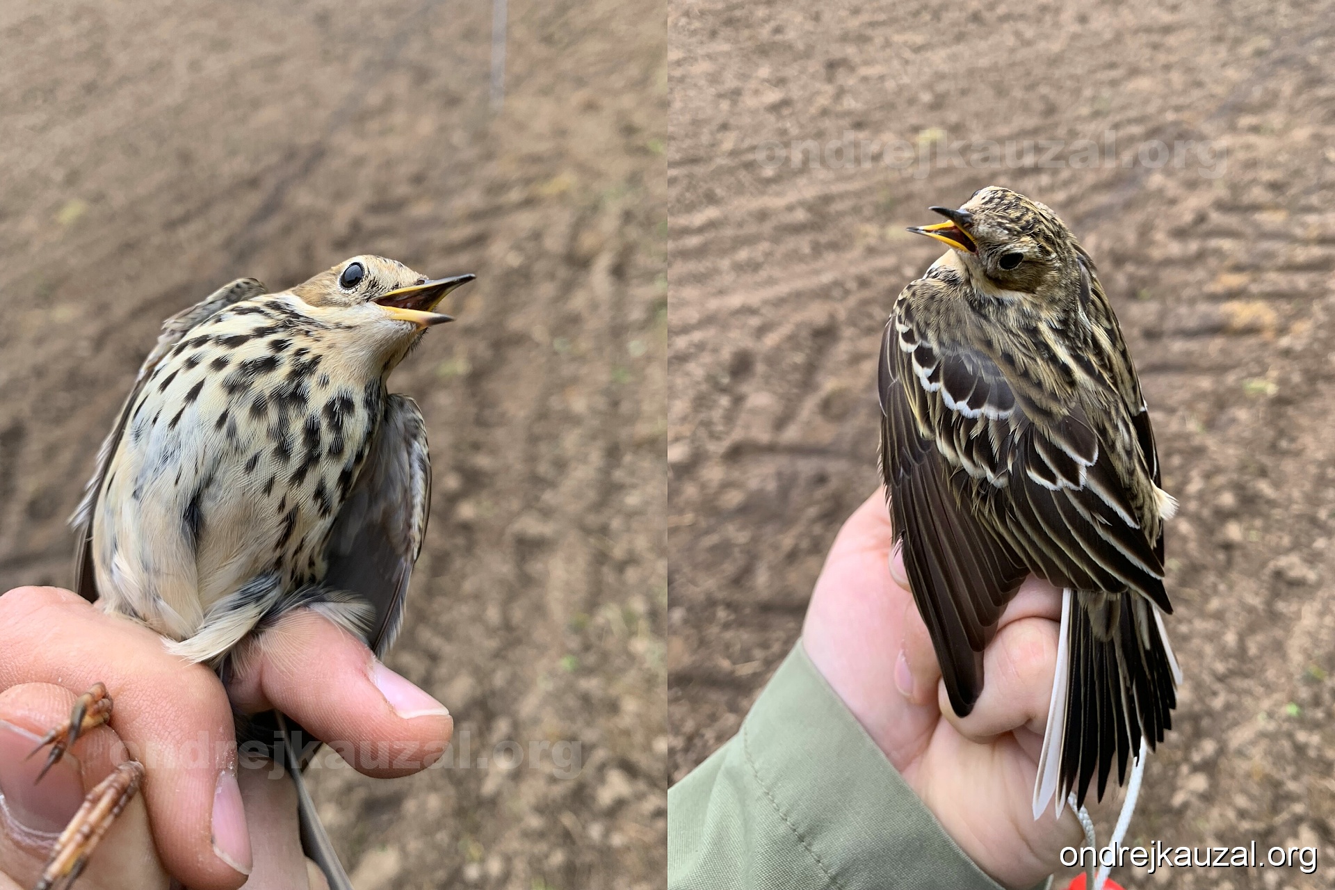 Unfortunatelly, colours on this particular individual are a bit off on the photos. I apologize, I was too tired that day to set up my set-up properly, therefore, I also exceptionally included two photos I took right after I took the bird out of the mist net with my iPhone. Originally, I identified this bird as an A. pratensis but since the very begining I was very aware this bird looked kind of different. Due to the fact that this bird was caught during an Eurobirdwatch event, I did not had much time to inspect it as thoroughly as I would like. But I was suspecting this bird could be also an A. cervinus. I then inspected the photos carefully again and consulted them with my colleagues and the conclusion is A. cervinus. Unfortunatelly, I did not photograph some of the ID criteria very well during my "standardized photo shoot". So I am including the other two photos as they nicely show the slightly red throat and the two dorsal stripes as well as very light edges to coverts and tertials.