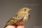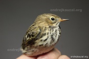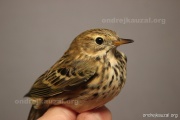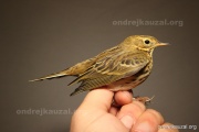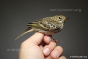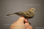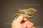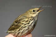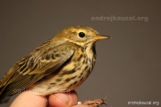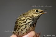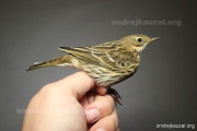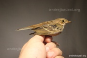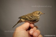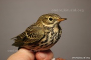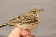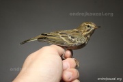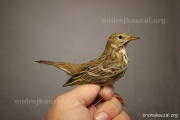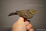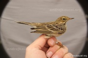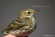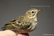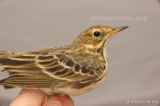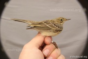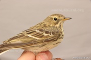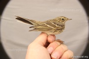 A mysterious pipit which was caught on migration and puzzled us a lot. Very very green, streaked from above but not quite fitting any of the species we could think of. It is possible that it is just a very big Meadow Pipit (A. pratensis) with a weird wing formula. A DNA sample was taken and it was confirmed to be a A. pratensis.