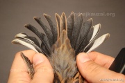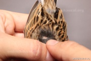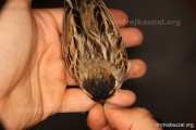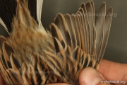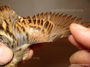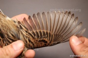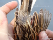 N.B.: As with other buntings, ageing can be difficult. Shape of tail feathers is not especially reliable as the moult limit in tertials or between tertials and secondaries. Shape and structure of primarier and especially primary coverts is helpful, but requires lot of skill. Sexing in winter plumage can be challenging at times with few males having quite female-like plumage. But in hand, crown and neck feathers can be easily inspected as well as the colour of rump.