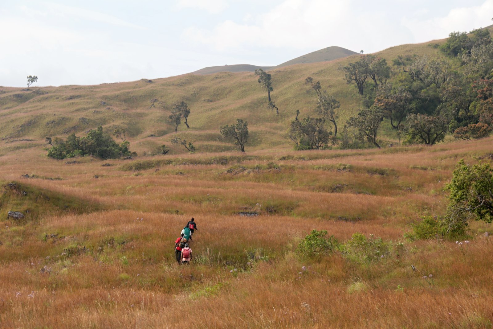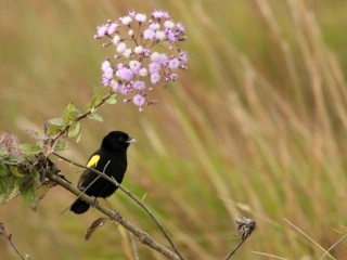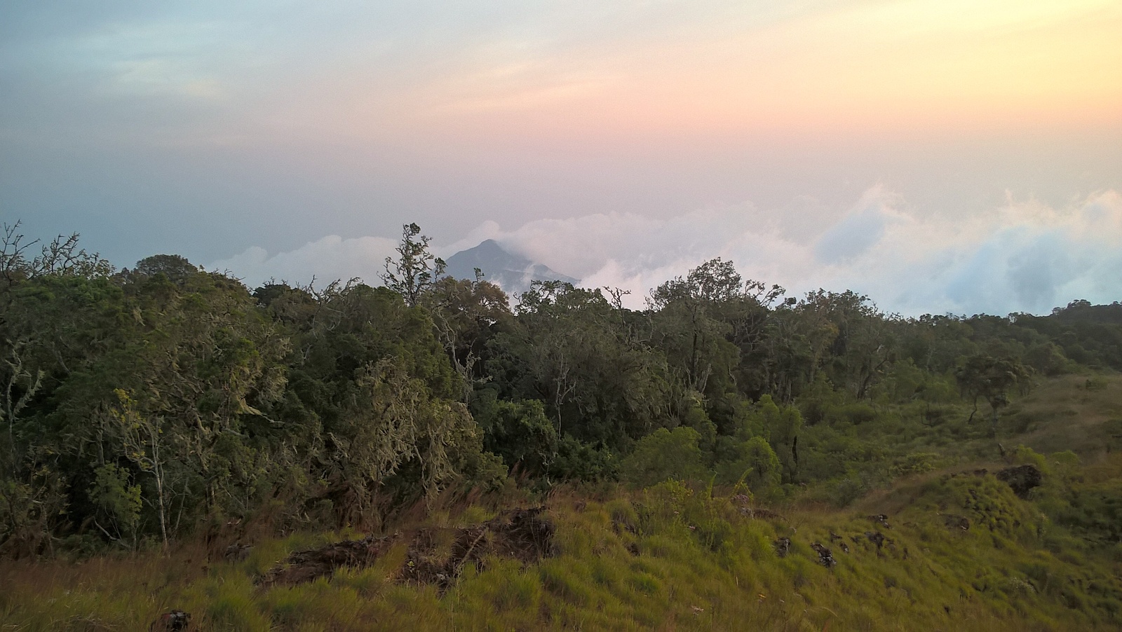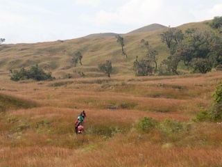 Cesta do kopce je pořád prudší, až už je absurdně prudká, že už ani prudší být nemůže. Ve chvíli, kdy toho máme tak akorát, kdy už neujdeme ani jeden výškový metr, les náhle končí. Koukáme ven z lesa na… další kopec. Ale za ním už vidíme jen nebe – že by zde stoupání končilo? Z posledních sil se drápeme nahoru. Rozbahněné skály teď vystřídaly kameny zarostlé trsy tvrdé trávy, cesta se mezi nimi ztrácí a jde se velmi špatně, ale dychtíme po tom už konečně stanout nahoře. Když se tam konečně dostaneme, je jasné, že cesta zdaleka nekončí. Pohled do krajiny je ale dech beroucí. Hledíme do zdánlivě nekonečné travnaté savany, která na jedné straně stoupá kamsi do kopců a mizí v oblacích a z druhé strany je ohraničena horským mlžným lesem, ze kterého jsme právě vylezli a který se také ztrácí v oblacích :) Jako první nás zde uvítá svým podivným mechanicky skřípavým zpěvem zdejší ptačí „plevel“ – vida africká (Euplectes capensis). Je to vlastně velmi atraktivně zbarvený snovač, jehož krásu ovšem mírně snižuje jeho naprostá všudypřítomnost. Na rozdíl od nížinných tropických ptáků, ti horští mají zřejmě mnohem vyšší populační hustoty, podobné „našim“ ptákům. Dole v pralese je vlastně dost prázdno, ptáci mají teritoria velká a člověk si své okolí velmi rychle prochytá. Kdežto zásoby vid afrických v tomto podivném horském prostředí jsou zdánlivě nevyčerpatelné.