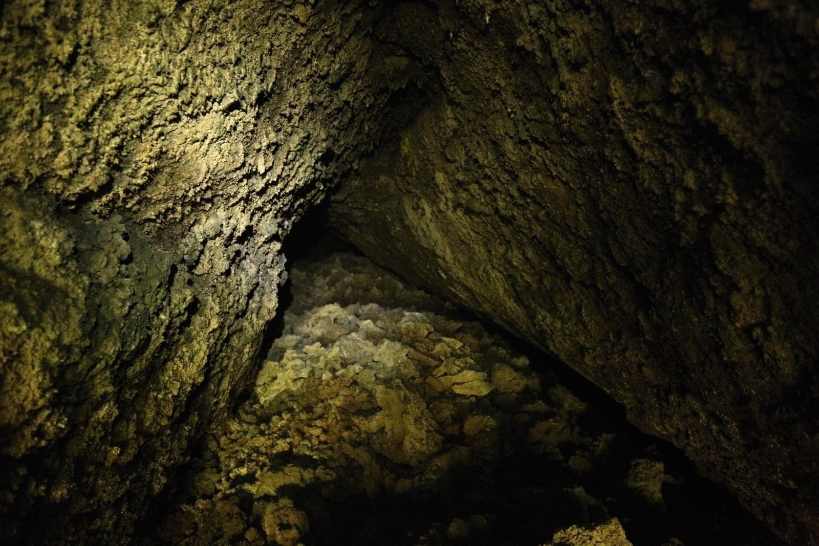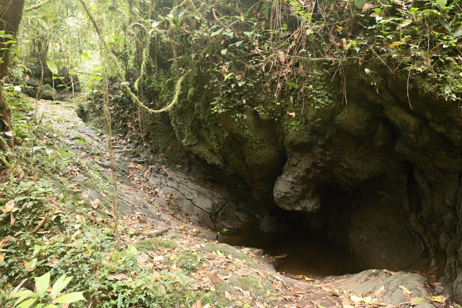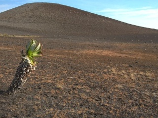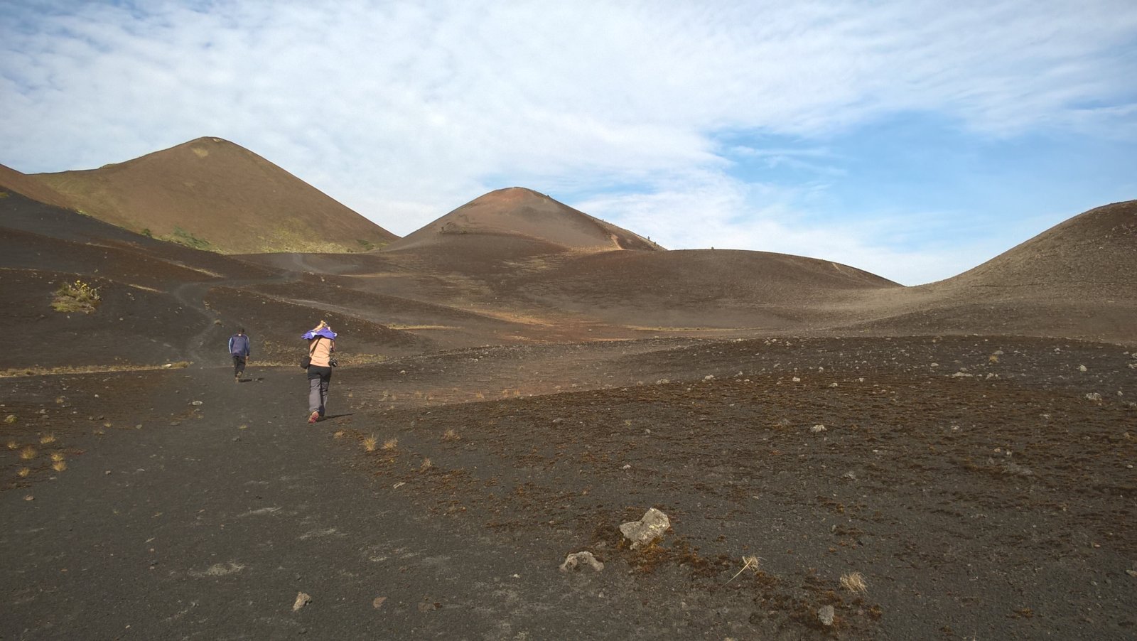 Jsme asi ve dvou kilometrech nad mořem a teplota klesá k příjemným asi 18 stupňům. Vlhkost je pořád velmi vysoká, ale na rozdíl od pralesa zde na savaně dost fouká, takže je nám velmi rychle zima – propocené oblečení rychle odvádí tělesné teplo pryč. Další asi 3 kilometry jdeme převážně touto horskou savanou, která je zcela nepodobná ničemu, co jsem do té doby viděl. Zleva pořád sledujeme hranici lesa, která je ostrá, jako by ji někdo nakreslil tužkou. Chvíli jsme blíž, chvíli dál, ale do pralesa už v podstatě nezavítáme. Sopečná krajina je plná neskutečných tvarů. Překonáváme neustále jeden sopečný „fald“ za druhým, a občas procházíme kolem zpola zasypaných lávových tunelů, kde hnízdí místní horské vlaštovky kamerunské (Psalidoprocne fuliginosa; endemit Kamerunské vysočiny a Bioka). Překonáváme i jeden nebo dva lávové proudy vzniklé během relativně nedávných erupcí. Mimochodem, tato část Mt. Cameroonu je díky jednomu opravdu velkému lávovému proudu ušetřena vlivu slonů a prales je zde hustý a s bohatým podrostem. Sloni tyto hromady ostrého čediče nedokážou překonat a tak si můžeme užívat poměrně bezstarostného bloumání po okolí.