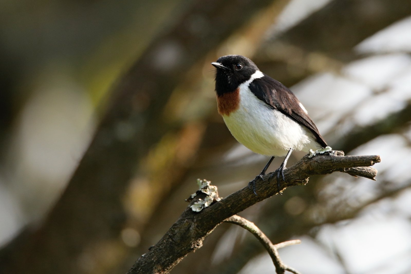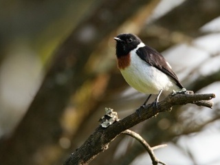 Po několika hodinách pochodu konečně dorážíme do cíle – na jedno z míst, kde se smí tábořit. Dříve to byl prostě jen pravidelně vysekávaný plácek kousek od jednoho z mála místních pramenů. V posledních letech zde správa Kamerunského parku vytvořila megalomanský projekt asi deseti horských chat soustředěných kolem jedné hlavní s velkou jídelnou, kuchyní, tekoucí vodou a záchody a se solární elektrárnou. Nebývalý luxus, který je stále ještě v dobrém stavu a funkční. Nicméně kvůli bezpečnostní situaci v zemi je téměř nevyužívaný. I kdyby sem ale turisti jezdili, je to naprostá fantasmagorie. Nestěžujeme si, ale užíváme nebývalého komfortu při práci. Spát budeme pod střechou opravdu nádherně vyvedených dřevěných chatek a celou dobu budeme pracovat na verandě hlavní chaty. Dost bylo hledání rovných míst pro centrifugu (těch prasklých kapilár!) a vůbec pro celou naši rozkrámovanou laborku, stavění tarpaulin, aby na nás nepršelo a sezení na nepohodlných terénních židličkách. Zde jsme roztahaní jako králové a sedíme u dlouhého stolu na dřevěných lavicích, pod střechou a s výhledem na savanu. Chata je umístěna hned na okraji horského mlžného lesa, ze kterého se ozývají mnohé druhy ptáků a je tu nádherně. Některé zdejší druhy známe z nížiny, jiné ale žijí jen zde, v horském lese nebo na savaně. Mezi jeden takový čistě horský druh patří i místní bramborníček africký (Saxicola torquatus)[5], jeden z mých nejoblíbenějších druhů Kamerunské avifauny. Kolem chaty na různých vyvýšených místech posedává hned několik těchto charismatických ptáků.
