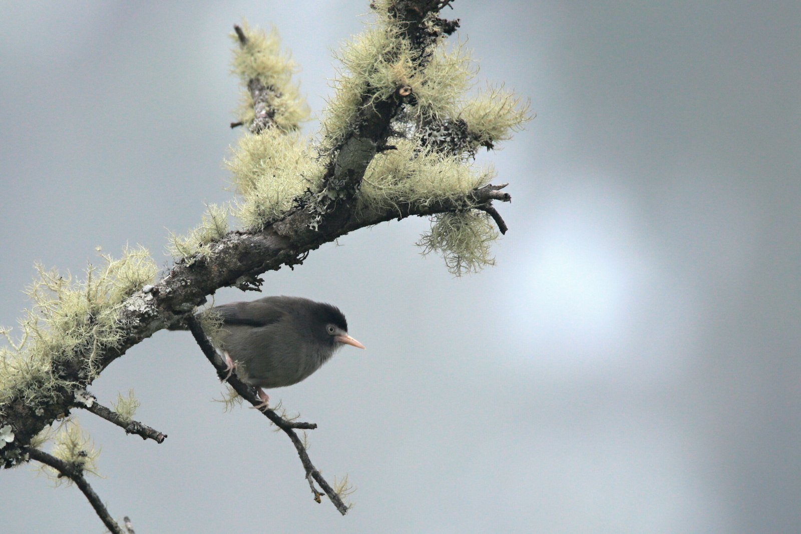 První večer po příchodu už ale jen odpočíváme po náročném výšlapu, kontrolujeme vybavení a pomalu se připravujeme na další den. Rychle se ochlazuje a po večeři jdeme v podstatě hned spát. Ráno začíná úderem šesté ranním „chórem“ místních ptáků, který je zde stejně bohatý jako u nás. Stejně jako u nás, i zde začínají některé druhy zpívat dříve než jiné a tato posloupnost je v podstatě neměnná. Někde nad naší chatkou se prohání párek ťuhýkovce žlutoprsého (Laniarius atroflavus), který se ozývá velmi podobně roboticky jako jeho bratranec z nižších poloh. Jsou velmi hlasití, výrazní a tak je to jeden z prvních hlasů, které ve zdejší kakofonii začne člověk rozpoznávat. Jako takový flétnový šicí stroj zpívá místní cvrčilka – cetie podrostní (Bradypterus lopezi). Z rozkvetlých keřů švitoří strdimil severní (Cinnyris reichenowi) a z korun poměrně melodicky prozpěvuje nebo spíše poštěkává sympatický bulbul horský (Arizelocichla tephrolaema; opět endemit kamerunské vysočiny). Z pralesa se ozývají ale i překvapivě docela povědomé zpěvy. To když spustí místní obdoba kosa, tedy drozd africký (Turdus pelios). Jokoby černohlávkovi z ucha vypadl flétnový nápěv místní pěnice rodu Sylvia – timálii mniší (Sylvia abyssinica). Z pralesa se občas ozve i další známý zpěv, na chlup stejný pěnici slavíkové. V tomto případě mě ale sluch nešálí, je to opravdu pěnice slavíková (Sylvia borin), která zde, na hranici lesa, nepočetně zimuje. Zimuje zde i jiný starý známý. Na rozdíl od pěnice slavíkové je tu tento druh naprosto běžný, ba co více, je to jeden z nejběžnějších ptáků okraje lesa vůbec – budníček větší (Phylloscopus trochilus). Některá rána jsou úplně budníčková a když člověk na terase chatky zavře oči, rázem se přenese do českého lesa někdy v květnu. Listy ševelí ve větru, teplota je po ránu příjemných 10 stupňů nad nulou (jsme už skoro ve 2.5 kilometrech), timálie mniší supluje černohlávka a všude, ale úplně všude se ozývá tak dobře známý zpěv budníčků větších. Rána jsou zde stejně krásná, jako u nás, inu poslechnětě si sami (doporučuji sluchátka):