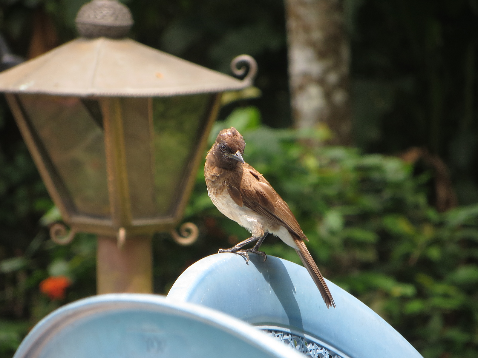 Ale i z ptačího hlediska je období dešťů jiné. V nížinném pralese se chytá mnohem méně ptáků[7], celá řada z nich hnízdí a tak se asi méně pohybuje podrostem. Aktivita se koncentruje do chvil, kdy prší trochu méně. Nahoře na savaně zase euplekťáci tvoří malá hejnka, samci jsou v krycím šatu a rozprostřou se do krajiny takže jich je vidět mnohem méně. Z ranního chóru zde pochopitelně zmizí budníčci větší, ale přidají se zase jiné druhy. A taky neustálé bubnování deště. Ale nejzajímavější věci se děly dole v Miramaru, v hotelu u moře. Společenstvo místních ptáků se vyměnilo, nebo spíše obohatilo. Městské prostředí zřejmě nabízí více potravních příležitostí v období dešťů a tak se sem stahují druhy, které jsme zde v období sucha vůbec neviděli. Jednak je zde vidět oba druhy malých pralesních ledňáčků, ke kterým se přidává třetí prcek – ledňáček modropláštíkový (Corythornis cristatus). Vzhledově podobný rodu Ispidina, ale navíc se zářivě modrou chocholkou na hlavě, kterou nám po odchytu rád předvádí. Mláďata mezi bungalovy vodí další druh lejskovce, neméně krásný lejskovec rezavošedý (Terpsiphone rufocinerea) a po zídkách poskakují jako šedé myšky naprosto netypičtí zástupci strdimilů, strdimilové šedohnědí (Anthreptes gabonicus). Vypadají opravdu jako myši – celí hnědošedí (nebo šedohnědí?), s bílou maskou kolem tmavě červeného oka. V první chvíli jsem vůbec nevěděl, na co se dívám. Žádná zelená, žádná metalická barva, nic. Nejvíc mě ale těší pozorování konipasa afrického (Motacilla aguimp). Vypadá vlastně dost podobně, jako náš konipas bílý a možná i proto působí zde v tropech jako pěst na oko. Chodí kolem bazénu a vybírá něco z louží zatímco do něj seshora buší další tropická přeháňka (přeháňka tady říkáme spíš tomu, když déšť zesílí – jak jsem říkal, nikdy zde nepřestává). Stejně jako v zimě, i teď v létě je možné pozorovat na pobřeží pisíky. Jedná se zřejmě o mladé jedince, kteří začnou hnízdit až ve druhém nebo třetím roce života. Opět věc u bahňáků nijak neobvyklá, přesto to prostě rád vidím na vlastní oči. Naproti tomu luňáci jsou v období dešťů všichni dávno pryč, zpátky na severu a jejich prvenství nejhojnějšího velkého ptáka na obloze přebírají místní vrány s nestvůrně elektronickým krákáním – vrány černobílé (Corvus albus). Zřejmě jim přítomnost luňáků silně nevyhovuje, protože jsou najednou úplně všude.