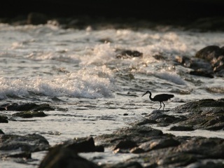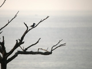 Po skodrcání z pralesa ukládáme harampádí, které zůstává v Kamerunu, do našeho skládku ve vesnici, kde bydlí naši přátelé. Sepisujeme seznam, co zde zůstává, co chybí a co za léky bude potřeba příště vyměnit. Pak, značně odlehčeni, se vracíme zpátky do Miramare v Limbé do našich bungalovů. Je to trochu jako přijet někam na důvěrně známé místo. Vše je povědomé, tady to známe, tady jsme „doma“. Vedro, dusno, bazén a bar s terasou nad mořem, kde každé ráno snídáme omeletu s chilli a čumíme do příboje. Nad vodou létají luňáci hnědí (Milvus migrans parasitus; někdy vyčleňován do samostatného druhu, jinak je stejný jako ten „náš“, akorát má zobák celý žlutý). Je to v tuto dobu naprosto nejběžnější pták, který je vidět na nebi, ať zvednete hlavu skoro kdekoliv. Jen pralesu se vyhýbá. Někdy se bavím tím, že je prohlížím a hledám v nich ty „naše“, s černým zobákem. Žádného ale nevidím. Na drátech u vody sedí krásně barevný ledňáček senegalský (Halcyon senegalensis, spíš ledňák, není to žádný drobek) a pravidelně vyřvává svoji monotónní písničku – jeden štěk a pak odsekávaný klesající trylek. Ještě větší ledňák hlídkuje pravidelně na skalách okolo zátoky. Je jím rybařík velký (Megaceryle maxima), naprostý obr, který si rozpětím křídel nezadá snad ani s kánětem. Za odlivu je možno na skalách pozorovat i mnohem méně exotické druhy – bahňáky! Když jsem přijel poprvé, první druh, co mne zde uvítal byl pisík obecný (Actitis hypoleucos). Kamerun je také vlastně místo, kde jsem si poprvé mohl připsat do birdlistu kolihu malou (Numenius phaeopus), která se procházela tam, kde o pár dní později pro změnu ta velká (N. arquata). Spousta z nás má zimující bahňáky spojené asi spíše s pobřežím severního moře nebo evropského Atlantiku, ale nemalá část z nich zimuje značně roztroušeně i v tropických oblastech. Takové docela osvěžující vidět to na vlastní oči.