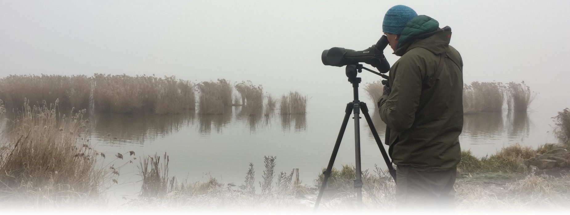 Vyrážíme k nádrži, pokochat se ranním rozletem hus. Ale dohlednost je stěží padesát metrů, spíše mnohem méně, husy před námi na vodě spíše jen tušíme. Jsou jen takový tmavší flek v mlze. Kvičení běločelek (9) na vodě je ale hezky slyšet, a tak si alespoň užíváme akustické vjemy. Na vodě před námi sedí docela blízko i nějaké kachny, lysky, ale i třeba čtyři morčáci malí (10). Na umělých ostrůvcích sedí osamocení racci chechtaví (11) a dokonce i jedna husa velká (12), ve vzduchu přelétají malá hejnka racků bouřních (13). To je vlastně můj lajfík, ale nemám s sebou placatku. Tak si ho alespoň lépe prohlížím, takový tlusťoučký chechták je to. Mezi racky je pro mě těch lajfrů schovaných ještě pár, jen se je naučit poznávat… Připisujeme ještě nějaké další druhy typické pro vodní plochy. Z rákosí se třeba ozve ještě strnad rákosní a zakvičí chřástal vodní a nad hlavami nám přeletí pár husic nilských (tady jsem trochu ztratil přehled, který druh byl kolikátý[1]). Husy se pak v jednu chvíli zvednou, nic ale nevidíme, slyšíme pouze výbuch stovek (možná tisíců?) křídel a pak už je hladina tichá. Mrznou nám všechny možné tělní extremity, není nic vidět, a tak se vydáváme někam dál na cestu vstříc dnešním birderským zážitkům s krásnými 24 druhy na kontě.