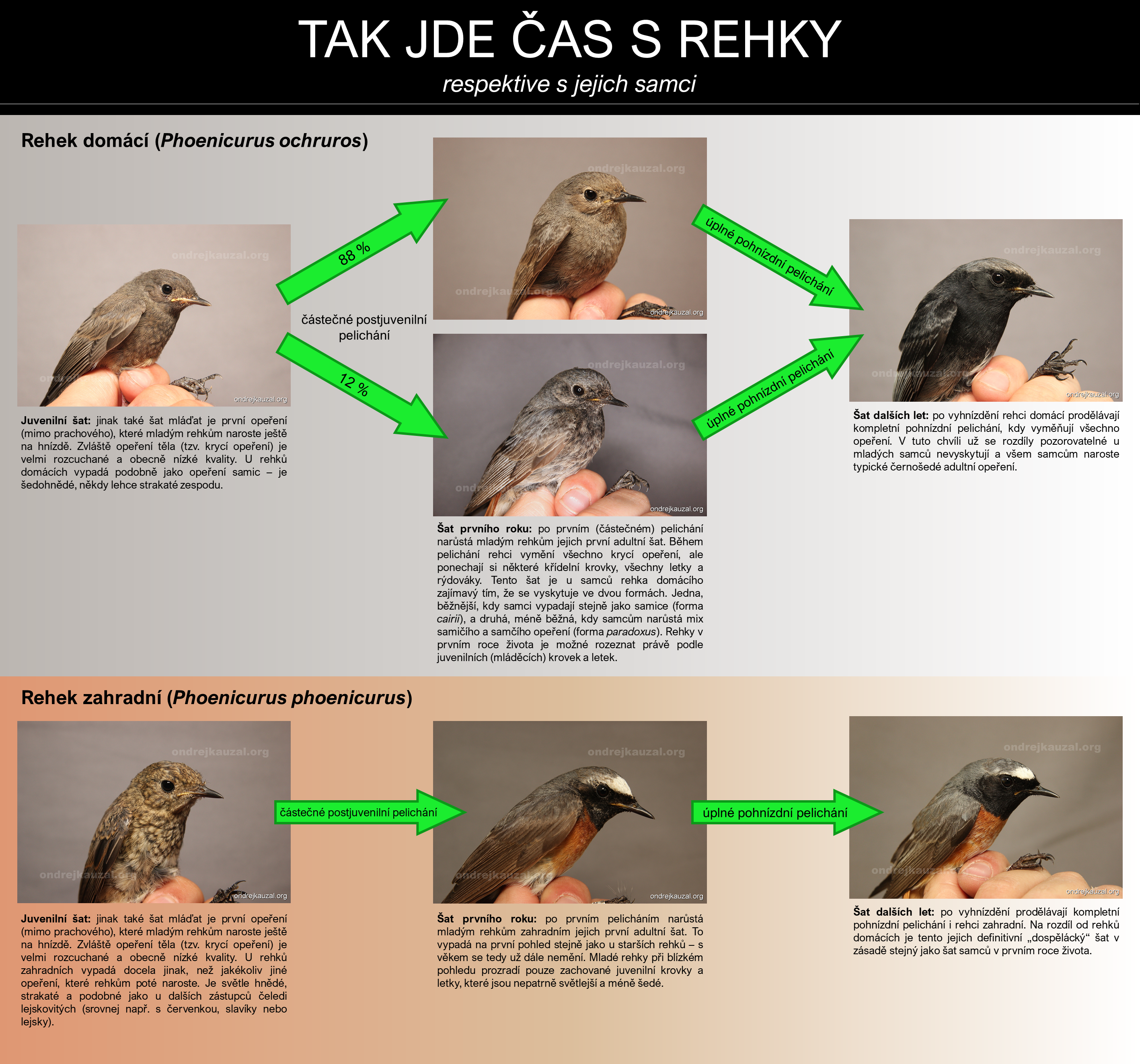 Několik případů proměn rehků zdokumentovaných Filipem Petříkem na avifu: