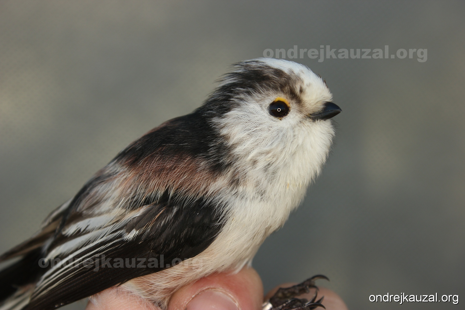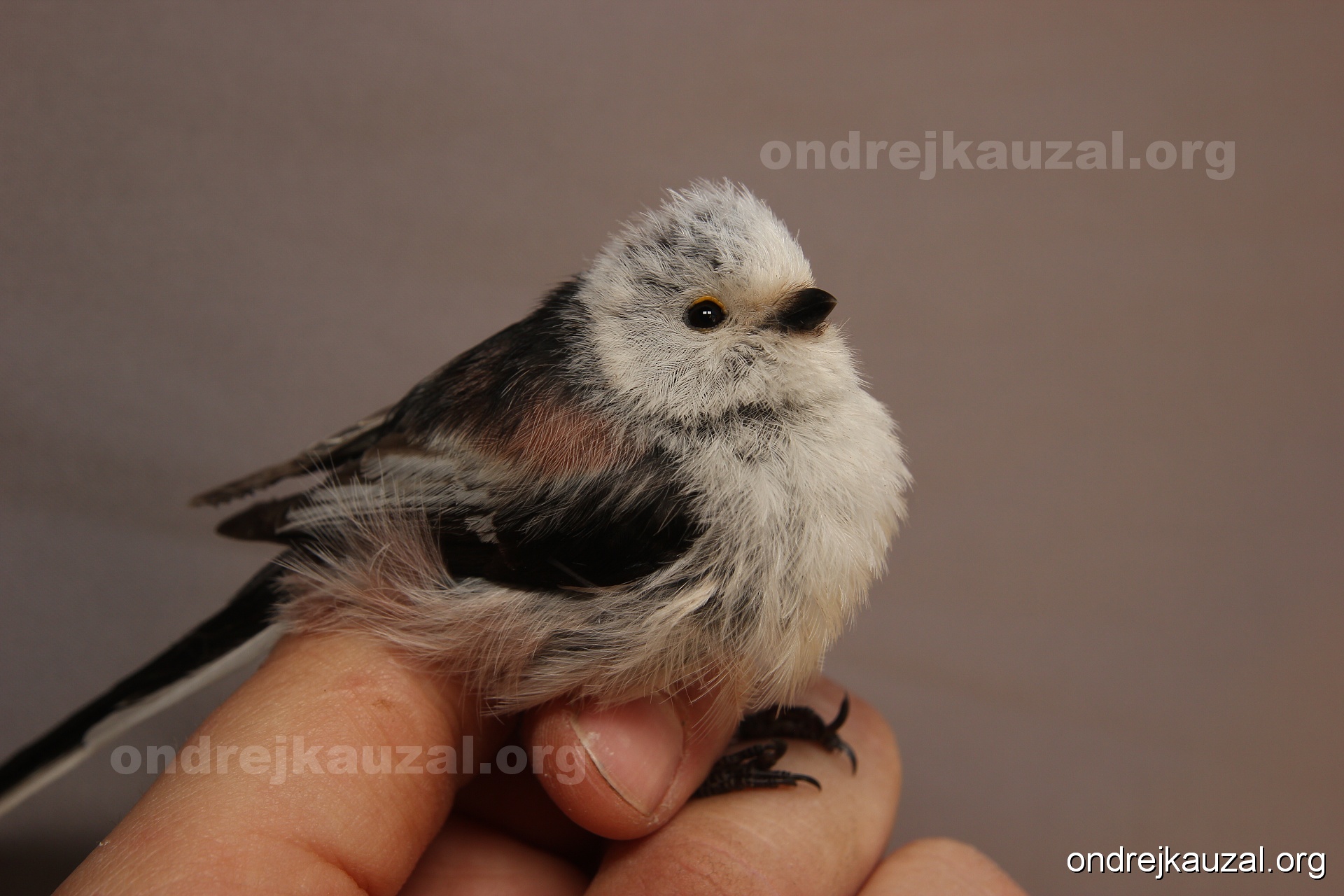Aegithalos caudatus europaeus a A. c. caudatus? Kdepak, oba patří k "našemu" poddruhu europaeus. U toho bělohlavého jsou krásně patrné prosvítající černé spodky jinak bílých per hlavy.