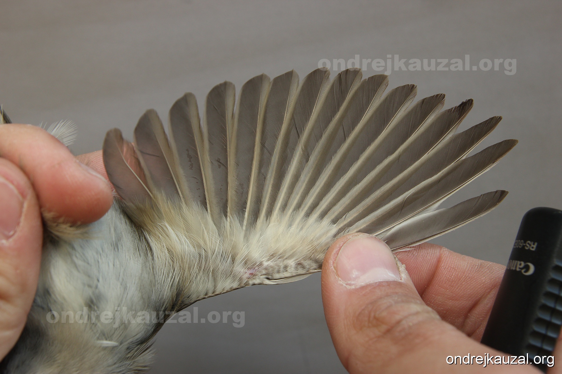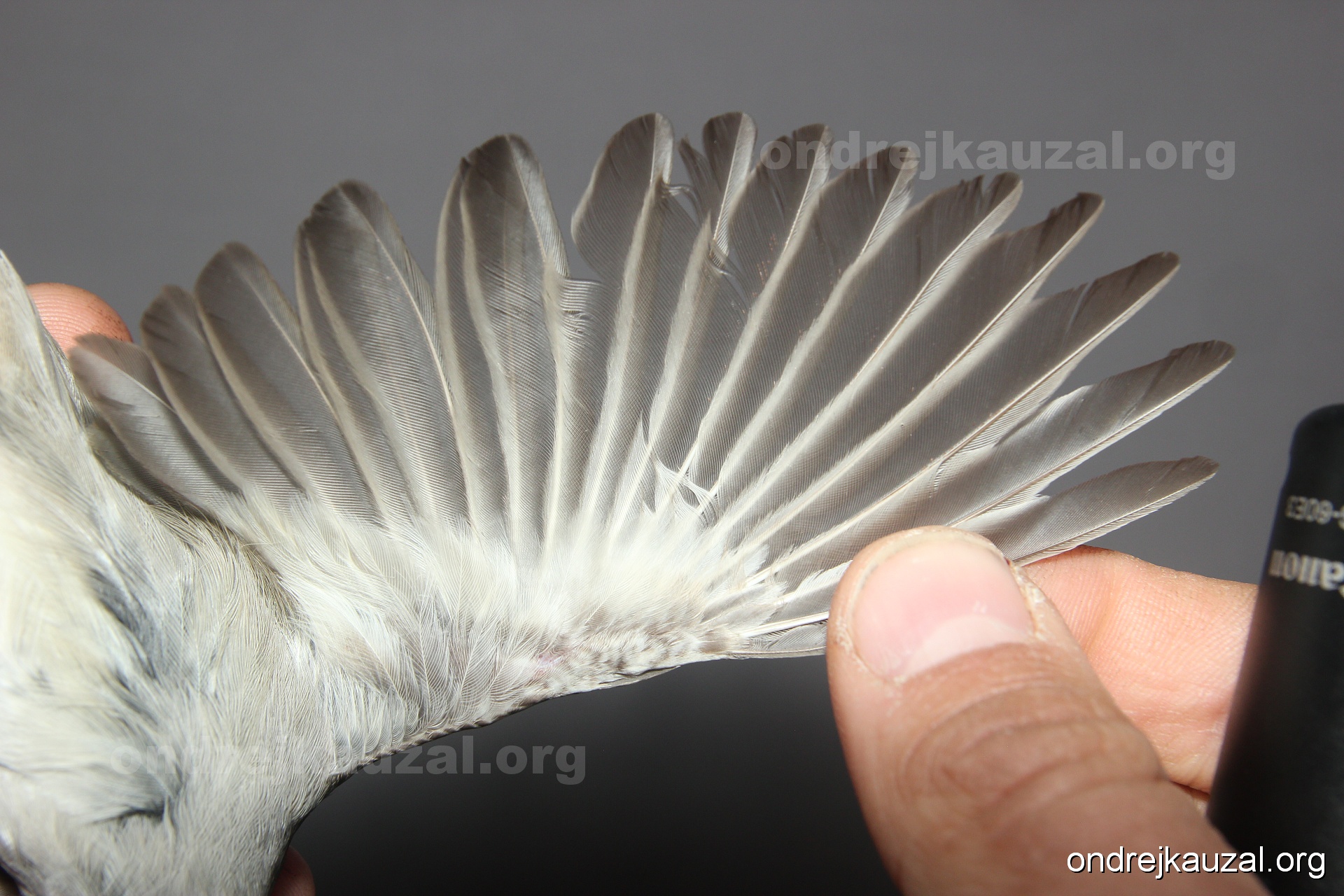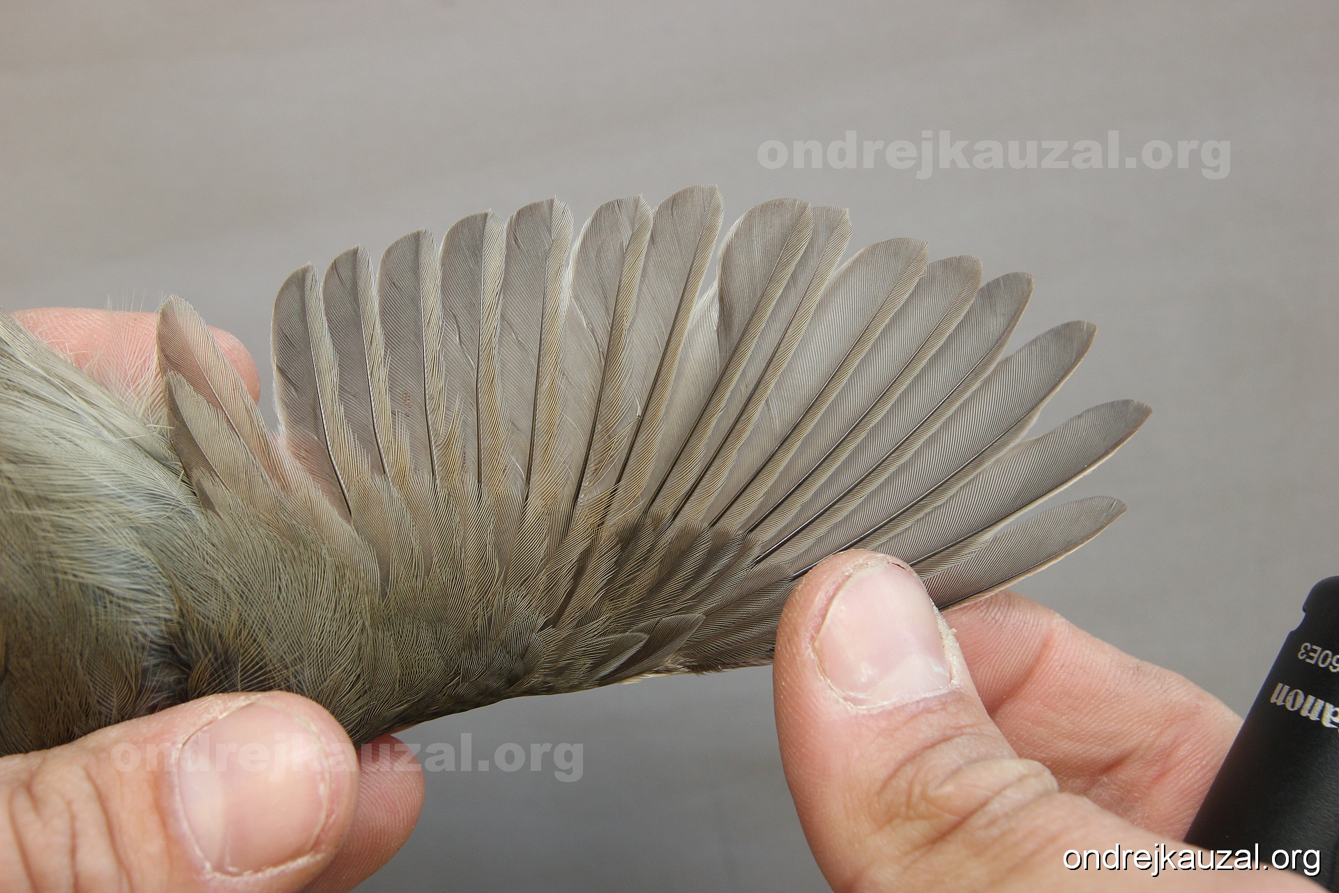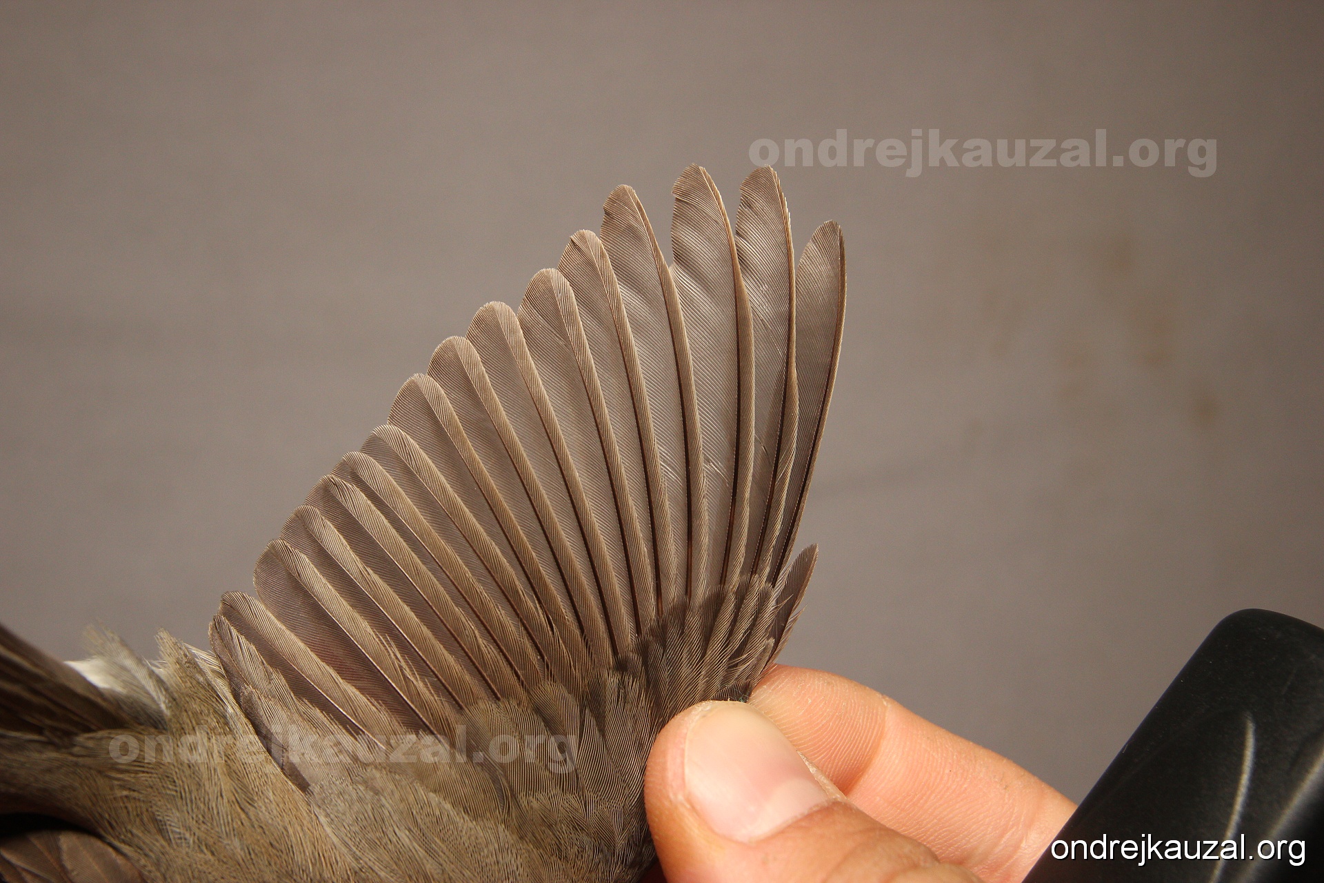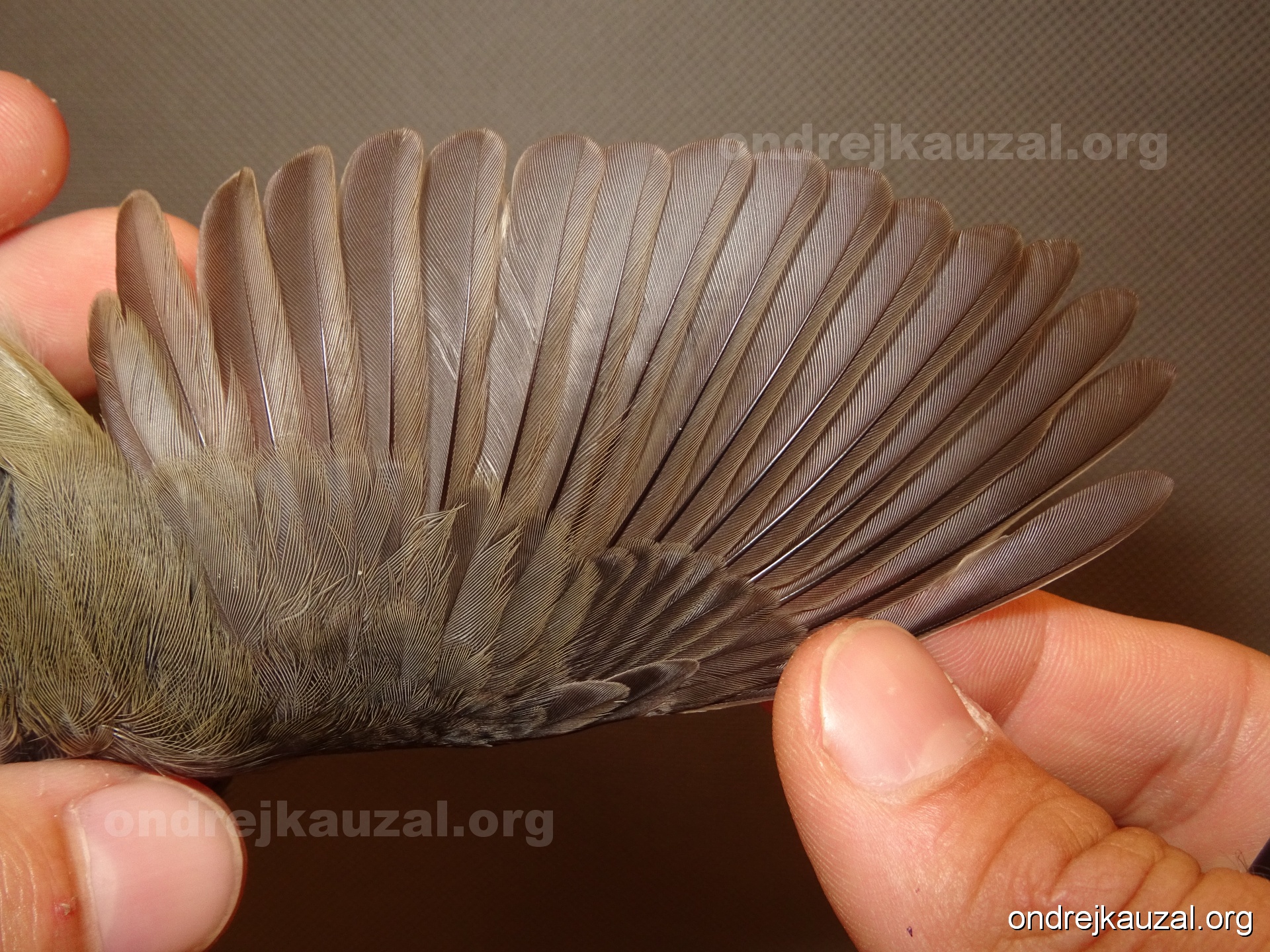 A bird showing nice fault bar across its remiges. While definitely not a good thing for the bird itself, such phenonema can aid in ageing. The uniform position of this bar from the wing indicates the wing feathers grew at the same time, i.e. on nest suggesting this bird is a young individual.