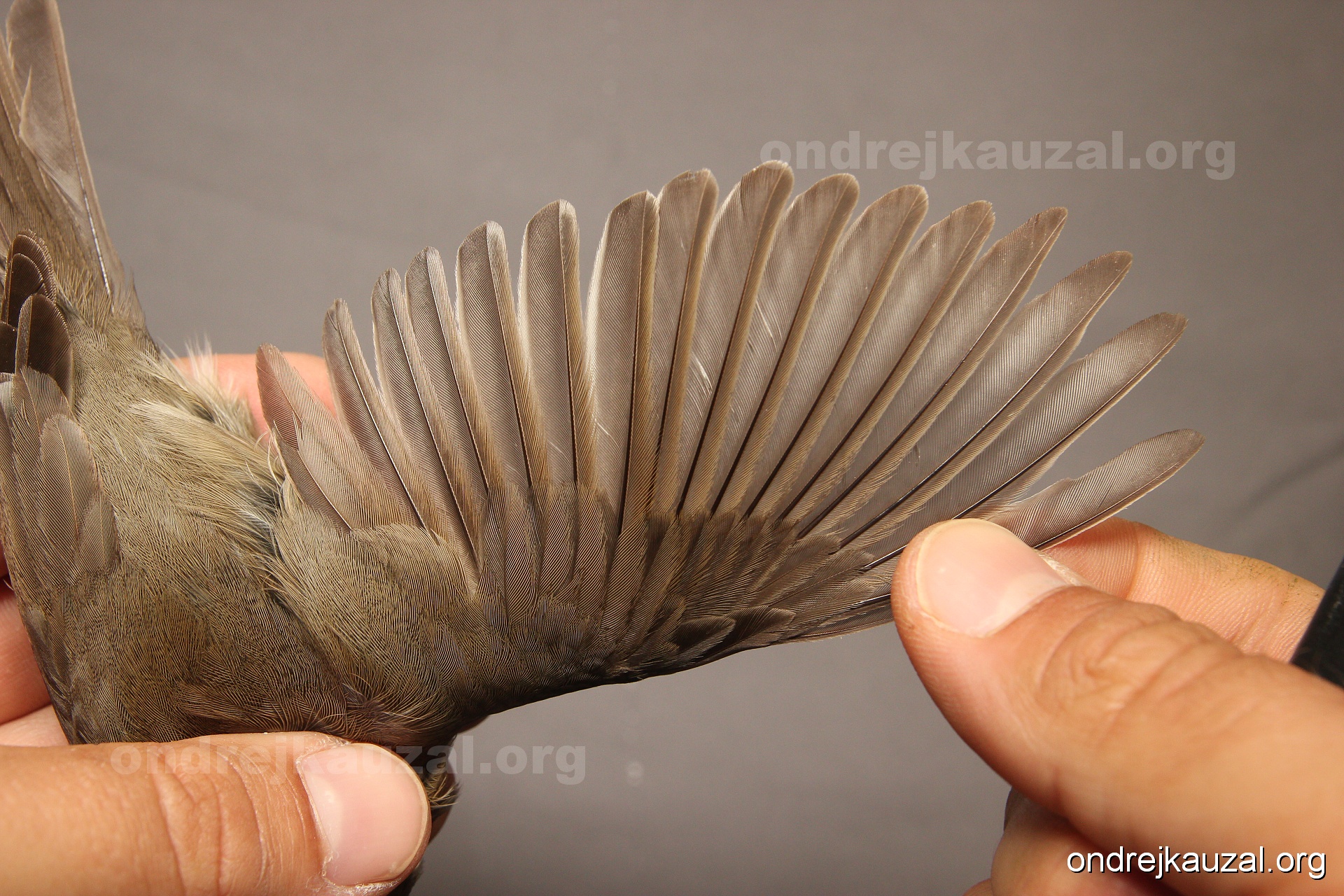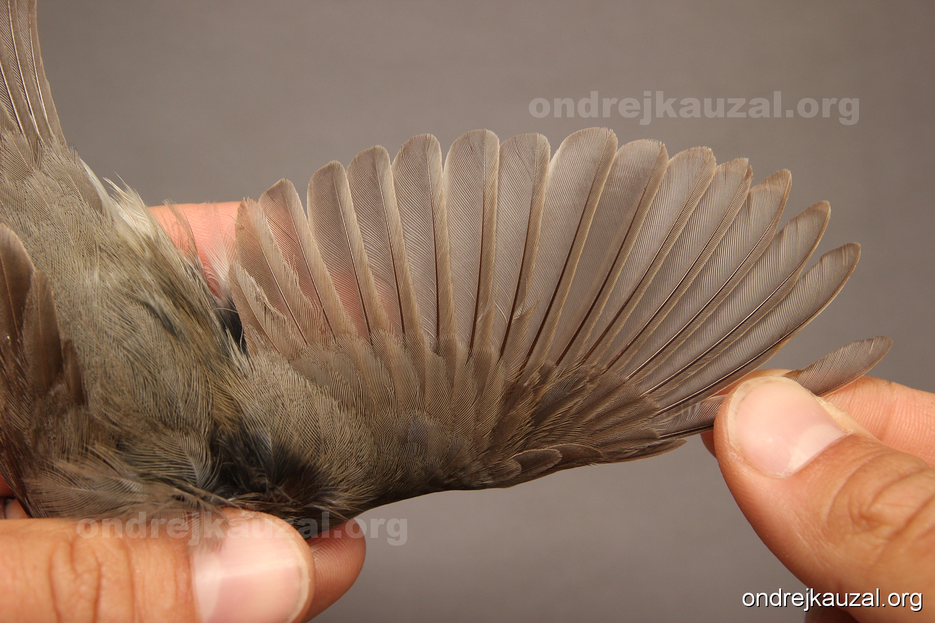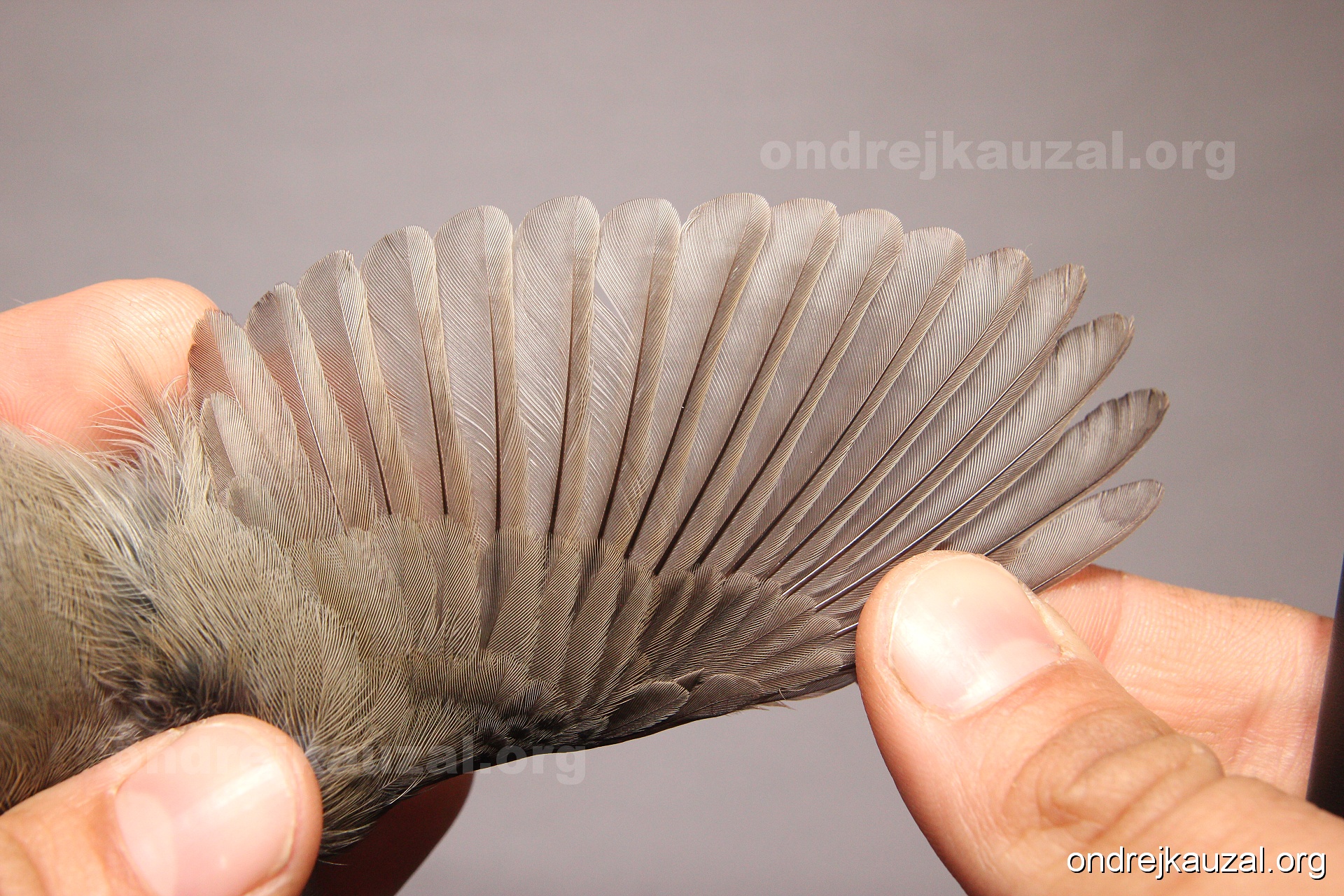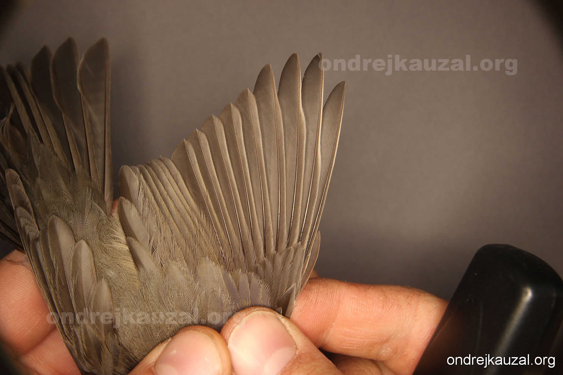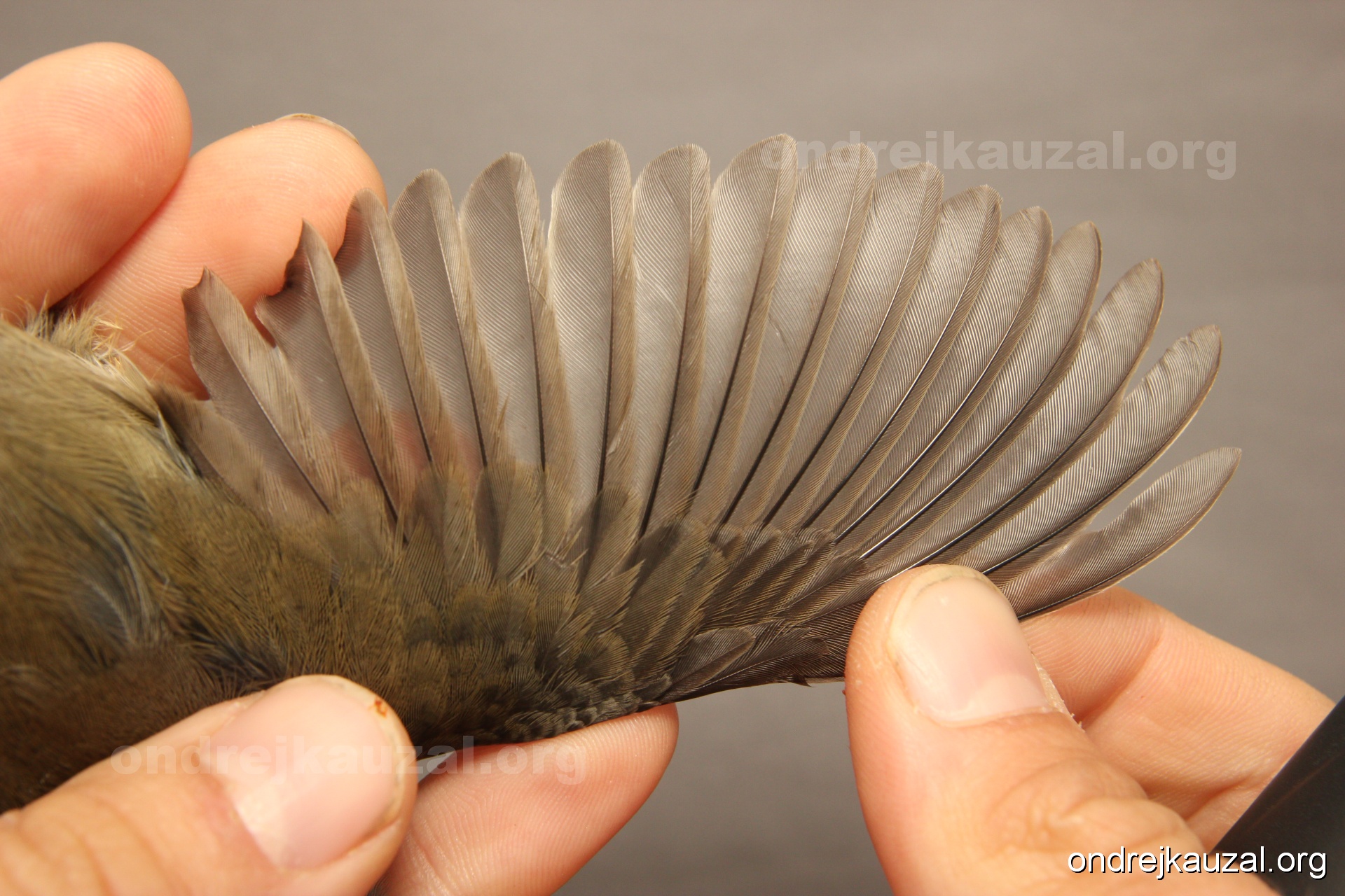 A bird showing nice fault bar across its remiges. While definitely not a good thing for the bird itself, such phenonema can aid in ageing. The uniform position of this bar from the wing indicates the wing feathers grew at the same time, i.e. on nest suggesting this bird is a young individual.