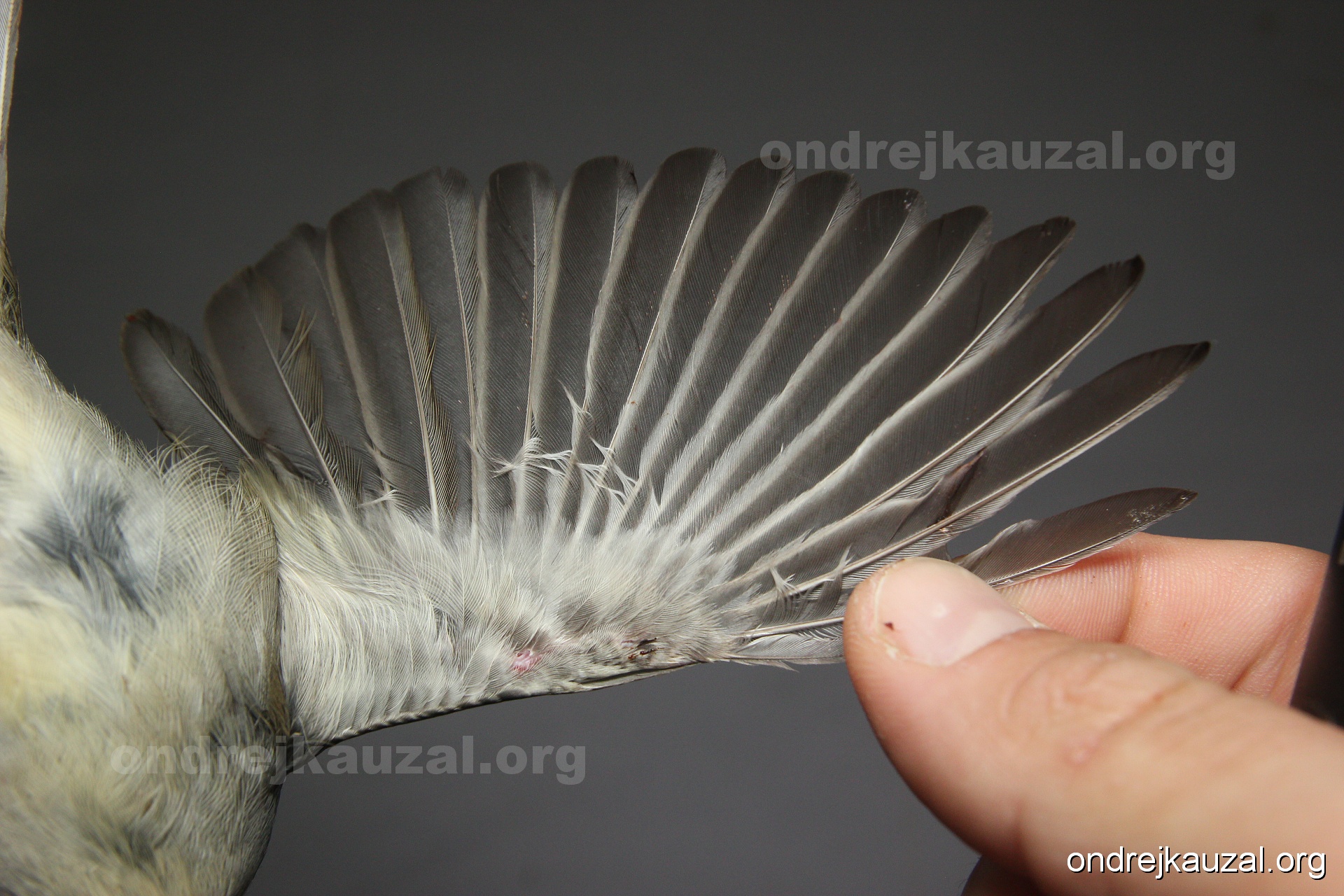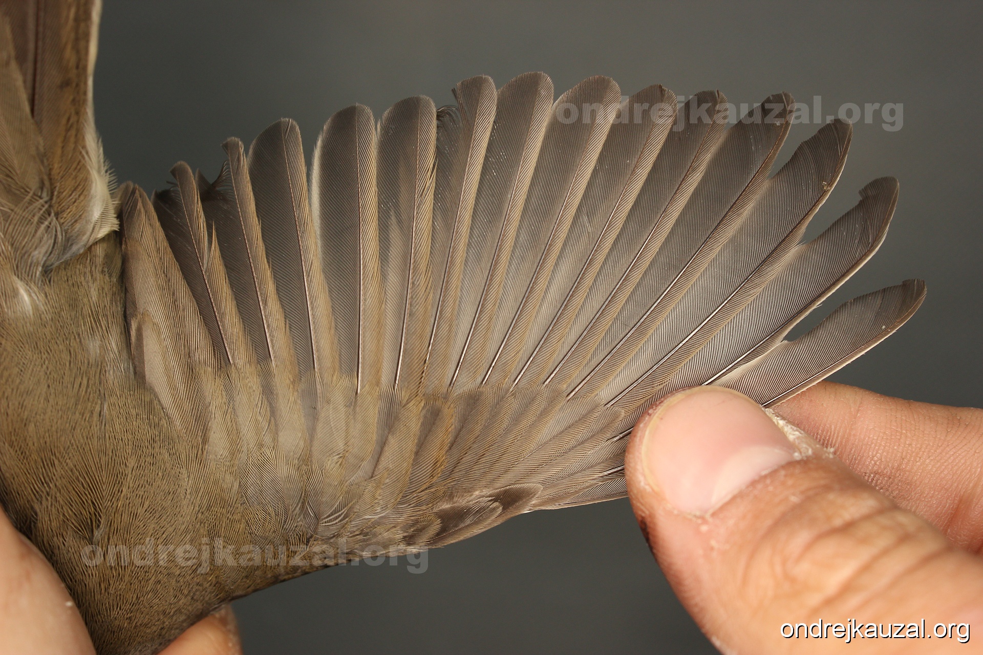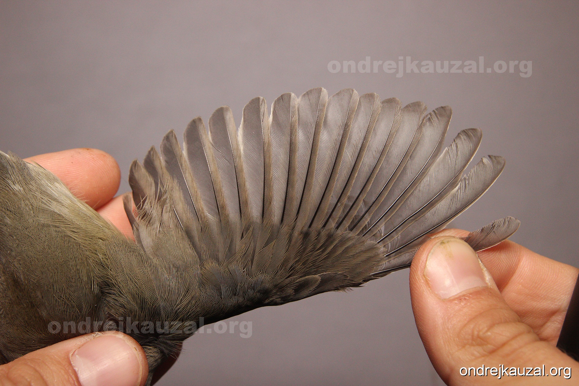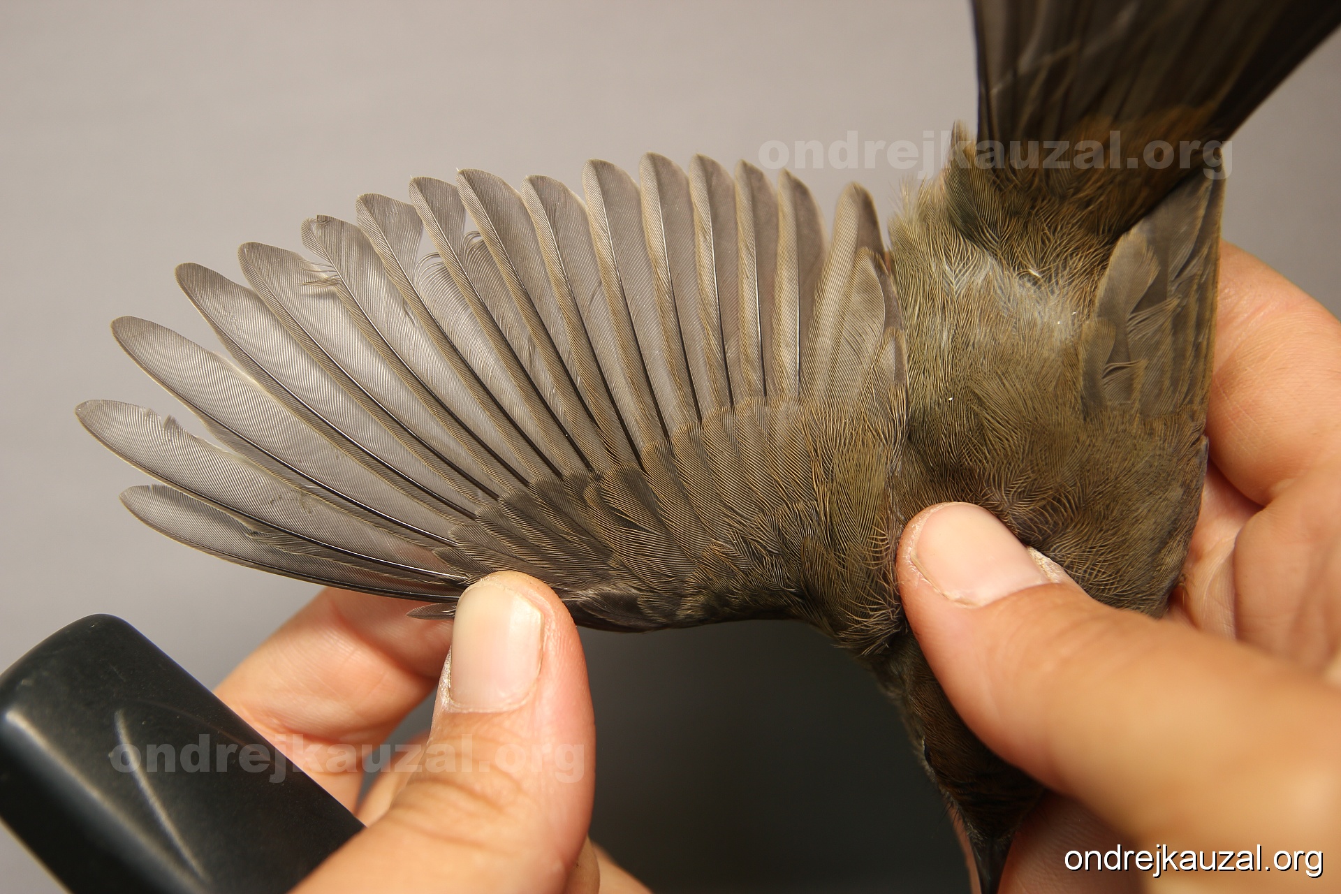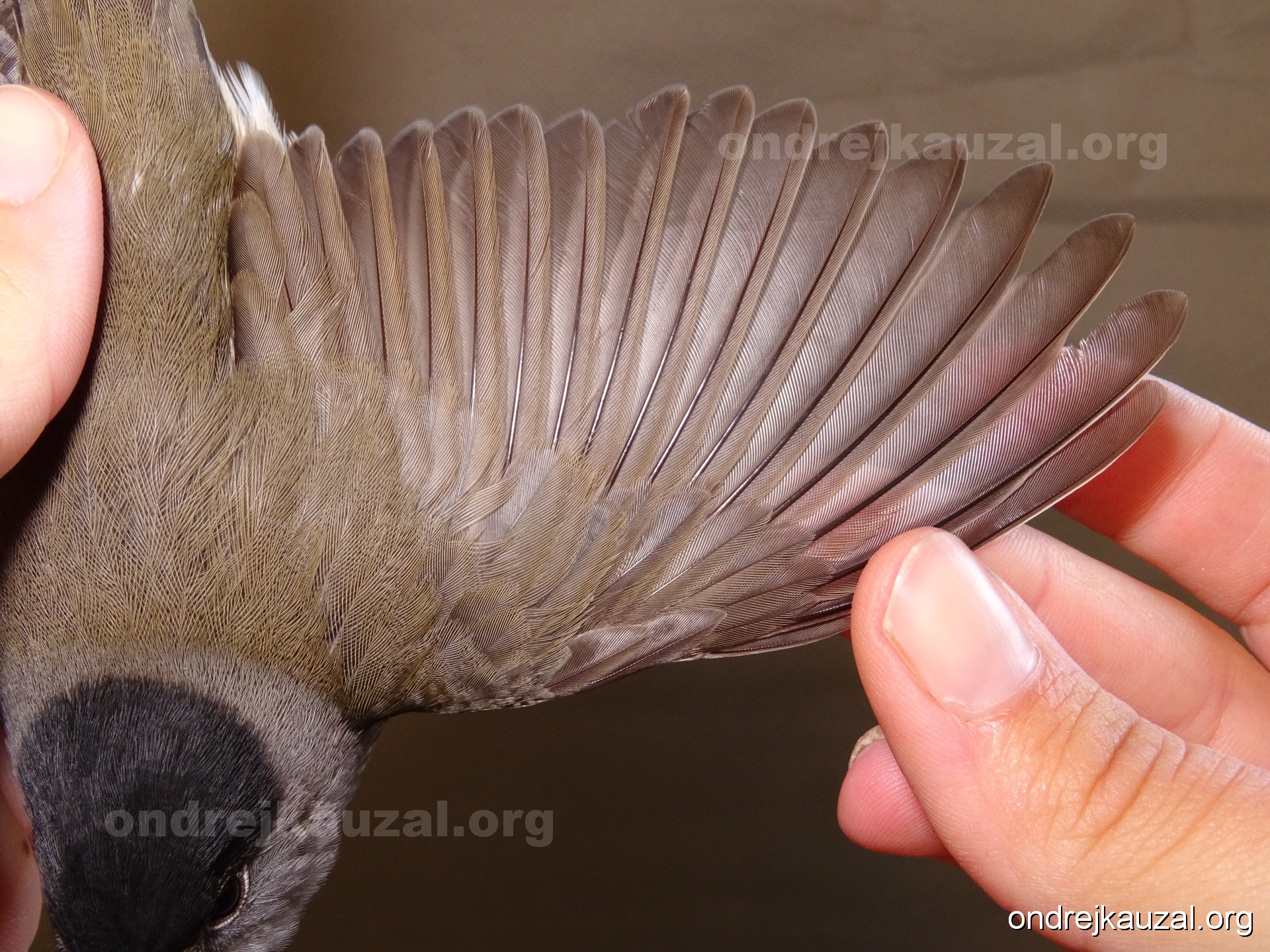 A bird showing nice fault bar across its remiges. While definitely not a good thing for the bird itself, such phenonema can aid in ageing. The uniform position of this bar from the wing indicates the wing feathers grew at the same time, i.e. on nest suggesting this bird is a young individual.