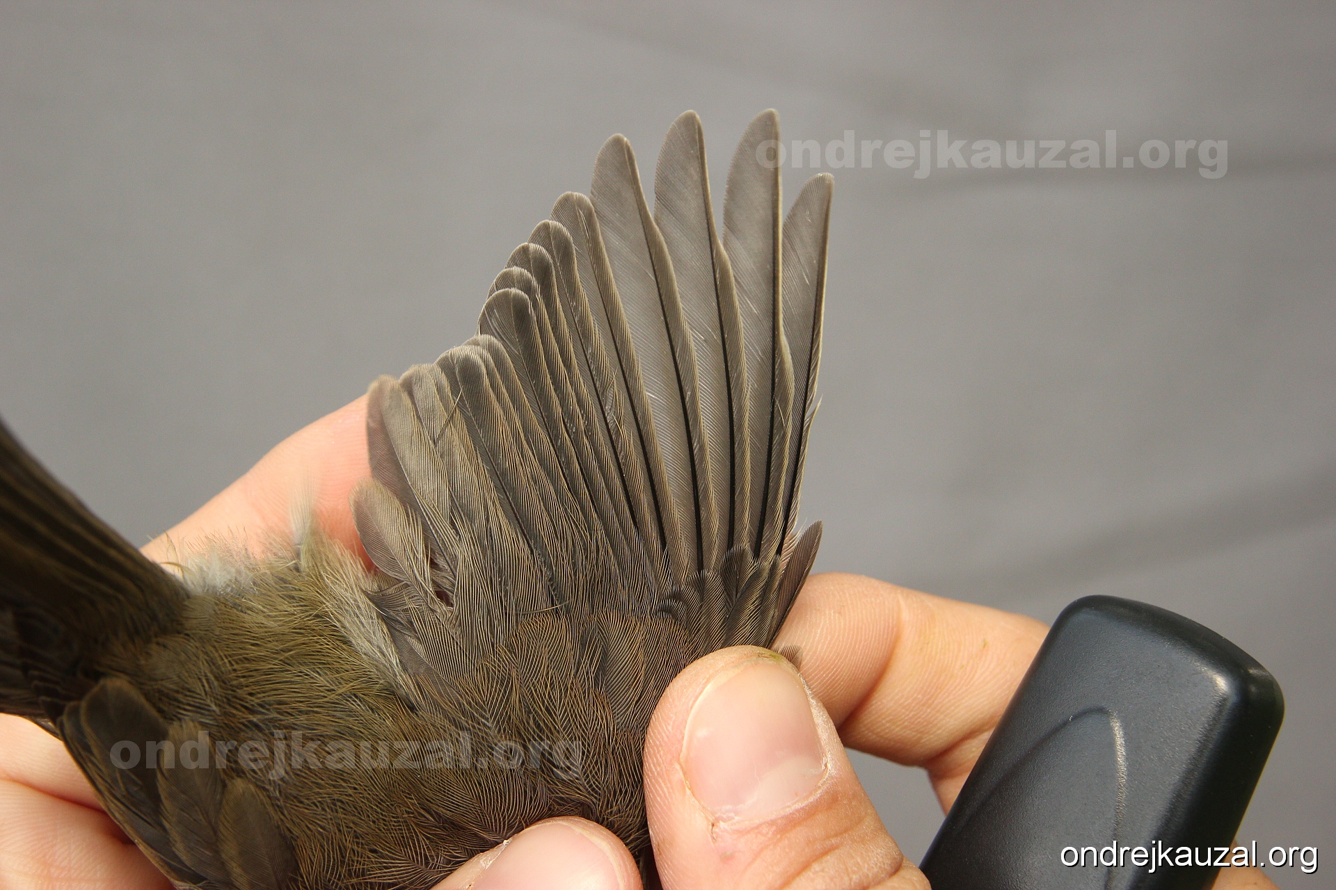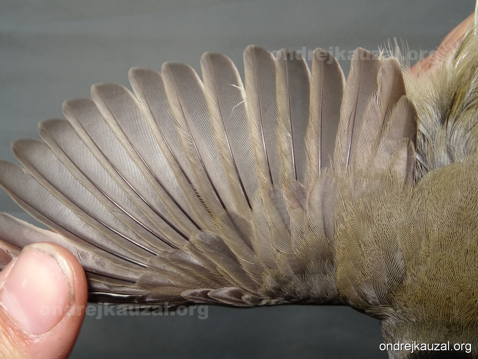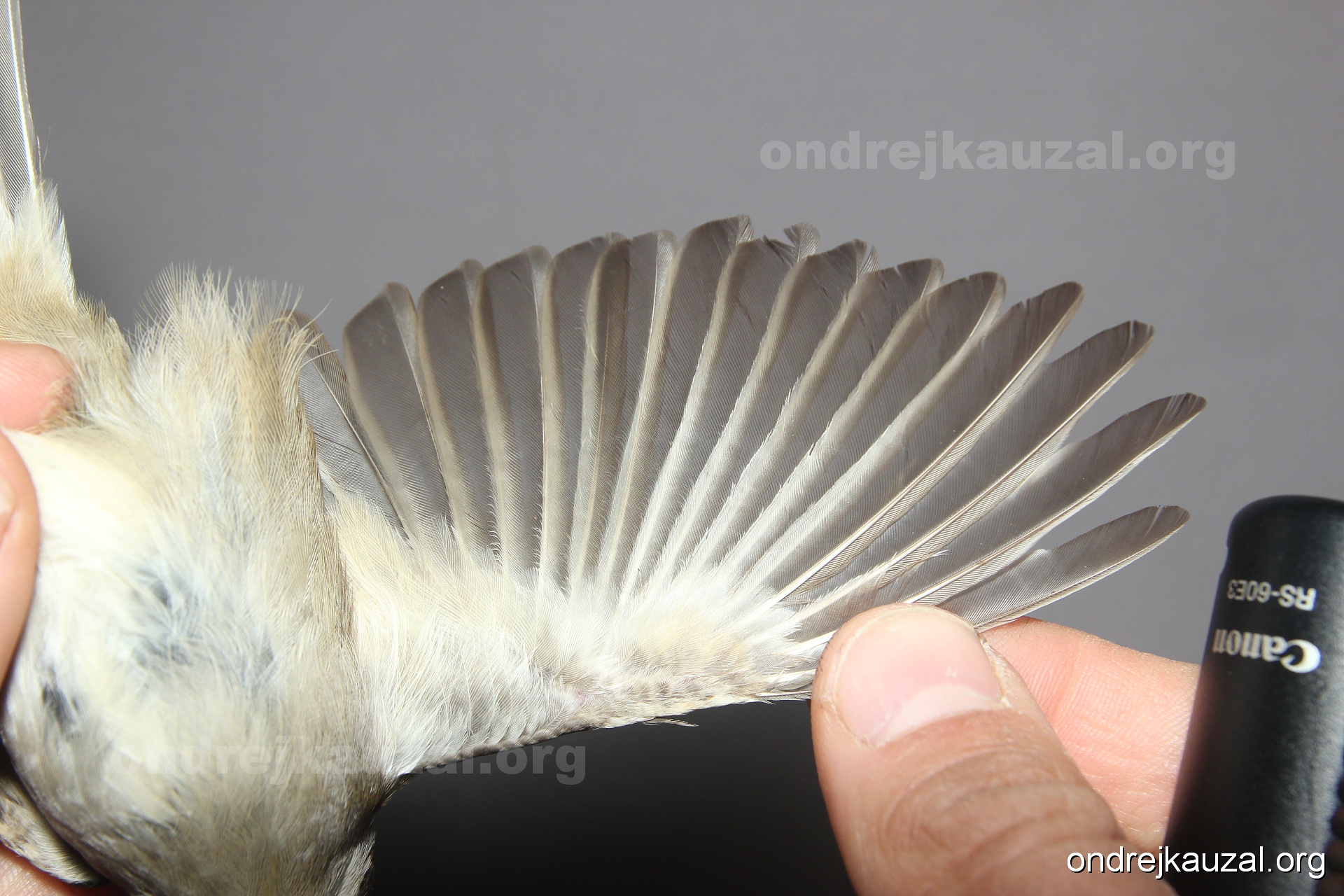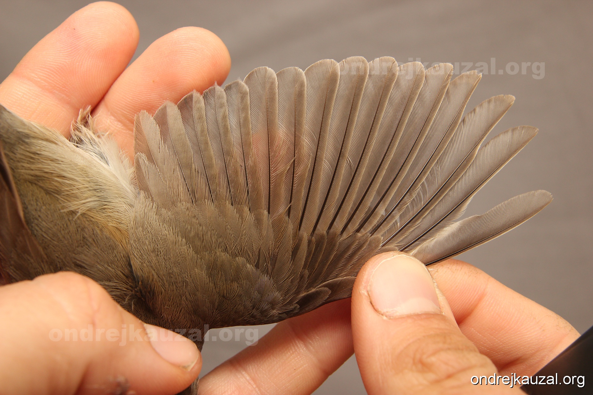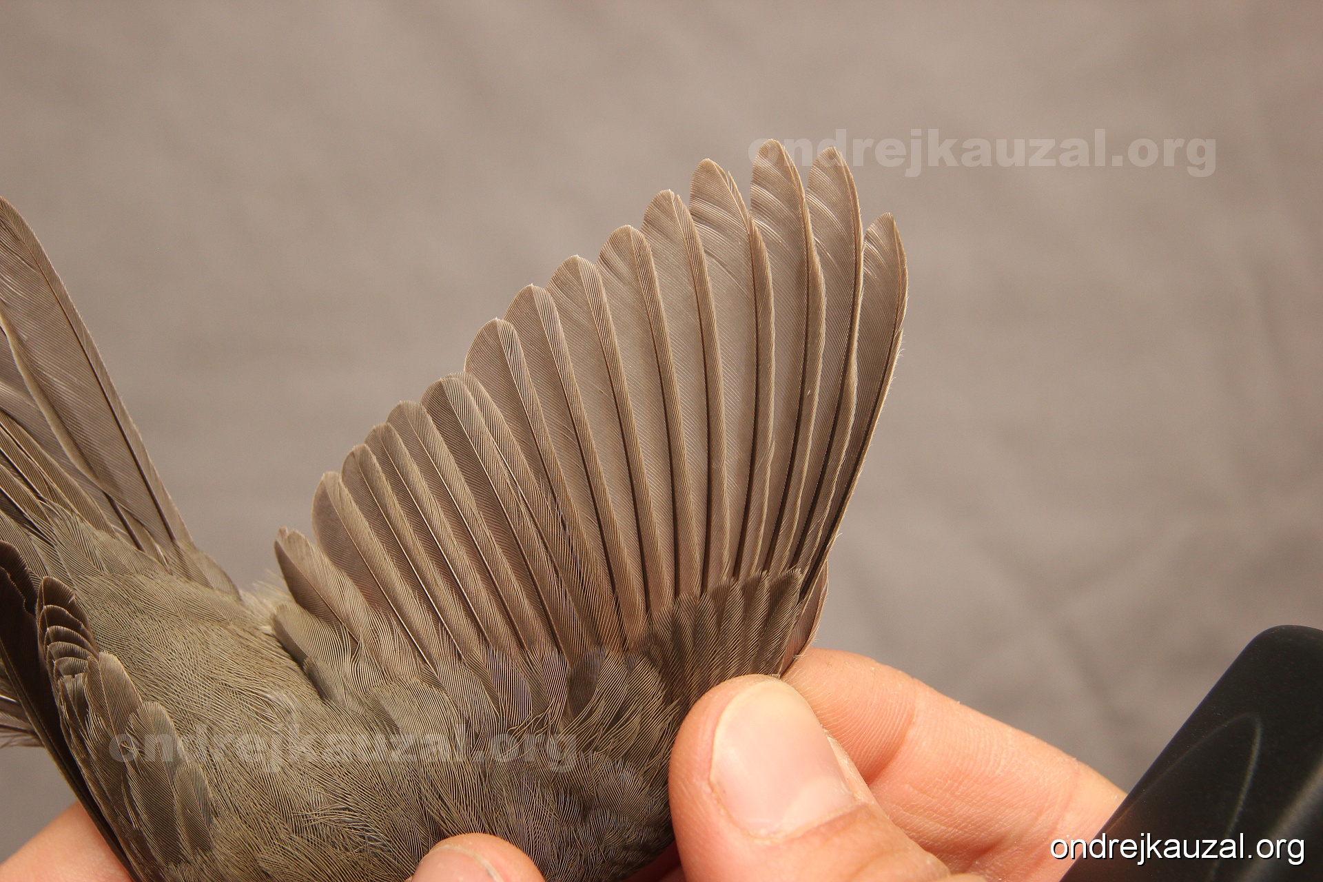 A bird showing nice fault bar across its remiges. While definitely not a good thing for the bird itself, such phenonema can aid in ageing. The uniform position of this bar from the wing indicates the wing feathers grew at the same time, i.e. on nest suggesting this bird is a young individual.