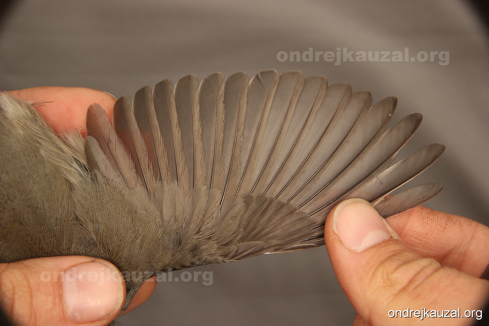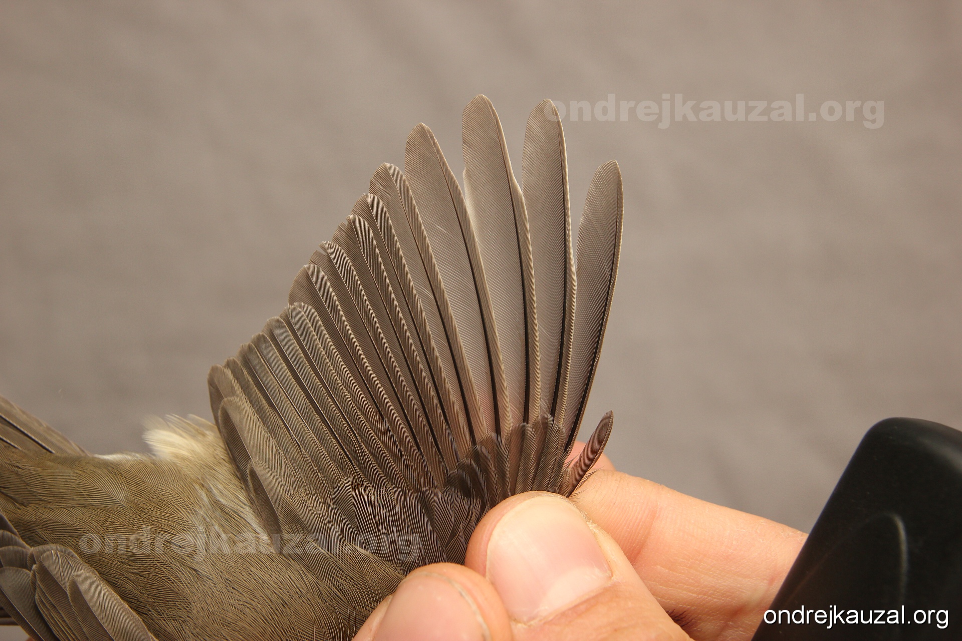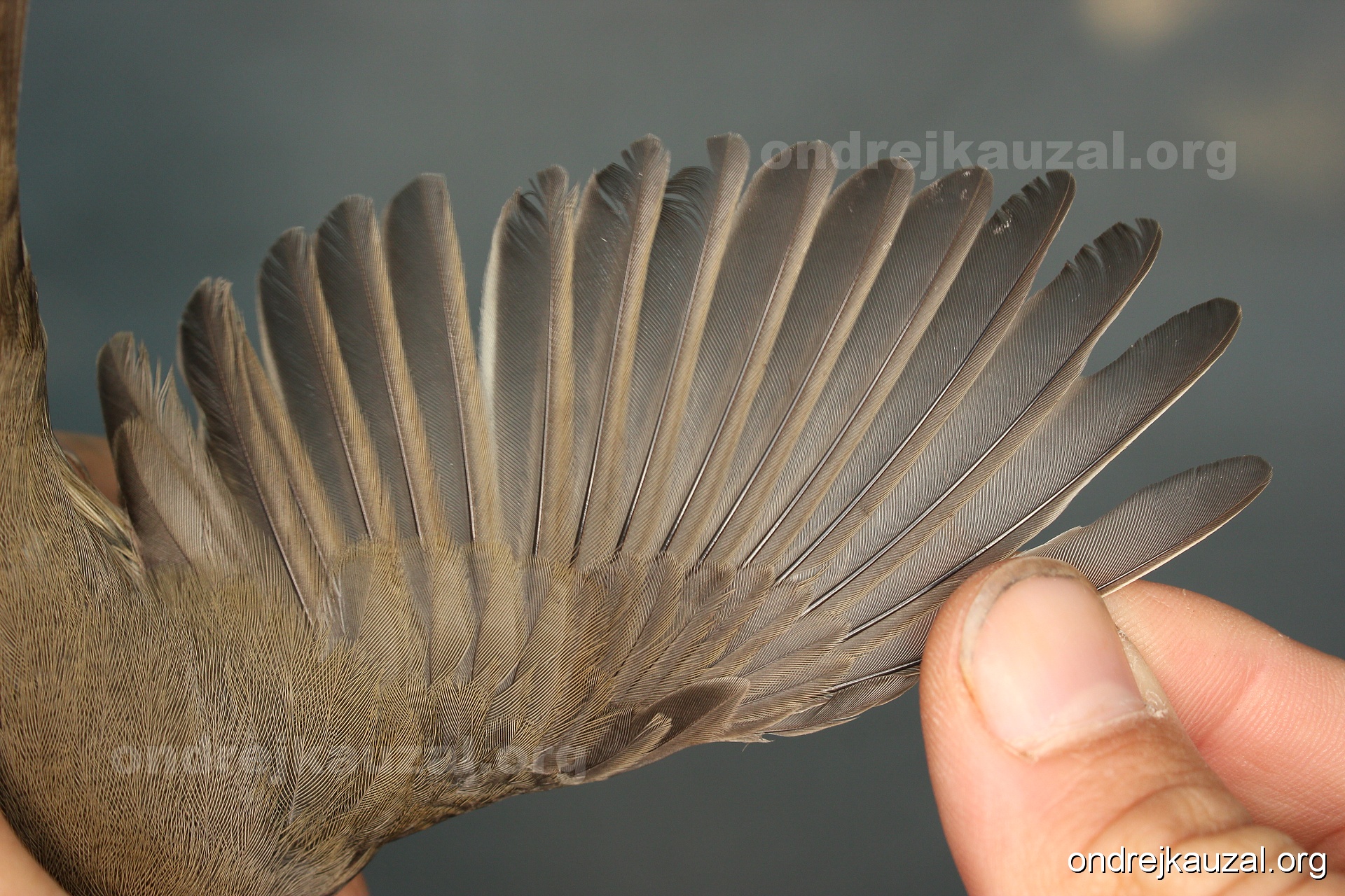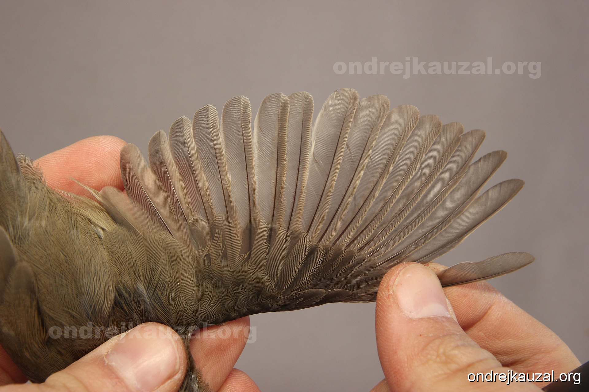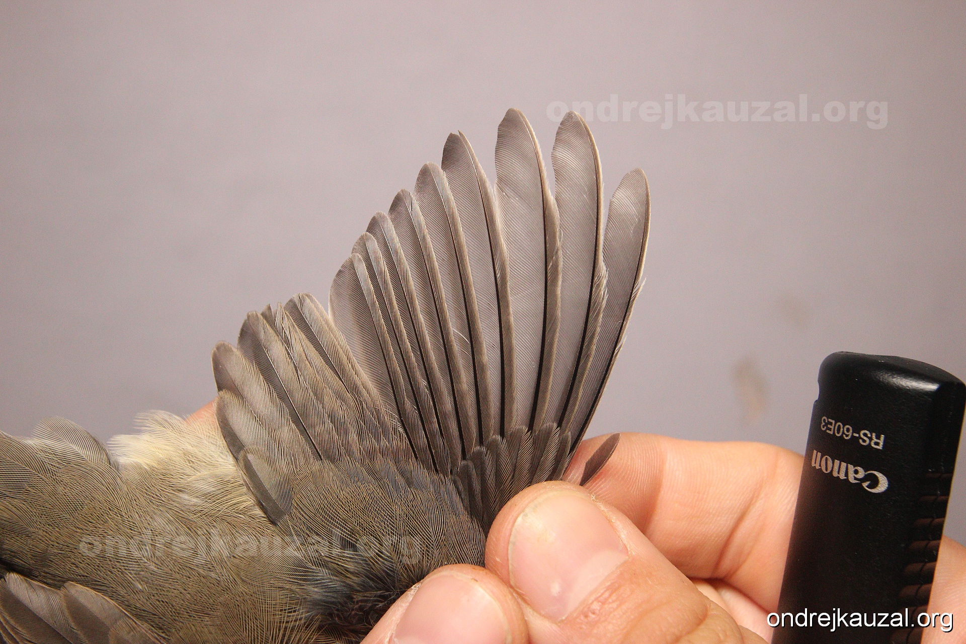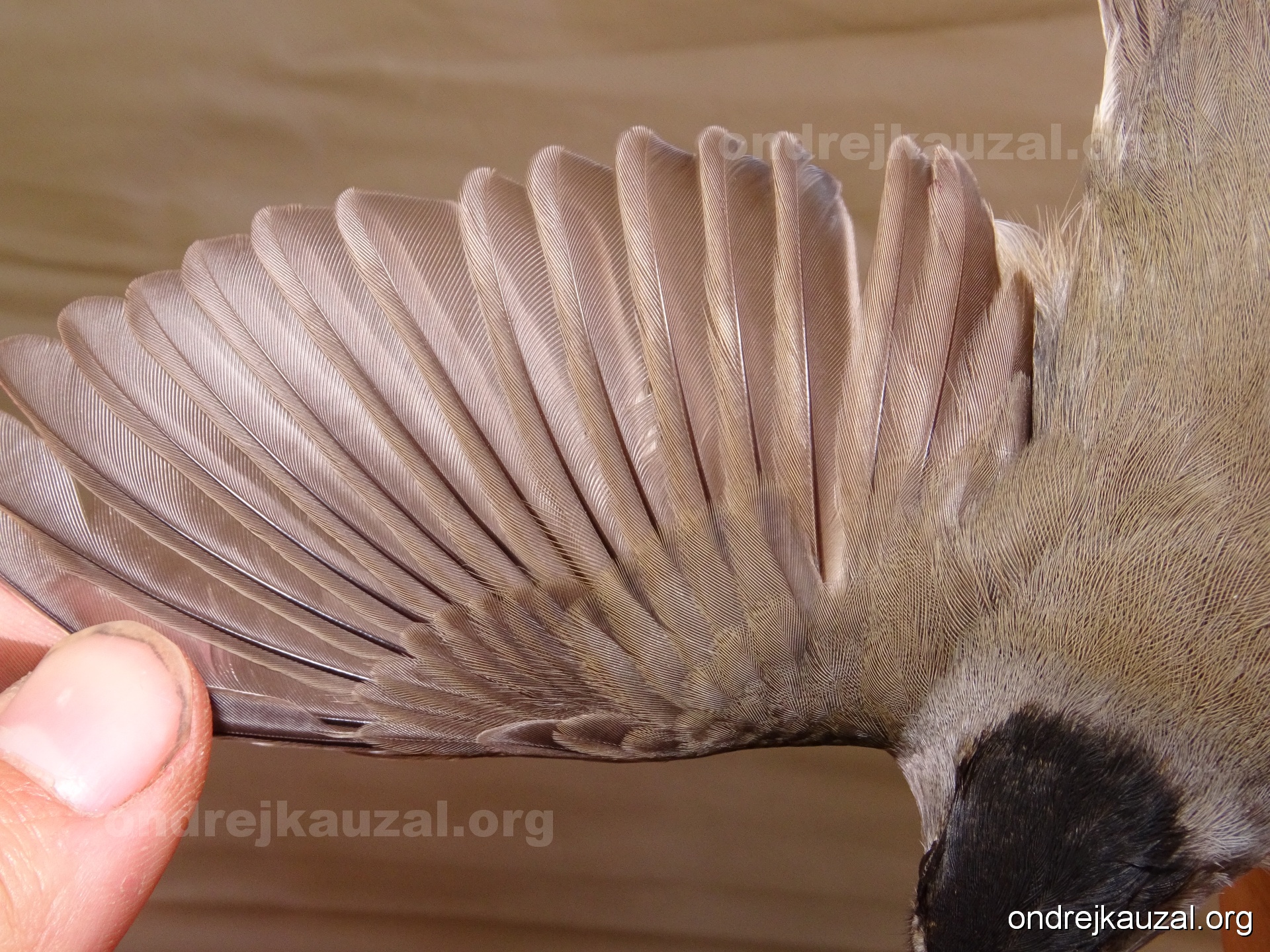 A bird showing nice fault bar across its remiges. While definitely not a good thing for the bird itself, such phenonema can aid in ageing. The uniform position of this bar from the wing indicates the wing feathers grew at the same time, i.e. on nest suggesting this bird is a young individual.