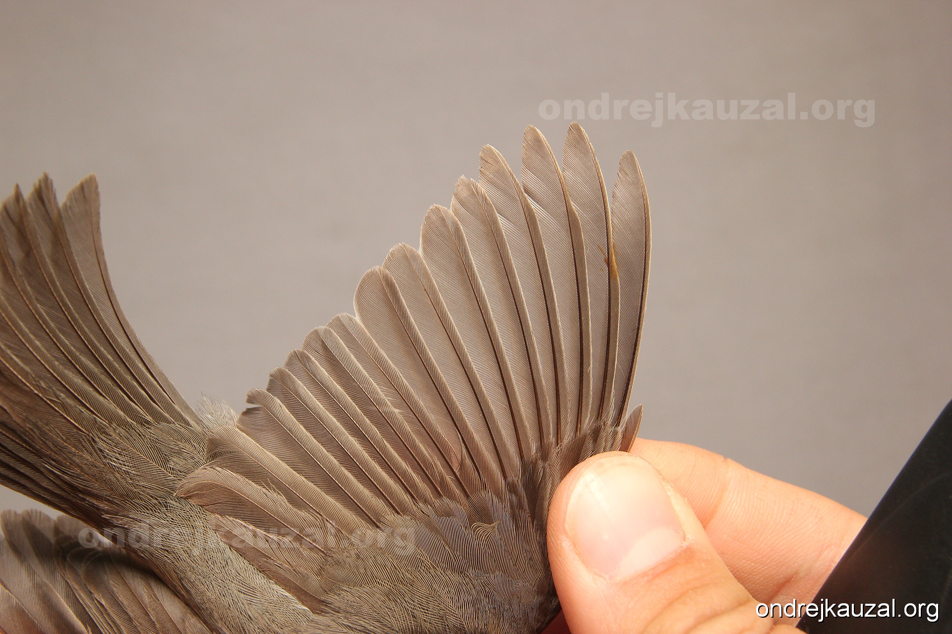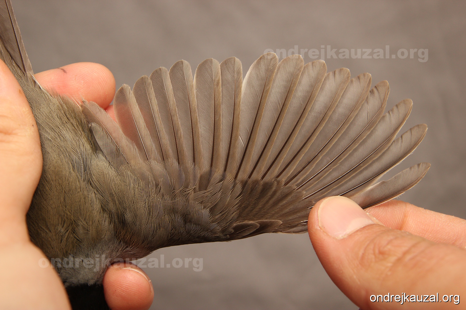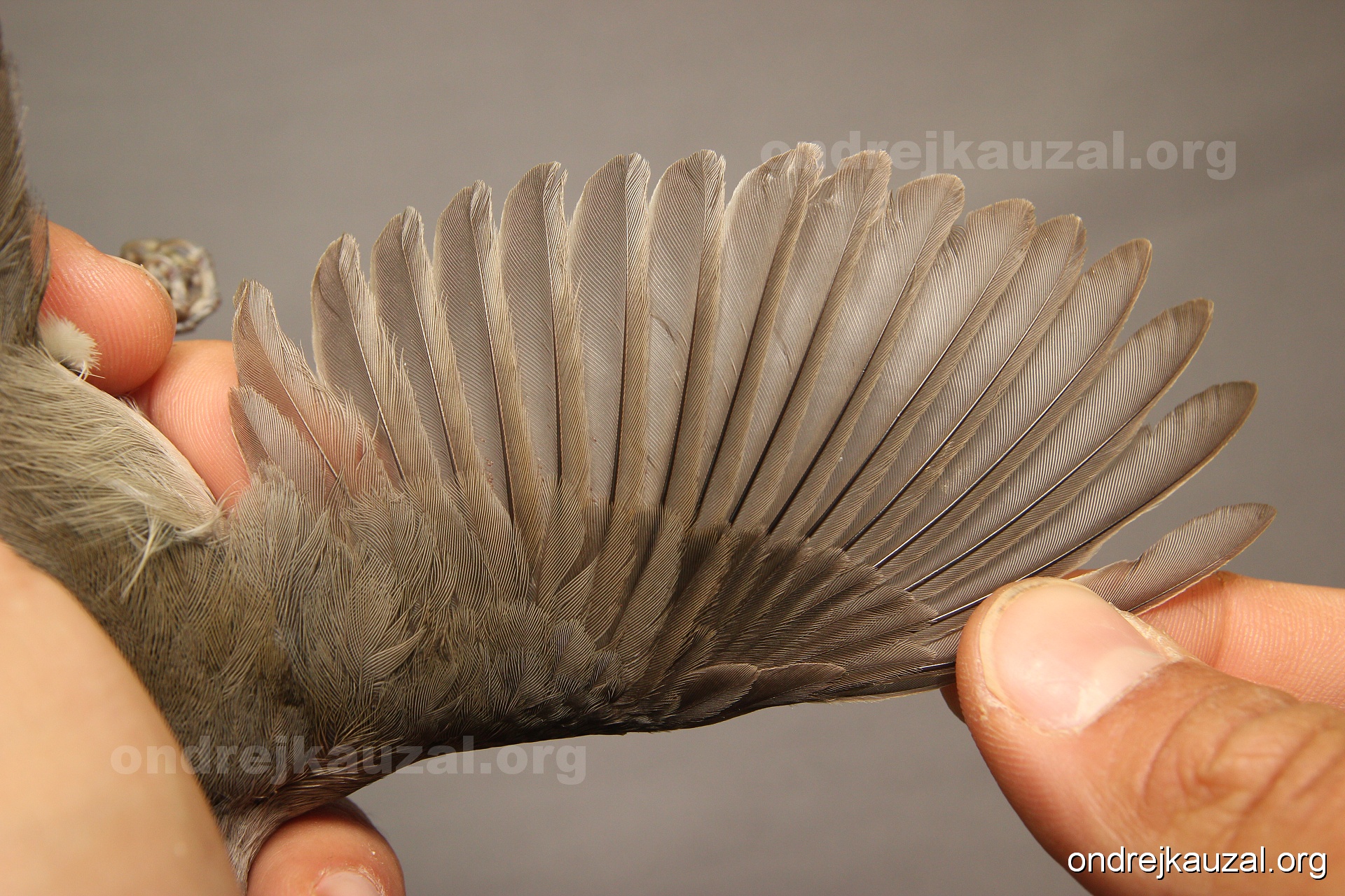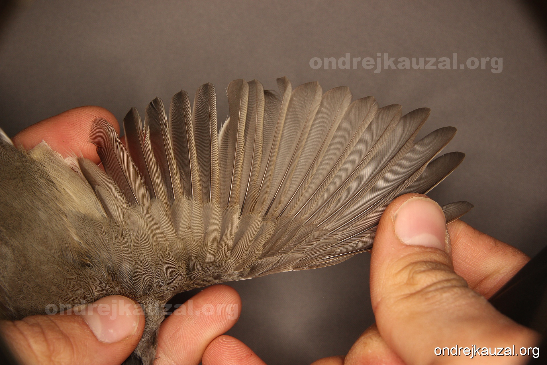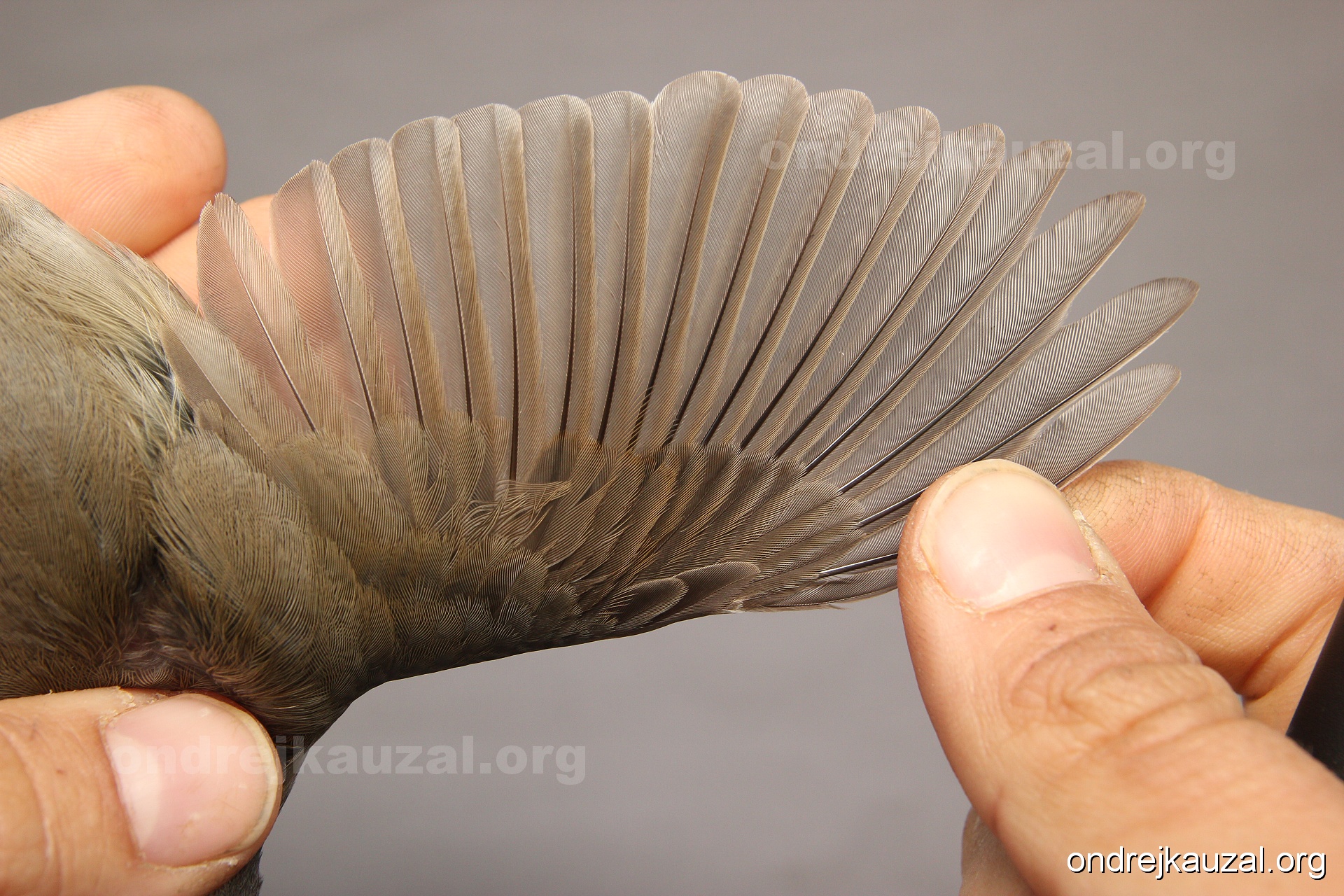 A bird showing nice fault bar across its remiges. While definitely not a good thing for the bird itself, such phenonema can aid in ageing. The uniform position of this bar from the wing indicates the wing feathers grew at the same time, i.e. on nest suggesting this bird is a young individual.