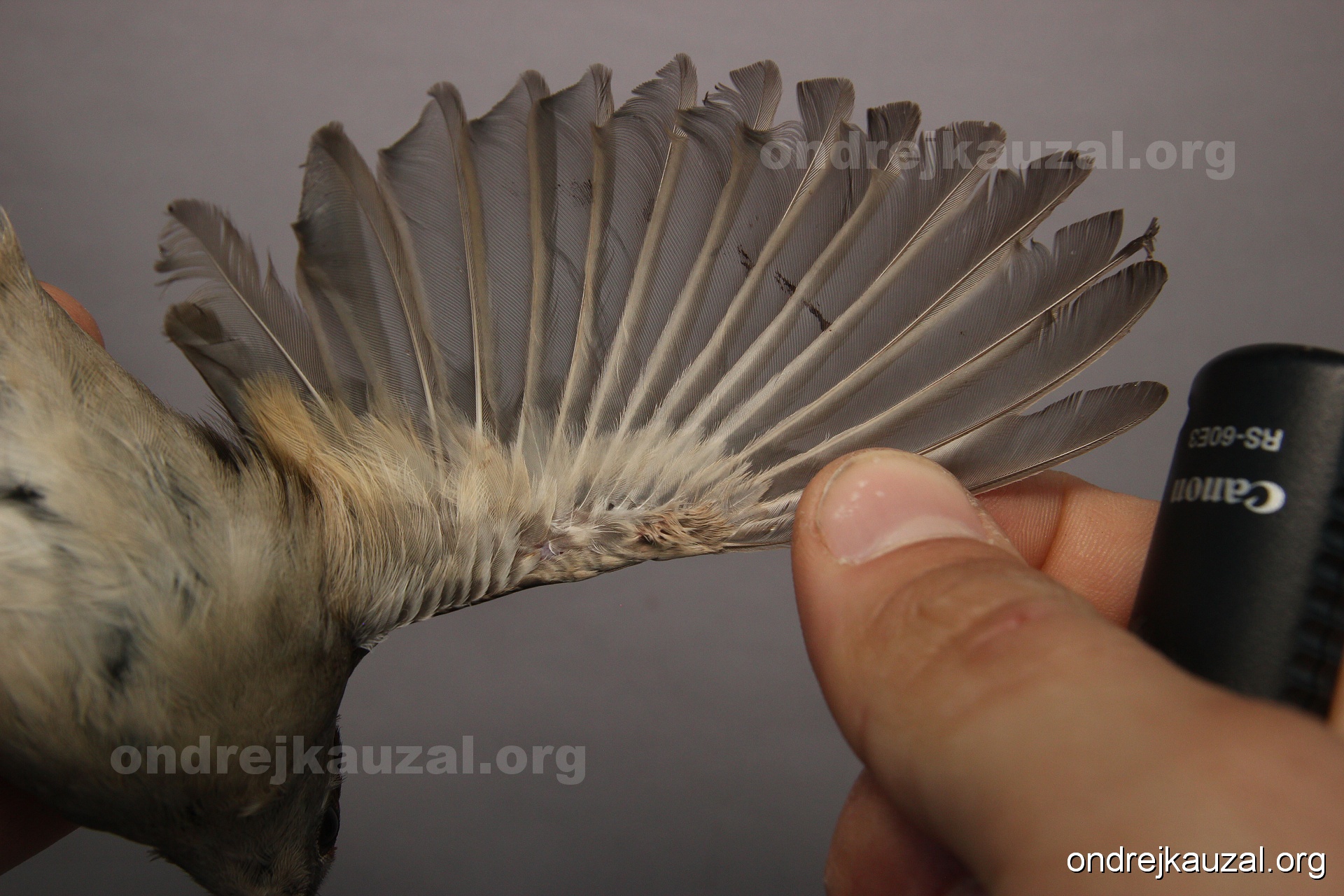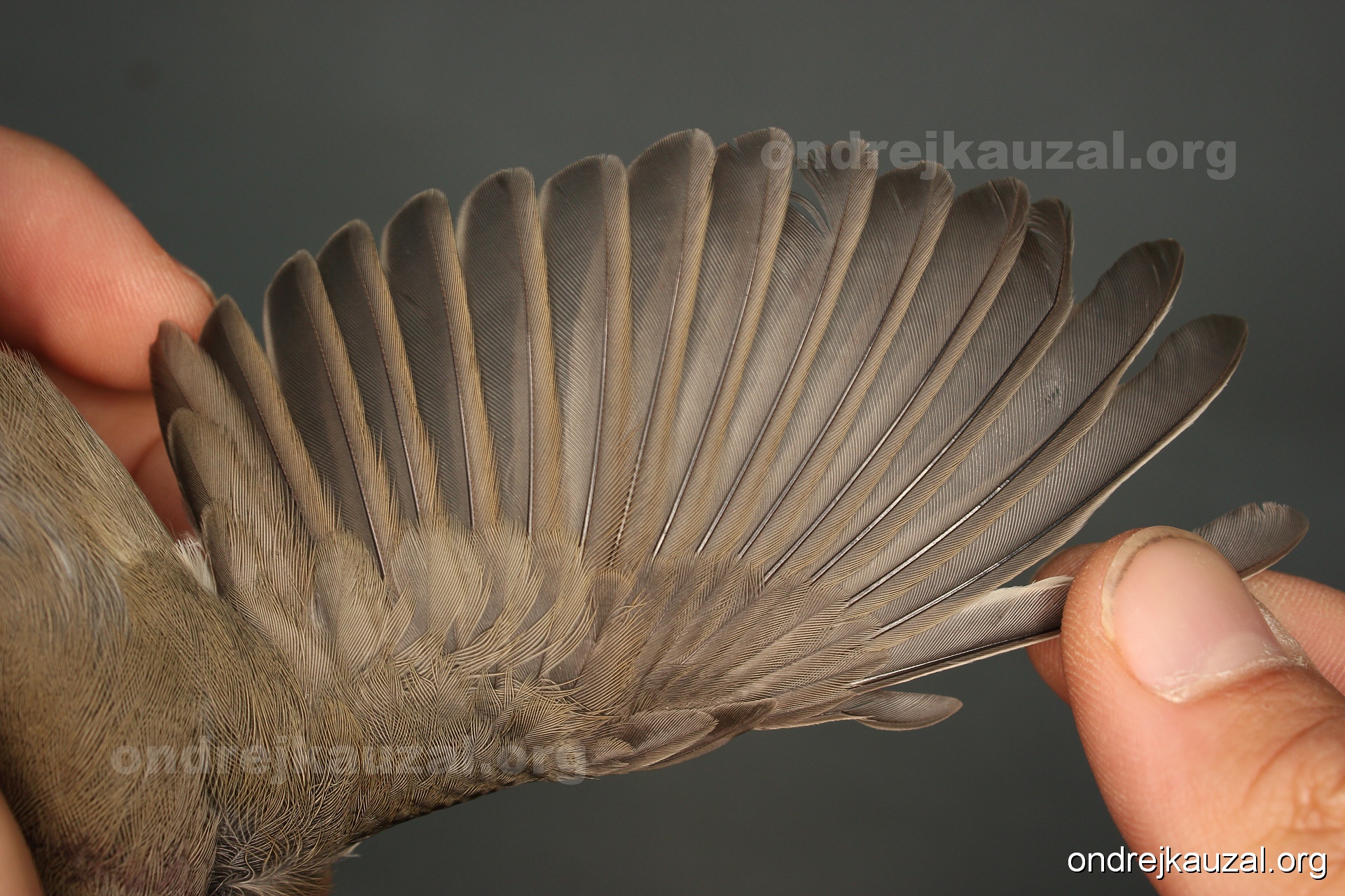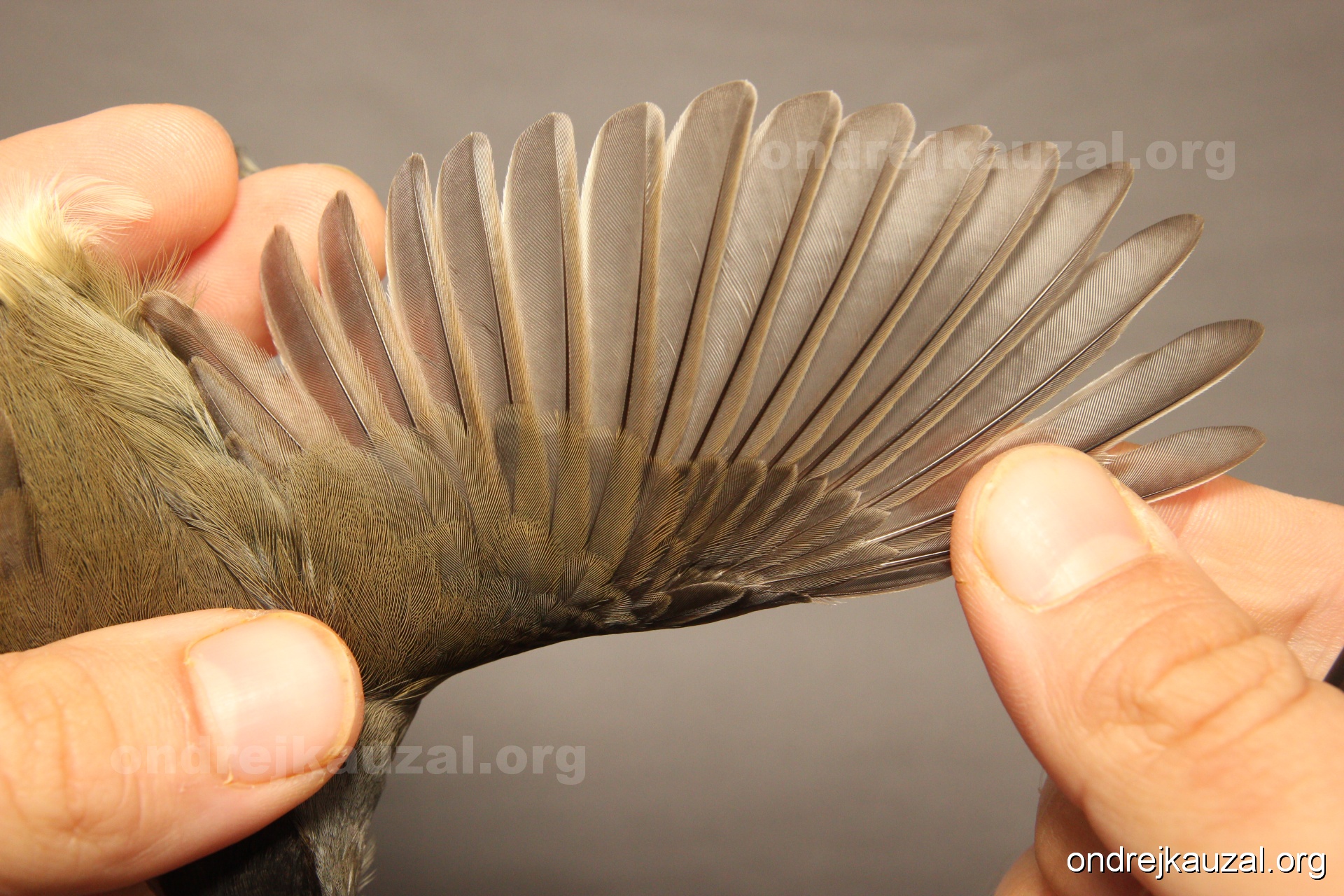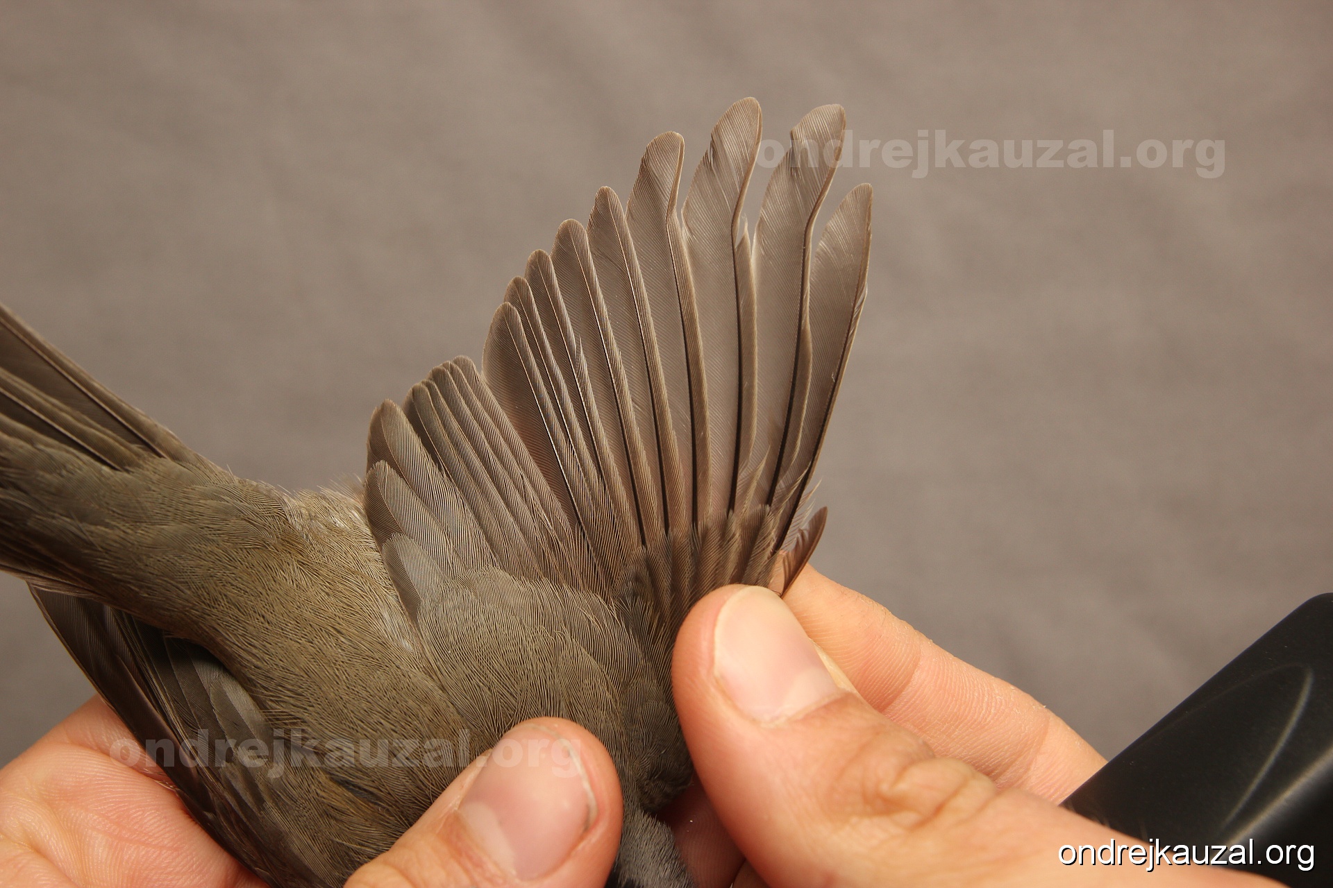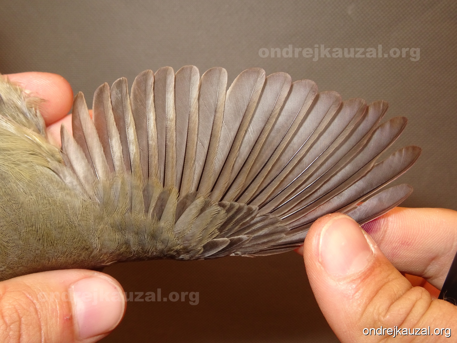 A bird showing nice fault bar across its remiges. While definitely not a good thing for the bird itself, such phenonema can aid in ageing. The uniform position of this bar from the wing indicates the wing feathers grew at the same time, i.e. on nest suggesting this bird is a young individual.