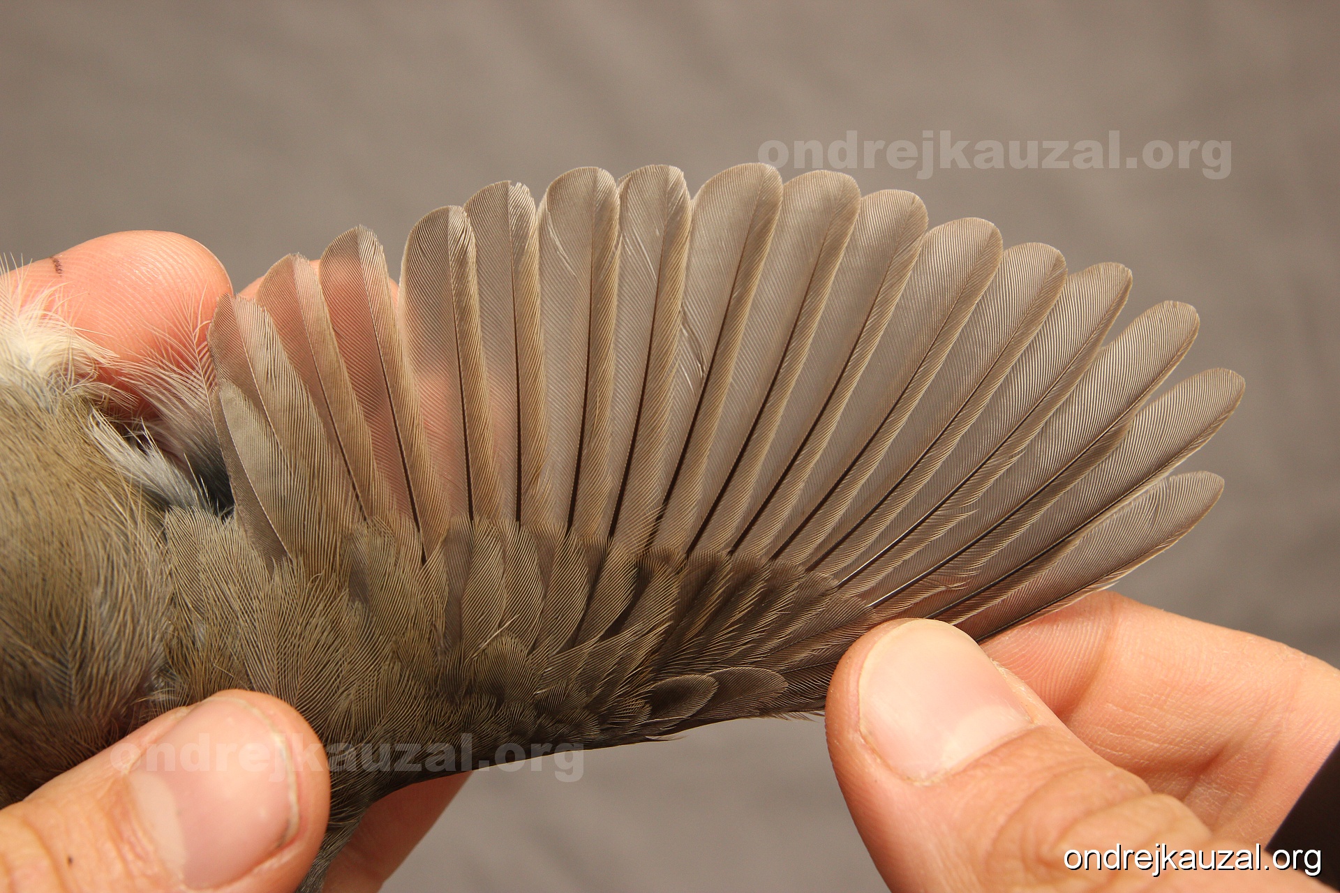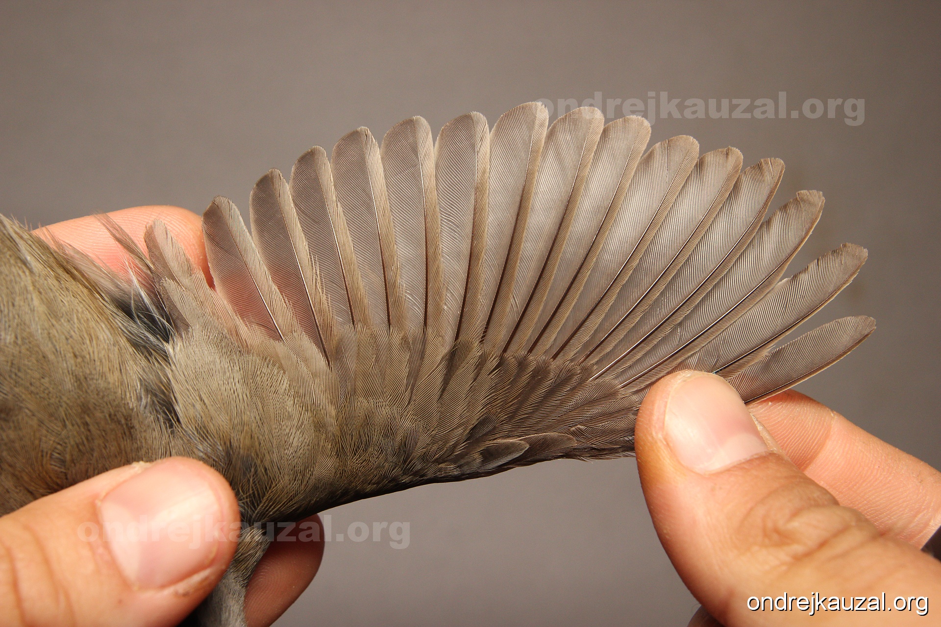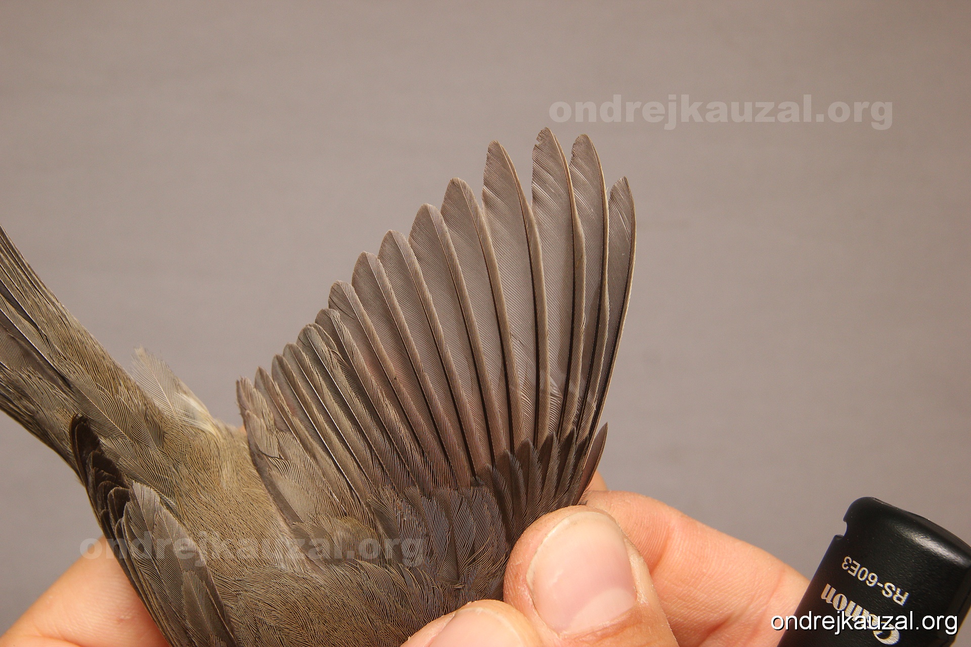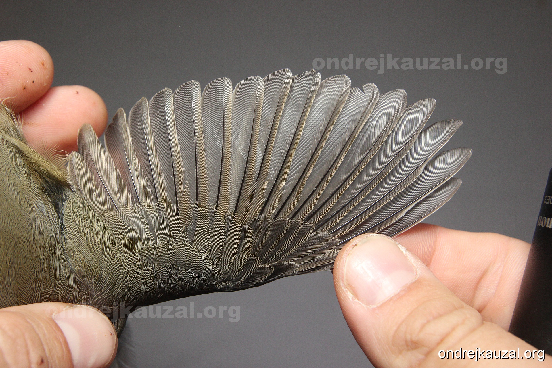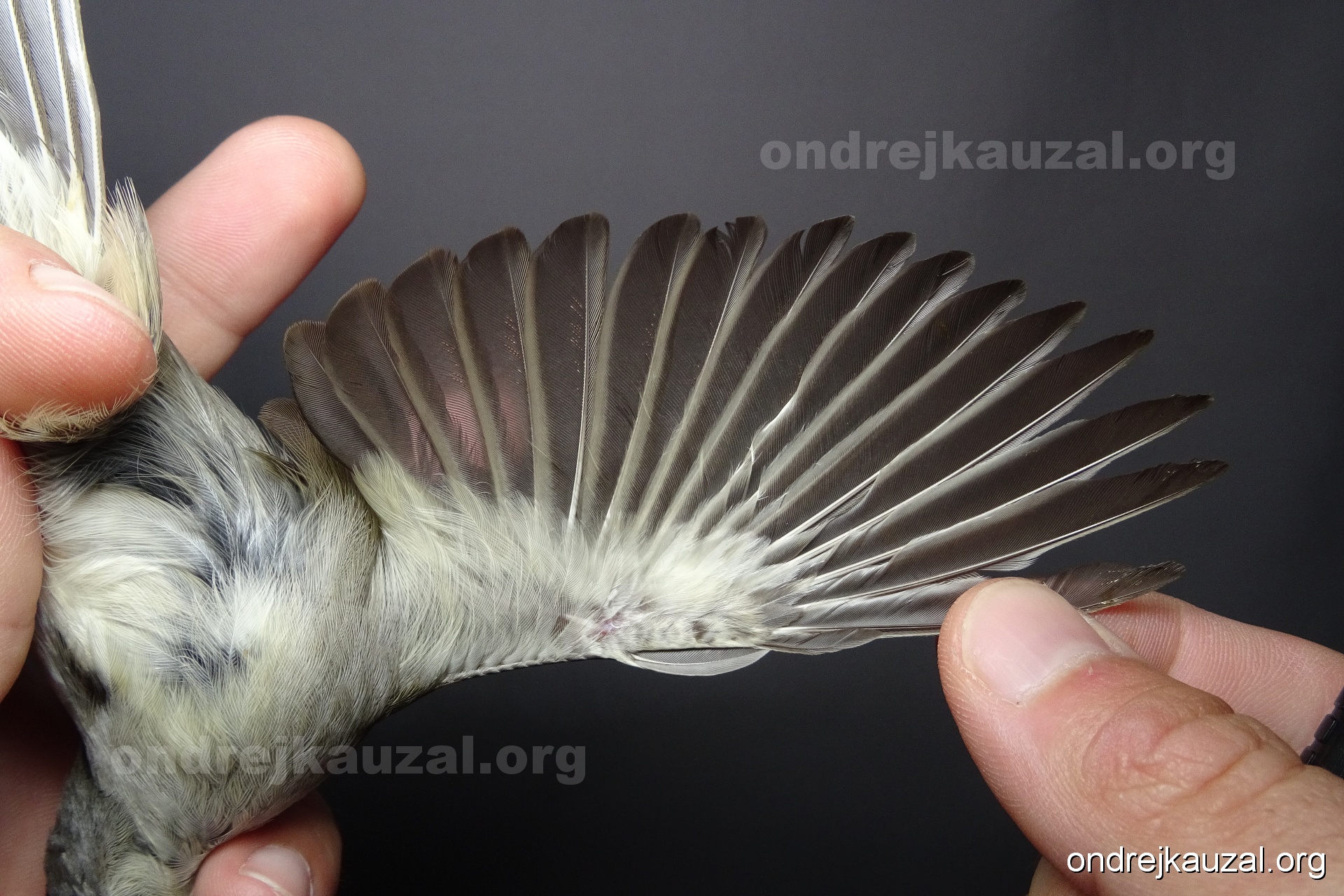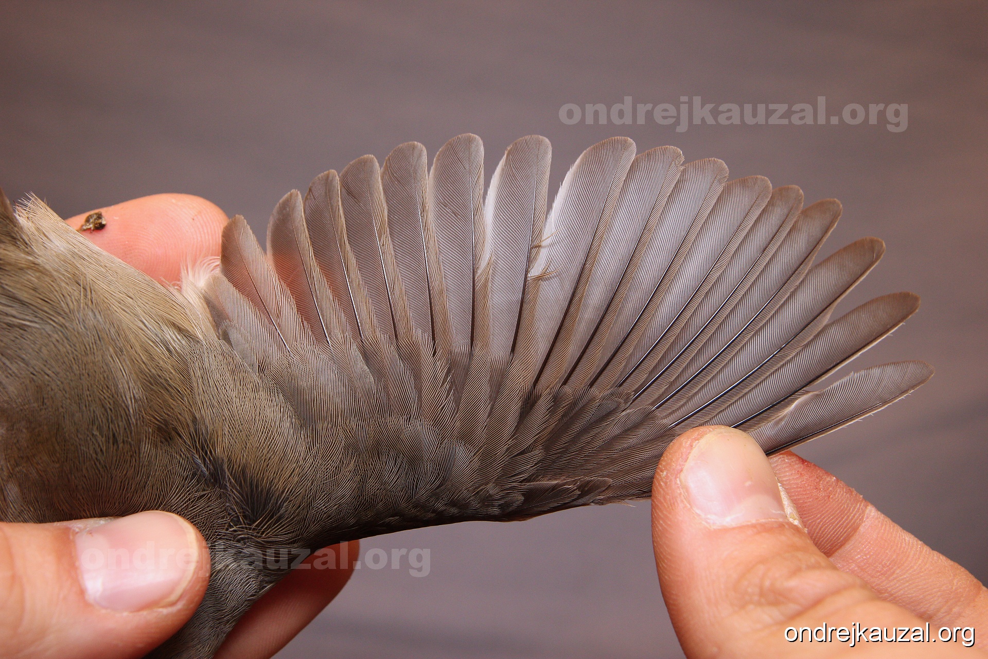 A bird showing nice fault bar across its remiges. While definitely not a good thing for the bird itself, such phenonema can aid in ageing. The uniform position of this bar from the wing indicates the wing feathers grew at the same time, i.e. on nest suggesting this bird is a young individual.