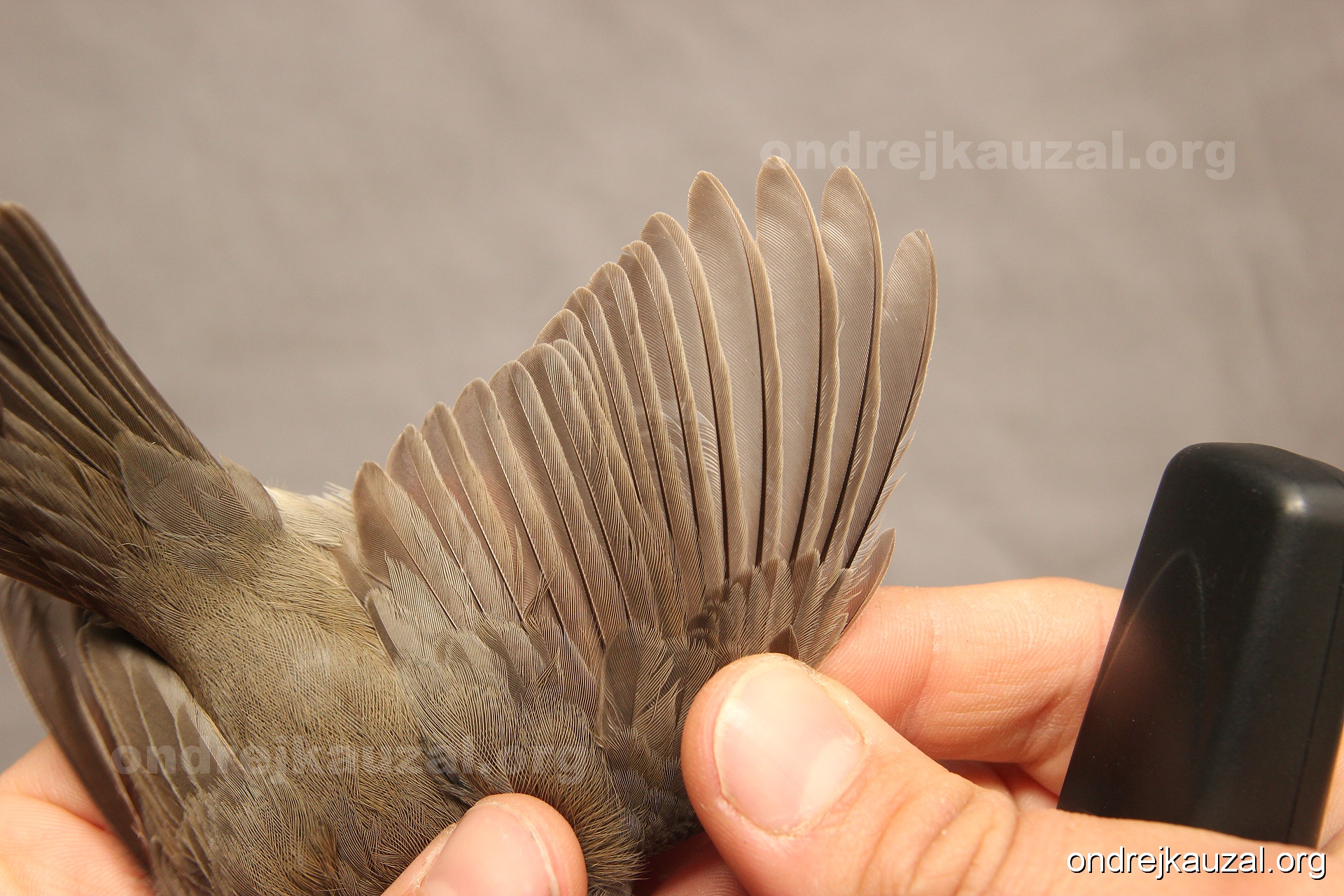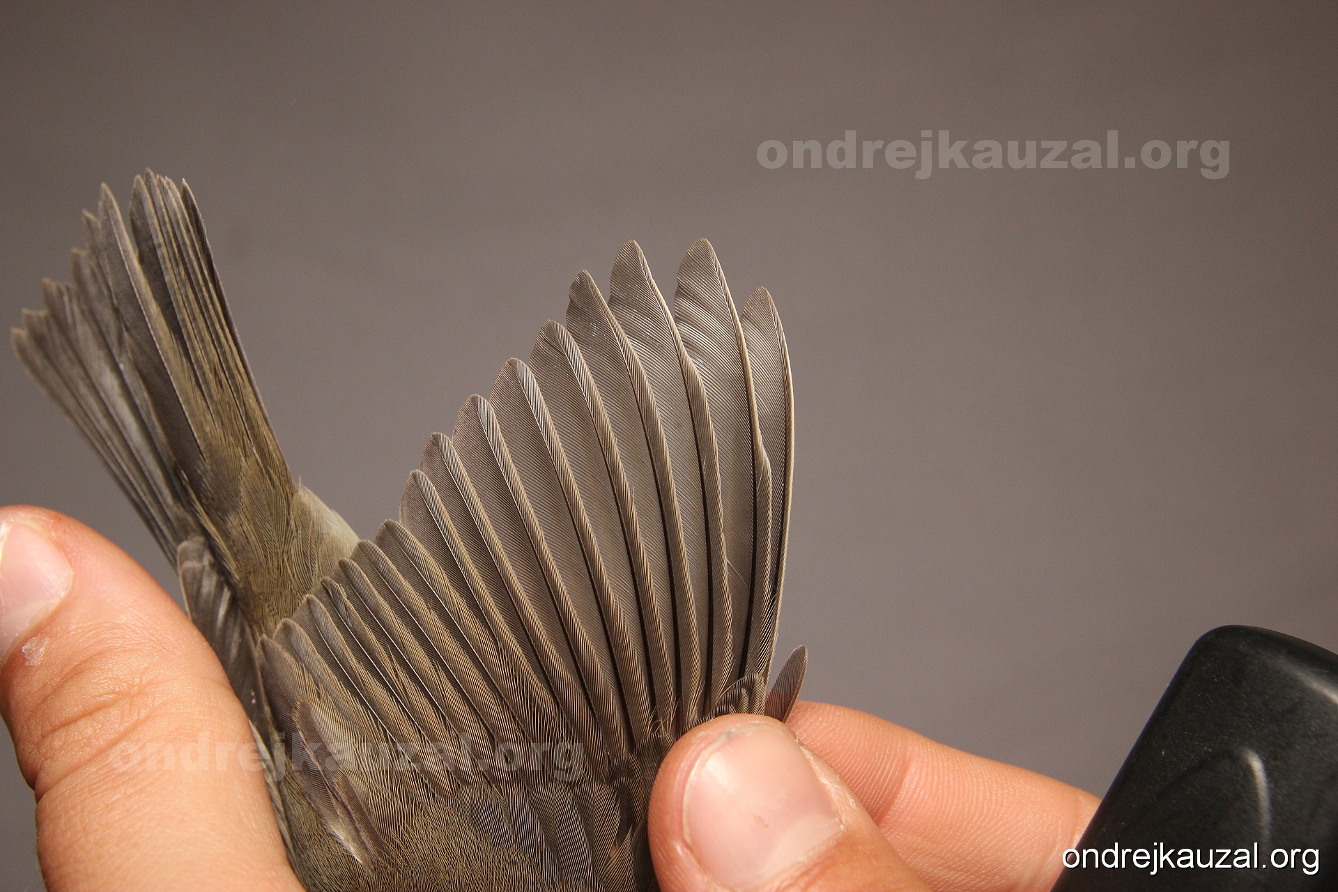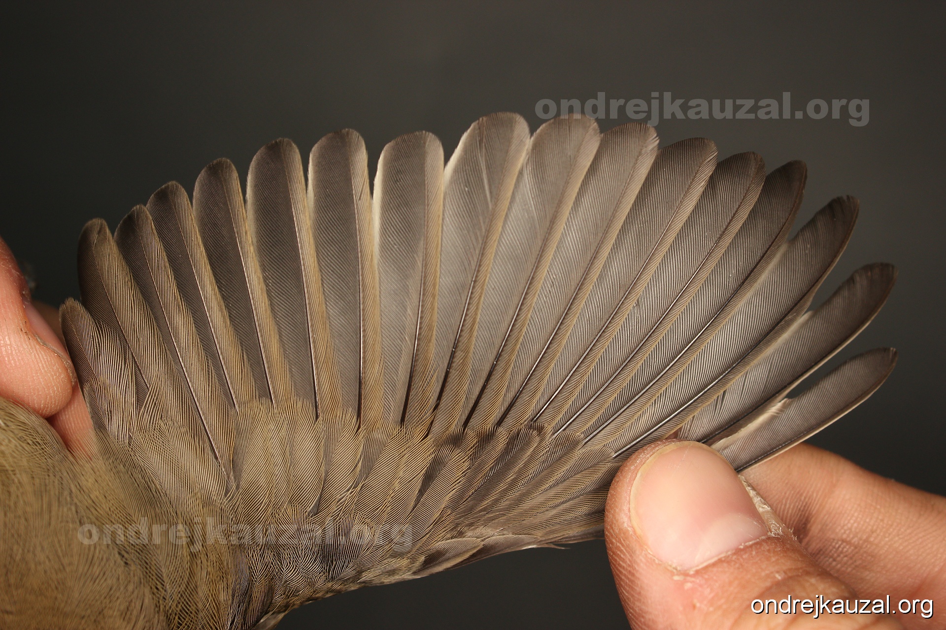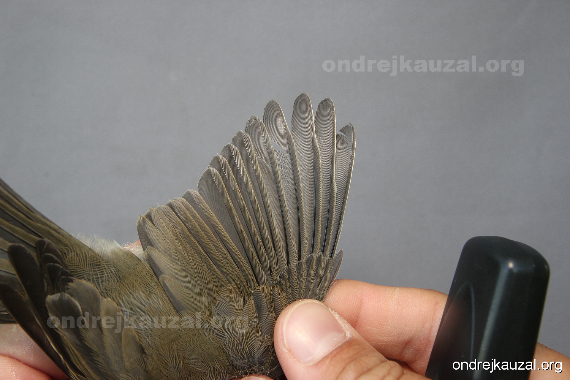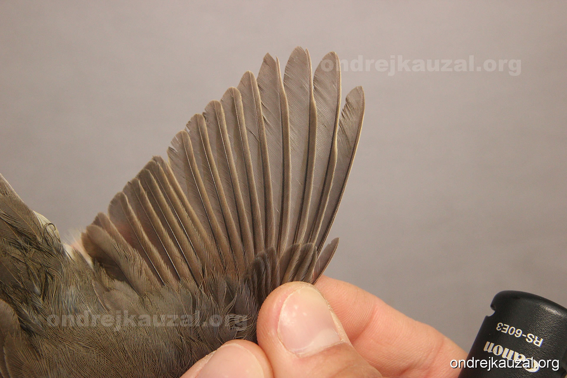 A bird showing nice fault bar across its remiges. While definitely not a good thing for the bird itself, such phenonema can aid in ageing. The uniform position of this bar from the wing indicates the wing feathers grew at the same time, i.e. on nest suggesting this bird is a young individual.