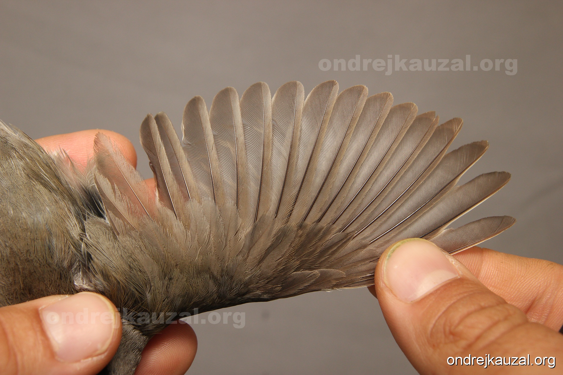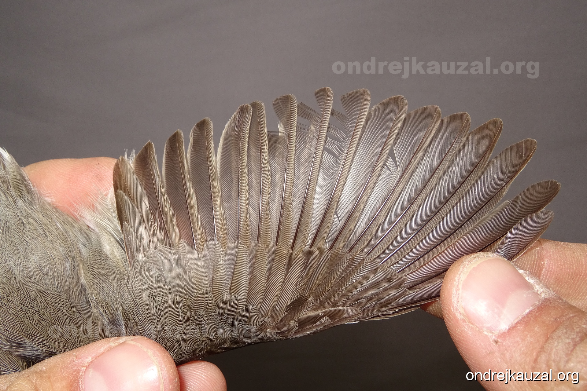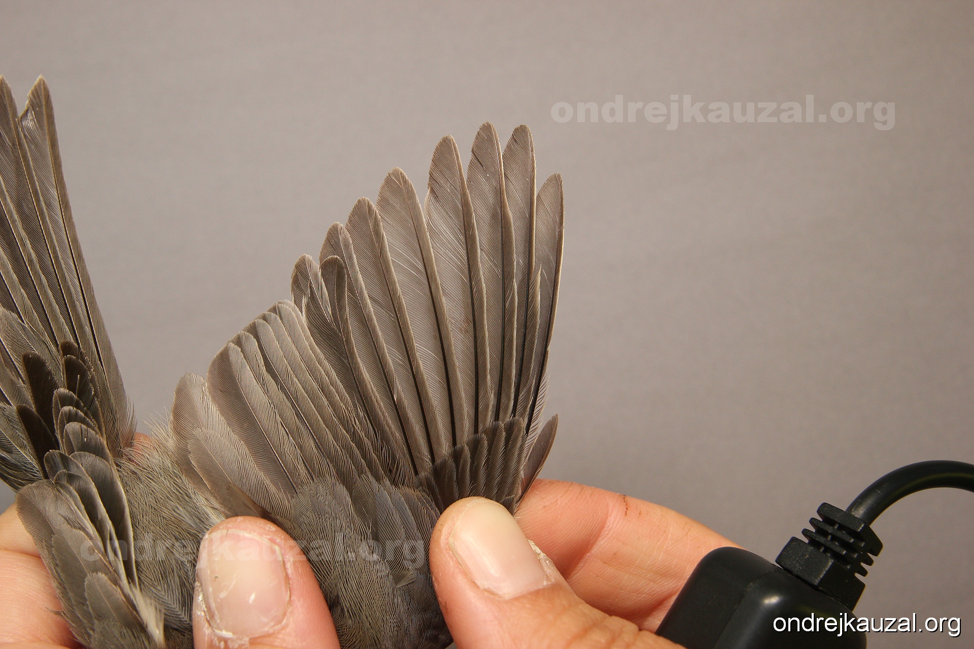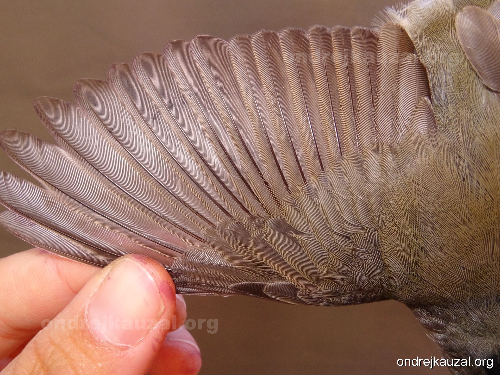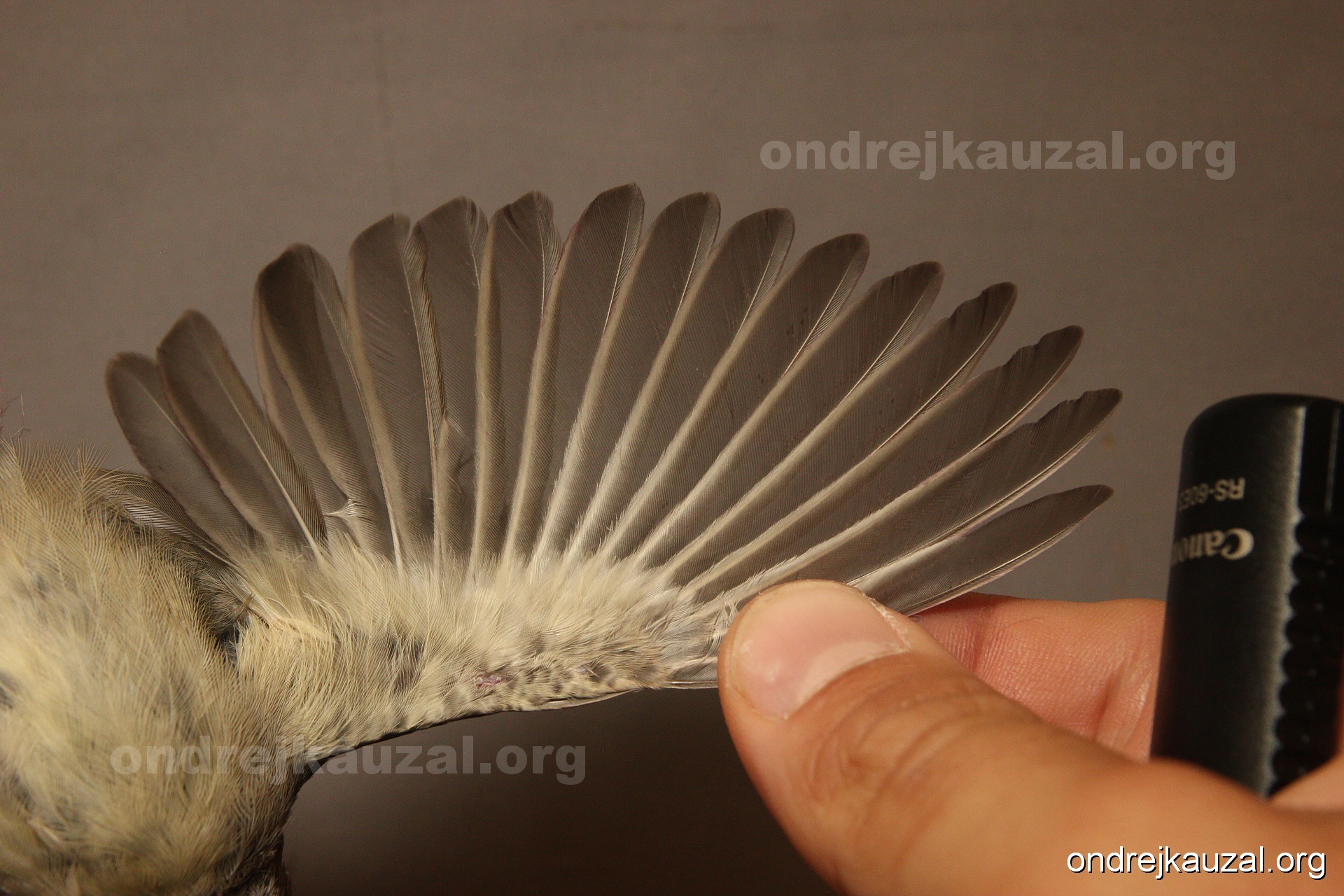 A bird showing nice fault bar across its remiges. While definitely not a good thing for the bird itself, such phenonema can aid in ageing. The uniform position of this bar from the wing indicates the wing feathers grew at the same time, i.e. on nest suggesting this bird is a young individual.
