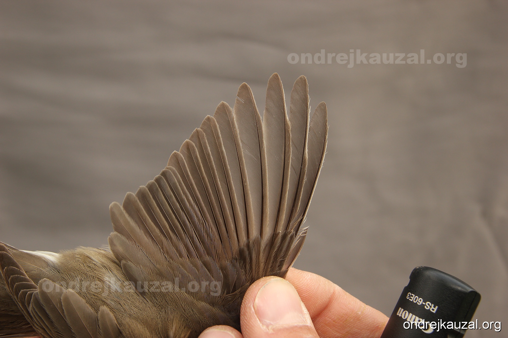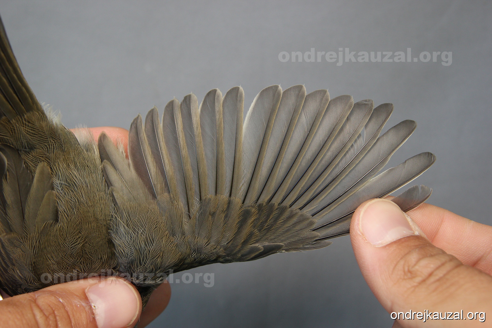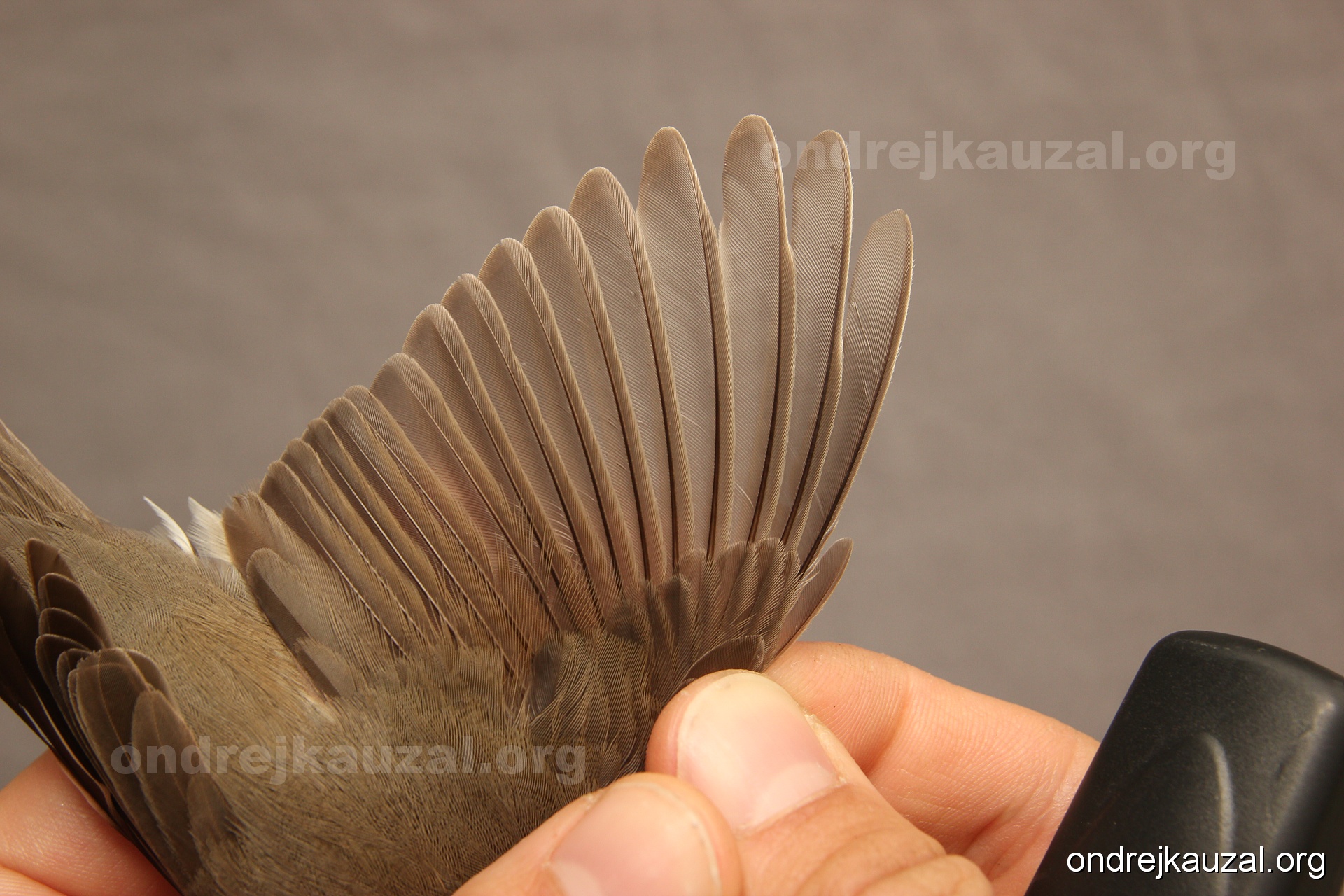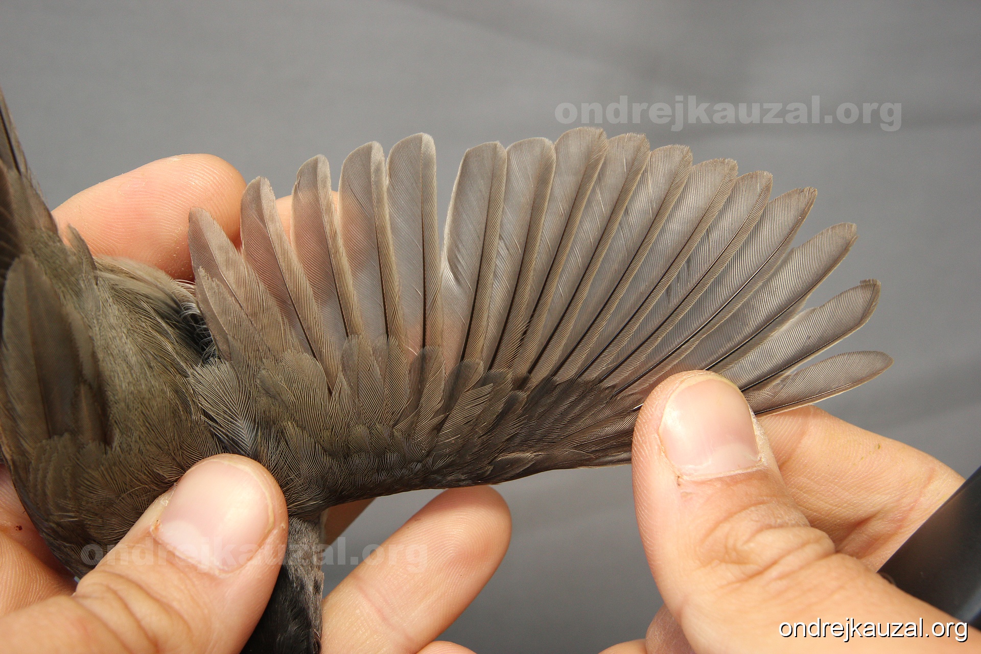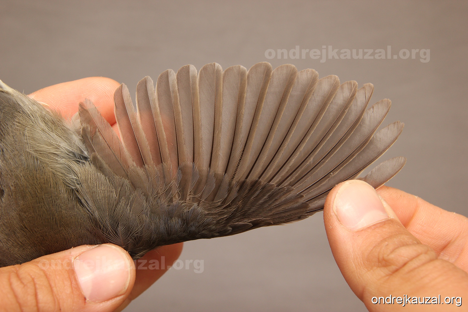A bird showing nice fault bar across its remiges. While definitely not a good thing for the bird itself, such phenonema can aid in ageing. The uniform position of this bar from the wing indicates the wing feathers grew at the same time, i.e. on nest suggesting this bird is a young individual.