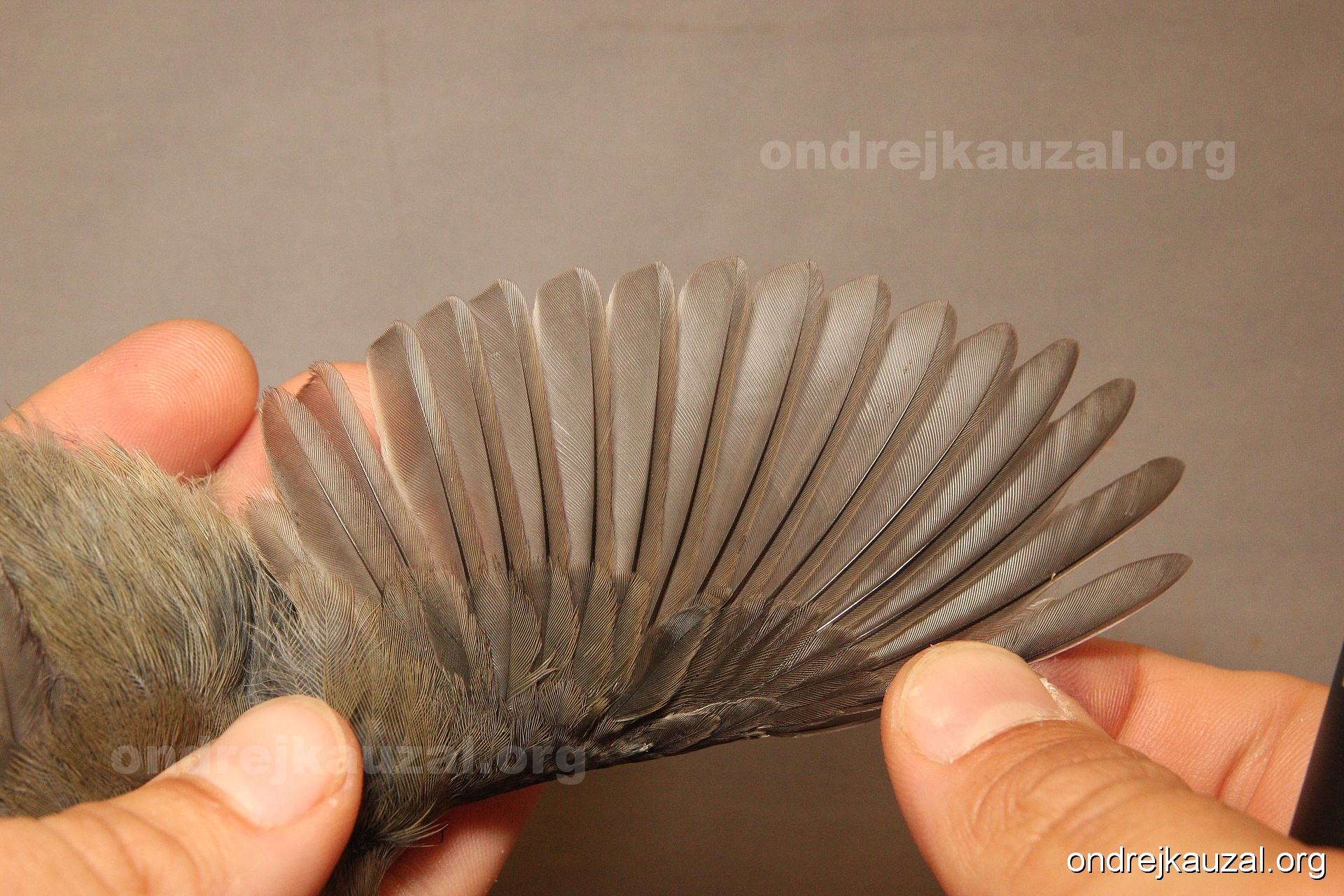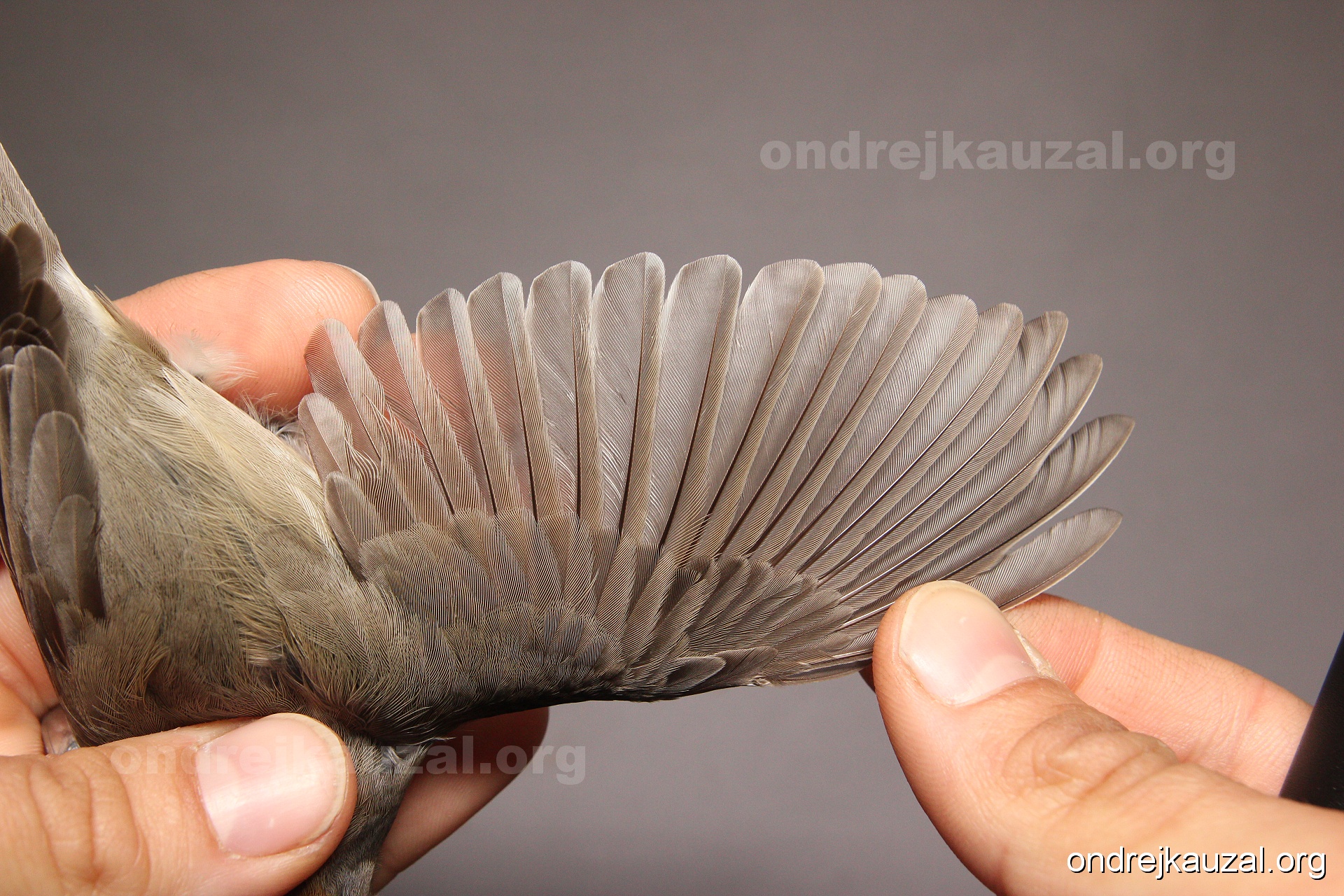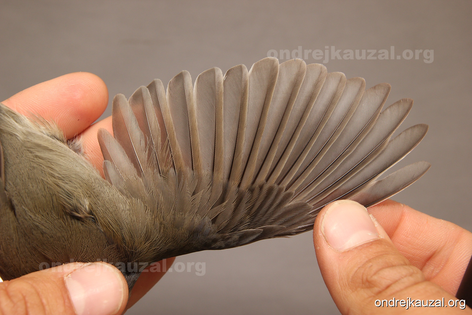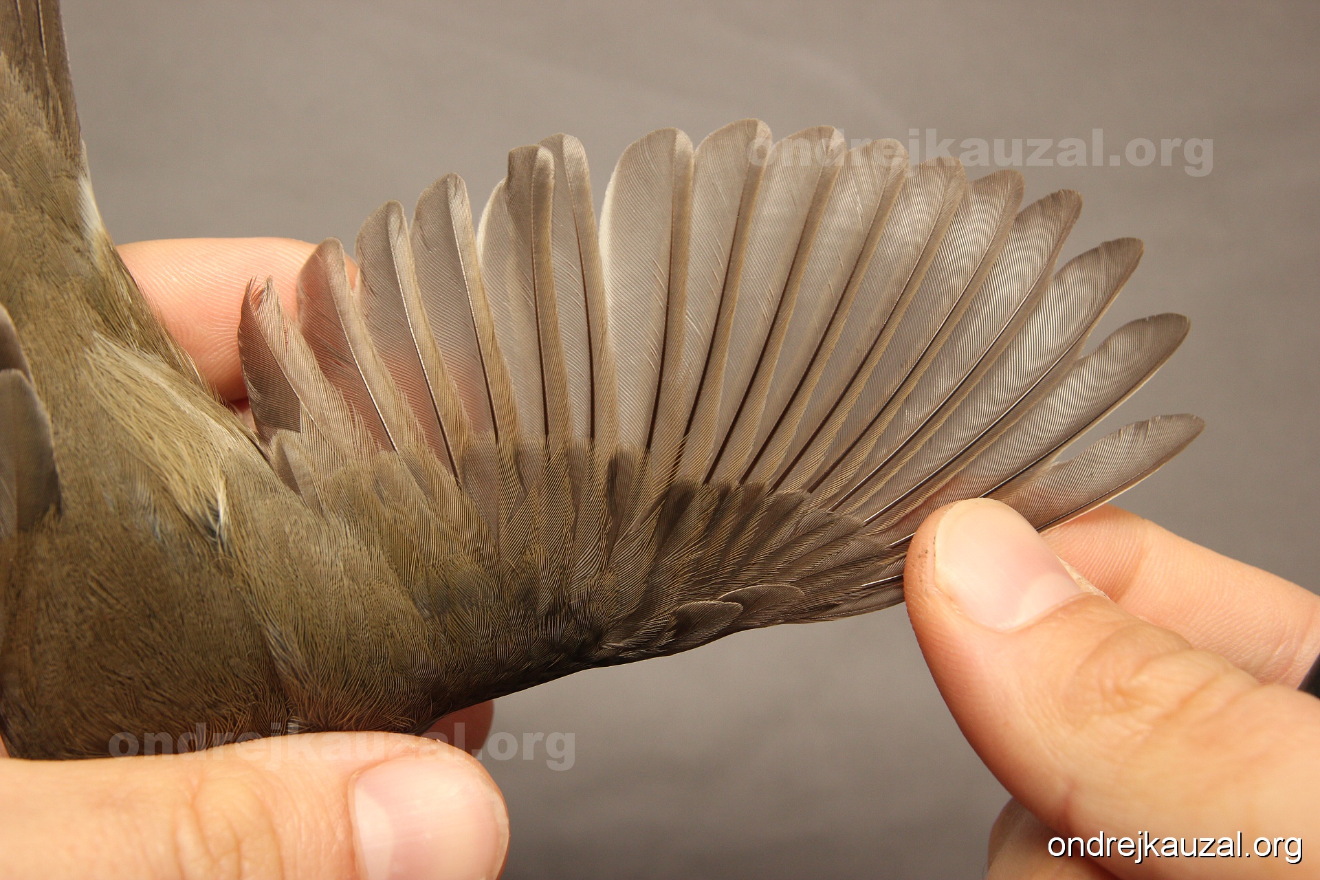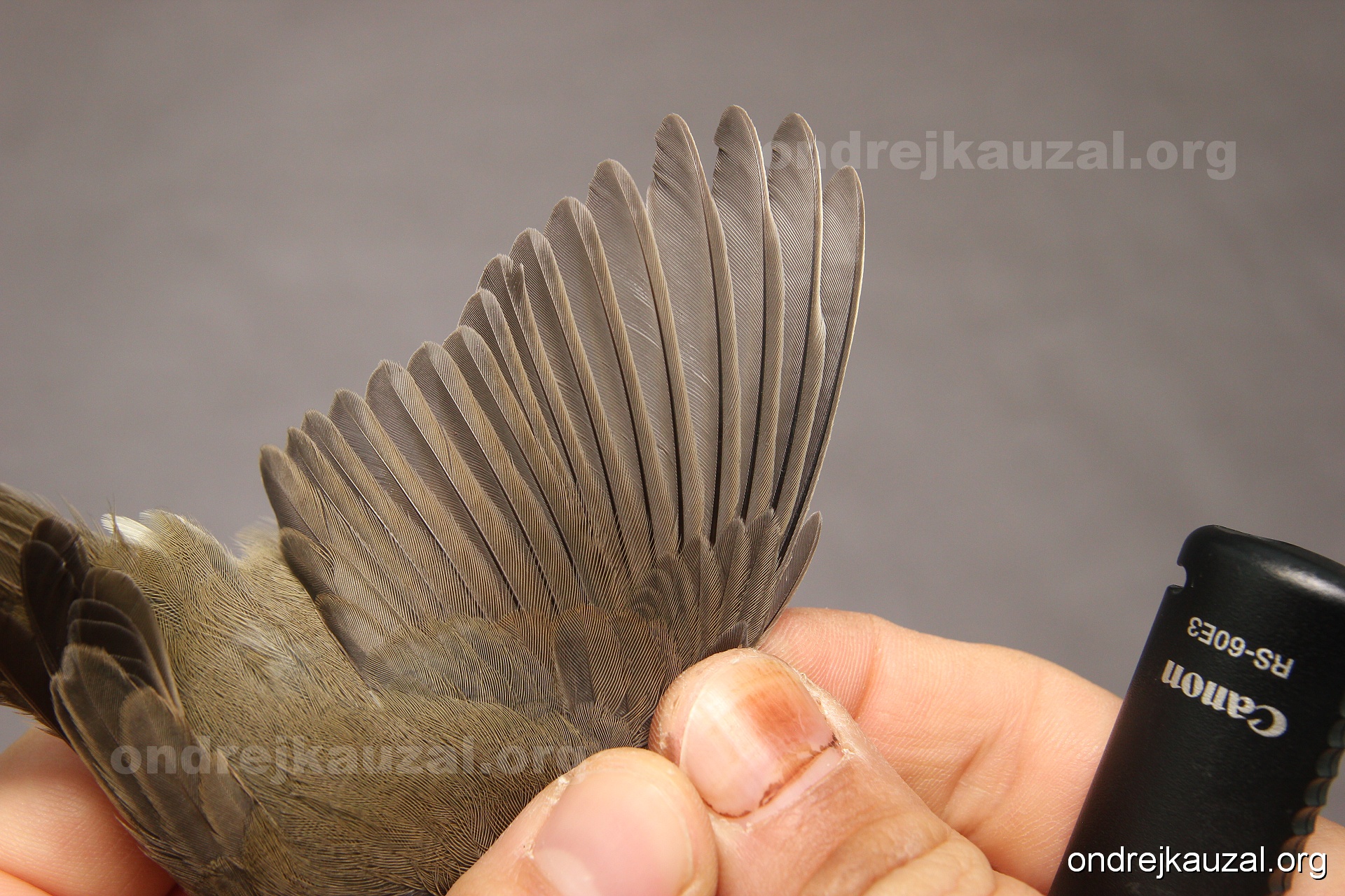 A bird showing nice fault bar across its remiges. While definitely not a good thing for the bird itself, such phenonema can aid in ageing. The uniform position of this bar from the wing indicates the wing feathers grew at the same time, i.e. on nest suggesting this bird is a young individual.