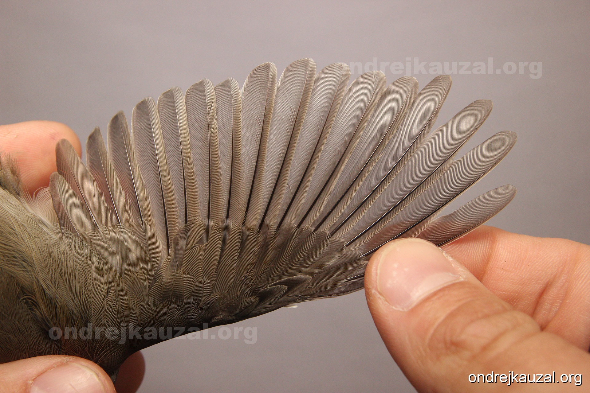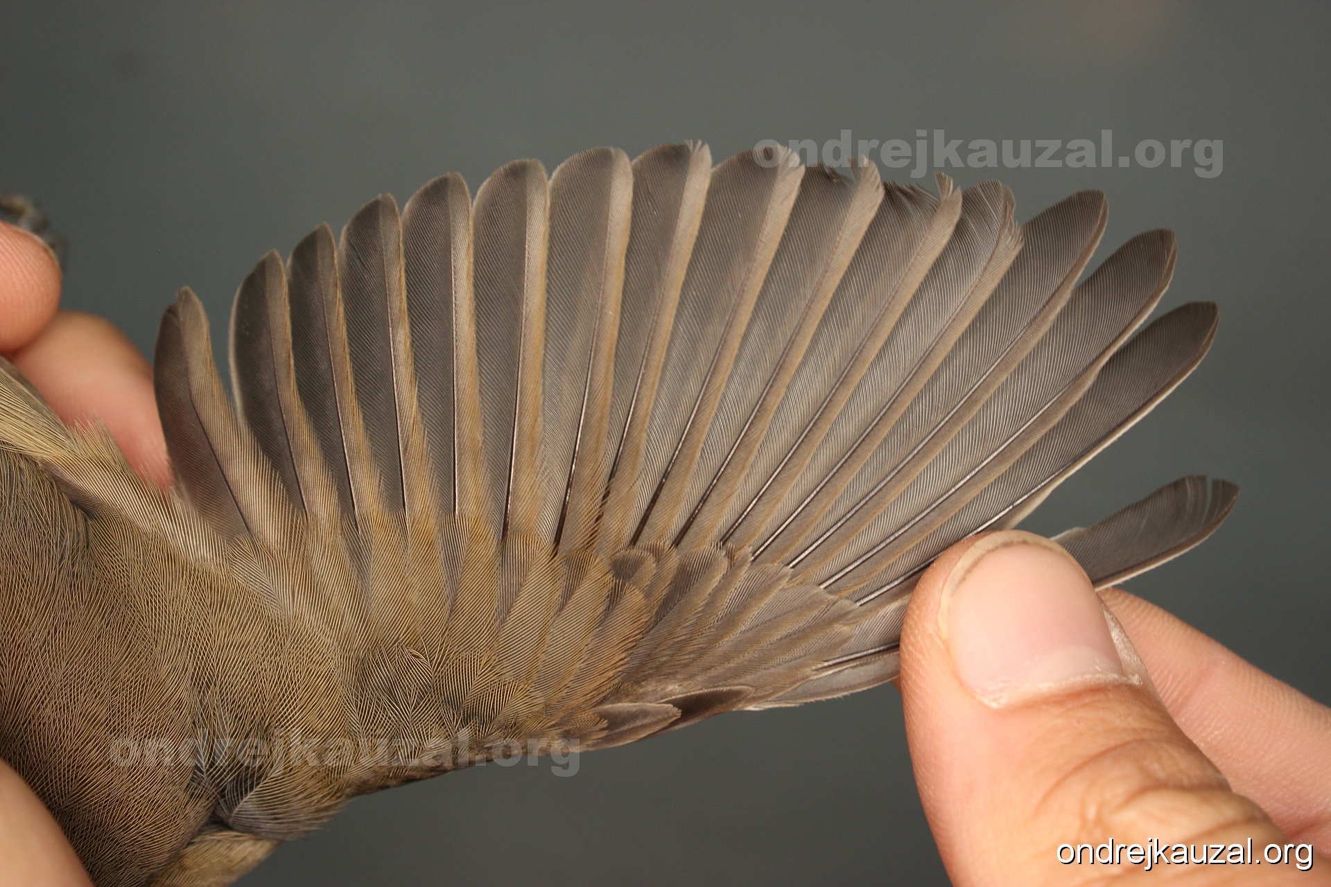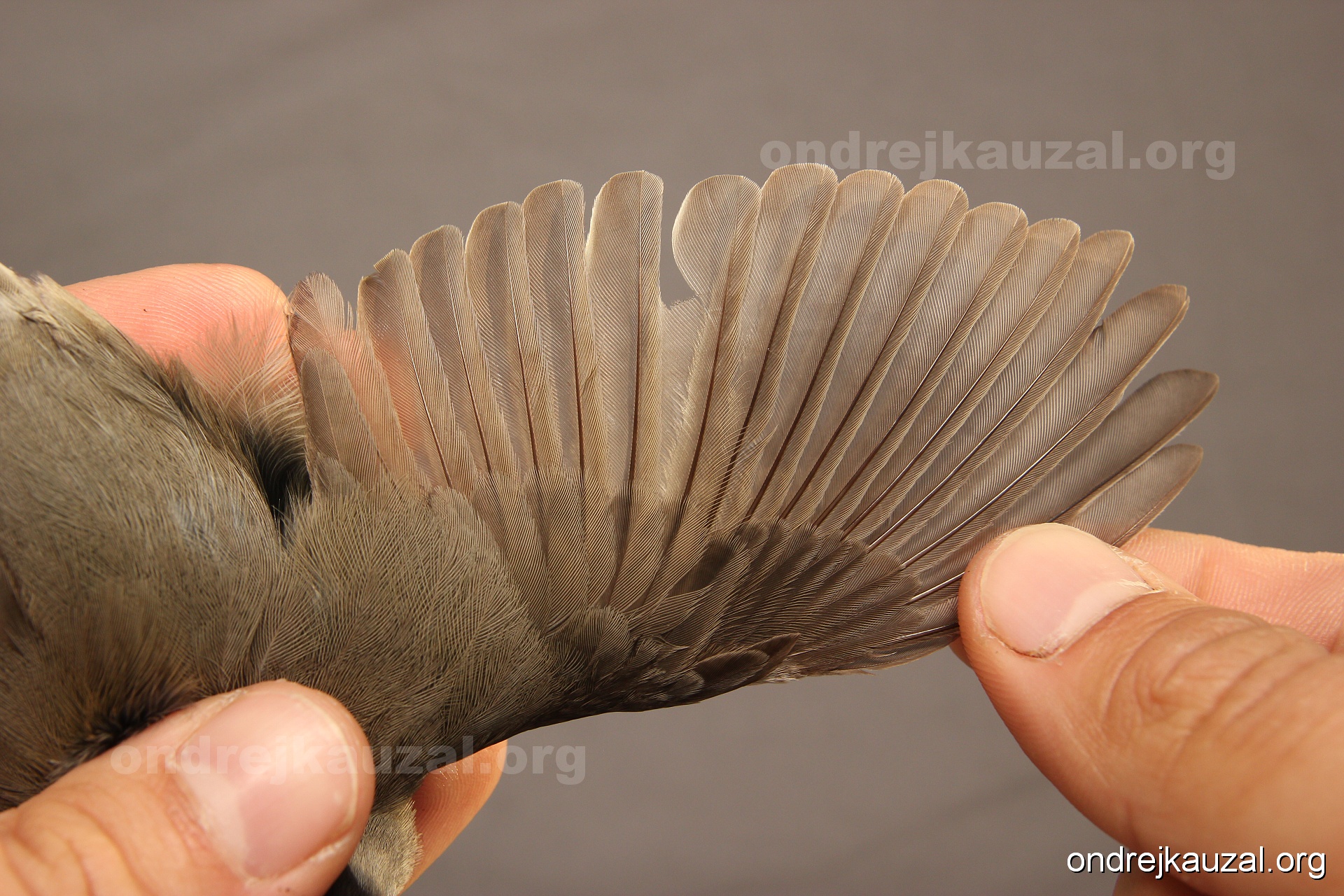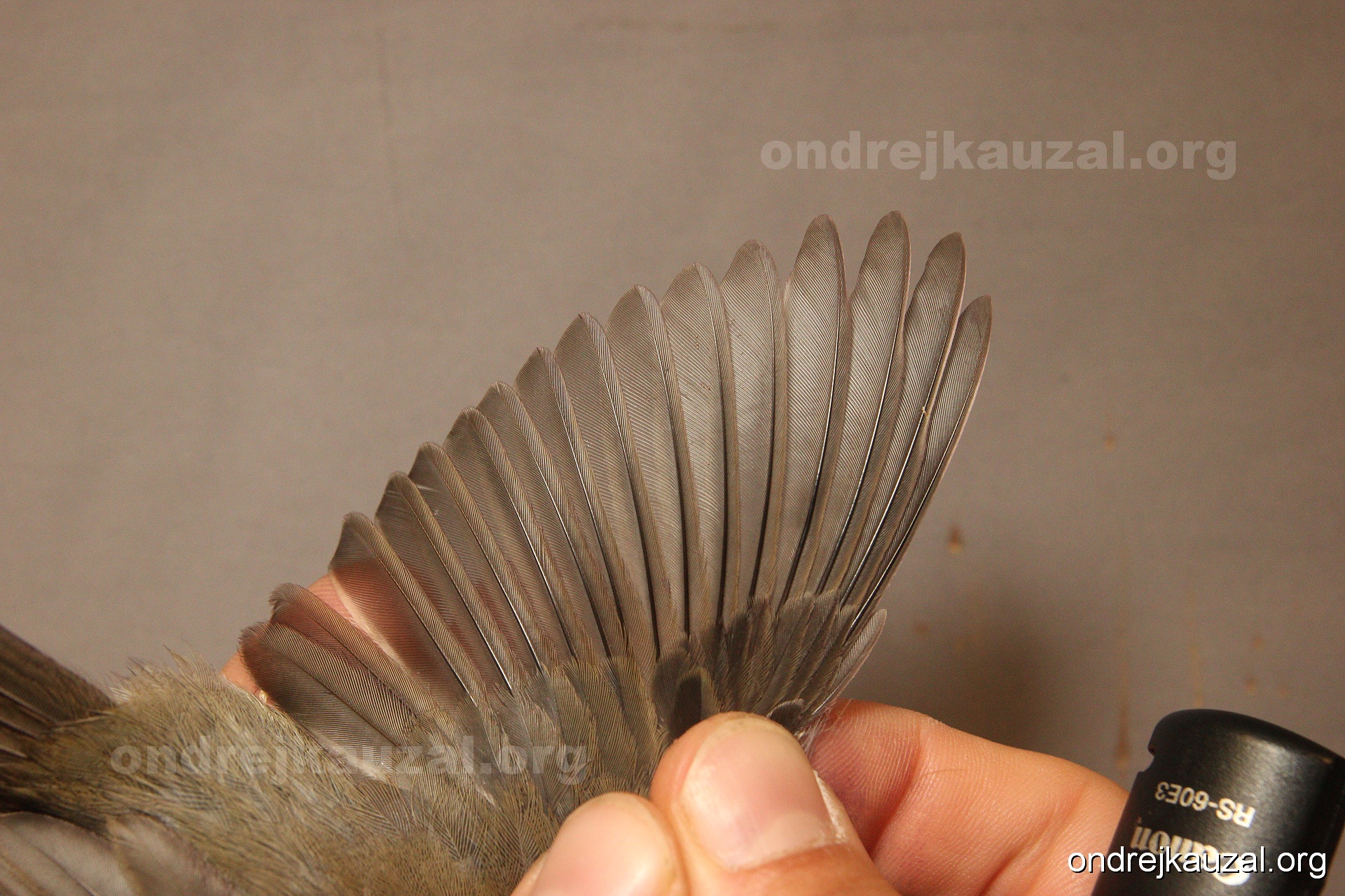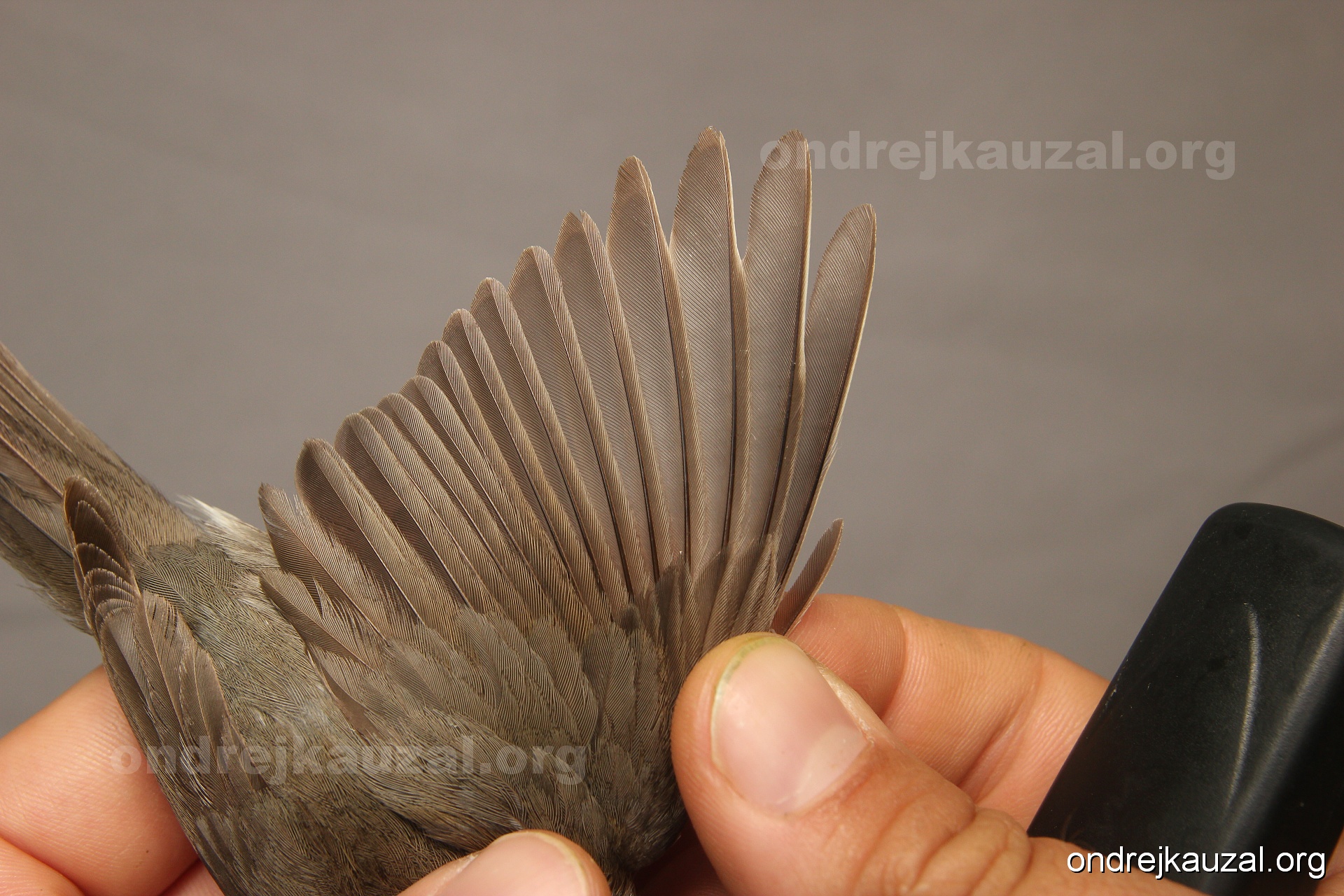 A bird showing nice fault bar across its remiges. While definitely not a good thing for the bird itself, such phenonema can aid in ageing. The uniform position of this bar from the wing indicates the wing feathers grew at the same time, i.e. on nest suggesting this bird is a young individual.