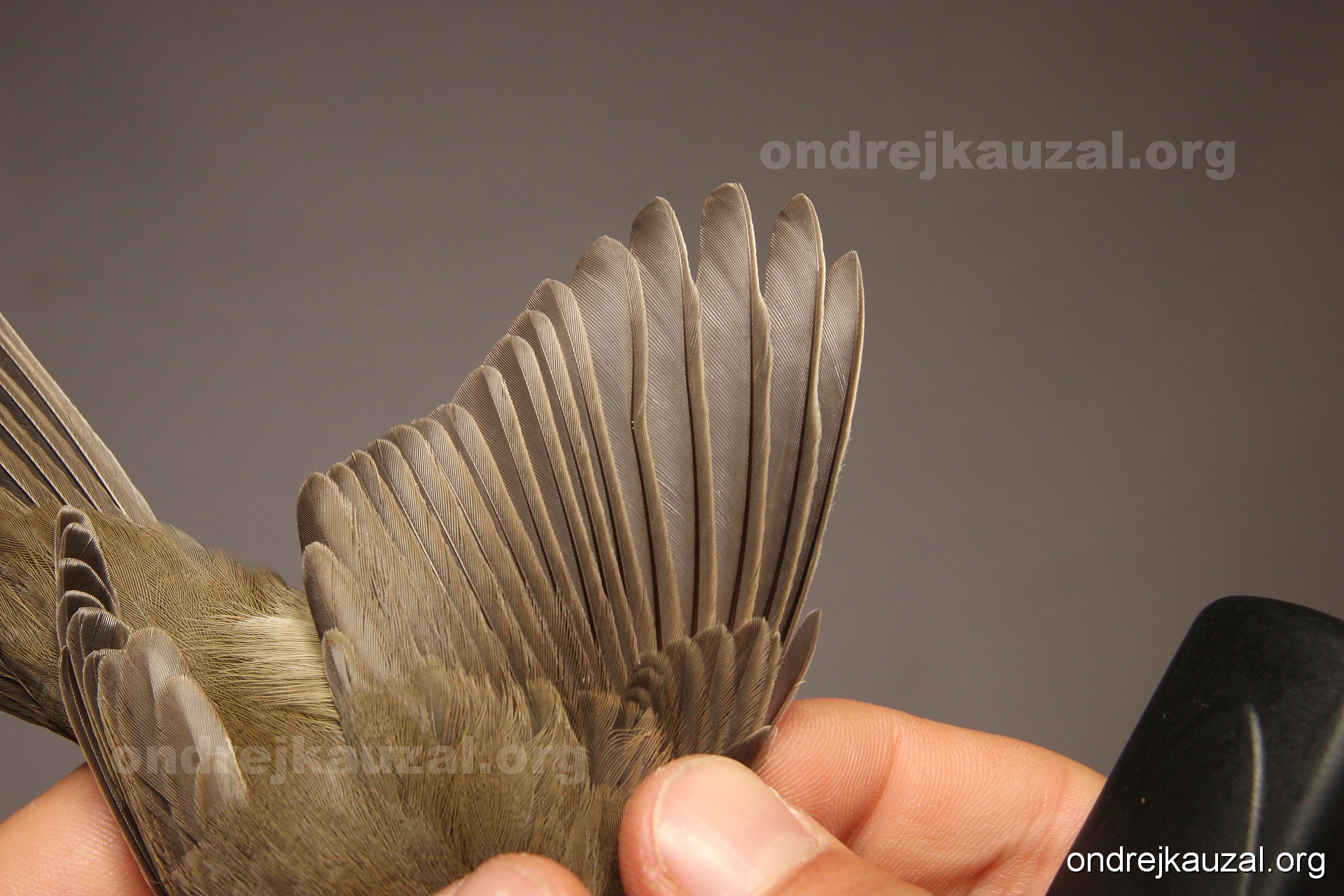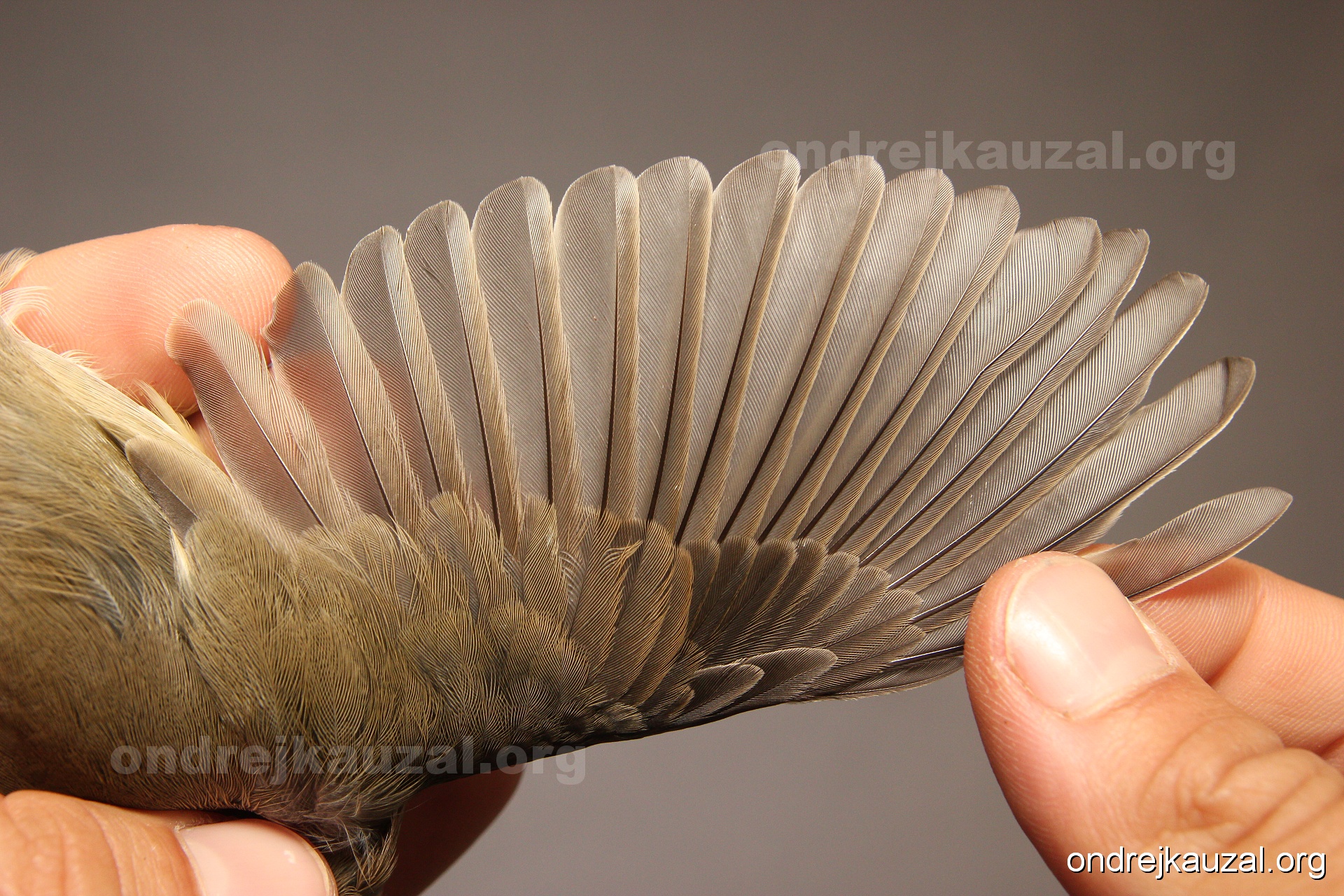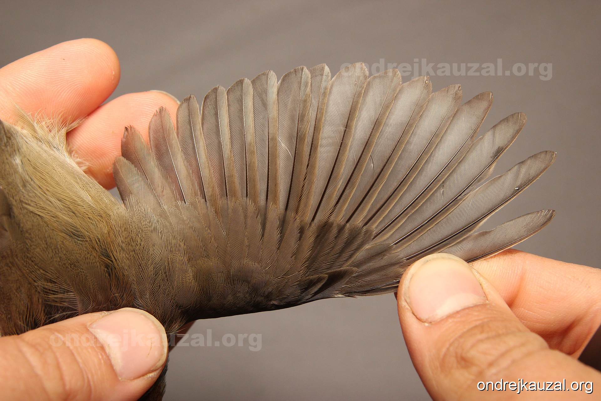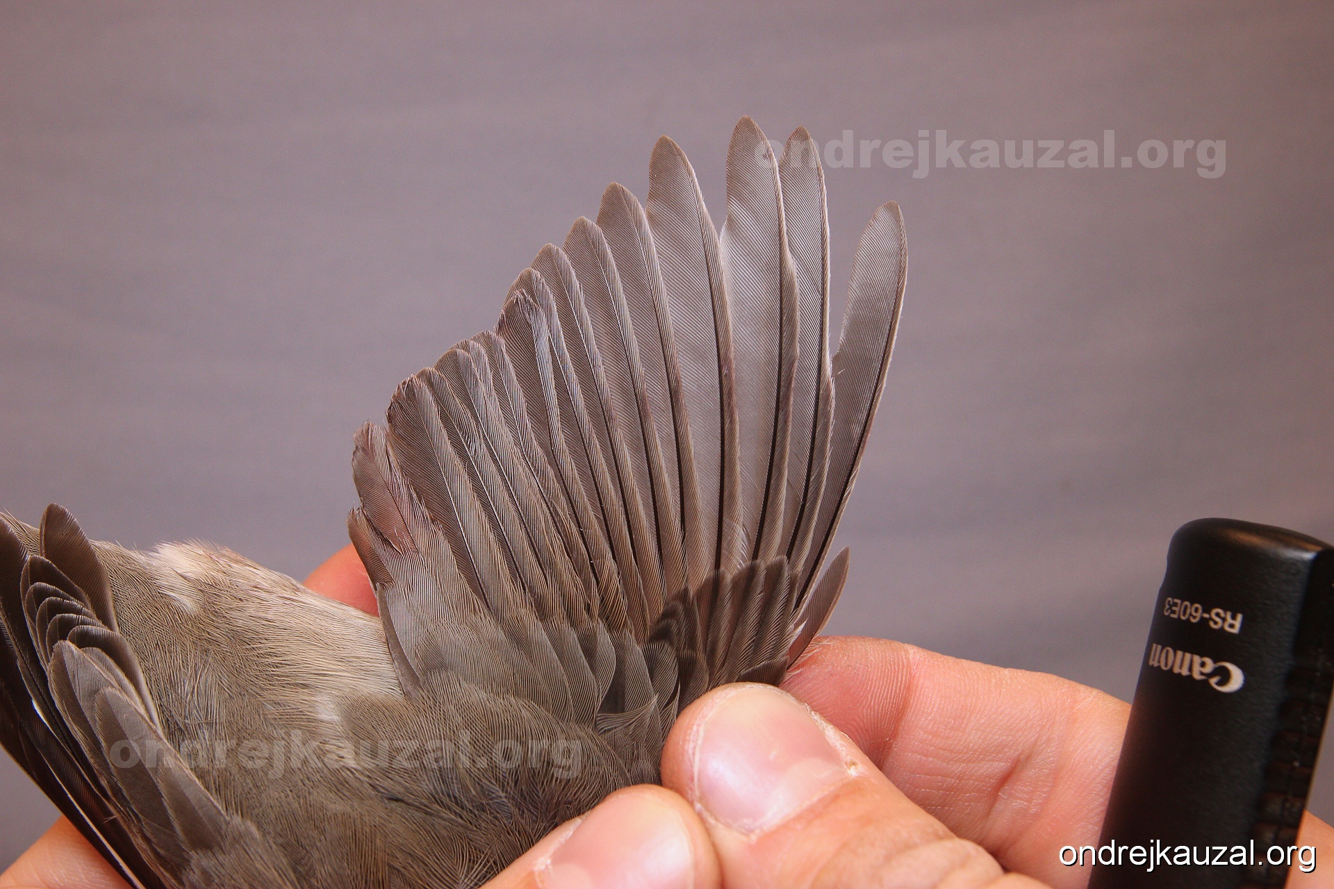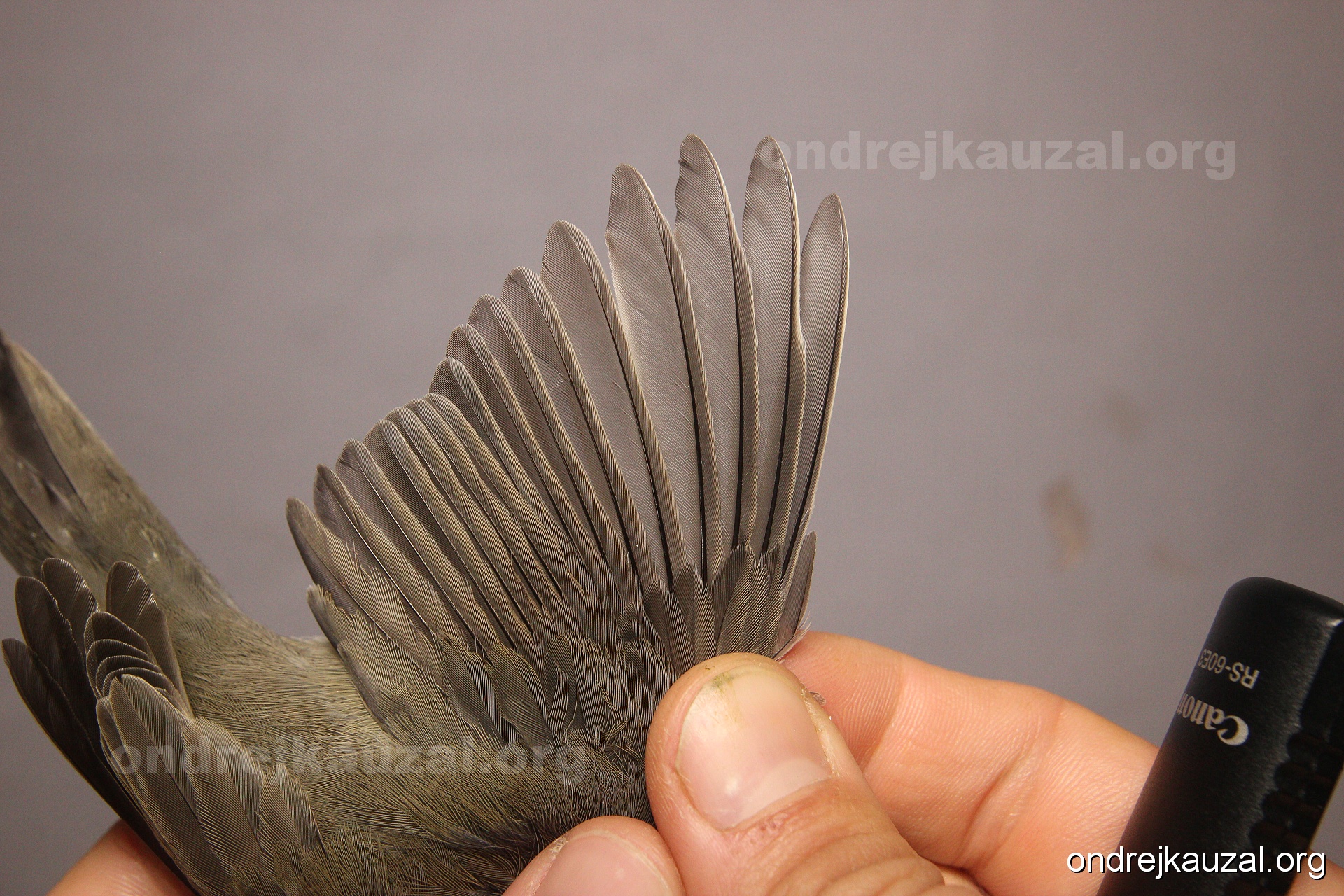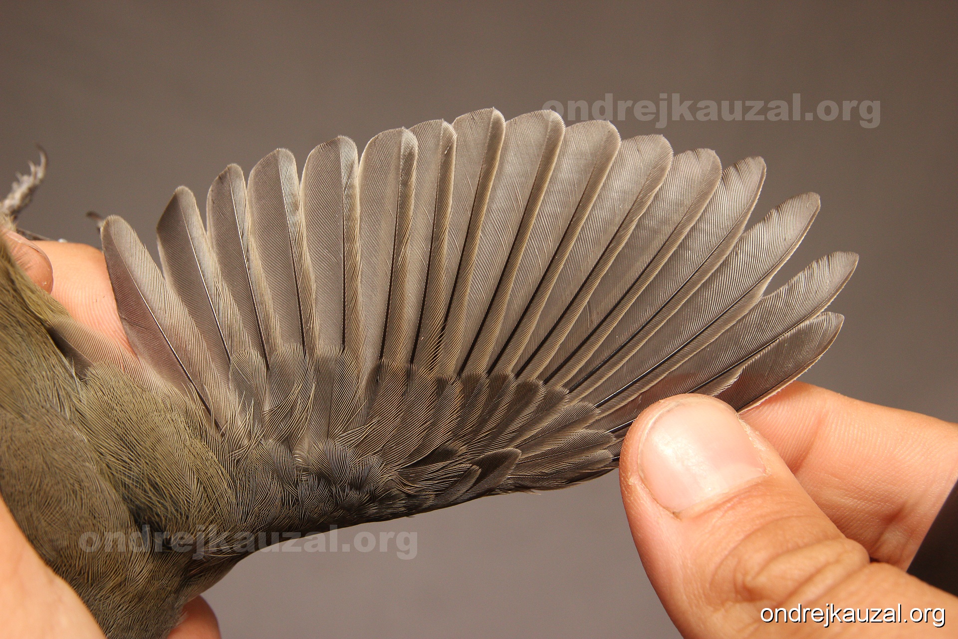 A bird showing nice fault bar across its remiges. While definitely not a good thing for the bird itself, such phenonema can aid in ageing. The uniform position of this bar from the wing indicates the wing feathers grew at the same time, i.e. on nest suggesting this bird is a young individual.