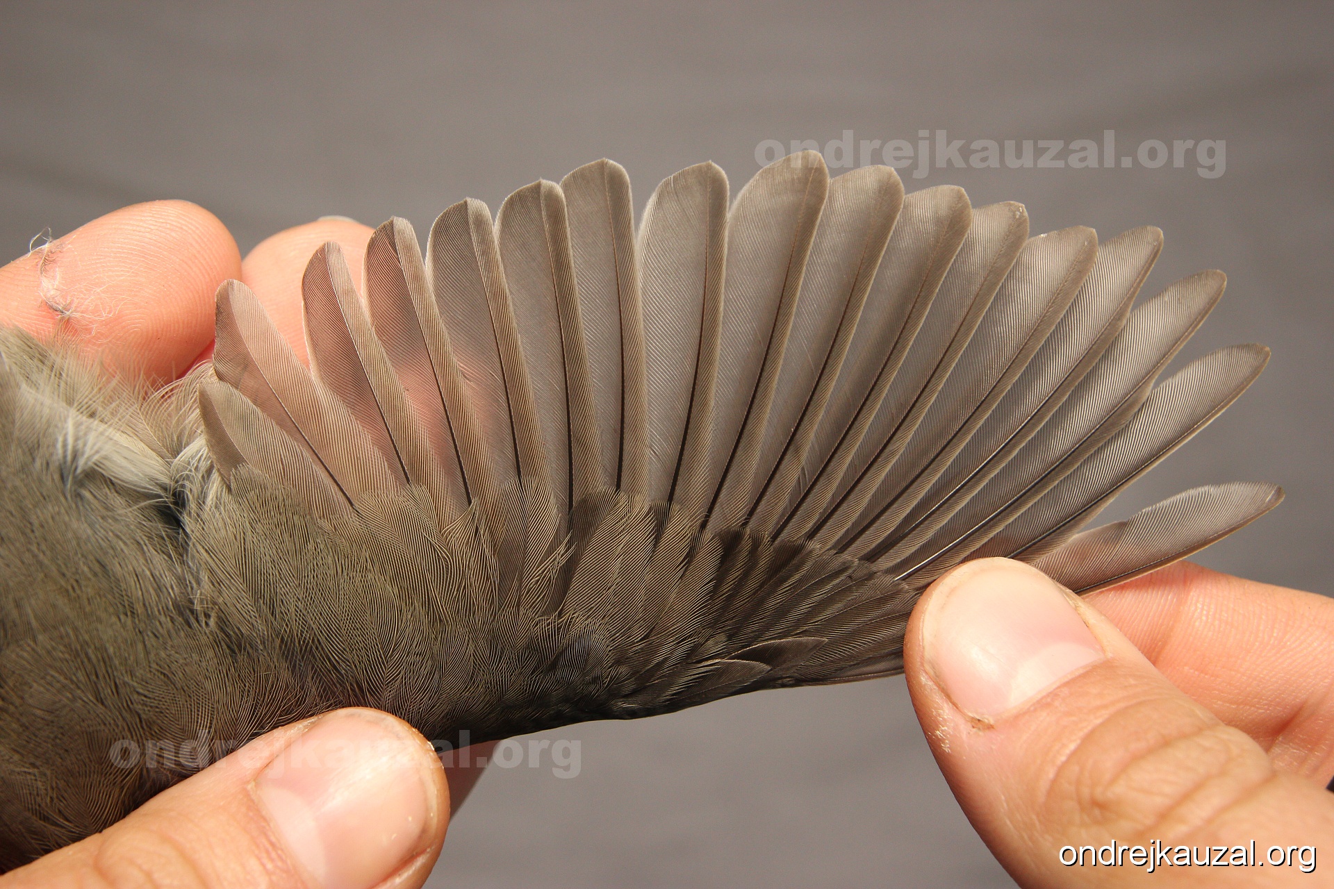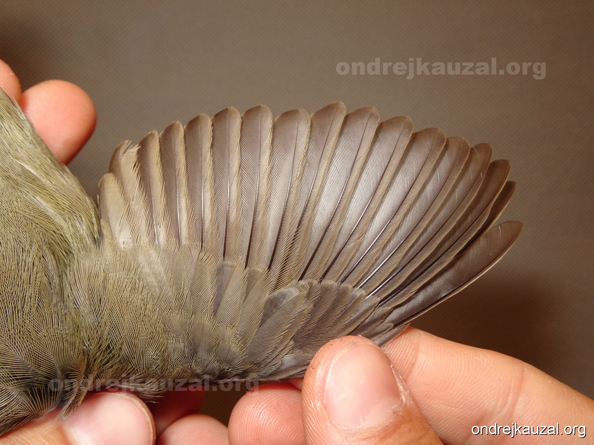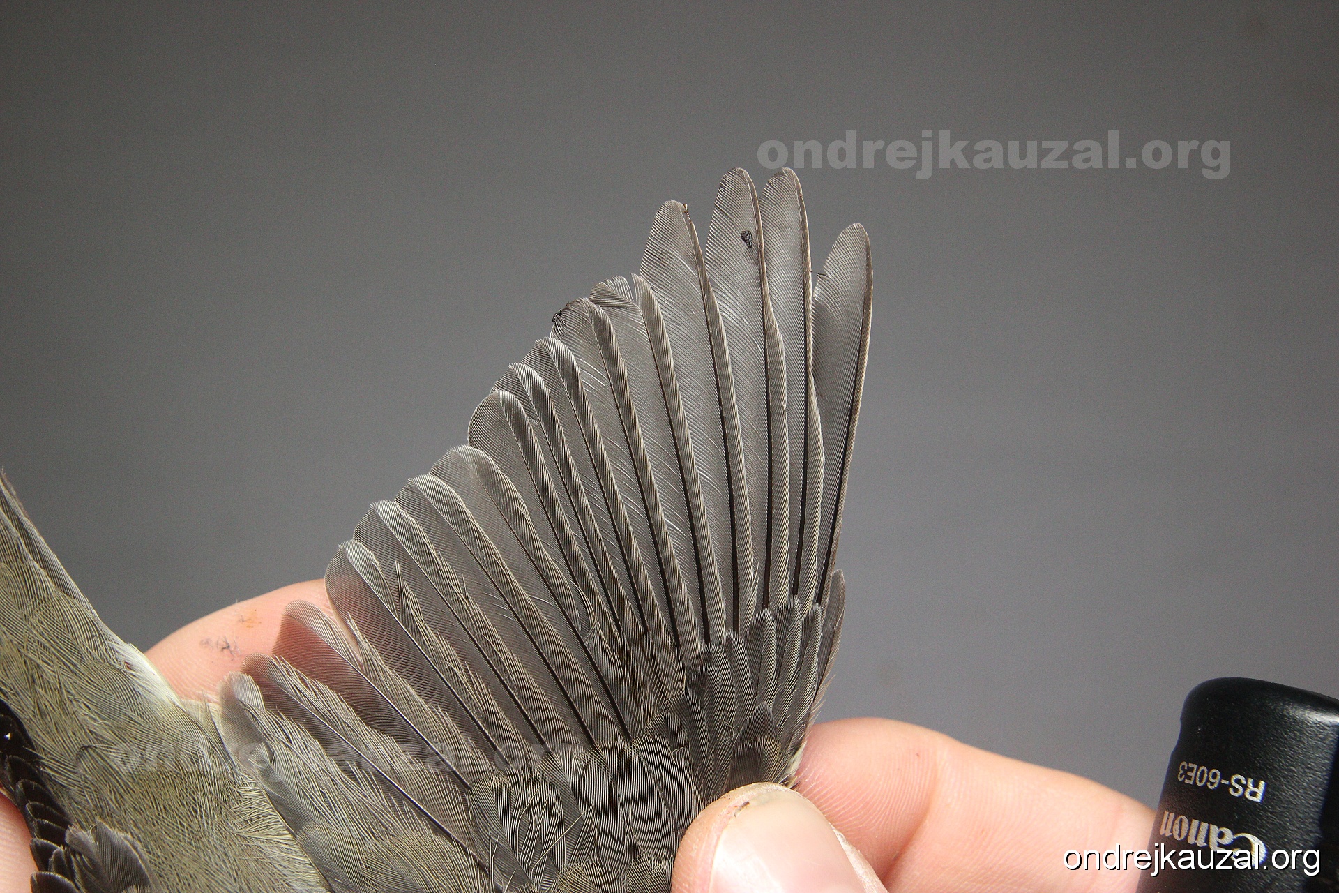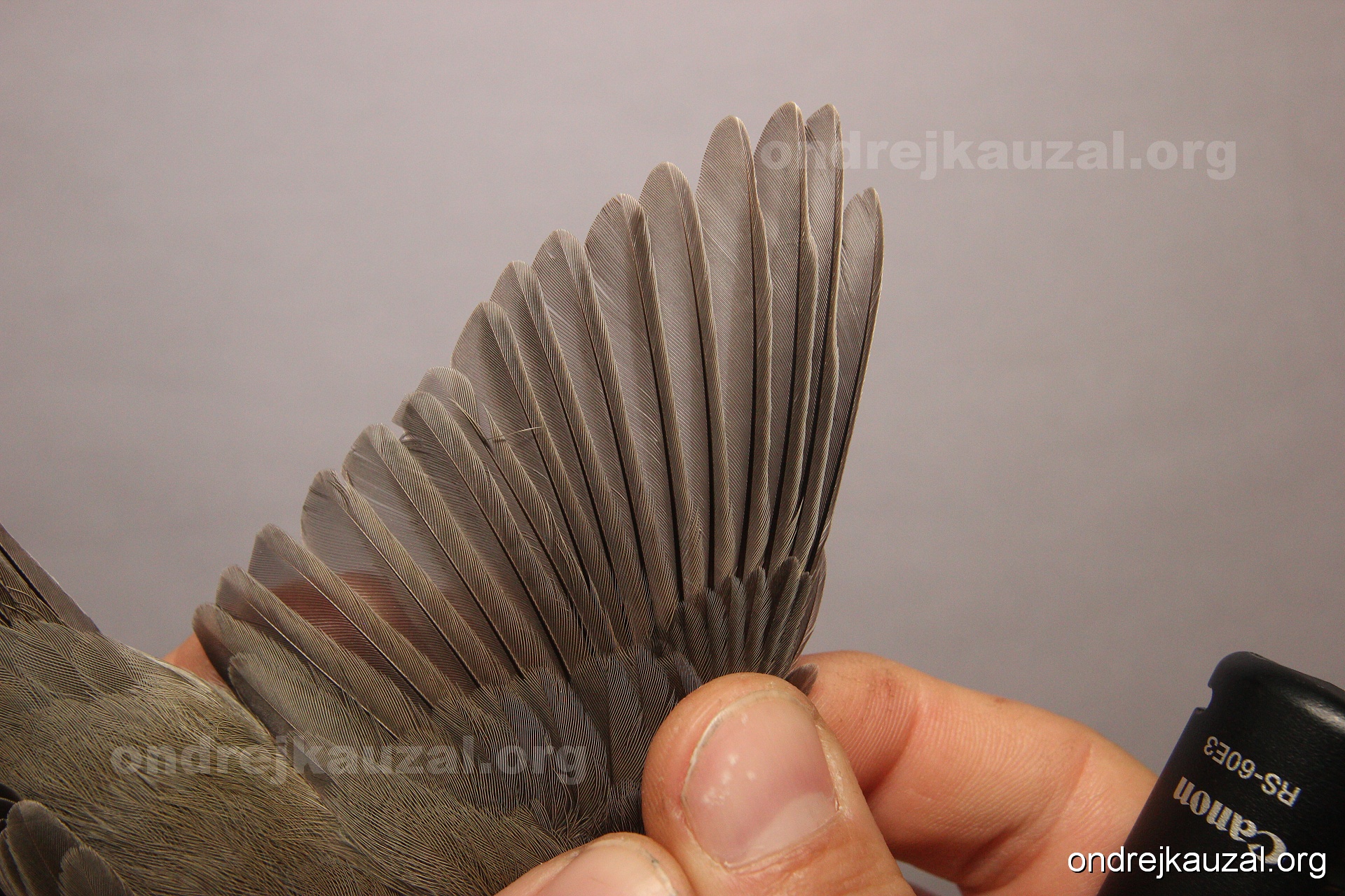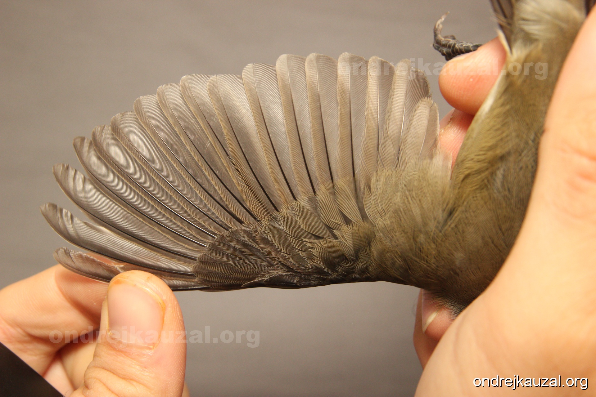 A bird showing nice fault bar across its remiges. While definitely not a good thing for the bird itself, such phenonema can aid in ageing. The uniform position of this bar from the wing indicates the wing feathers grew at the same time, i.e. on nest suggesting this bird is a young individual.