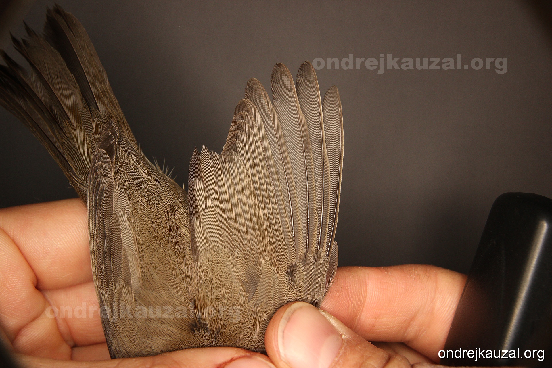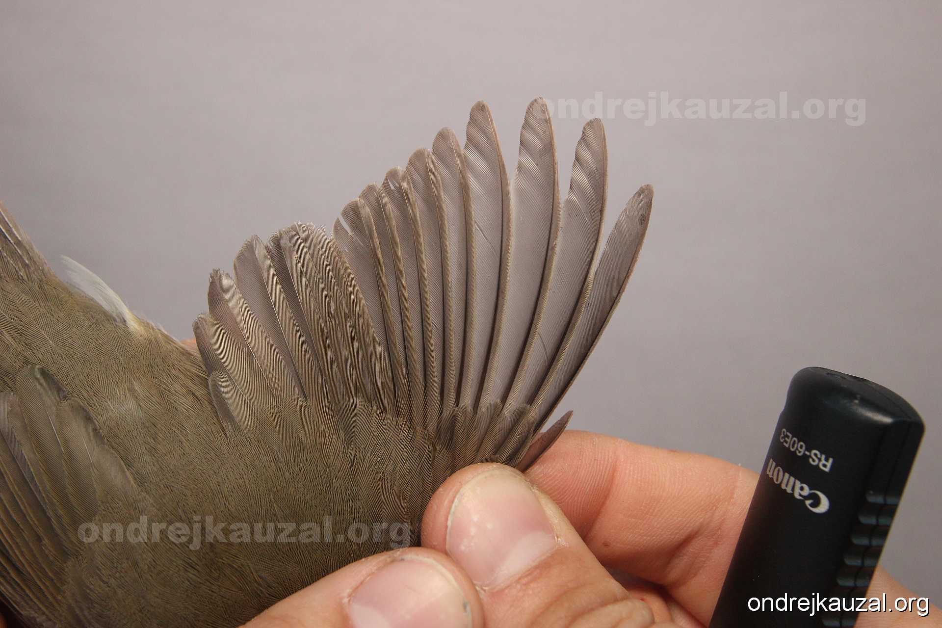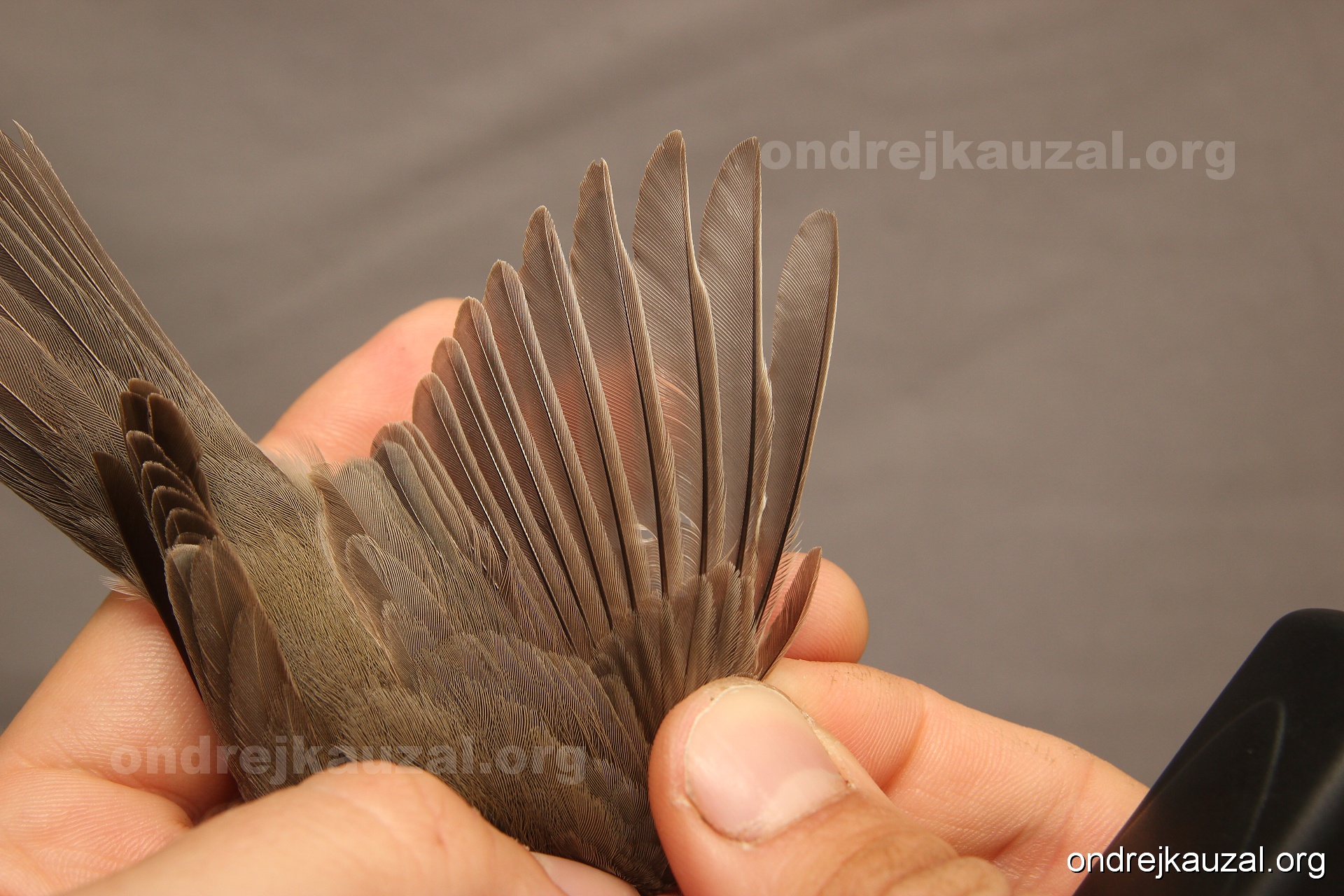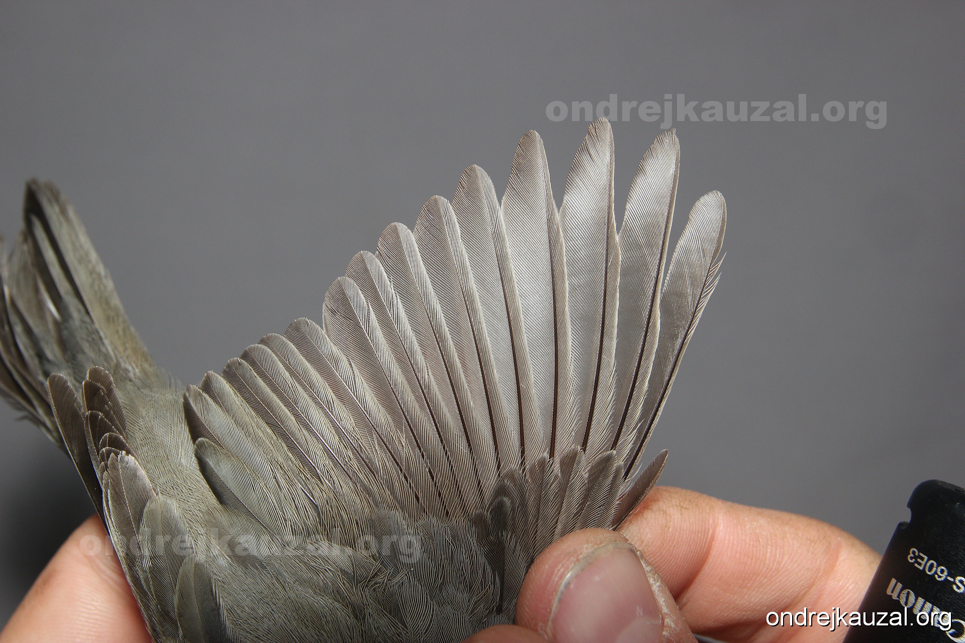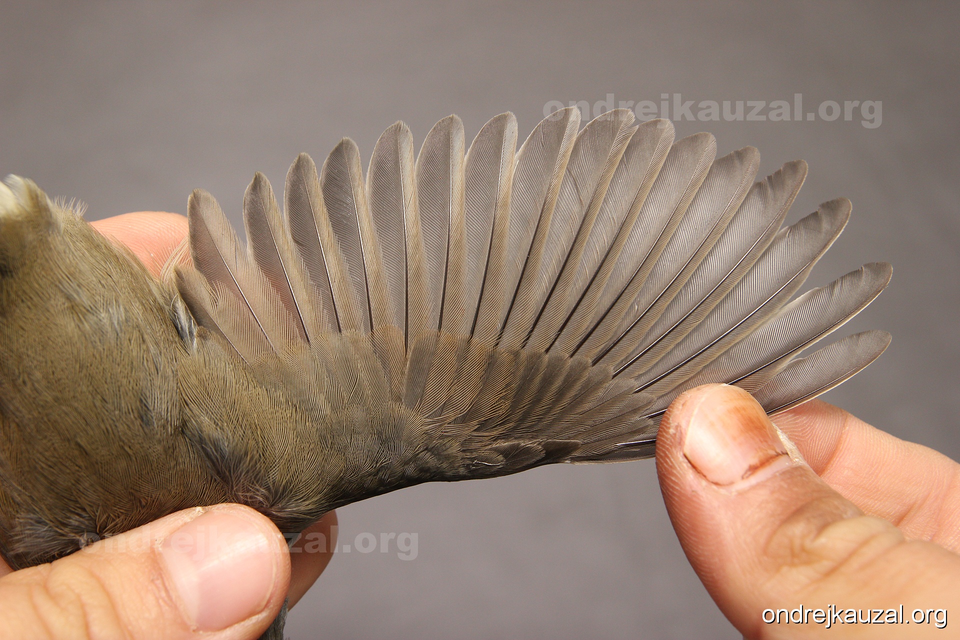 A bird showing nice fault bar across its remiges. While definitely not a good thing for the bird itself, such phenonema can aid in ageing. The uniform position of this bar from the wing indicates the wing feathers grew at the same time, i.e. on nest suggesting this bird is a young individual.