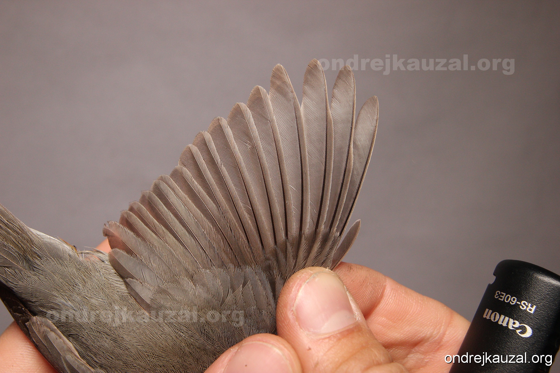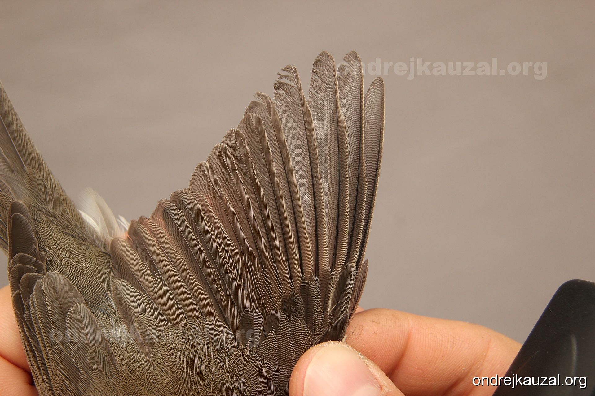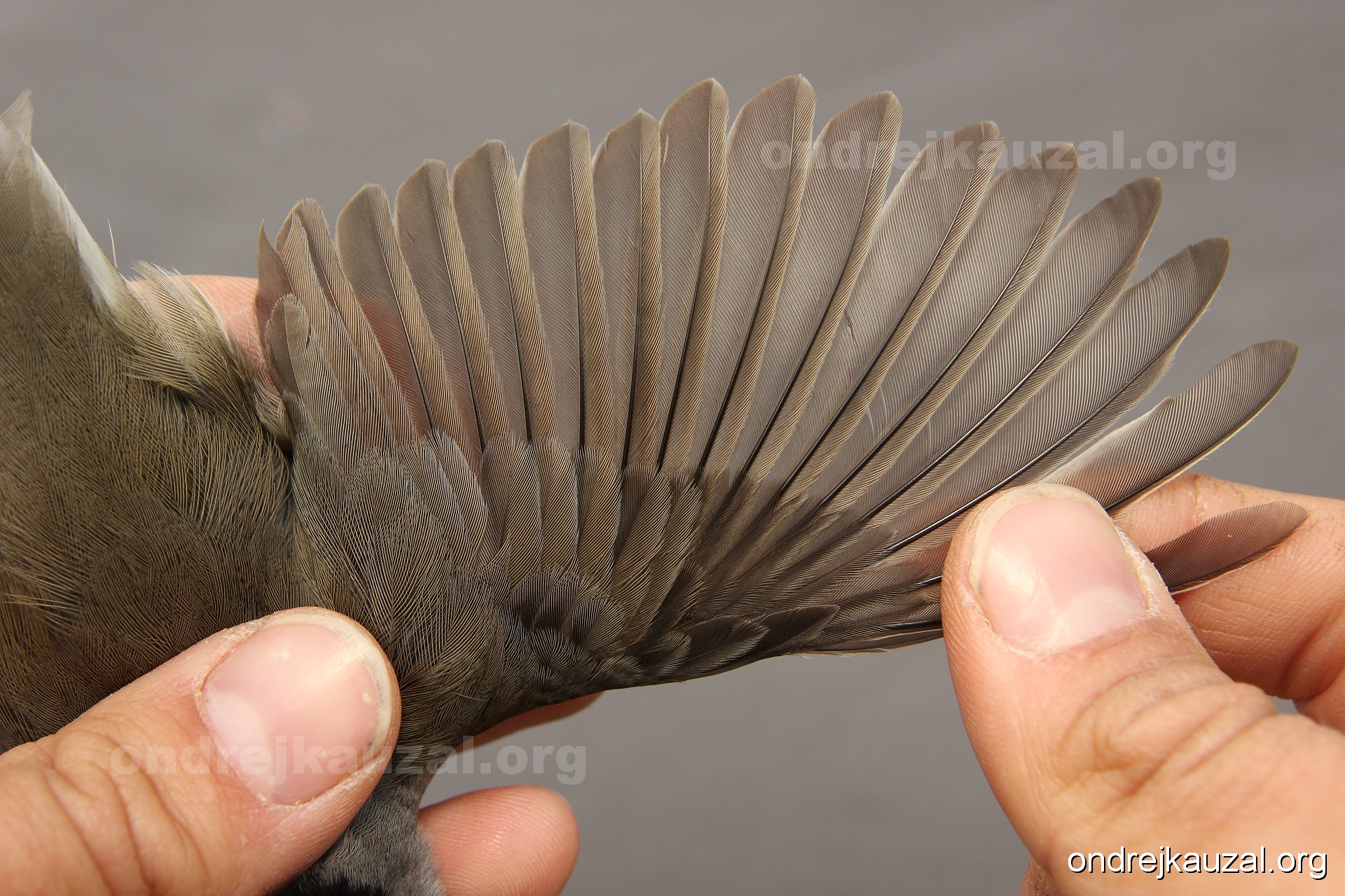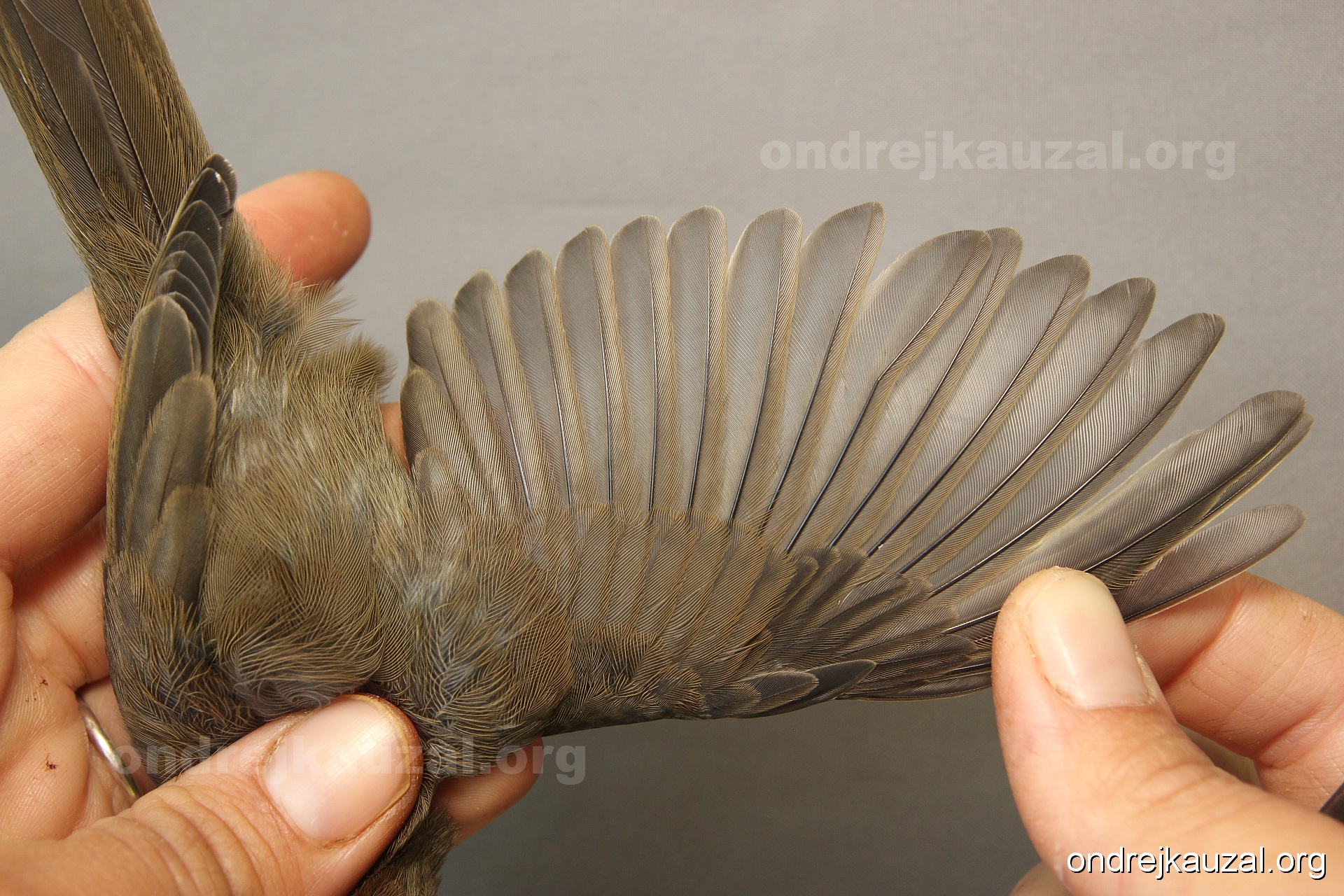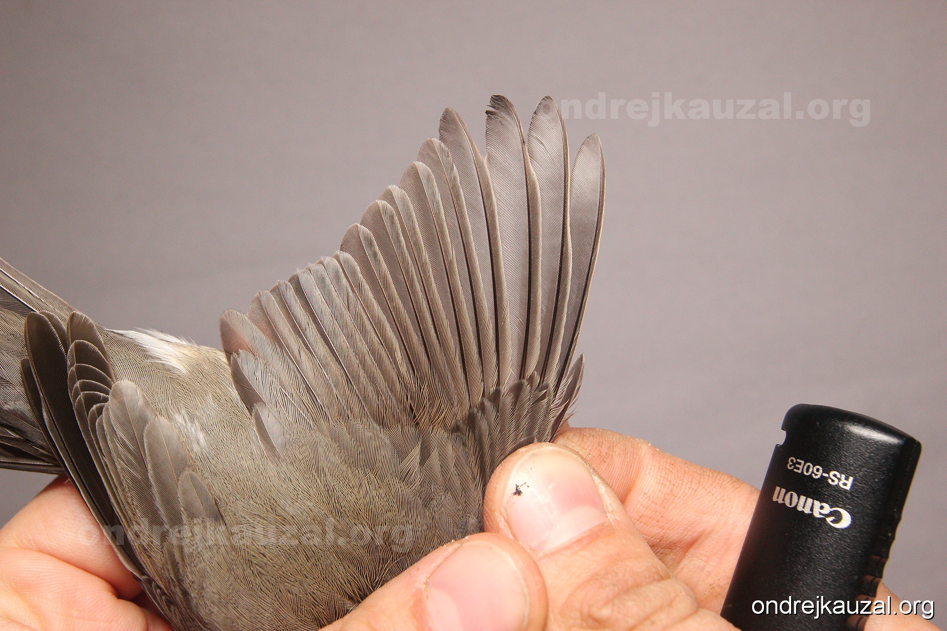 A bird showing nice fault bar across its remiges. While definitely not a good thing for the bird itself, such phenonema can aid in ageing. The uniform position of this bar from the wing indicates the wing feathers grew at the same time, i.e. on nest suggesting this bird is a young individual.