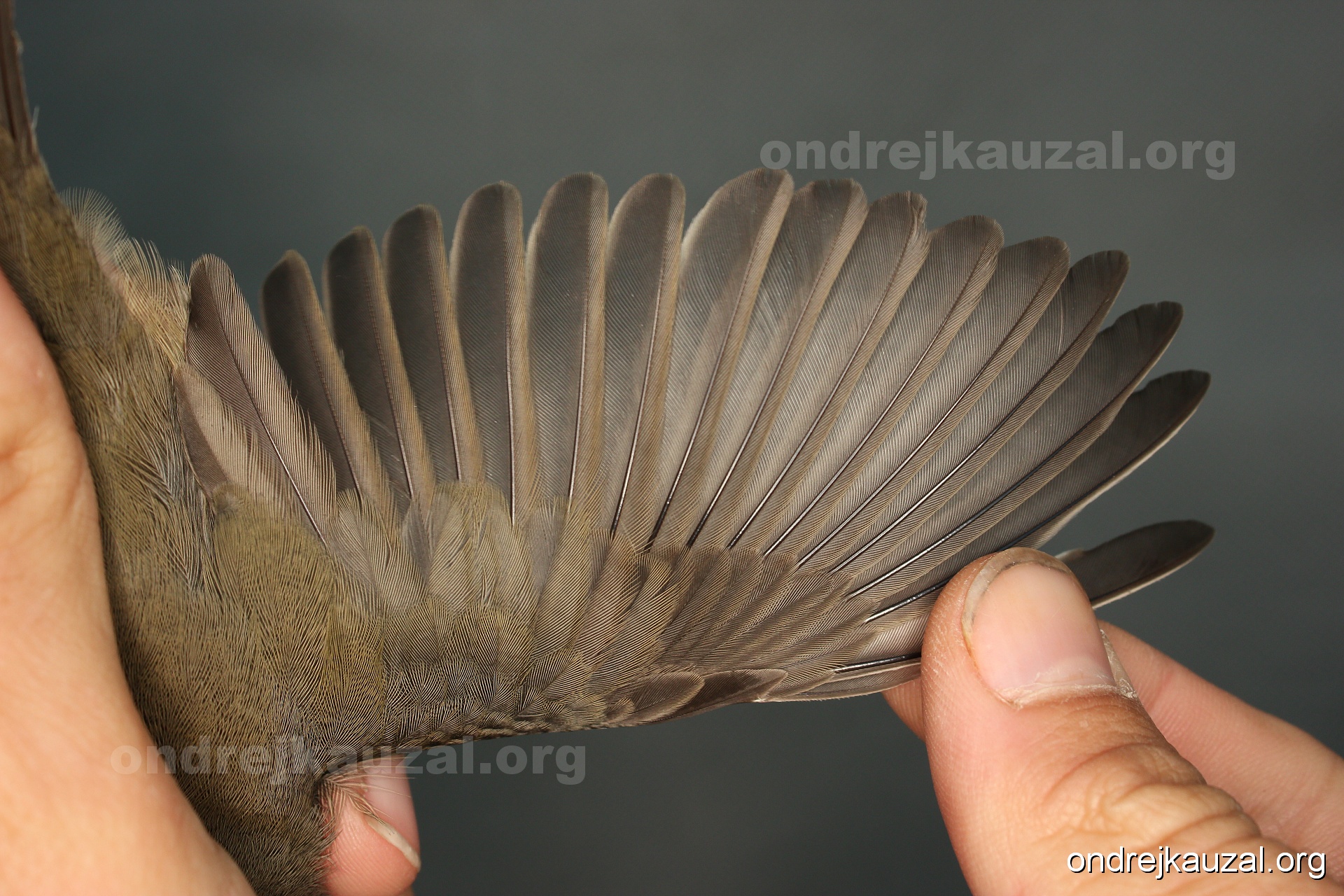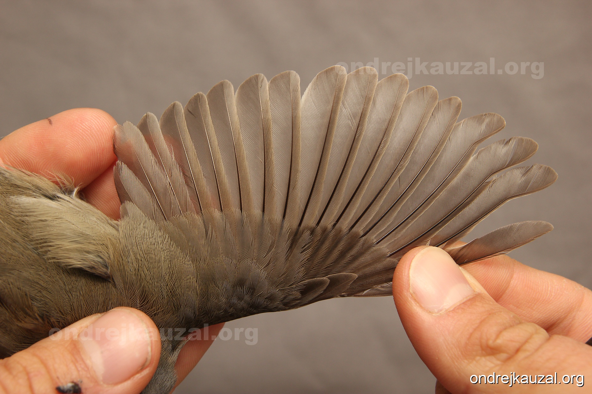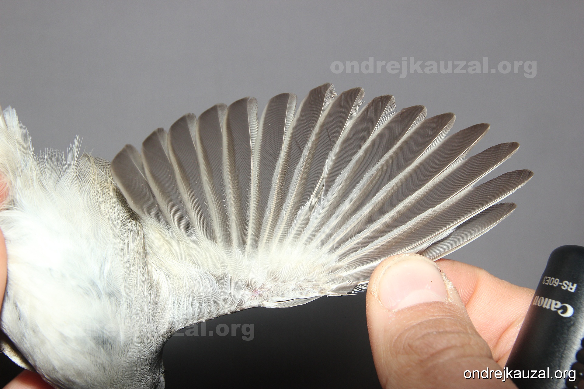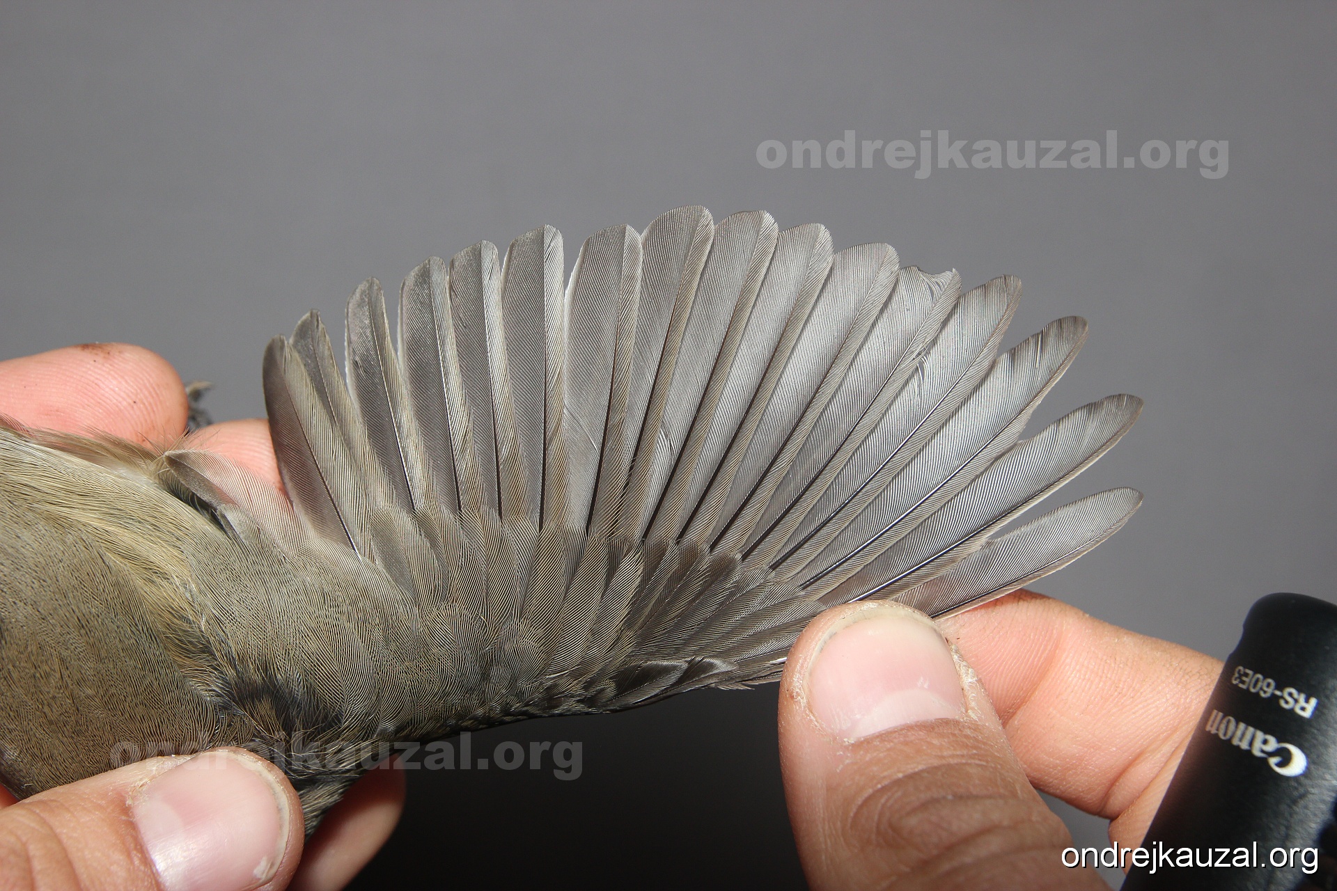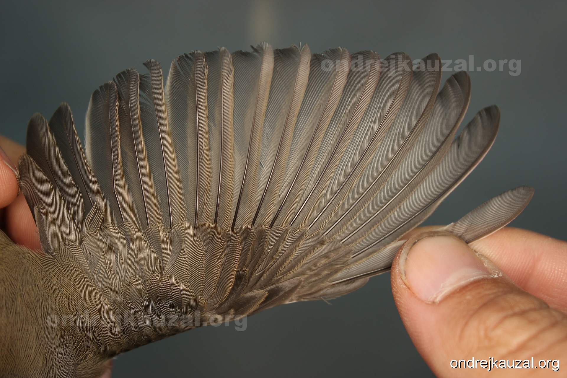 A bird showing nice fault bar across its remiges. While definitely not a good thing for the bird itself, such phenonema can aid in ageing. The uniform position of this bar from the wing indicates the wing feathers grew at the same time, i.e. on nest suggesting this bird is a young individual.