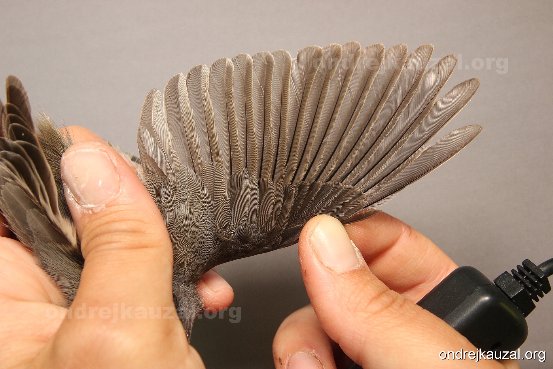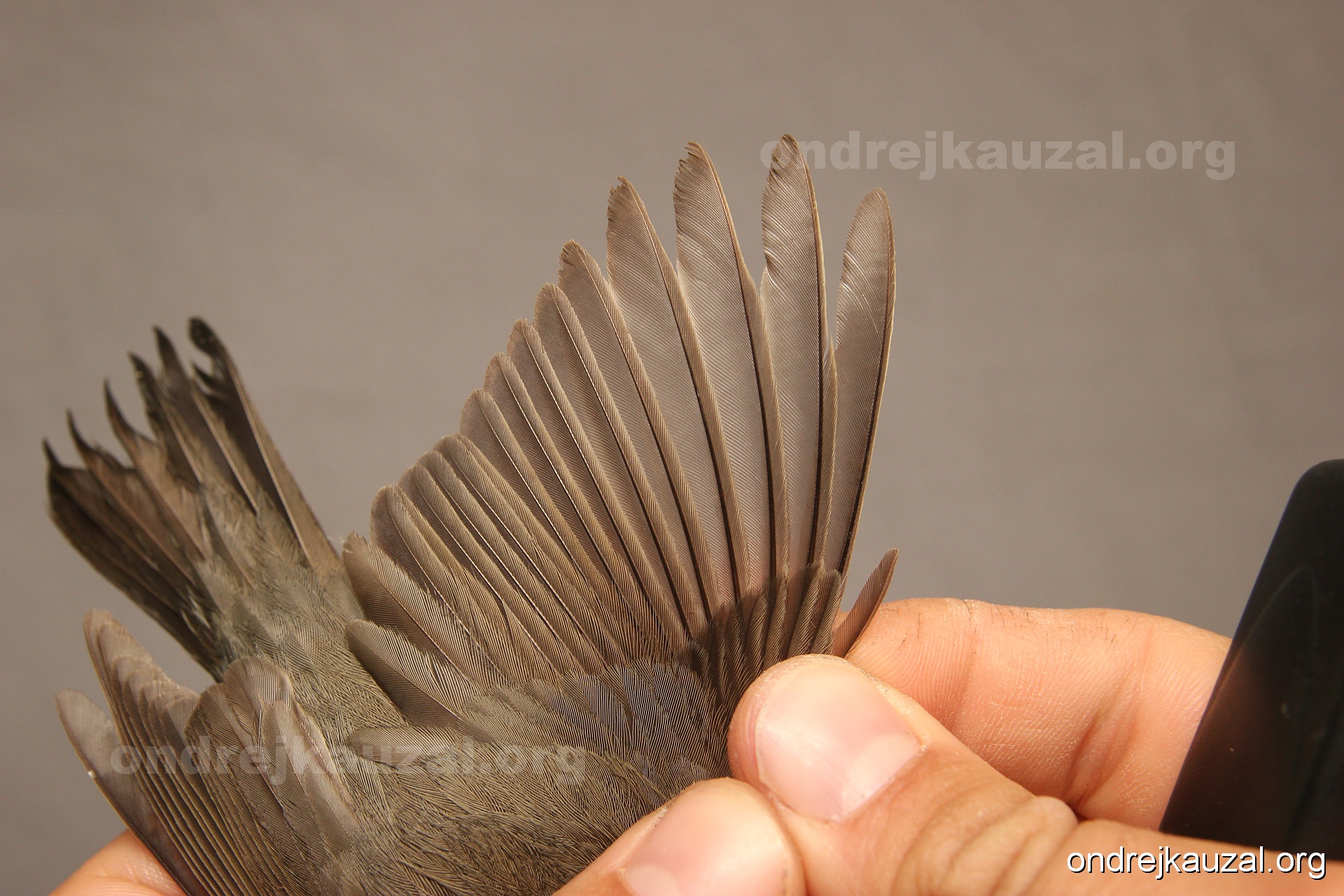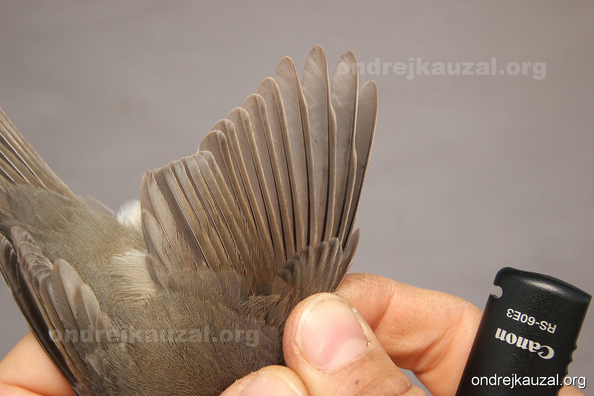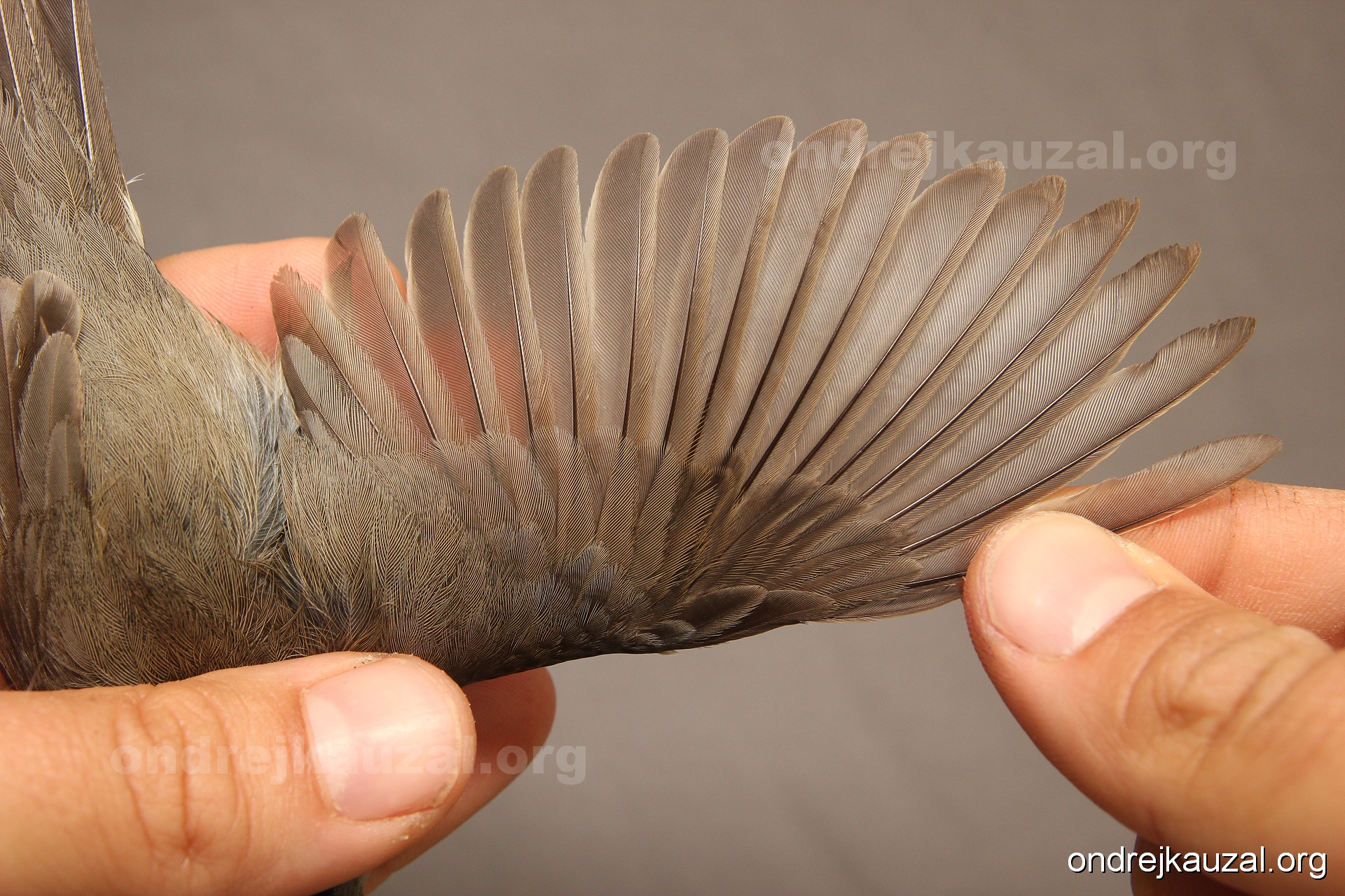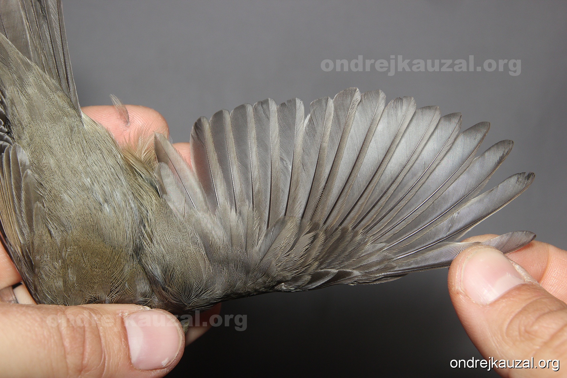 A bird showing nice fault bar across its remiges. While definitely not a good thing for the bird itself, such phenonema can aid in ageing. The uniform position of this bar from the wing indicates the wing feathers grew at the same time, i.e. on nest suggesting this bird is a young individual.