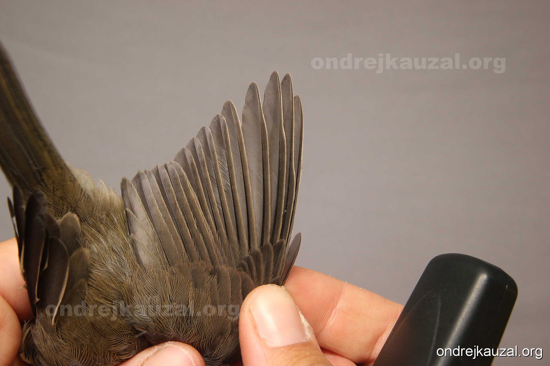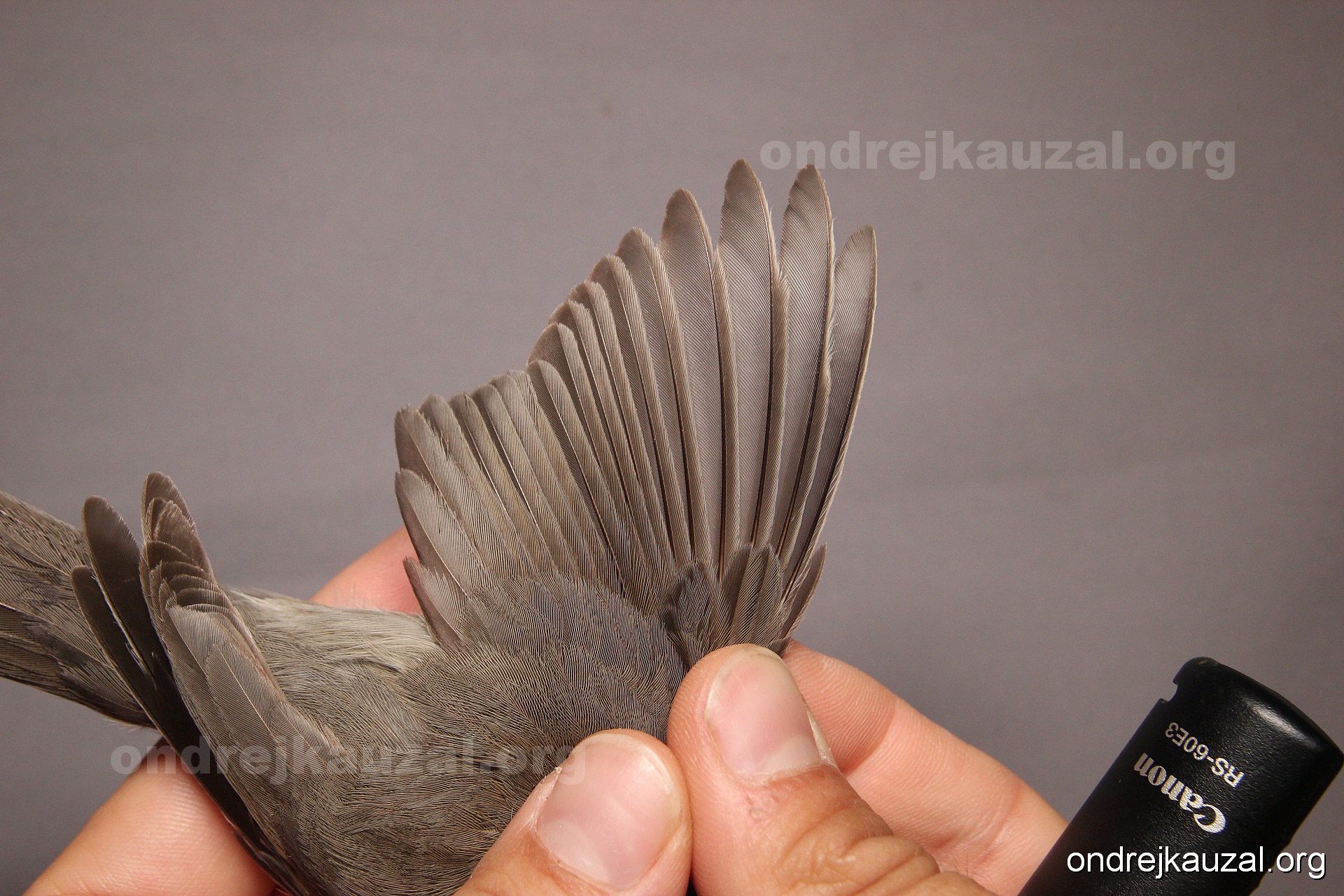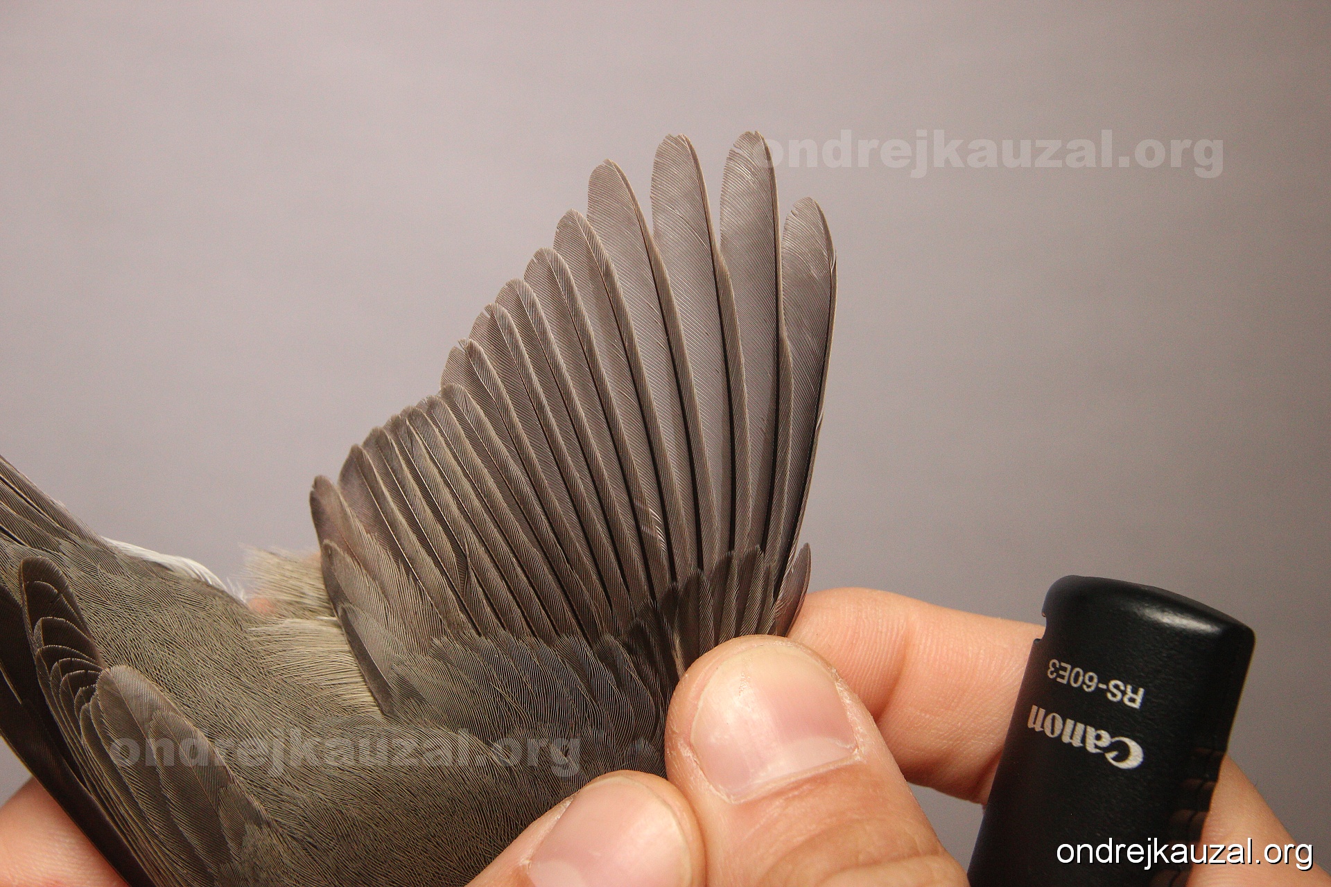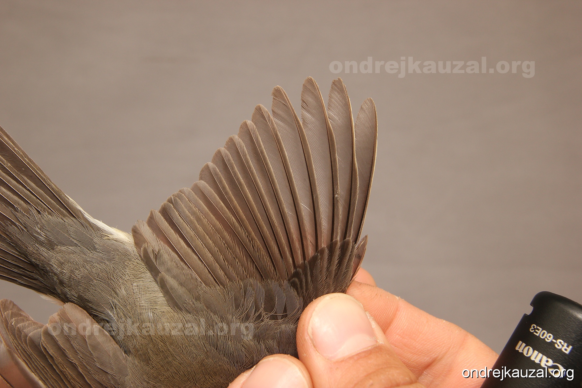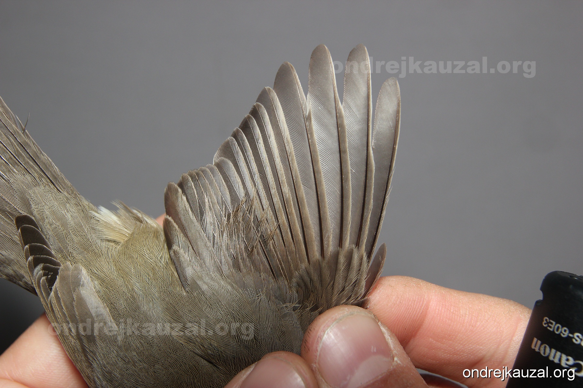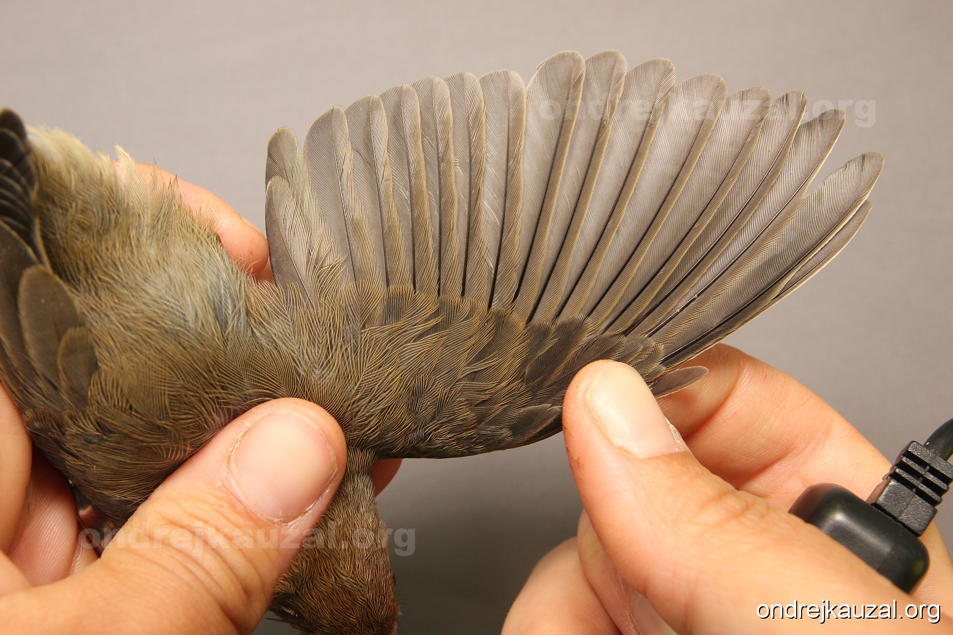 A bird showing nice fault bar across its remiges. While definitely not a good thing for the bird itself, such phenonema can aid in ageing. The uniform position of this bar from the wing indicates the wing feathers grew at the same time, i.e. on nest suggesting this bird is a young individual.