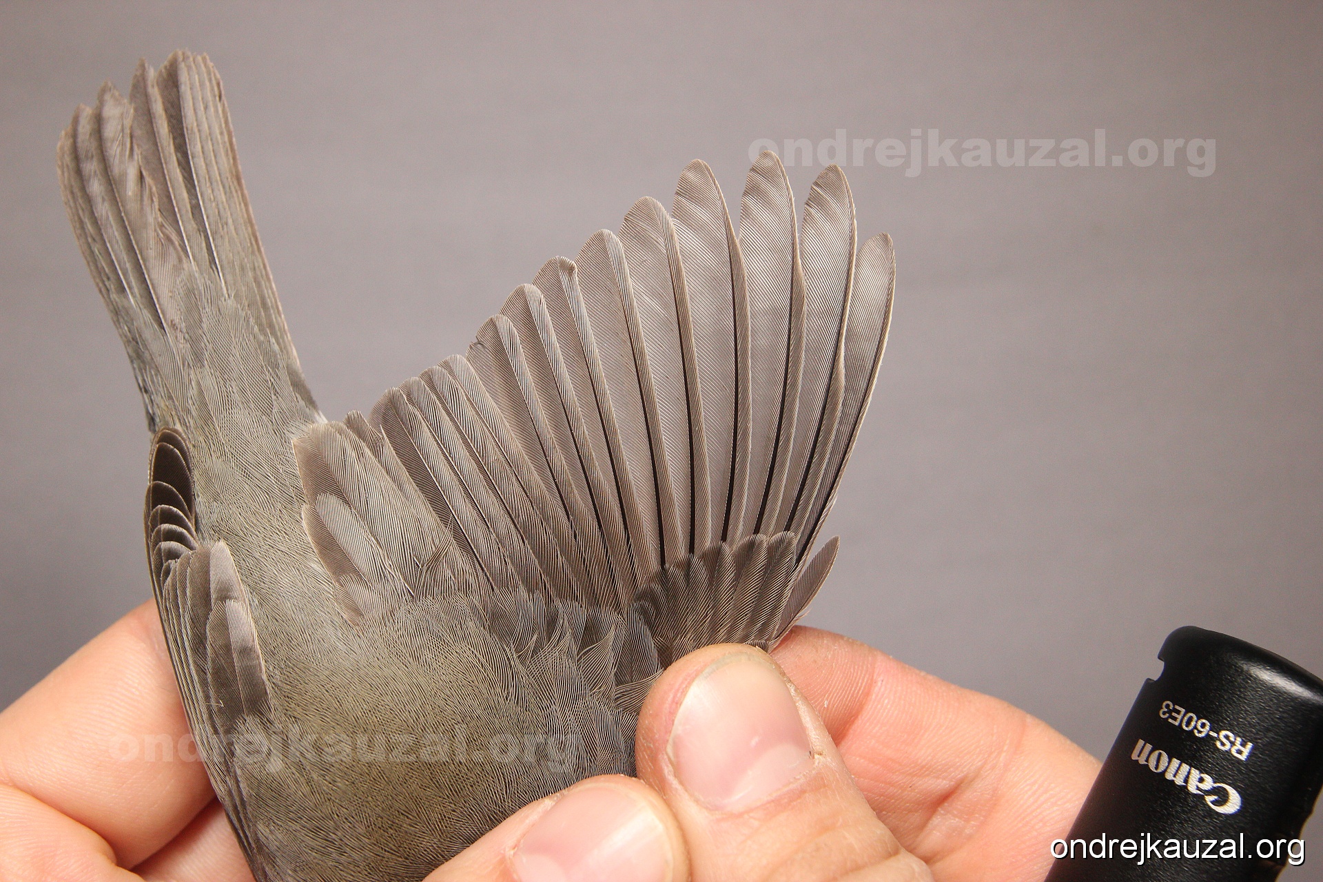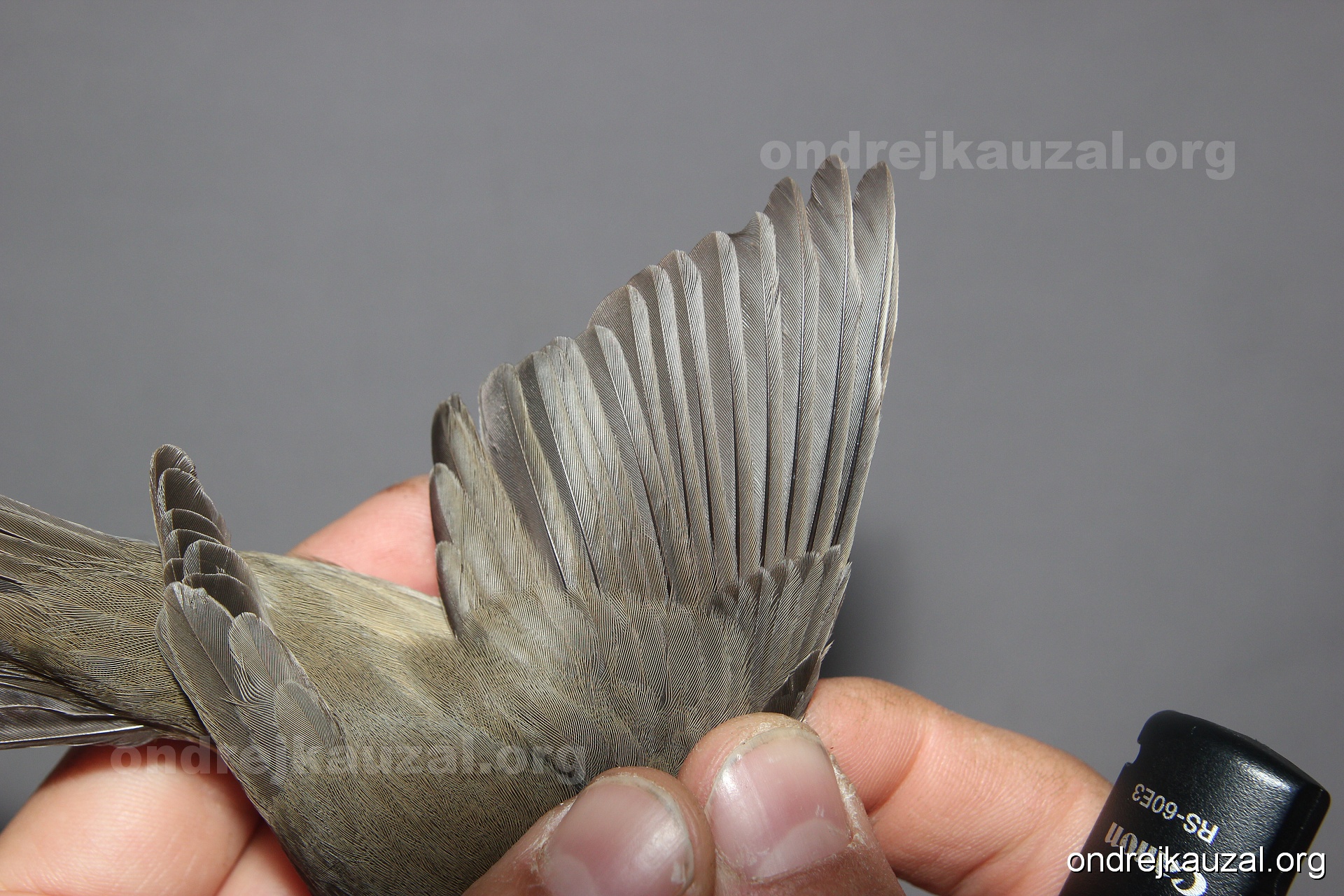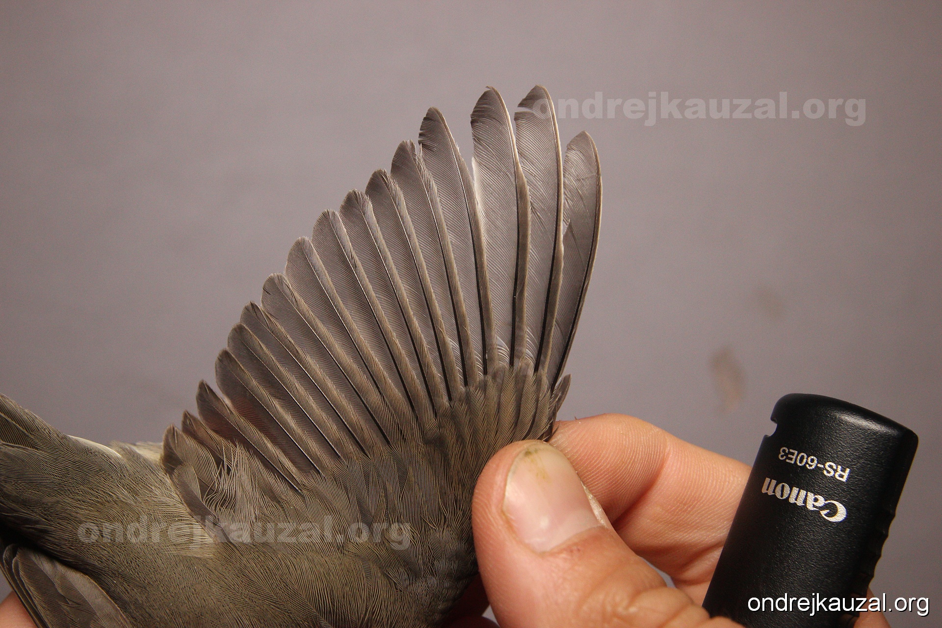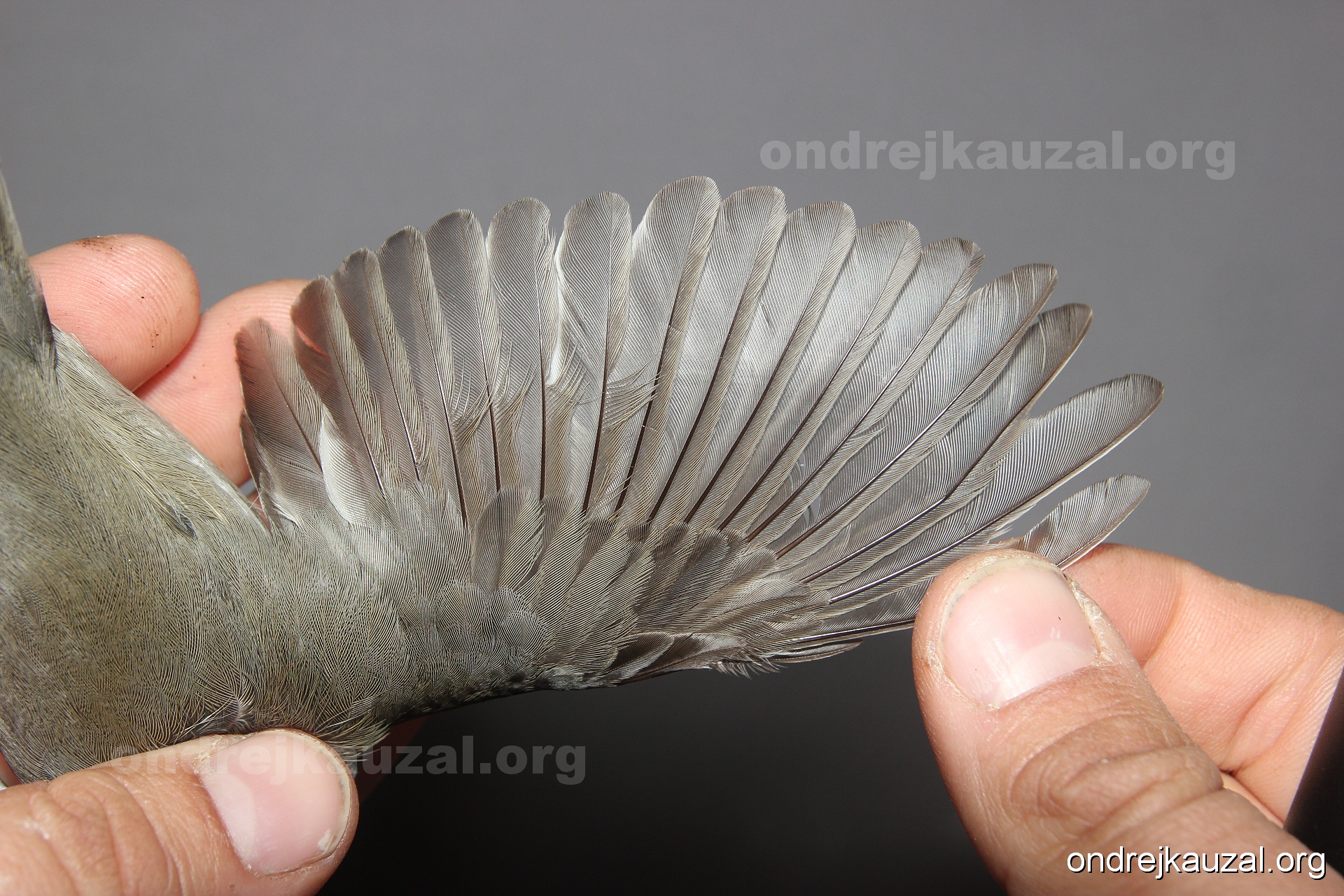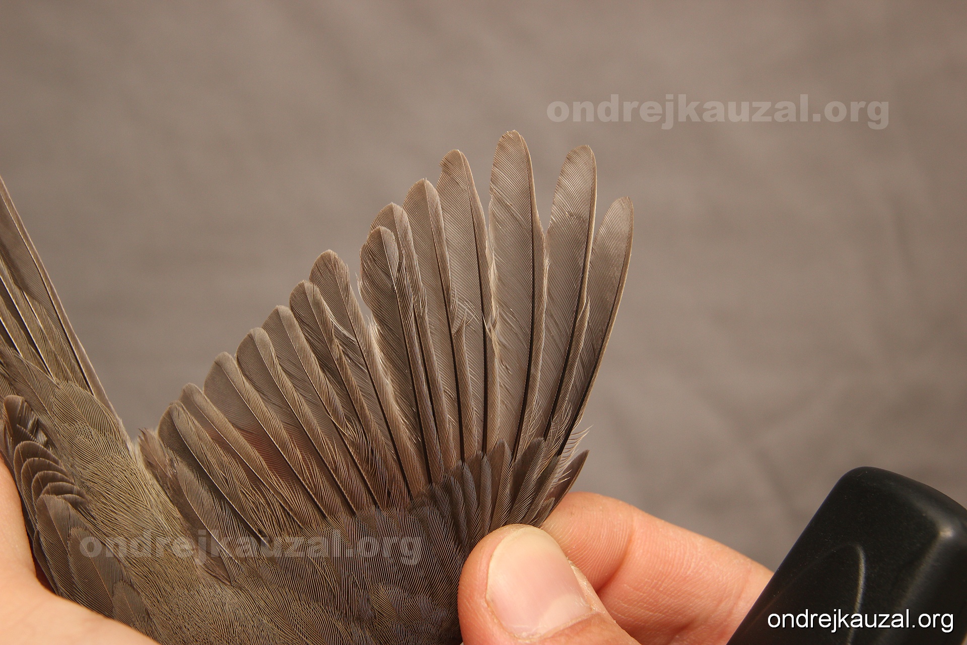 A bird showing nice fault bar across its remiges. While definitely not a good thing for the bird itself, such phenonema can aid in ageing. The uniform position of this bar from the wing indicates the wing feathers grew at the same time, i.e. on nest suggesting this bird is a young individual.