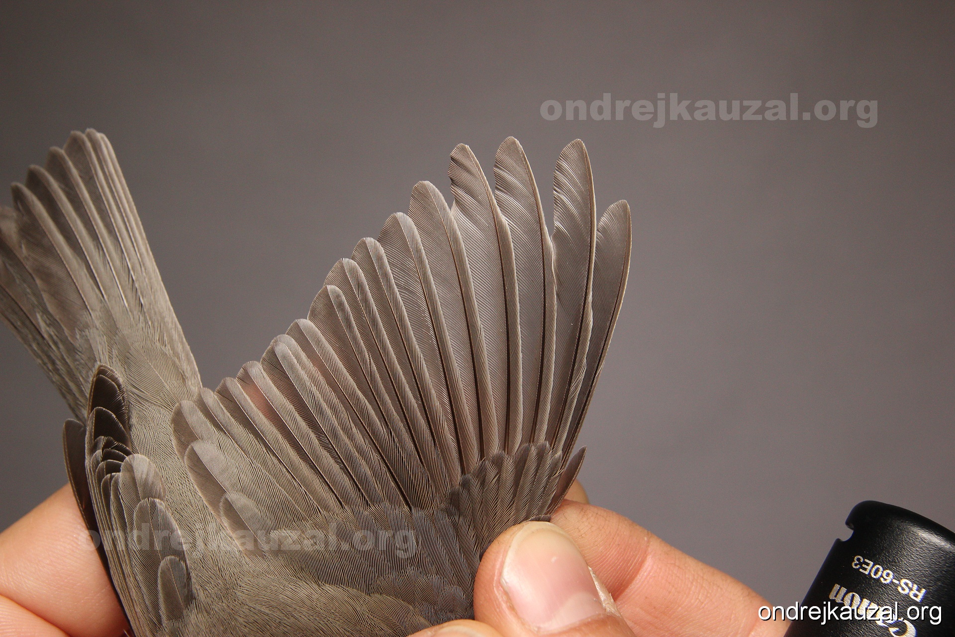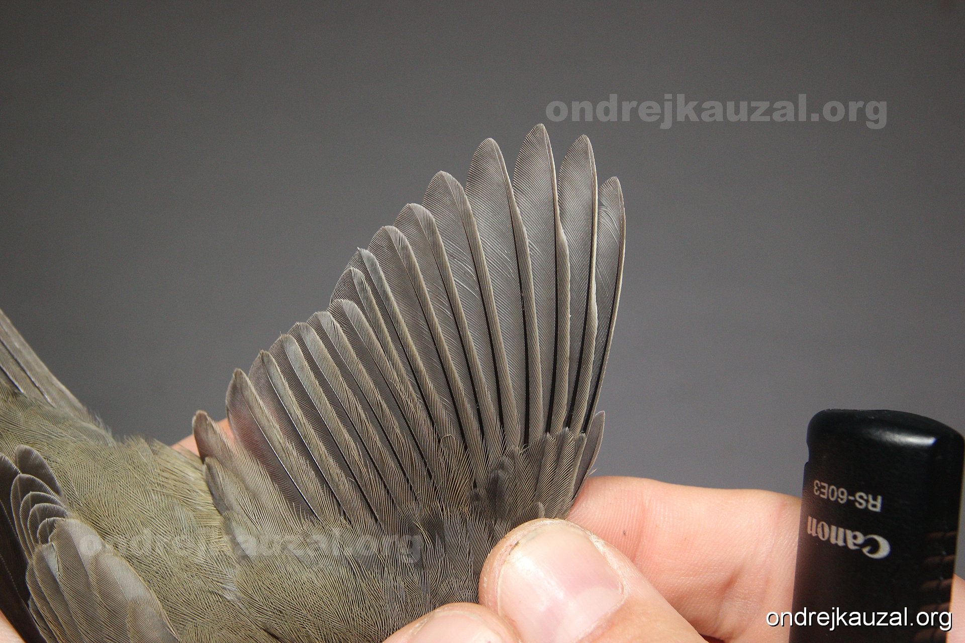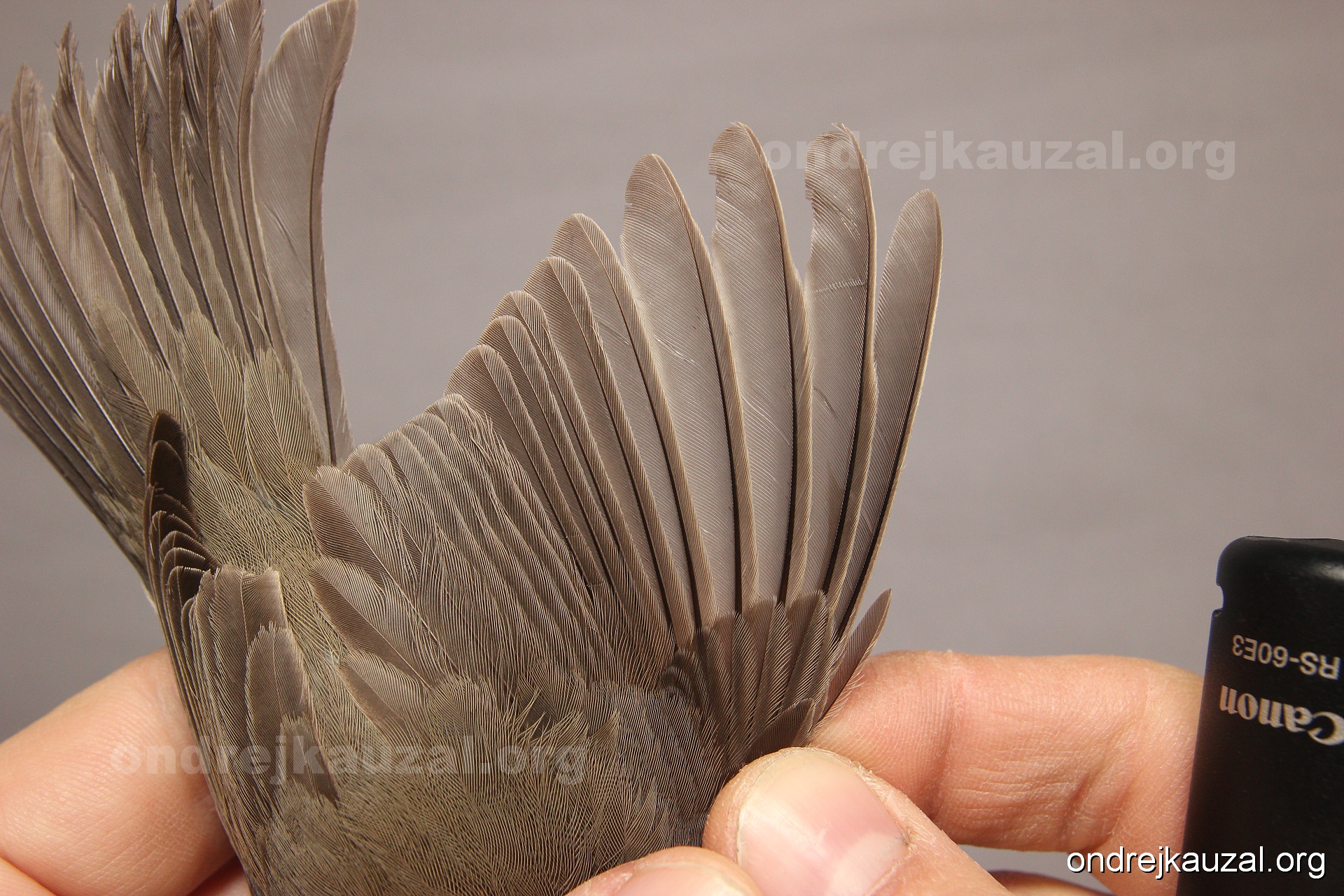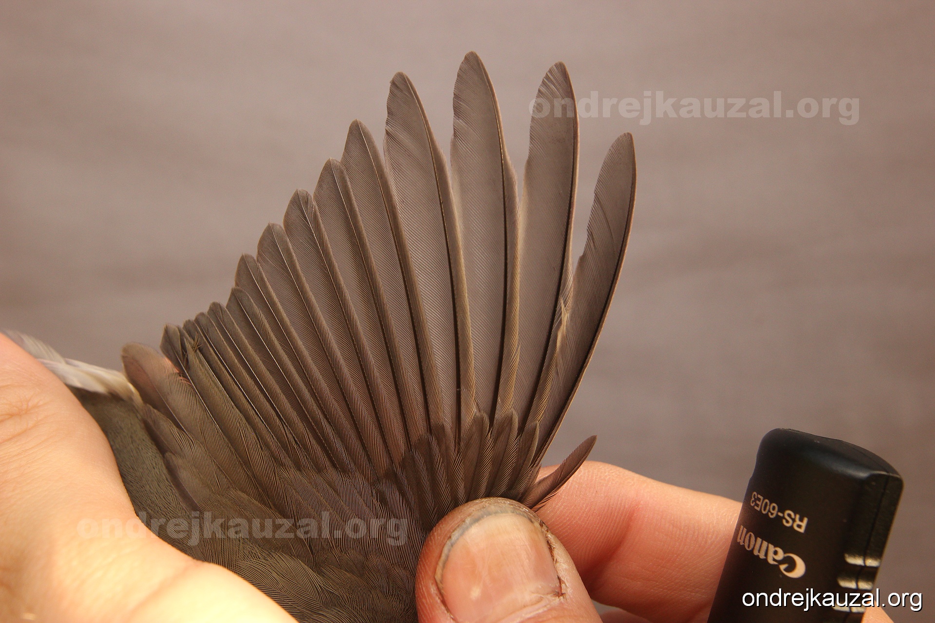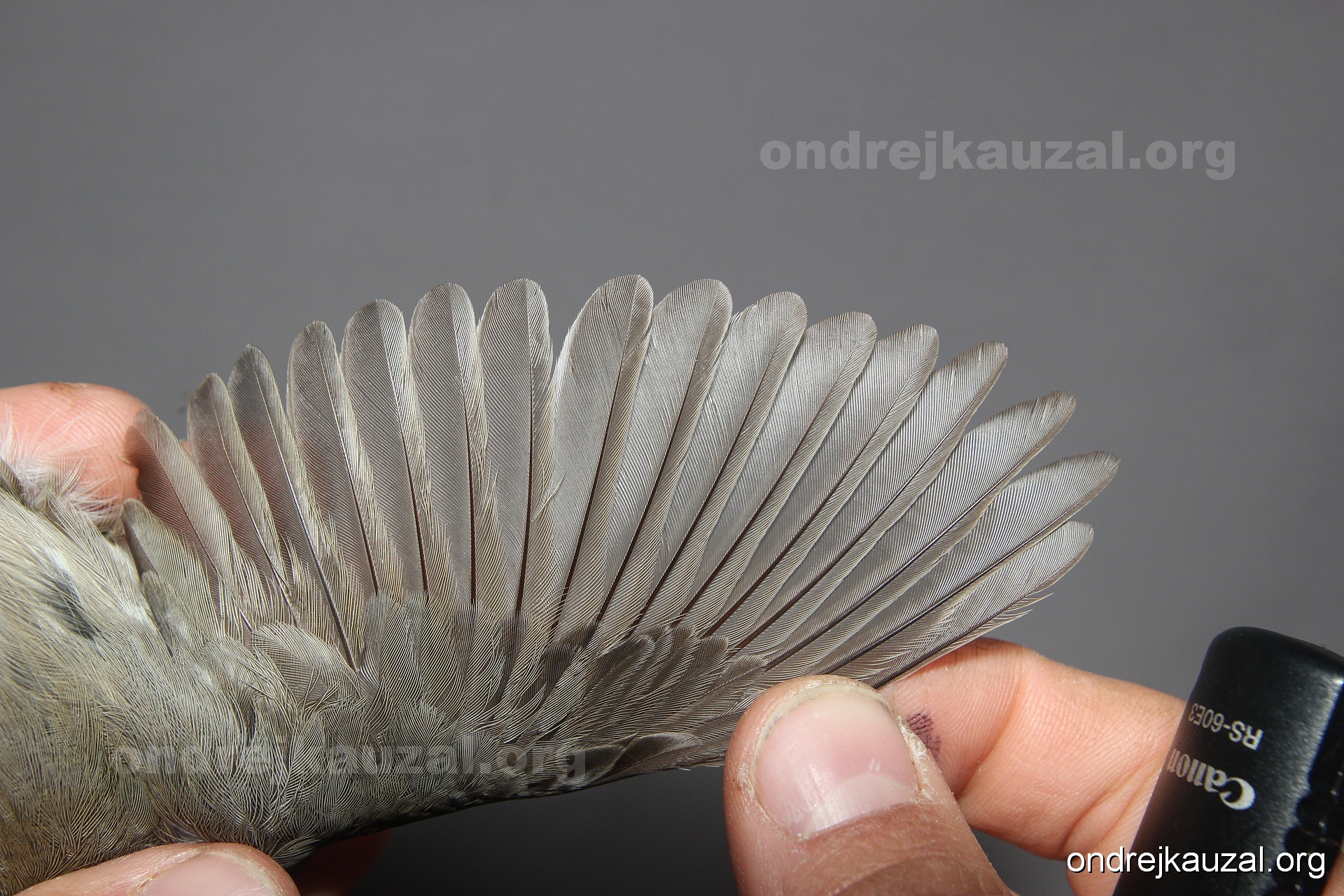 A bird showing nice fault bar across its remiges. While definitely not a good thing for the bird itself, such phenonema can aid in ageing. The uniform position of this bar from the wing indicates the wing feathers grew at the same time, i.e. on nest suggesting this bird is a young individual.