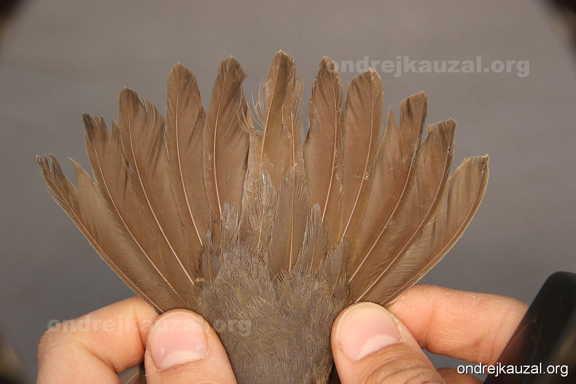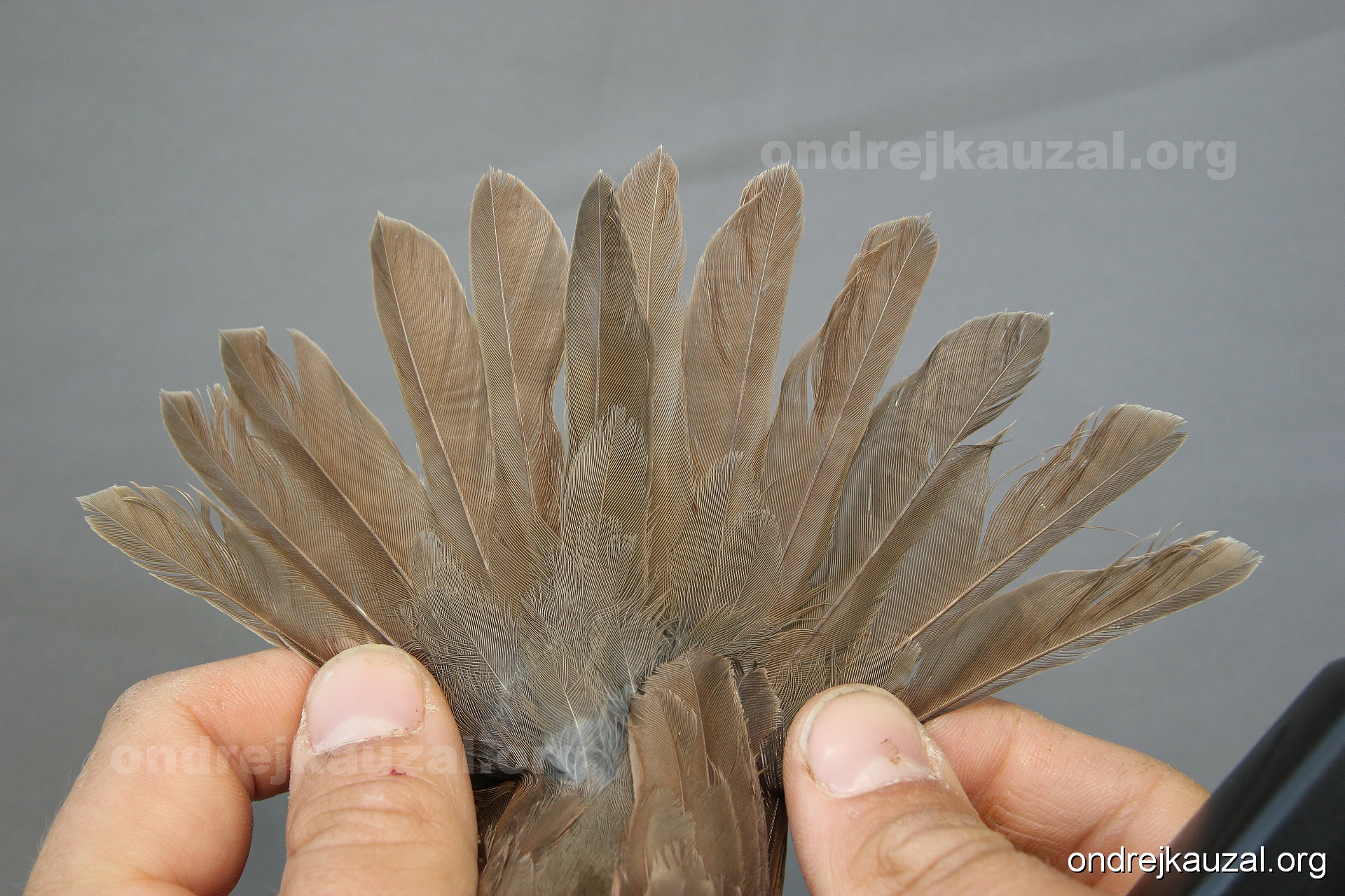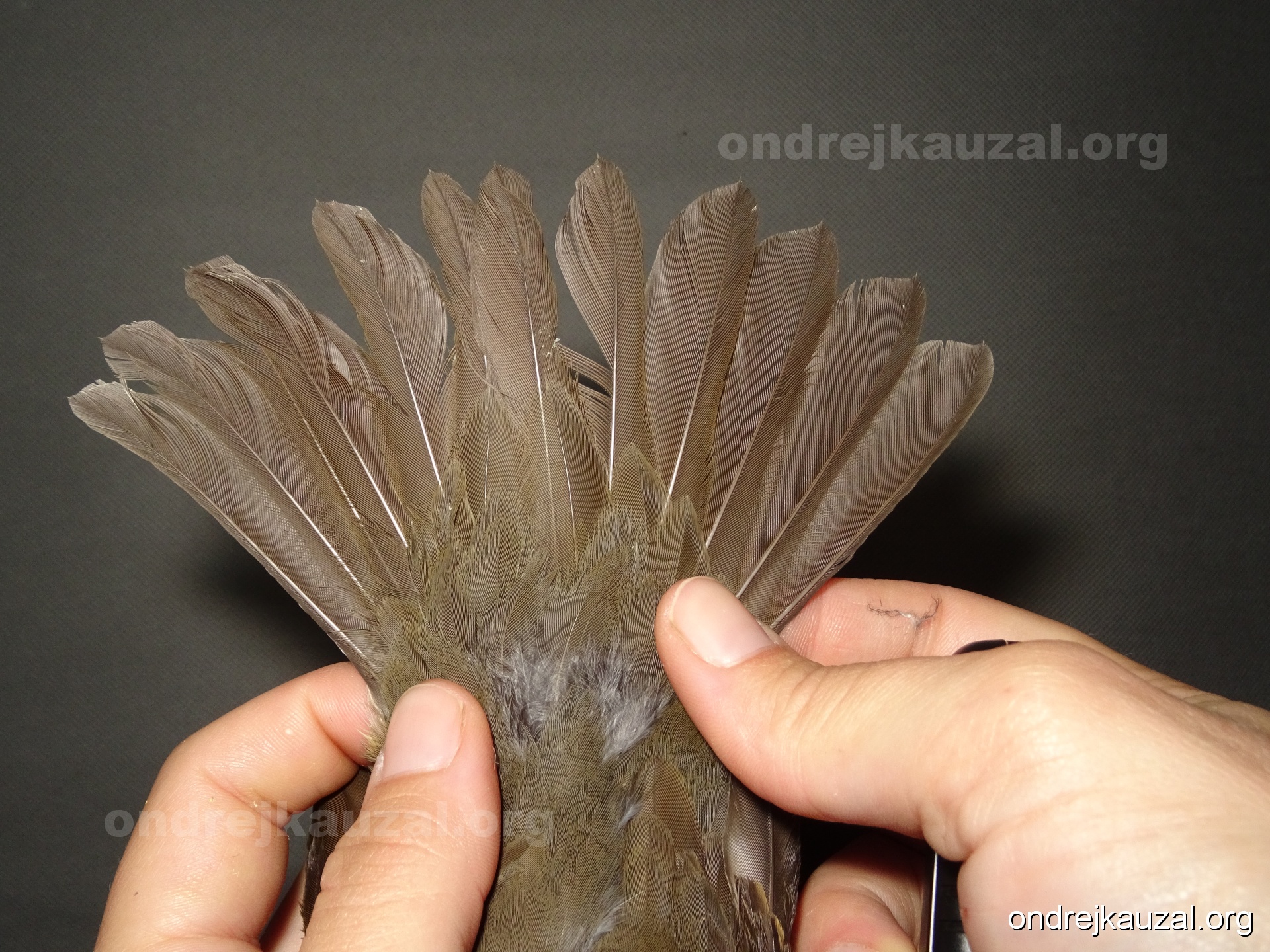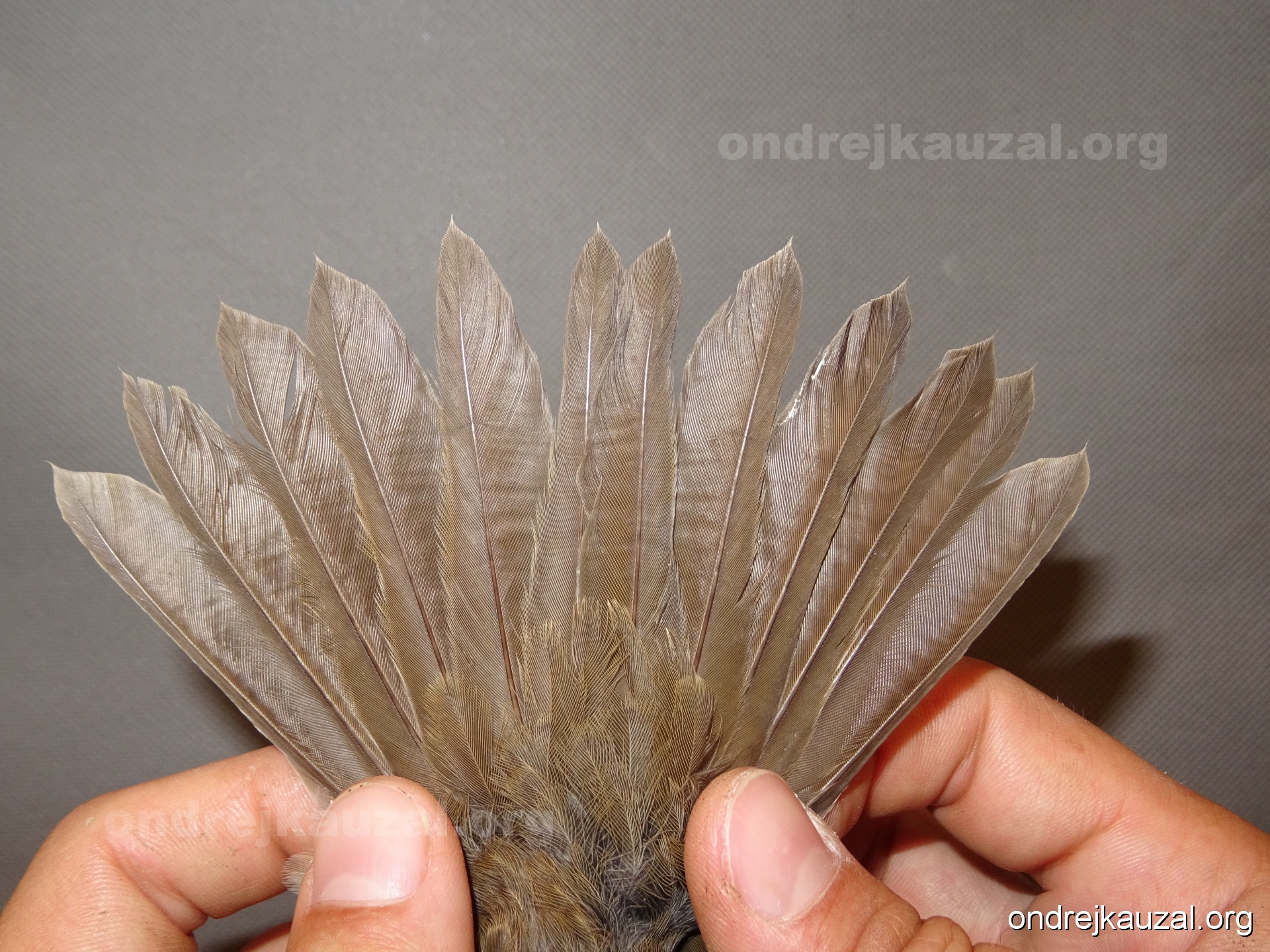 There is a nice fault bar visible in its tail. Its position suggest a simultaneous growth and shape suggest juvenile feathers. The visible moult-limit in the greater coverts furthermore supports ageing as 2CY (euring: 5).