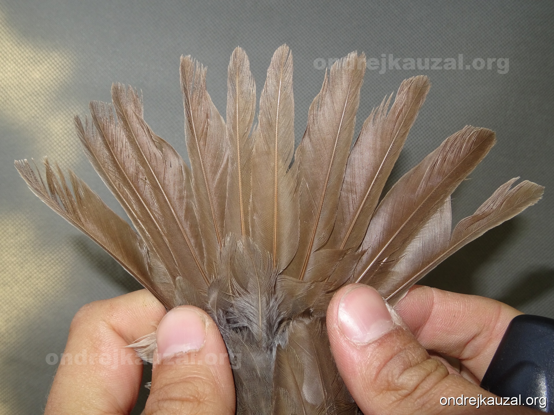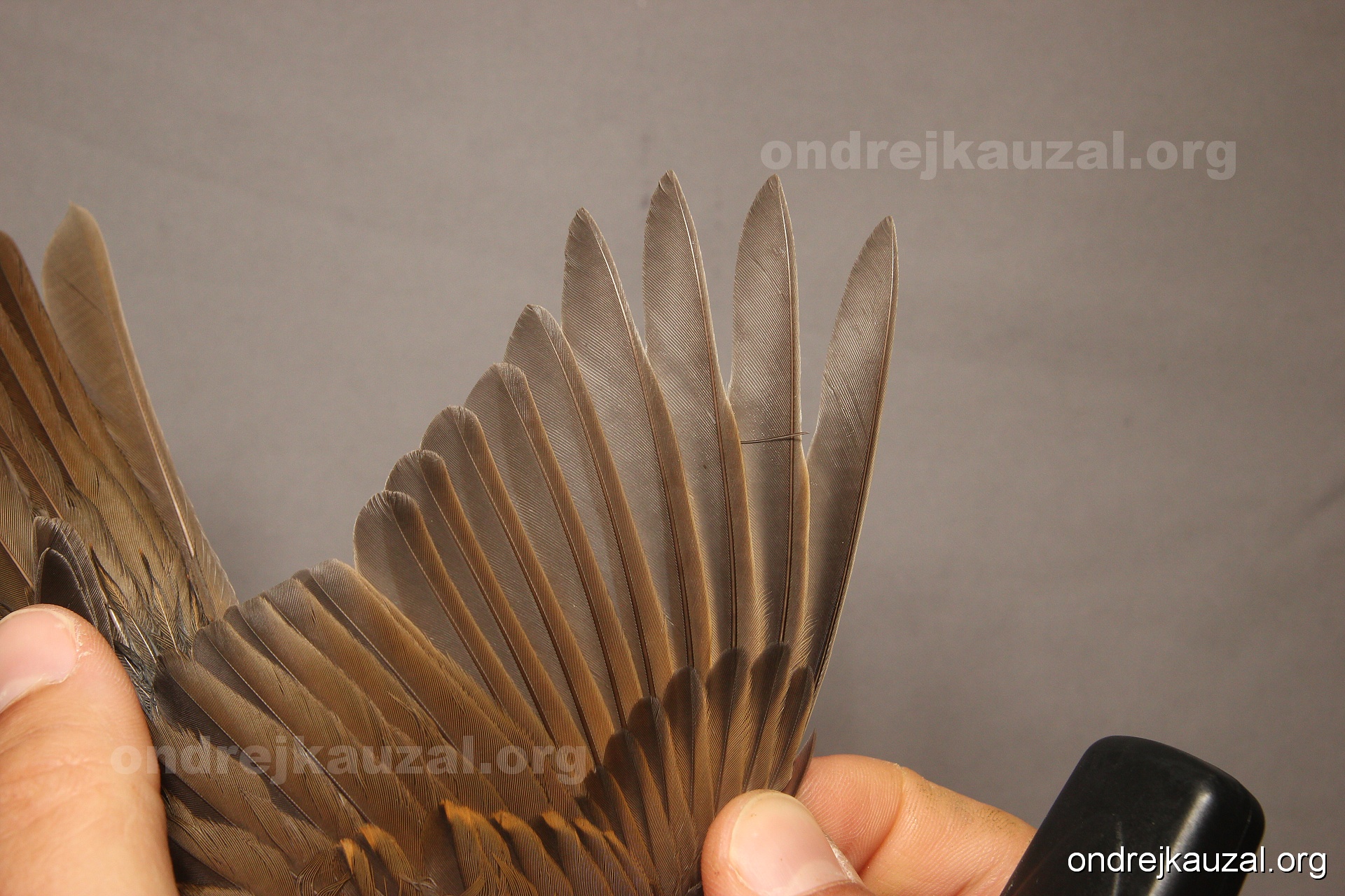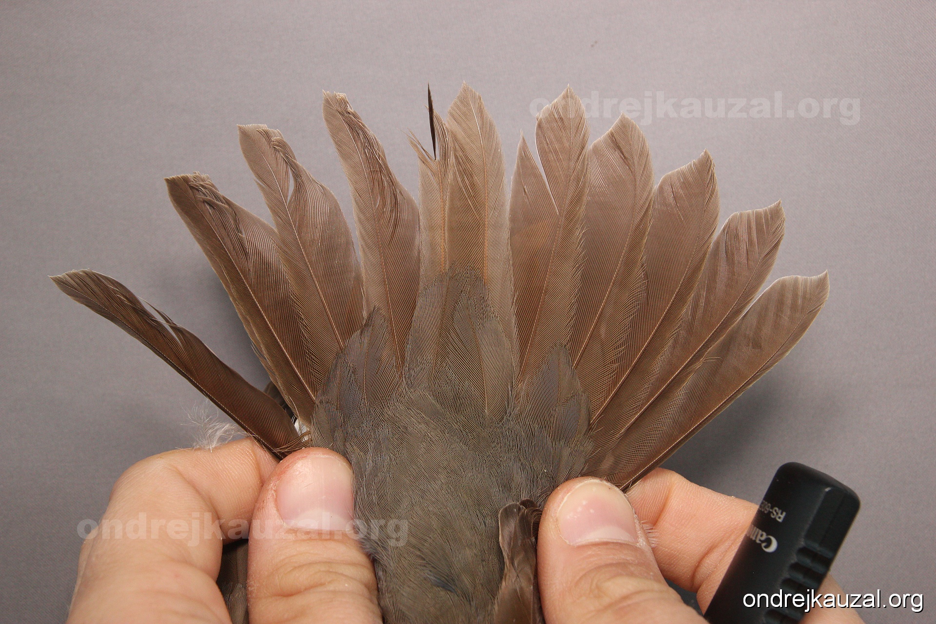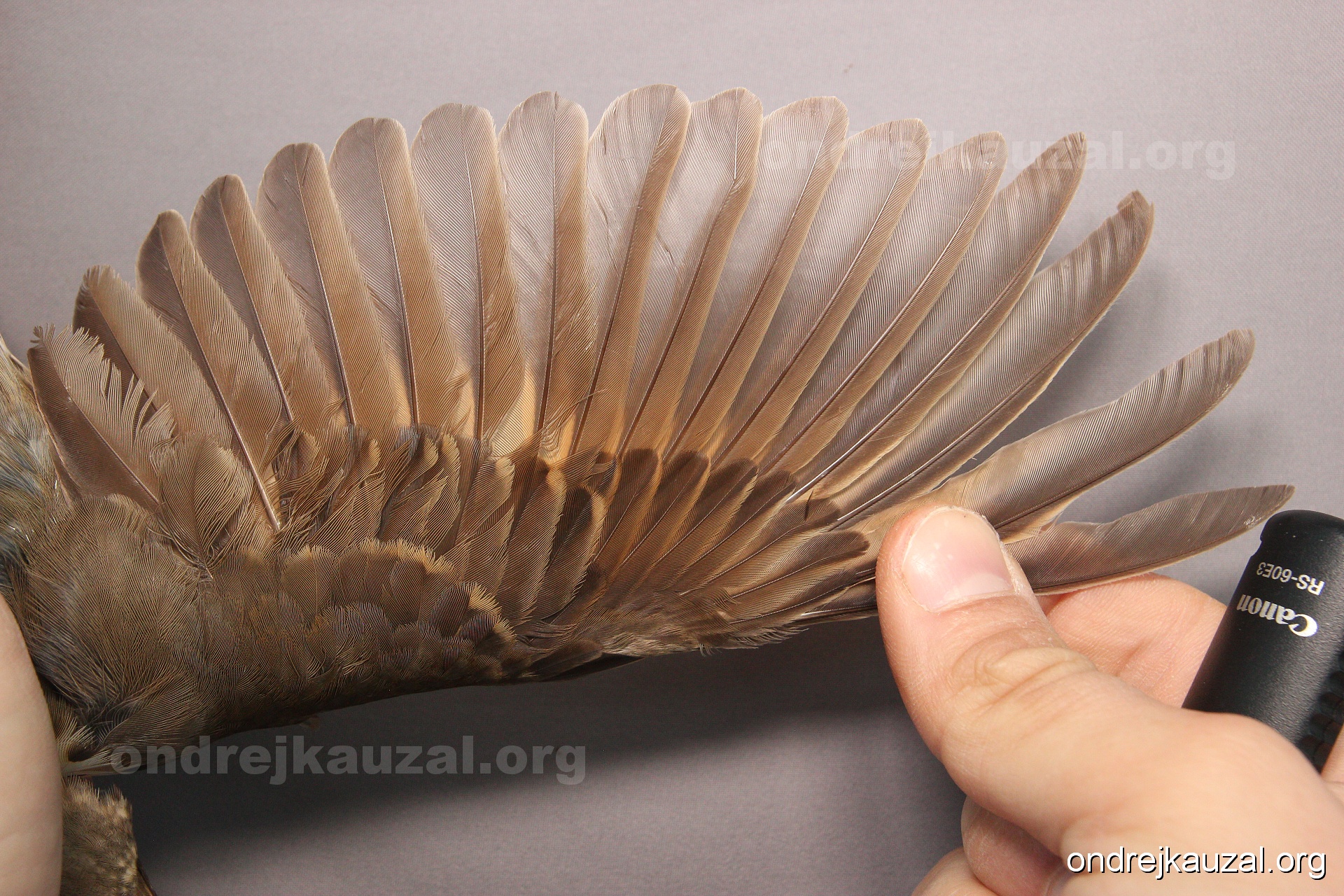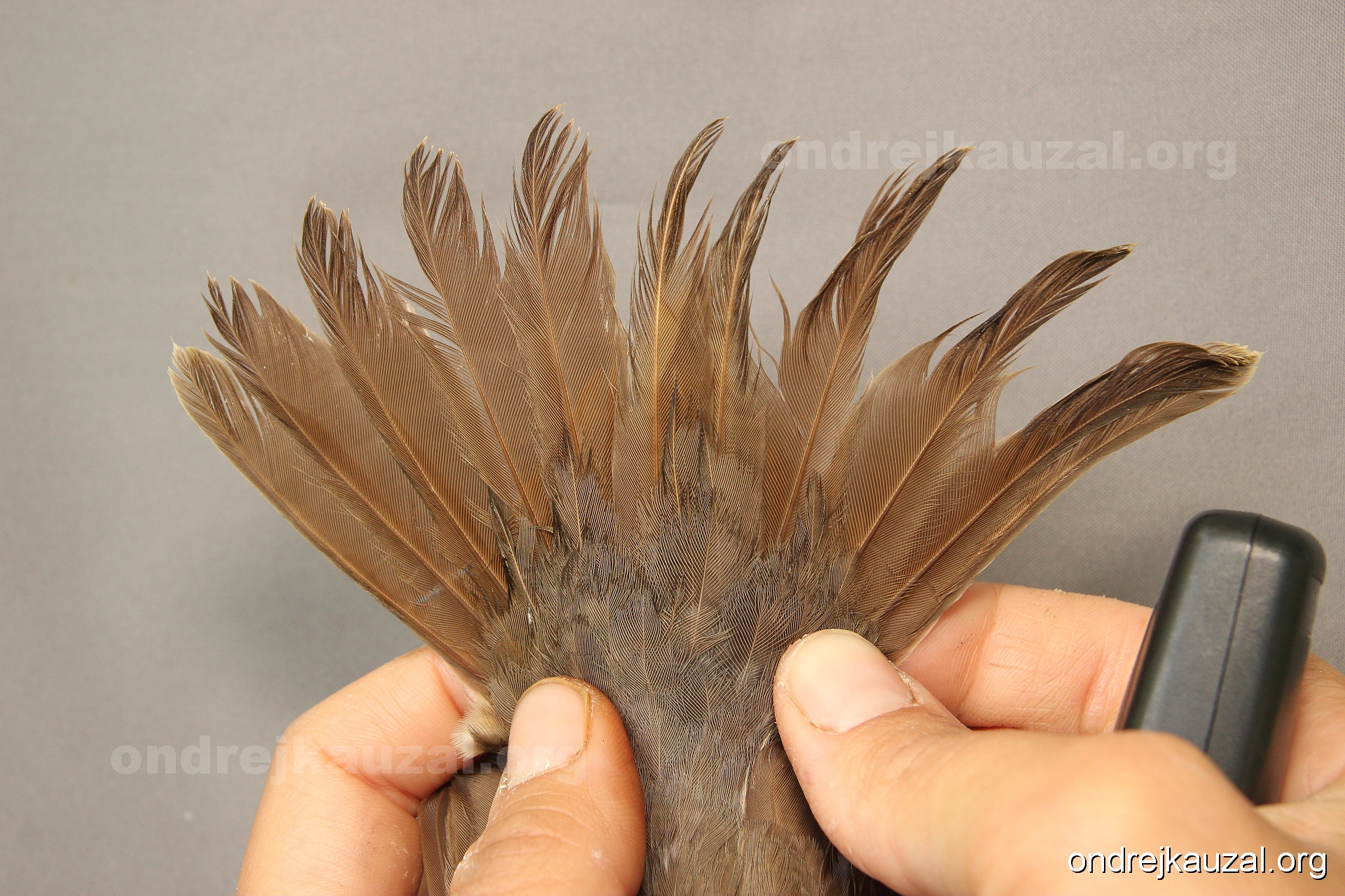 There is a nice fault bar visible in its tail. Its position suggest a simultaneous growth and shape suggest juvenile feathers. The visible moult-limit in the greater coverts furthermore supports ageing as 2CY (euring: 5).