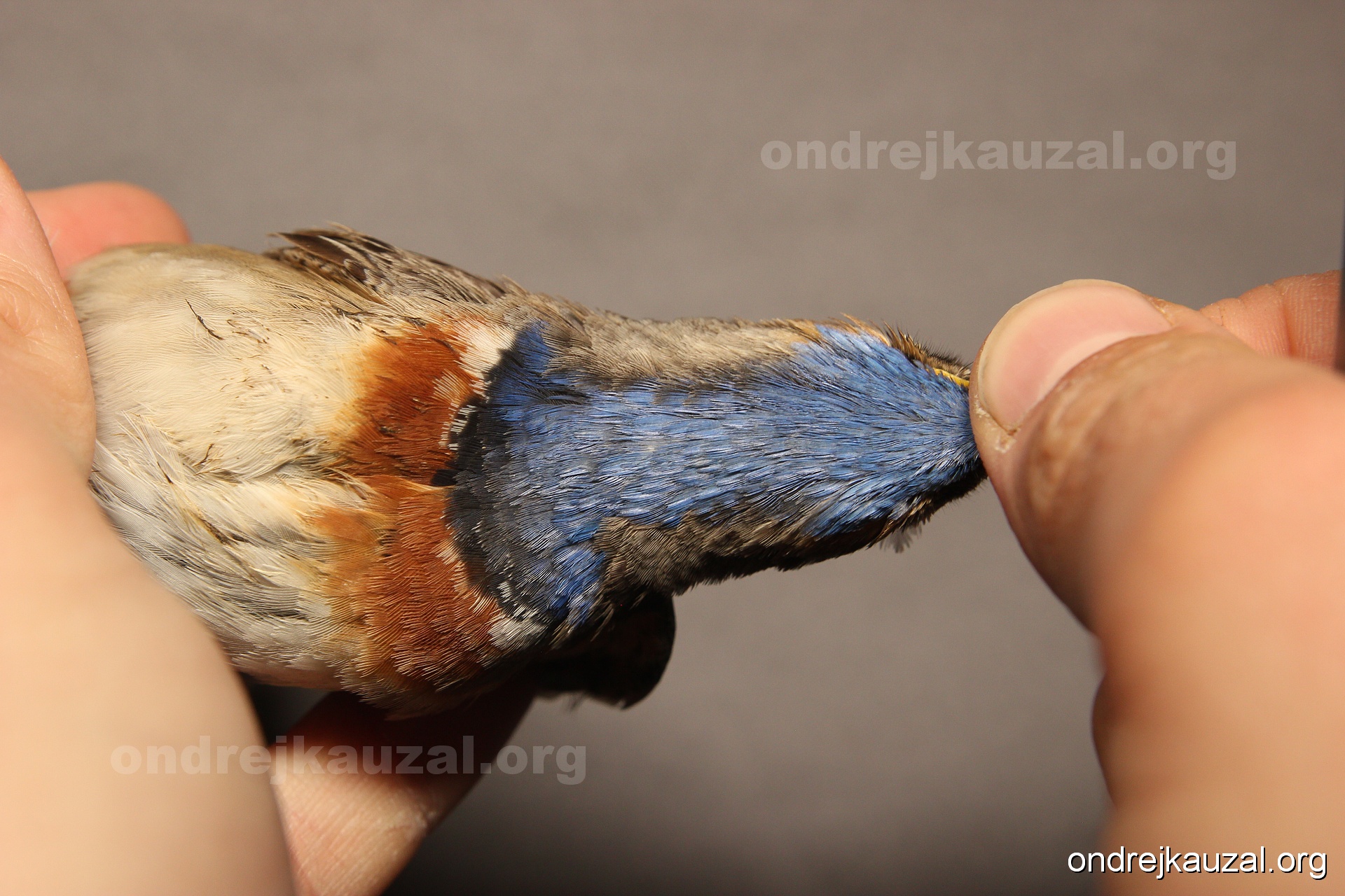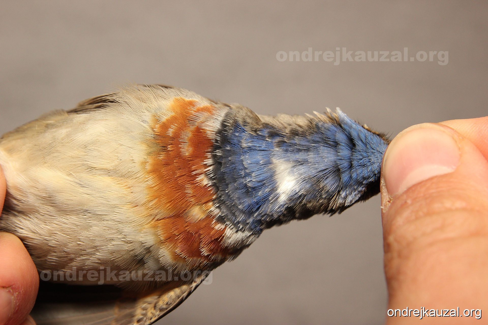 Quite exceptional individual as it does not have any throat spot. It resembles some of the spotless supbspecies, such as azuricollis or magna but even cyanecula occasionally lacks any throat spot.