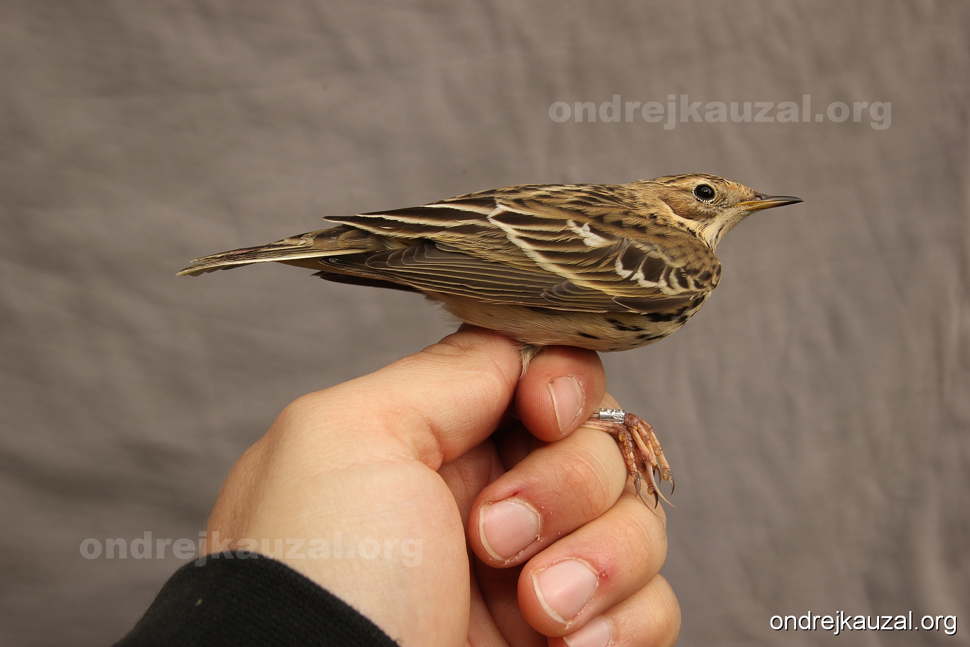 Unfortunatelly, colours on this particular individual are a bit off on the photos. I apologize, I was too tired that day to set up my set-up properly, therefore, I also exceptionally included two photos I took right after I took the bird out of the mist net with my iPhone. Originally, I identified this bird as an A. pratensis but since the very begining I was very aware this bird looked kind of different. Due to the fact that this bird was caught during an Eurobirdwatch event, I did not had much time to inspect it as thoroughly as I would like. But I was suspecting this bird could be also an A. cervinus. I then inspected the photos carefully again and consulted them with my colleagues and the conclusion is A. cervinus. Unfortunatelly, I did not photograph some of the ID criteria very well during my "standardized photo shoot". So I am including the other two photos as they nicely show the slightly red throat and the two dorsal stripes as well as very light edges to coverts and tertials.