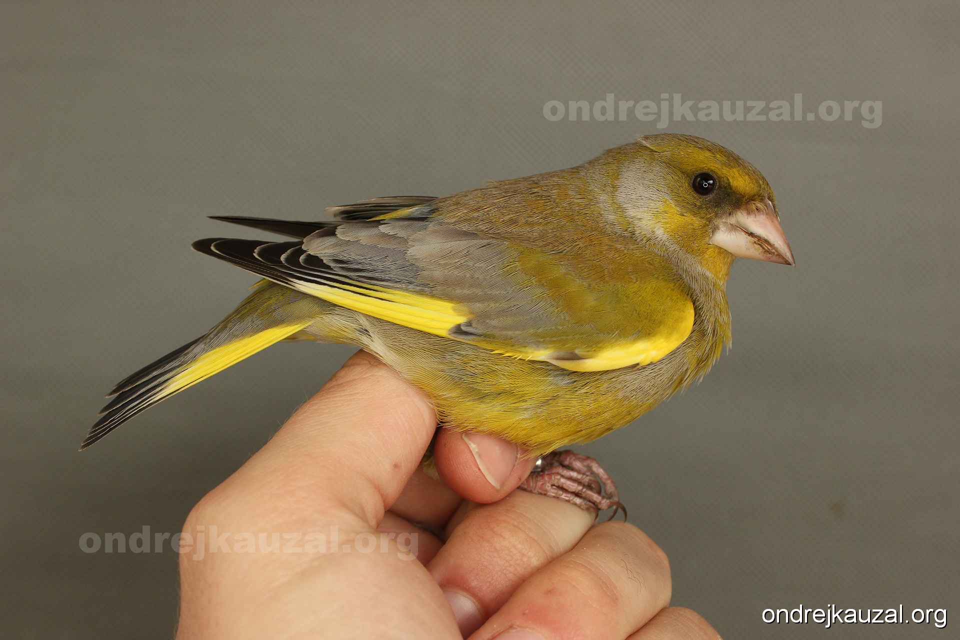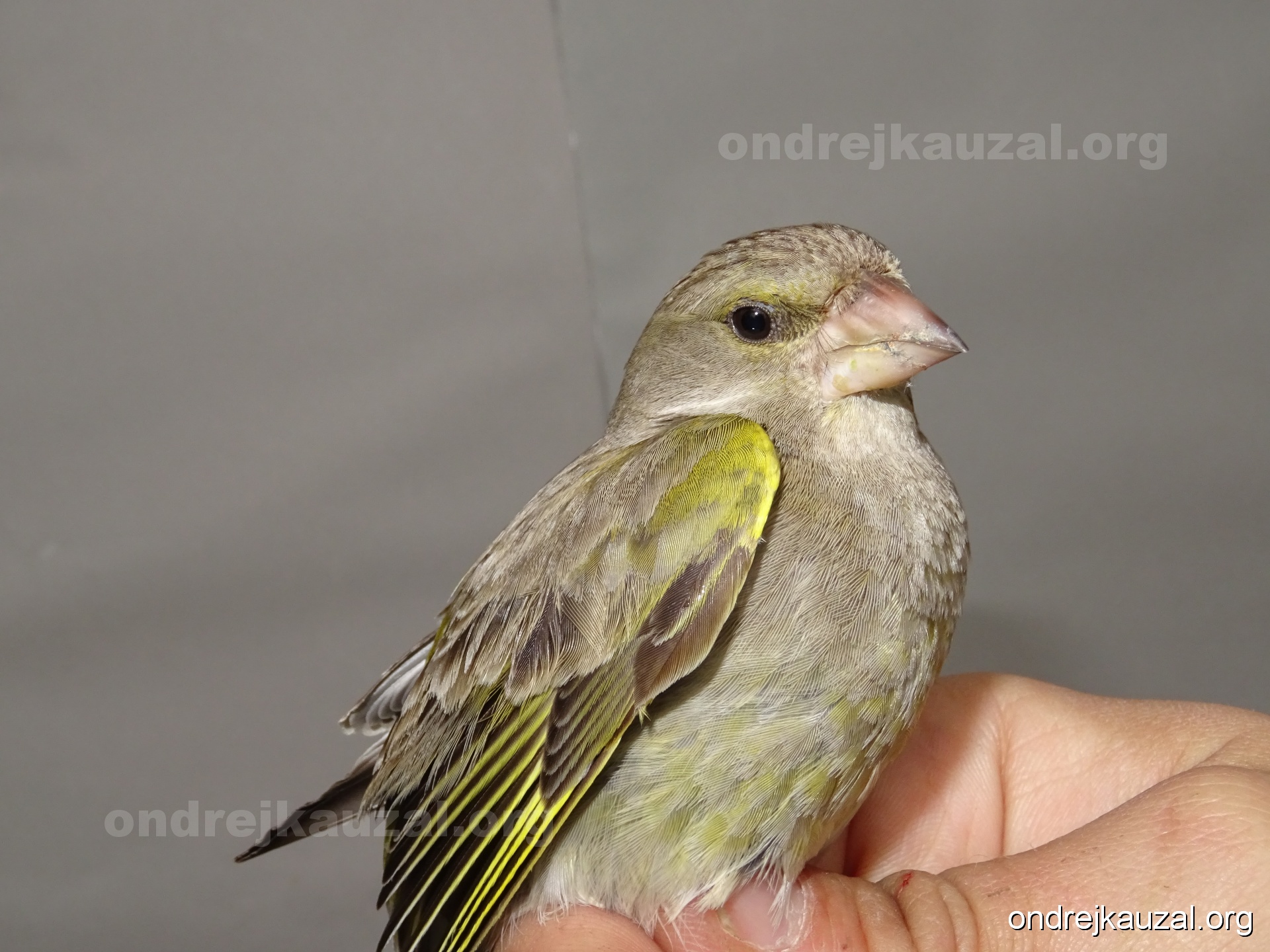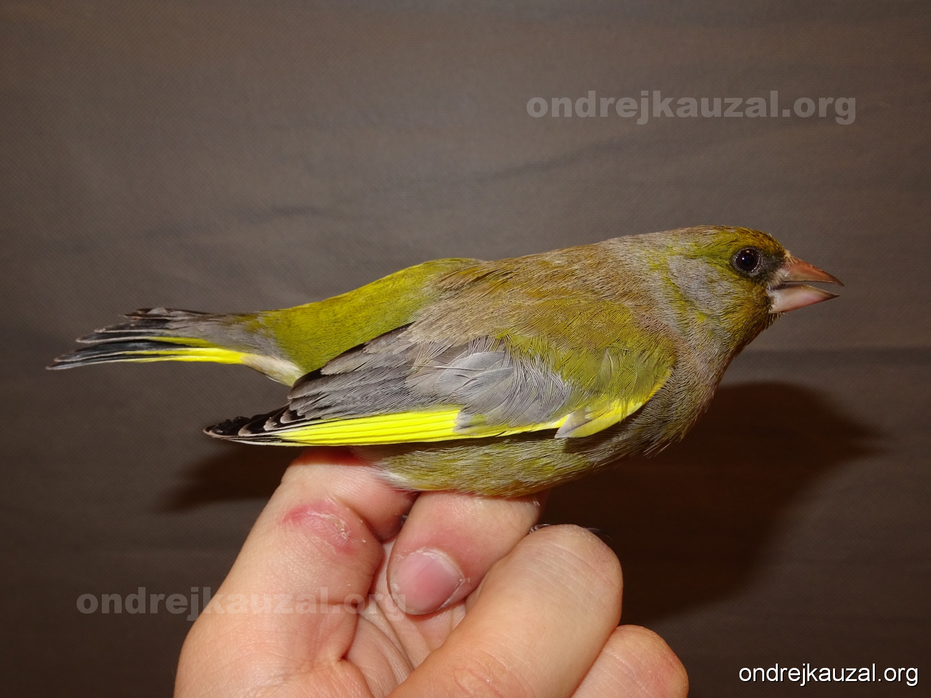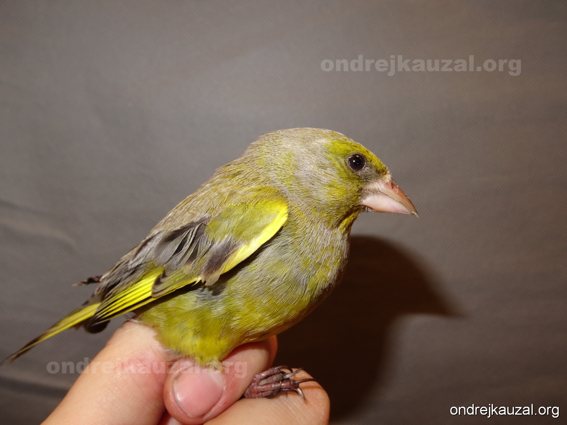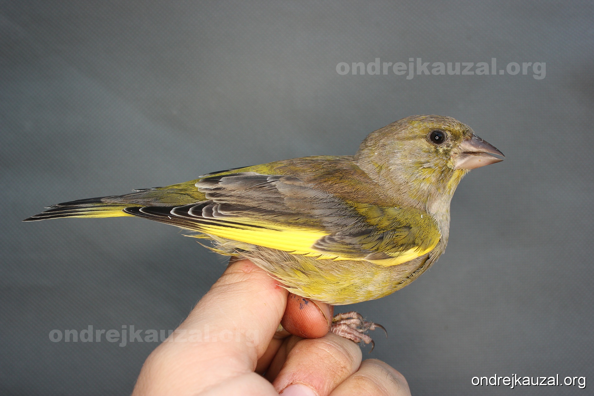 An interesting individual, albeit being in the first year of its life, it has moulted three of its primaries (P5 – P7). Greenfinches occasionally include moult of some primaries during their partial postjuvenile moult.