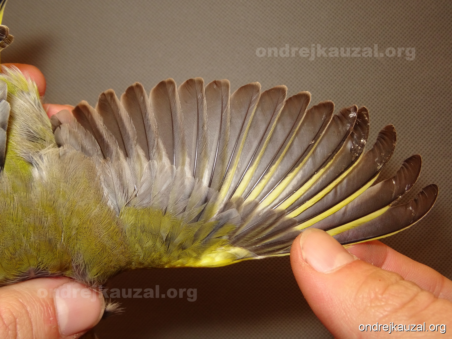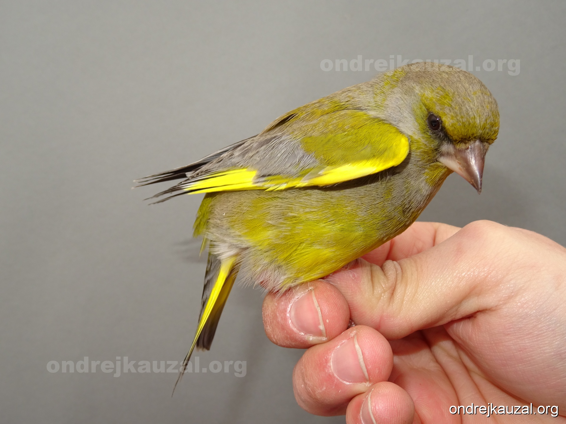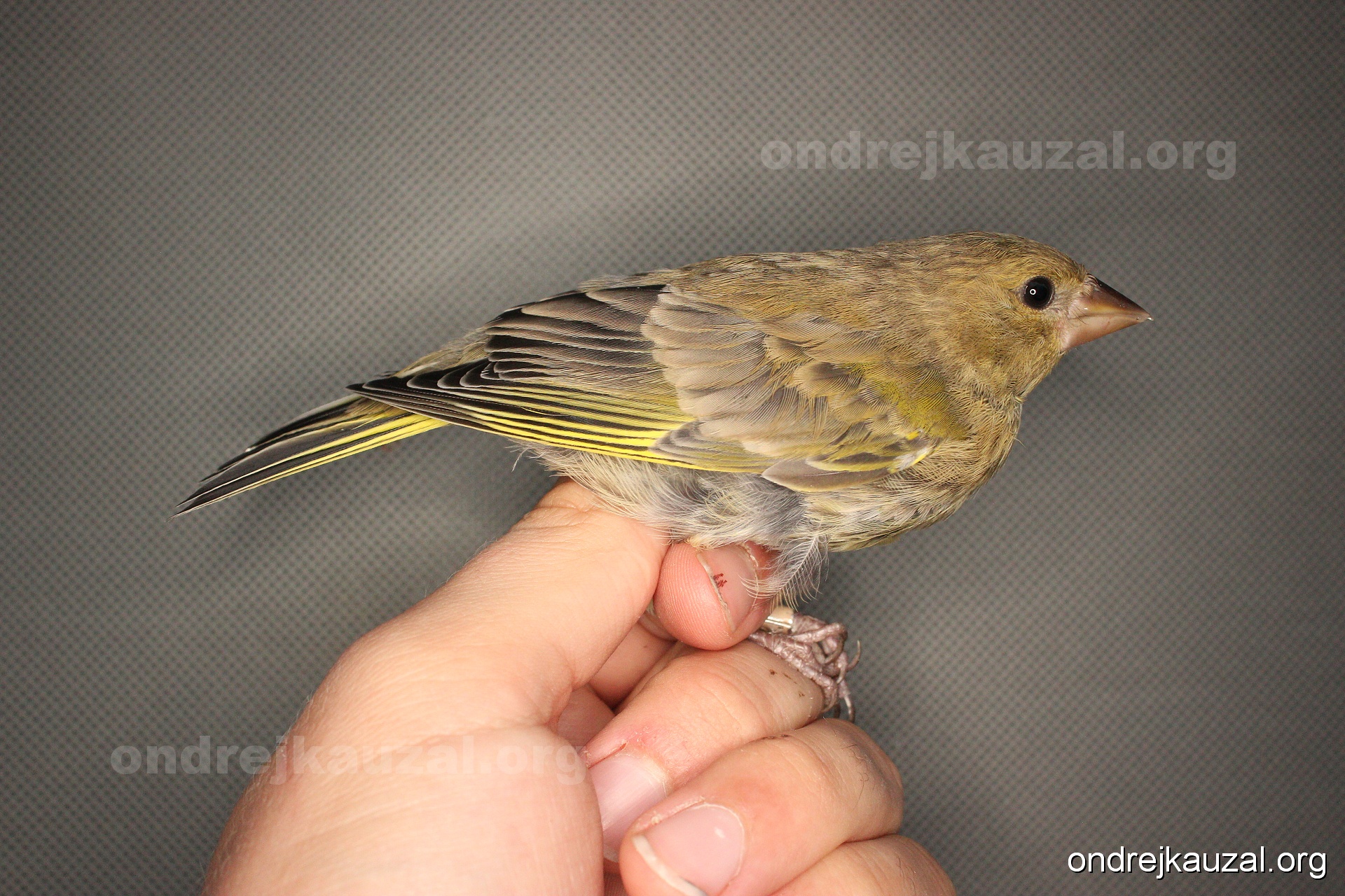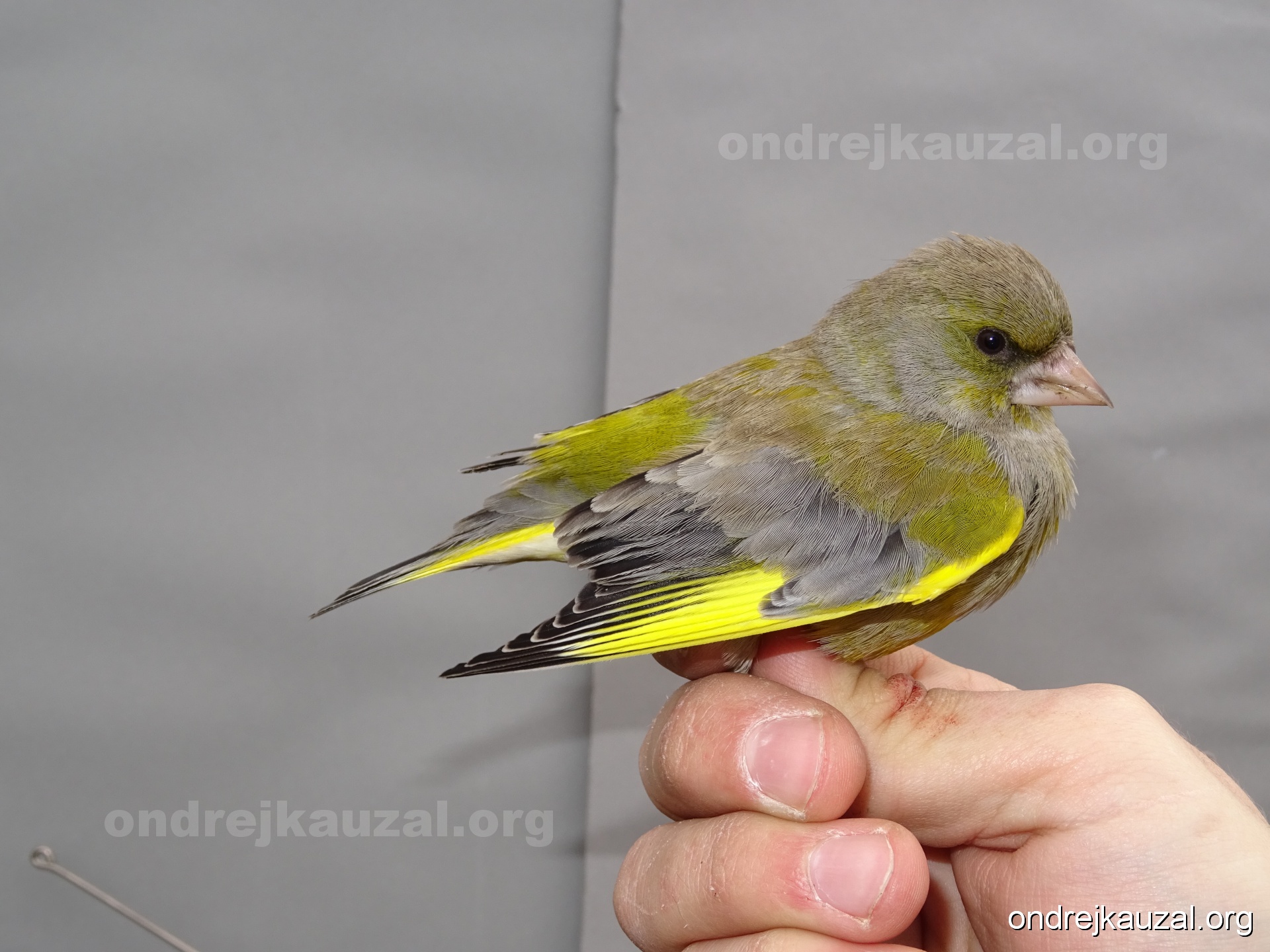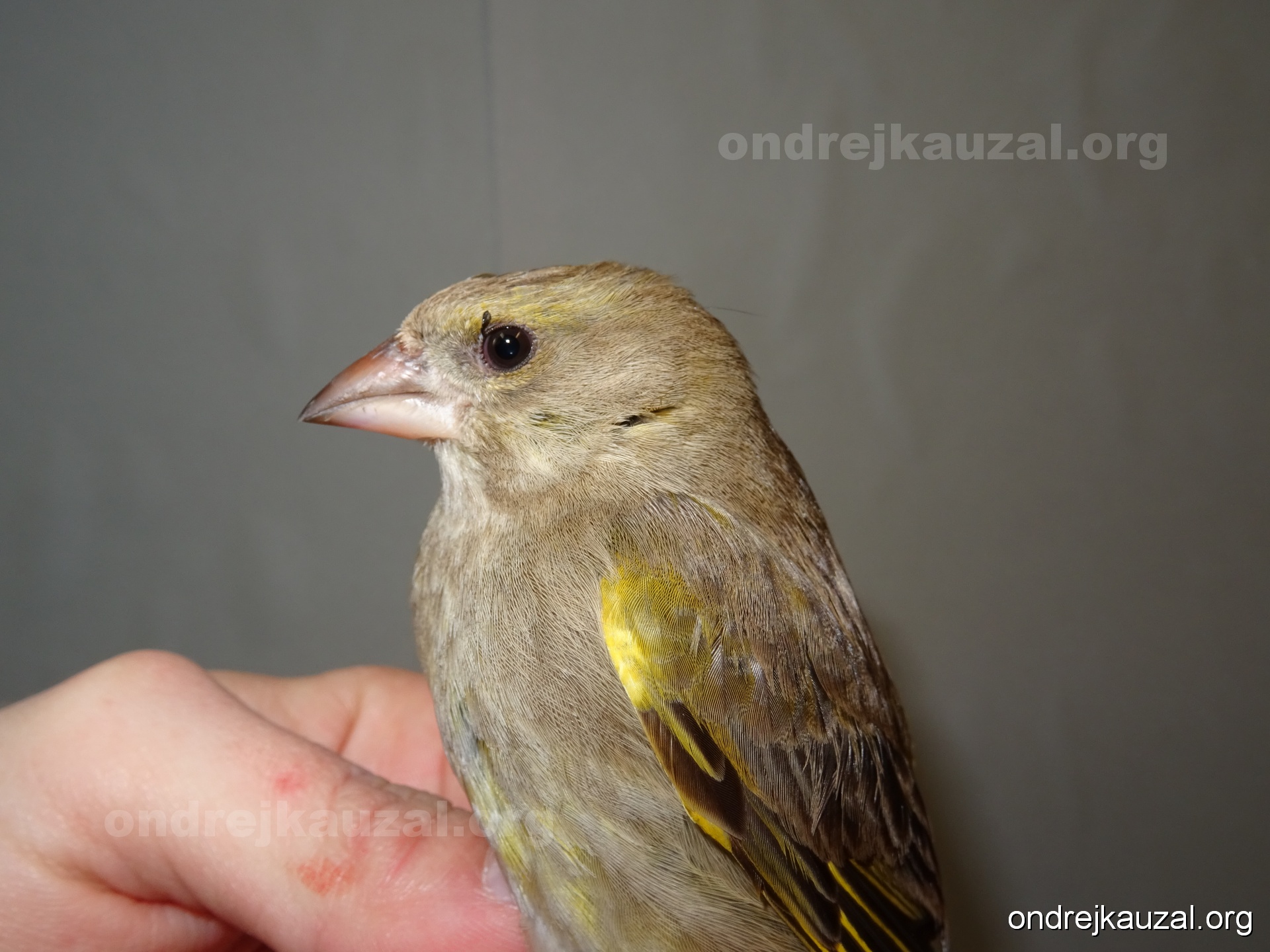An interesting individual, albeit being in the first year of its life, it has moulted three of its primaries (P5 – P7). Greenfinches occasionally include moult of some primaries during their partial postjuvenile moult.