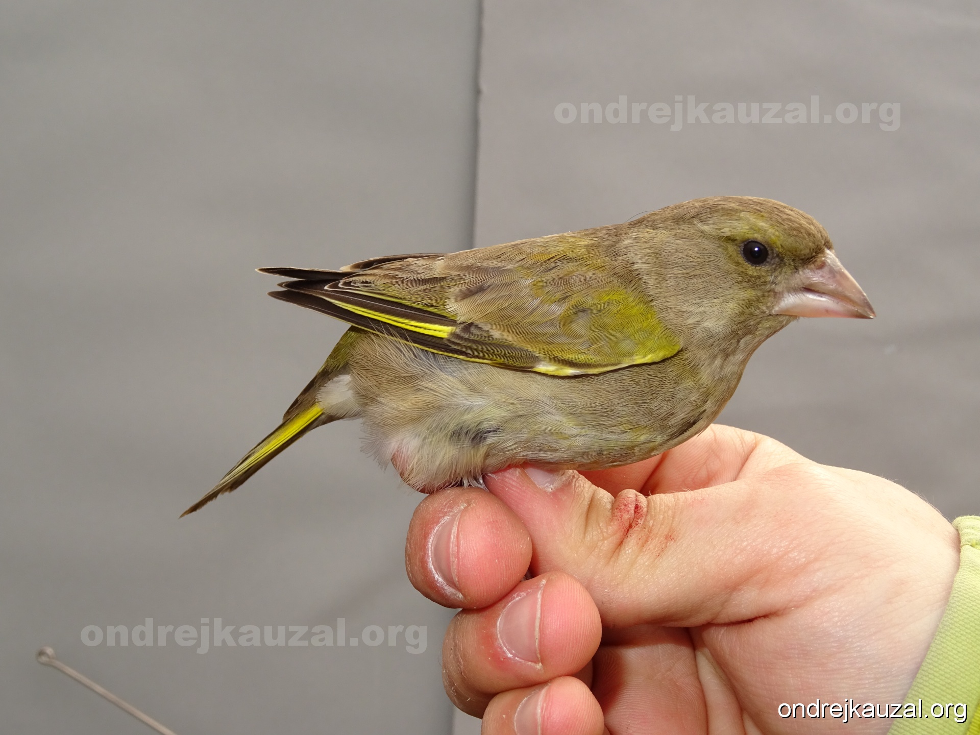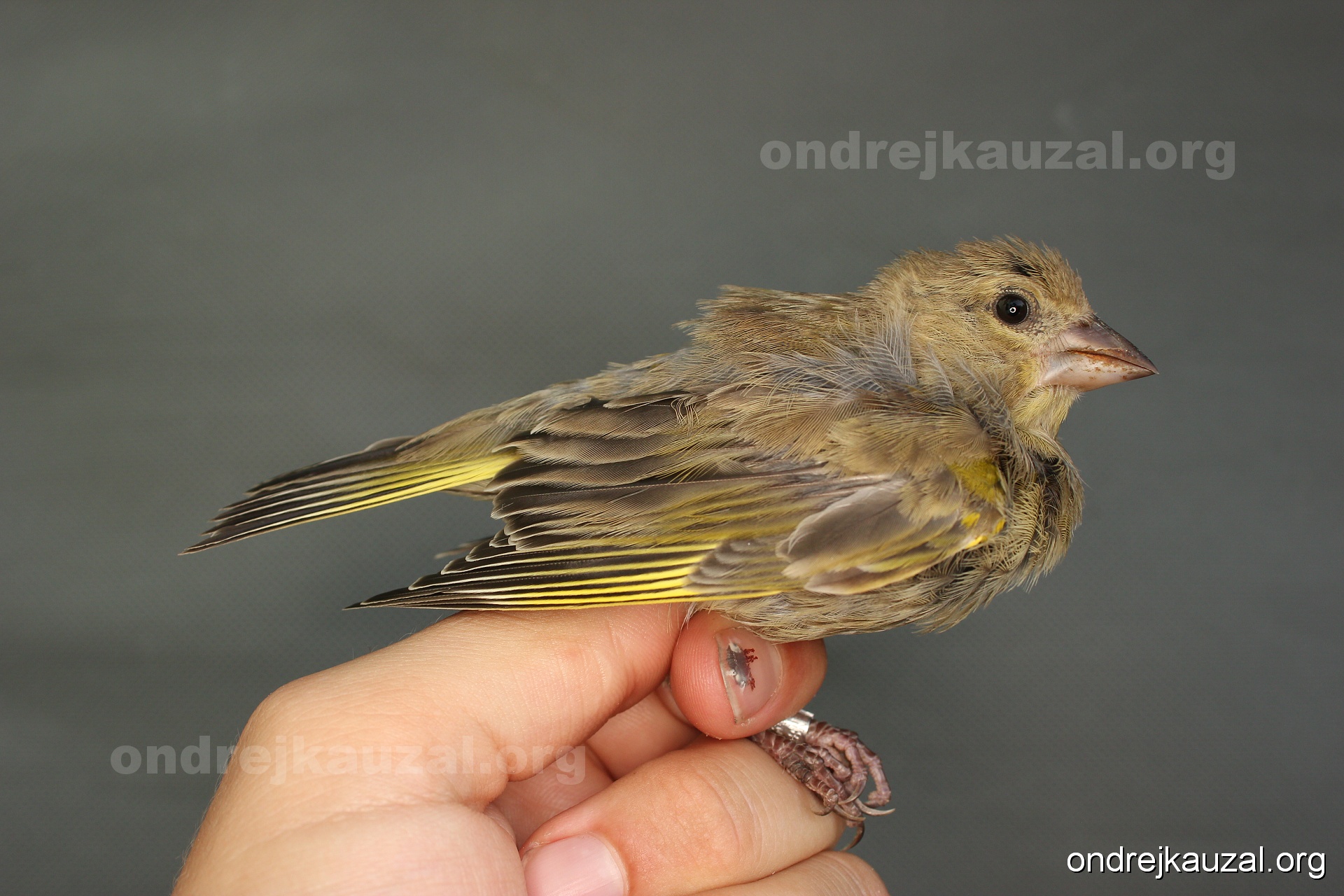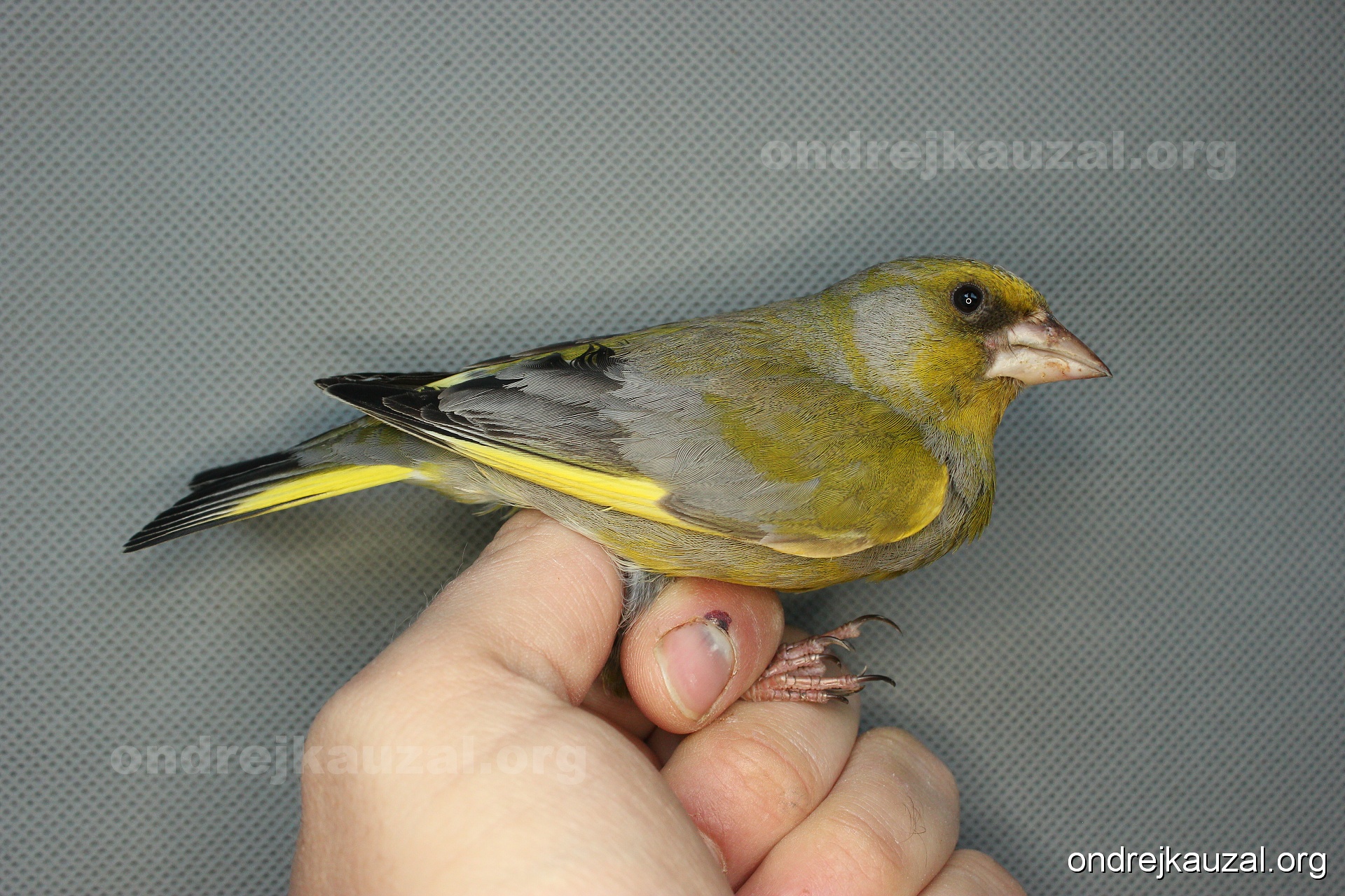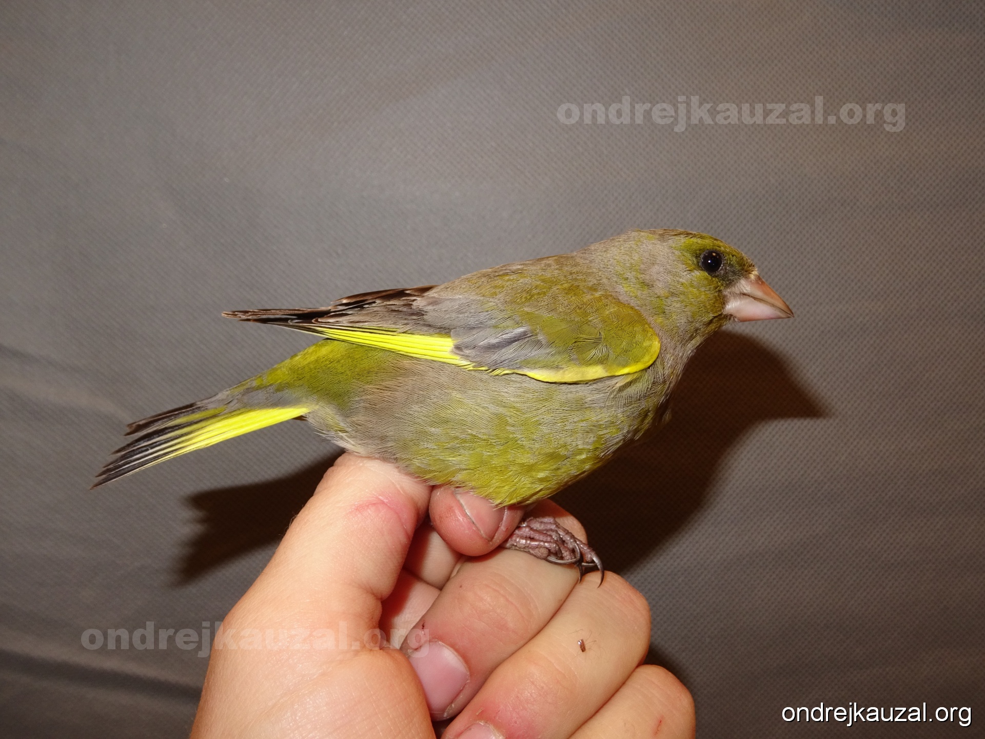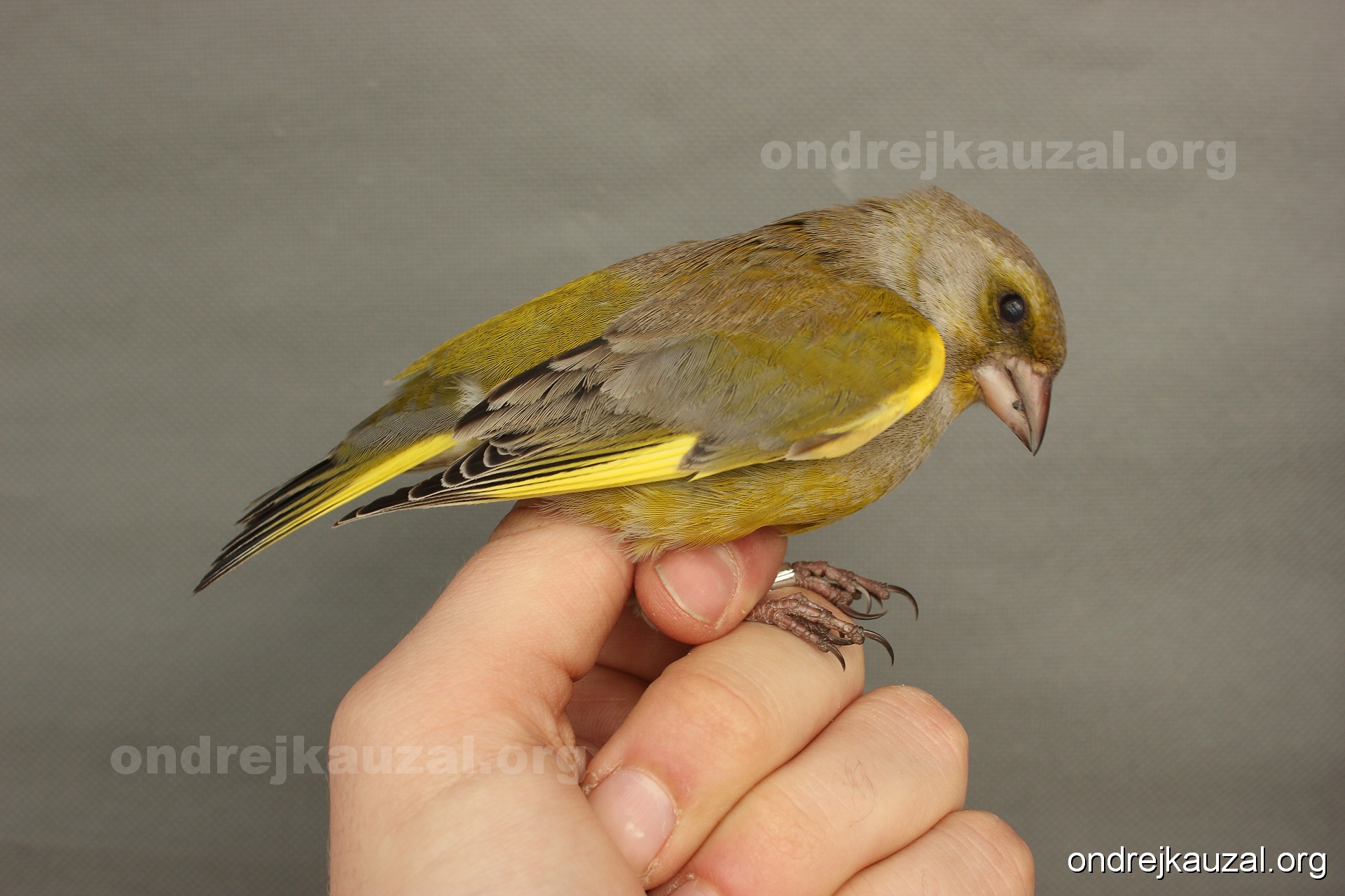 An interesting individual, albeit being in the first year of its life, it has moulted three of its primaries (P5 – P7). Greenfinches occasionally include moult of some primaries during their partial postjuvenile moult.