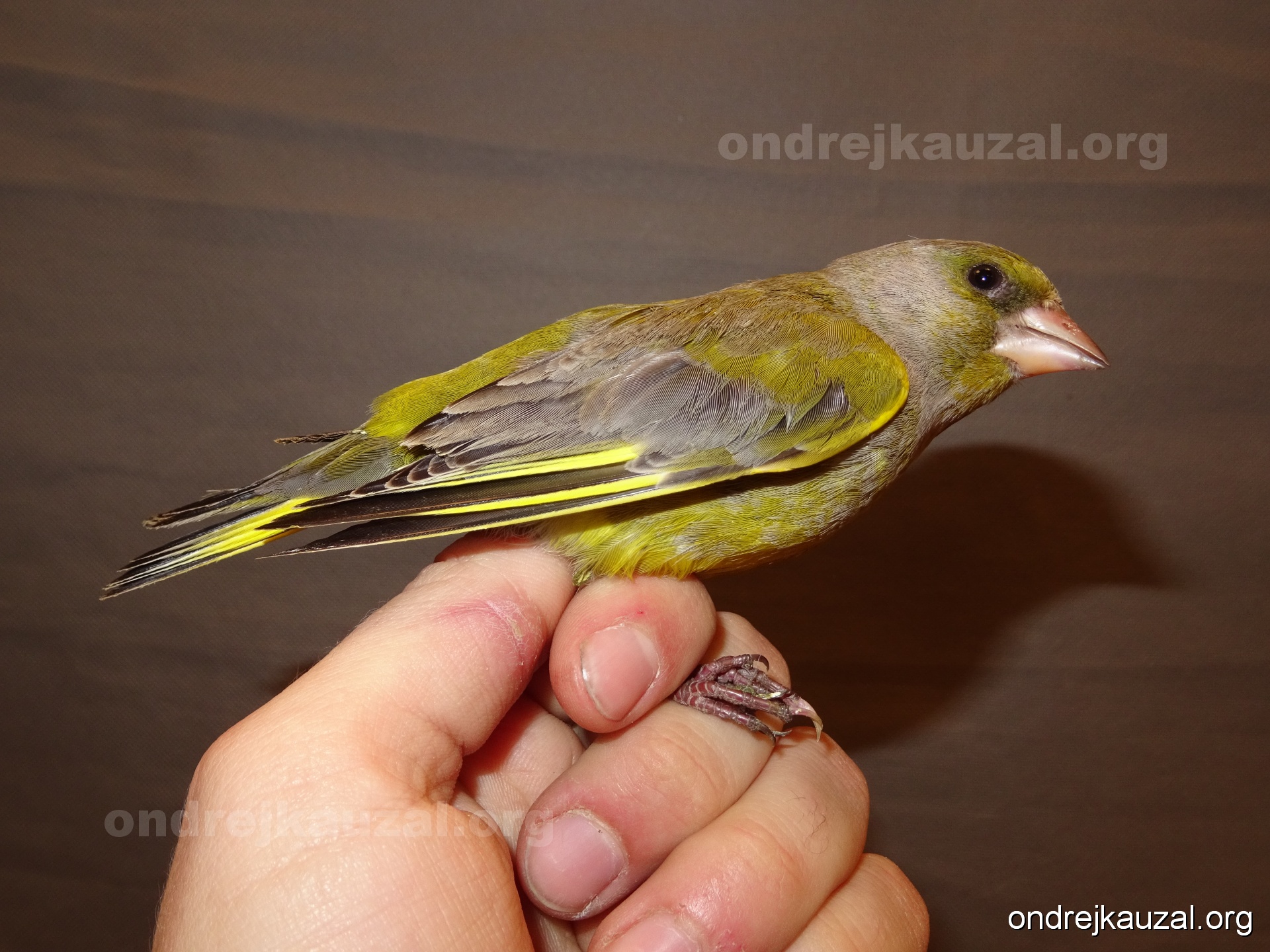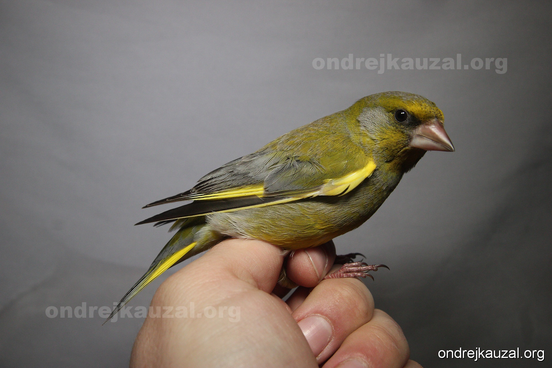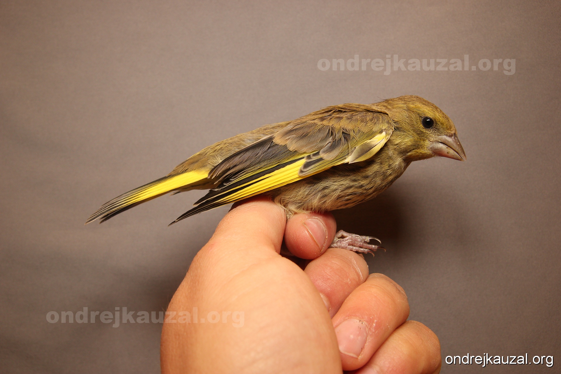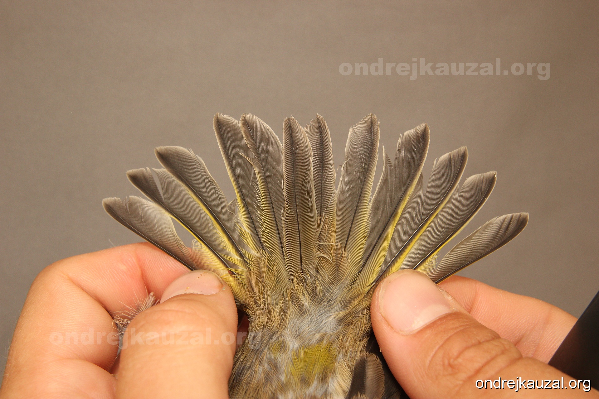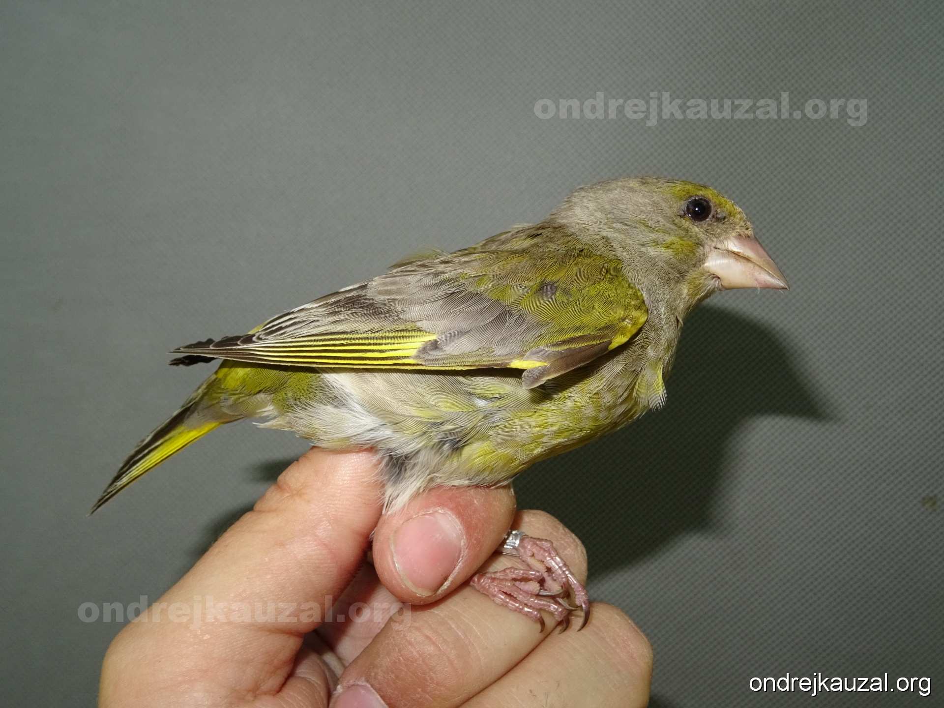 An interesting individual, albeit being in the first year of its life, it has moulted three of its primaries (P5 – P7). Greenfinches occasionally include moult of some primaries during their partial postjuvenile moult.