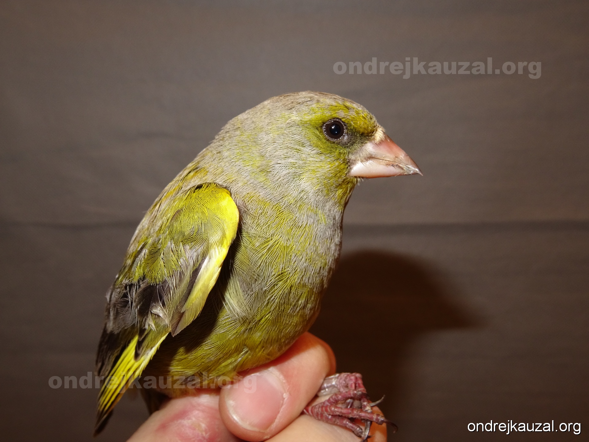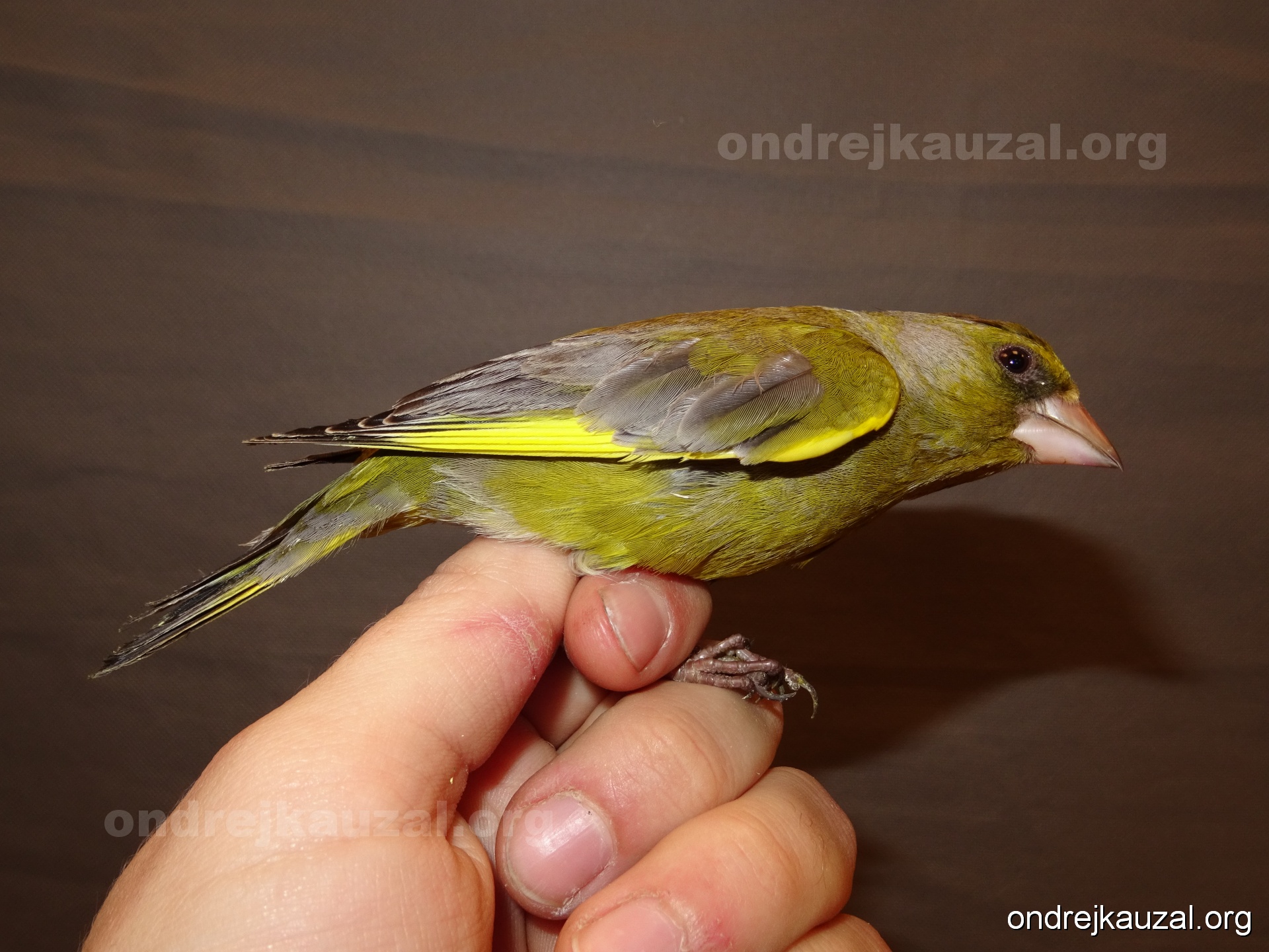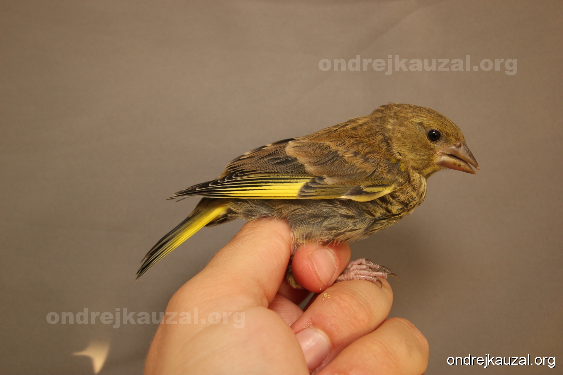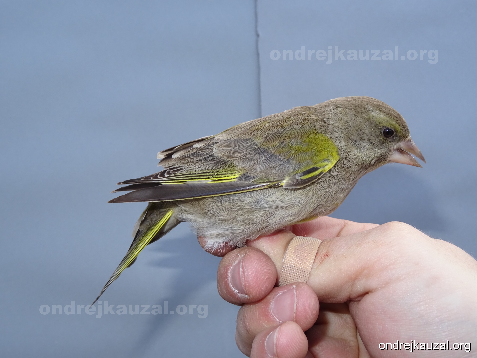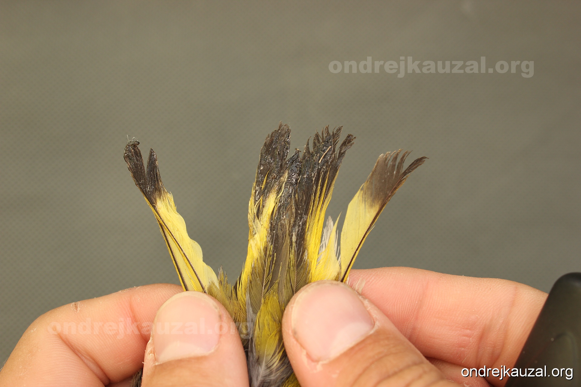 An interesting individual, albeit being in the first year of its life, it has moulted three of its primaries (P5 – P7). Greenfinches occasionally include moult of some primaries during their partial postjuvenile moult.