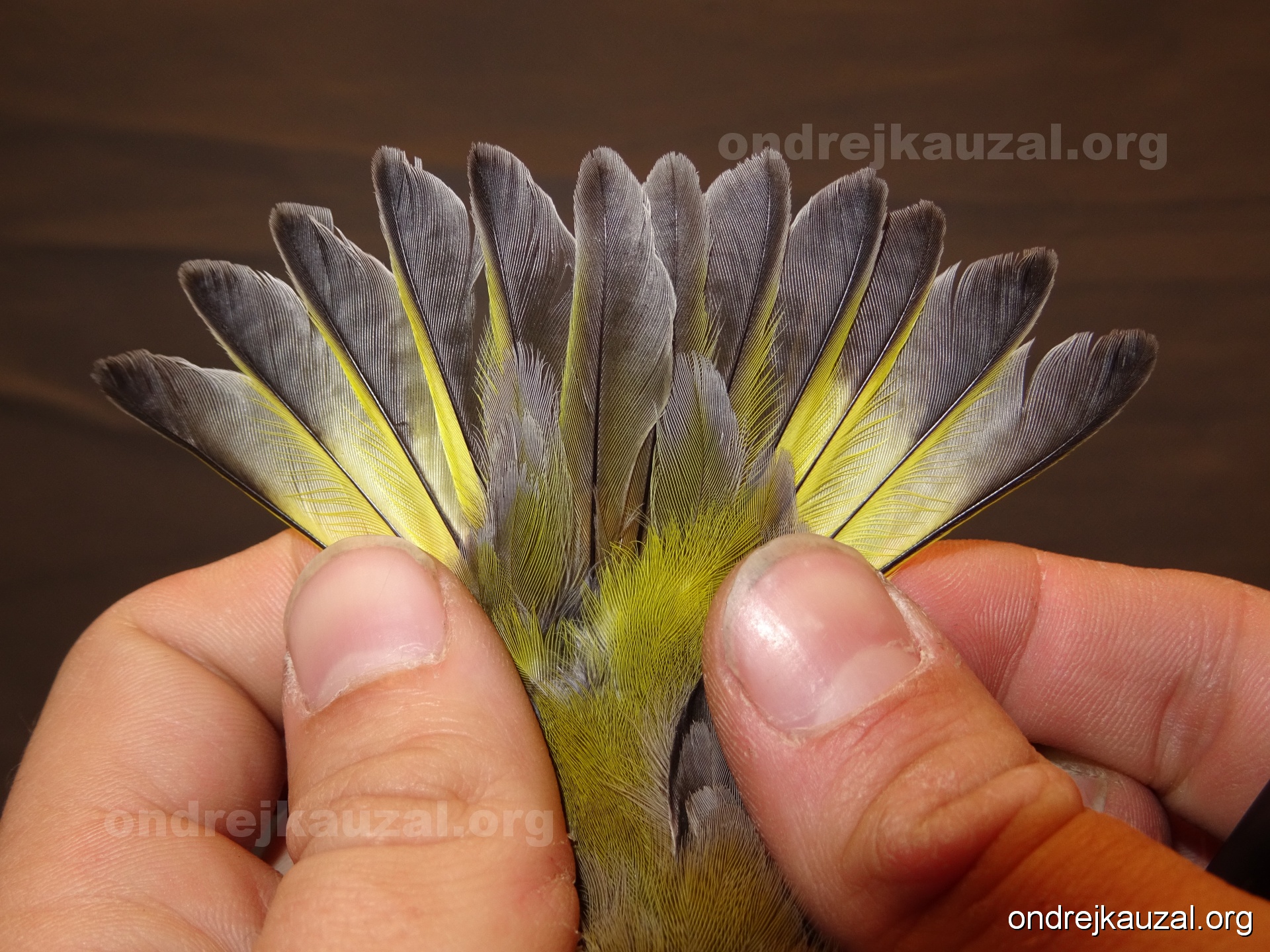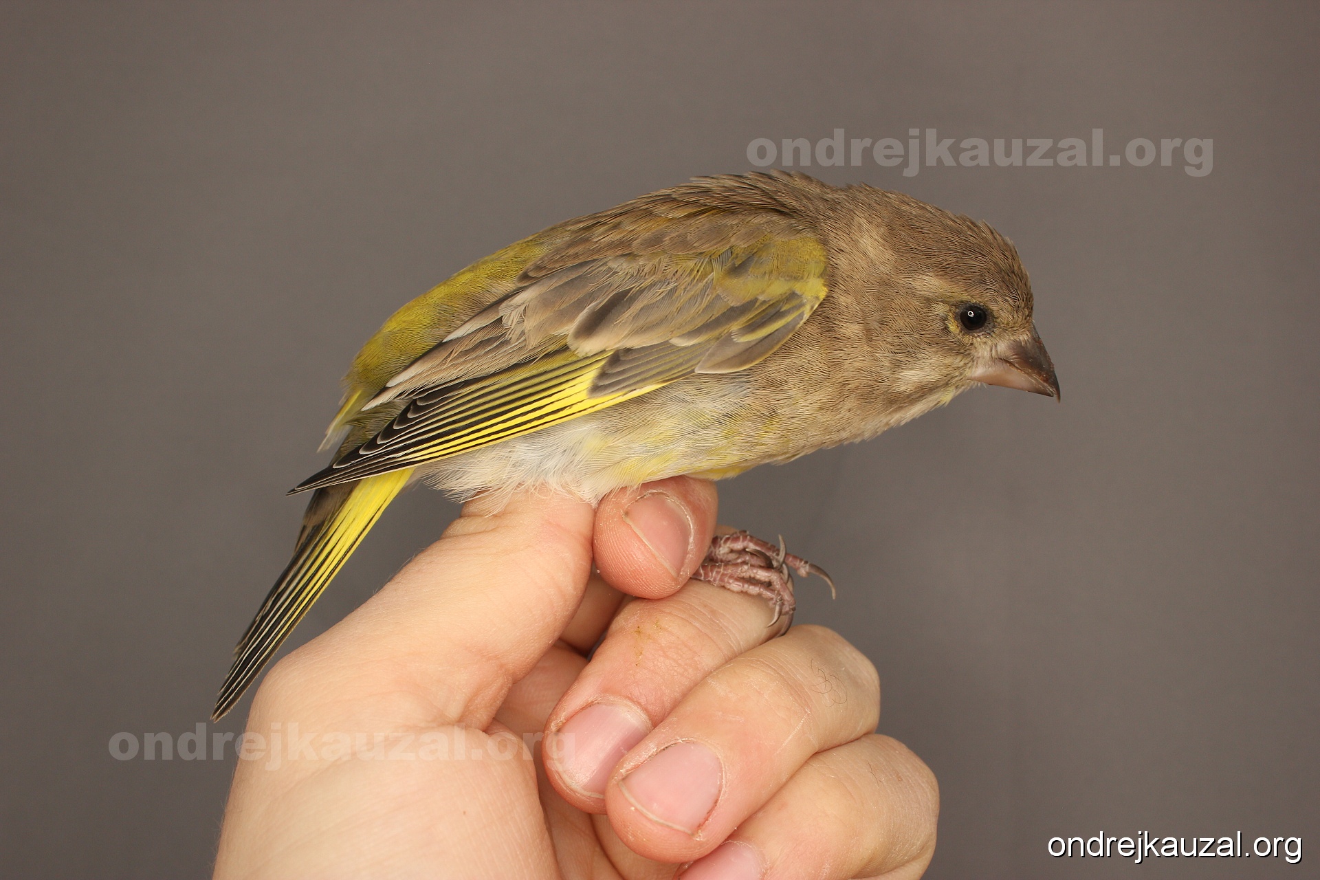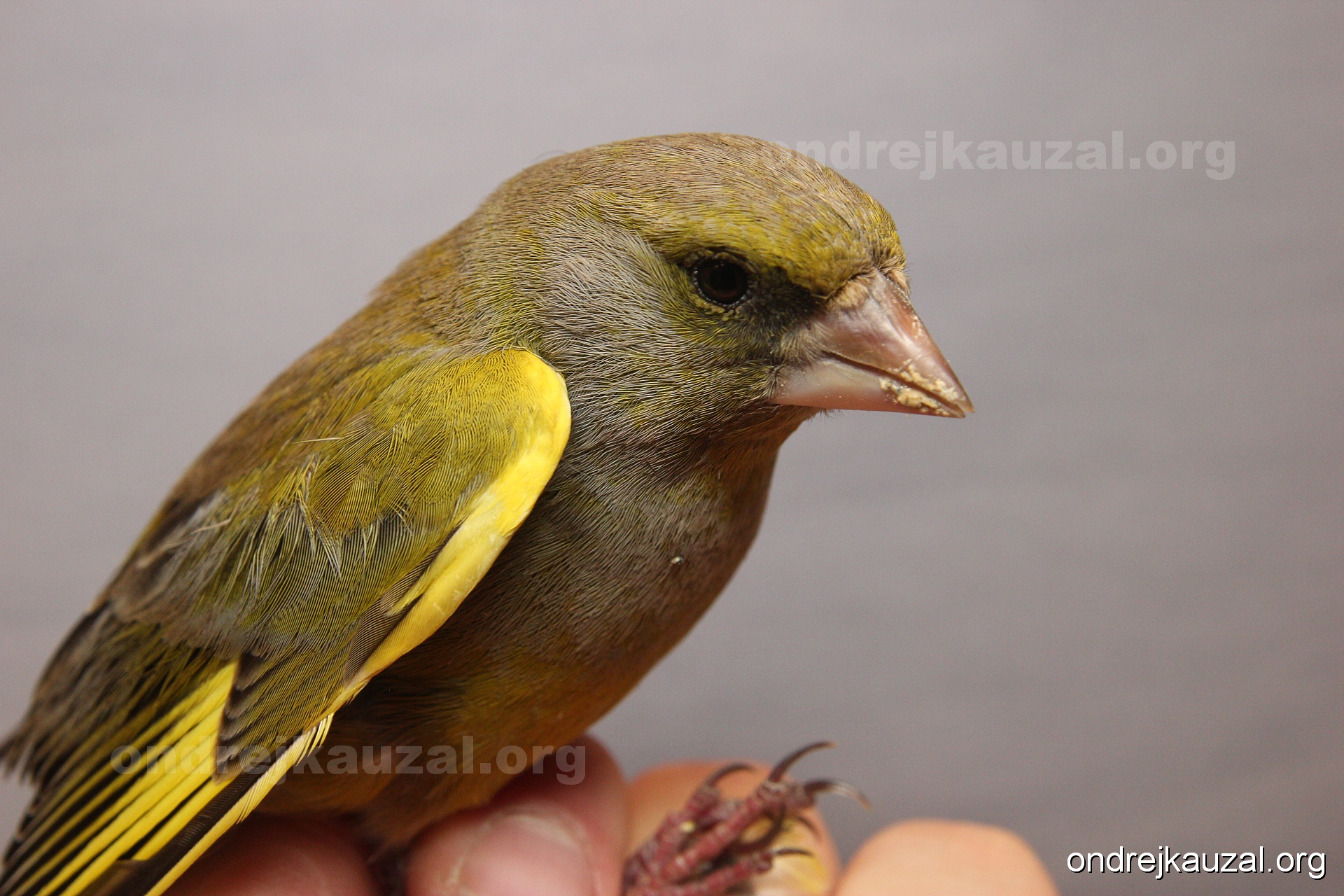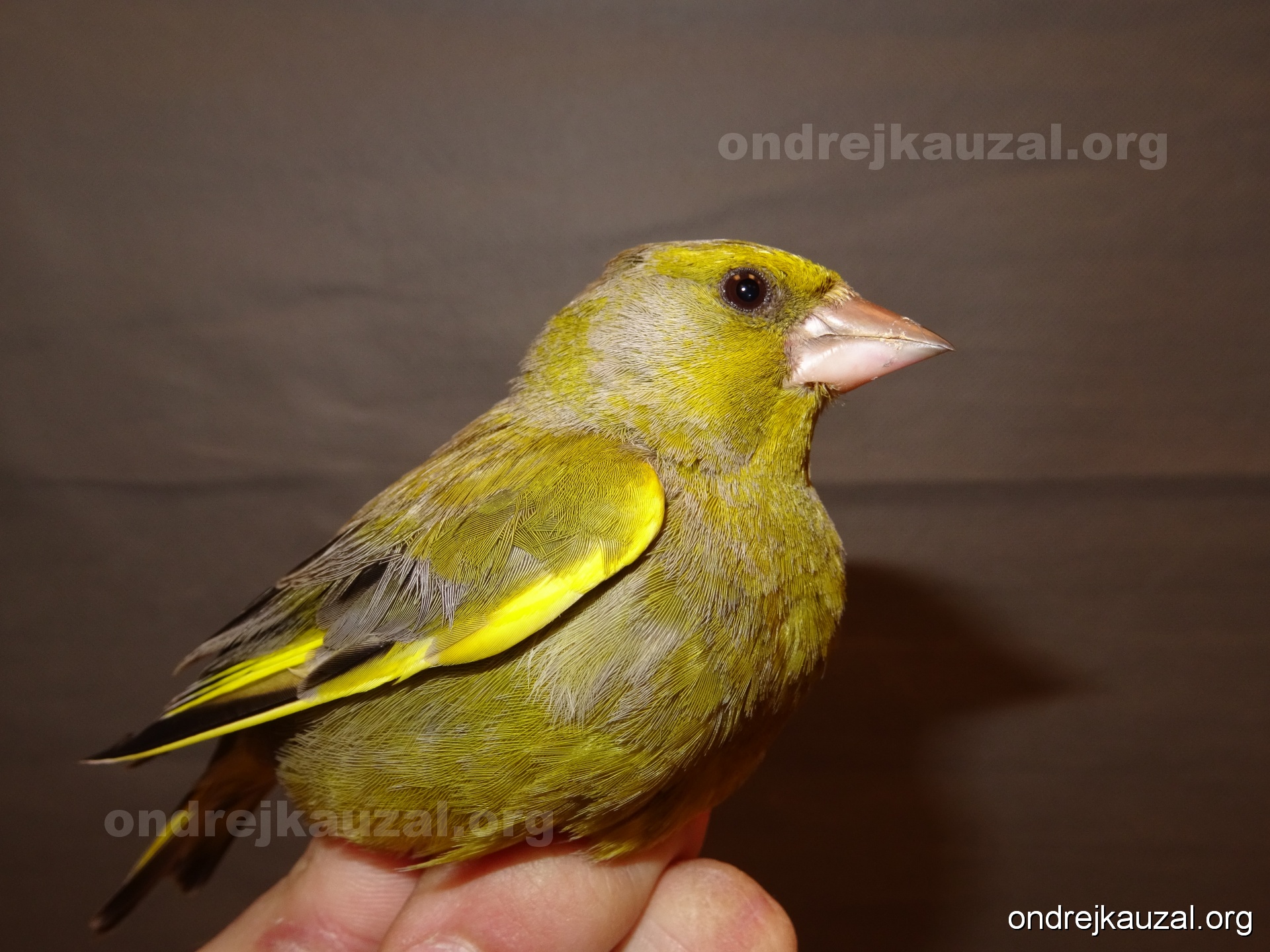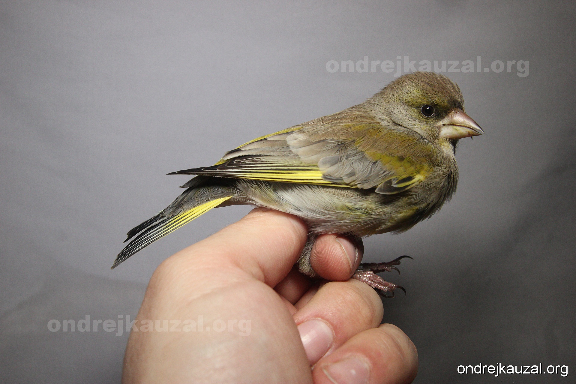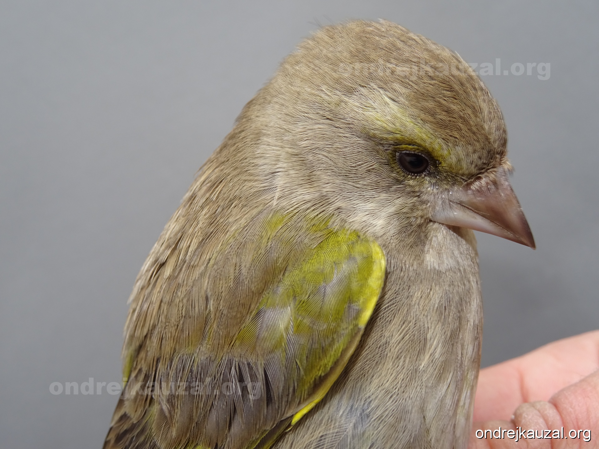 An interesting individual, albeit being in the first year of its life, it has moulted three of its primaries (P5 – P7). Greenfinches occasionally include moult of some primaries during their partial postjuvenile moult.