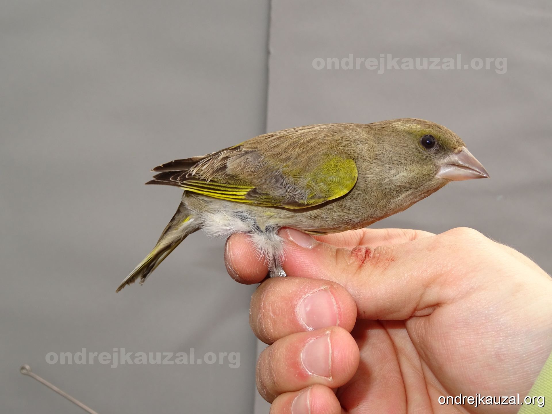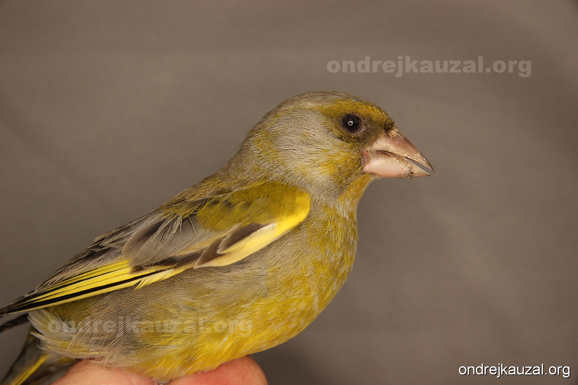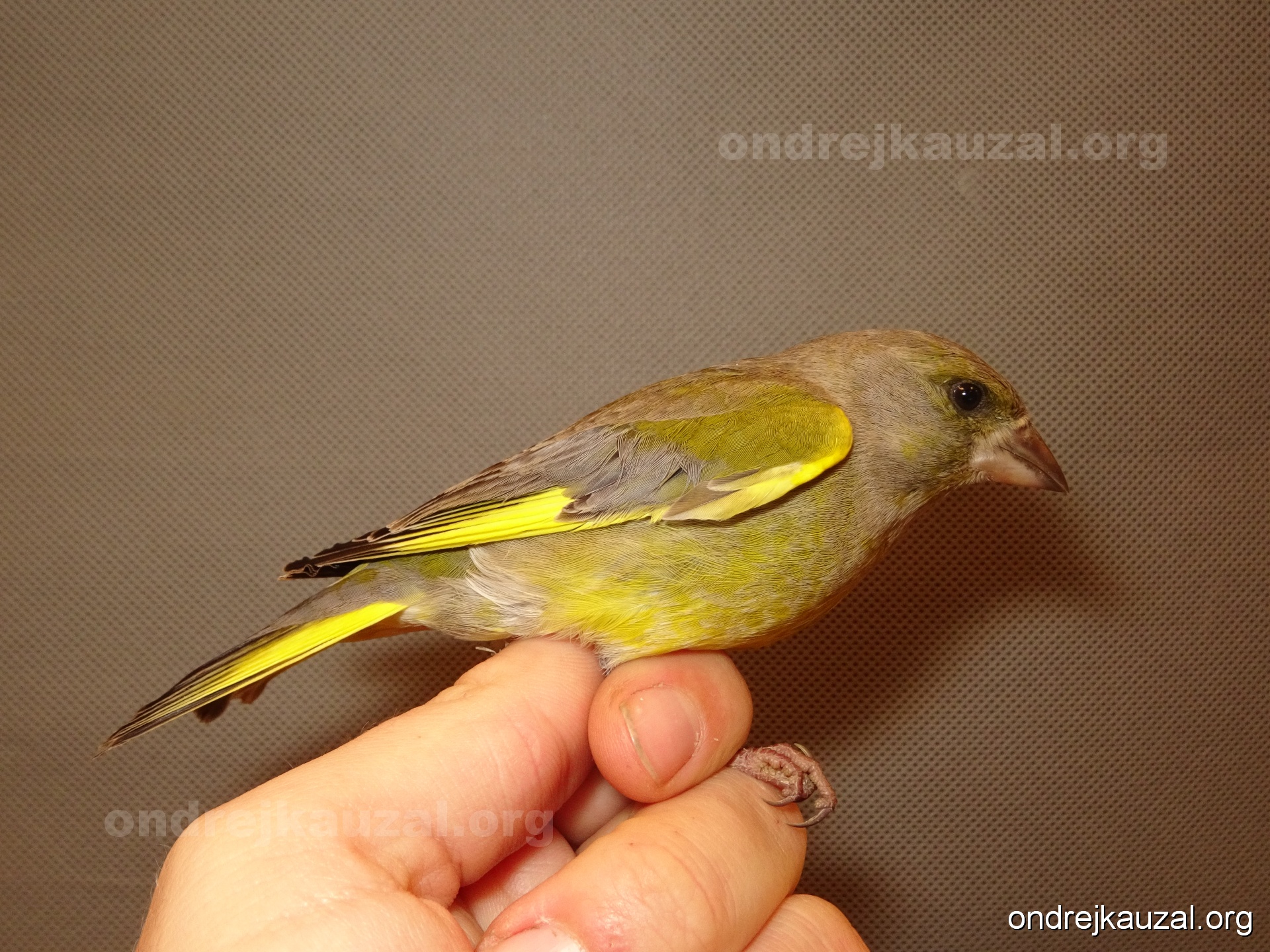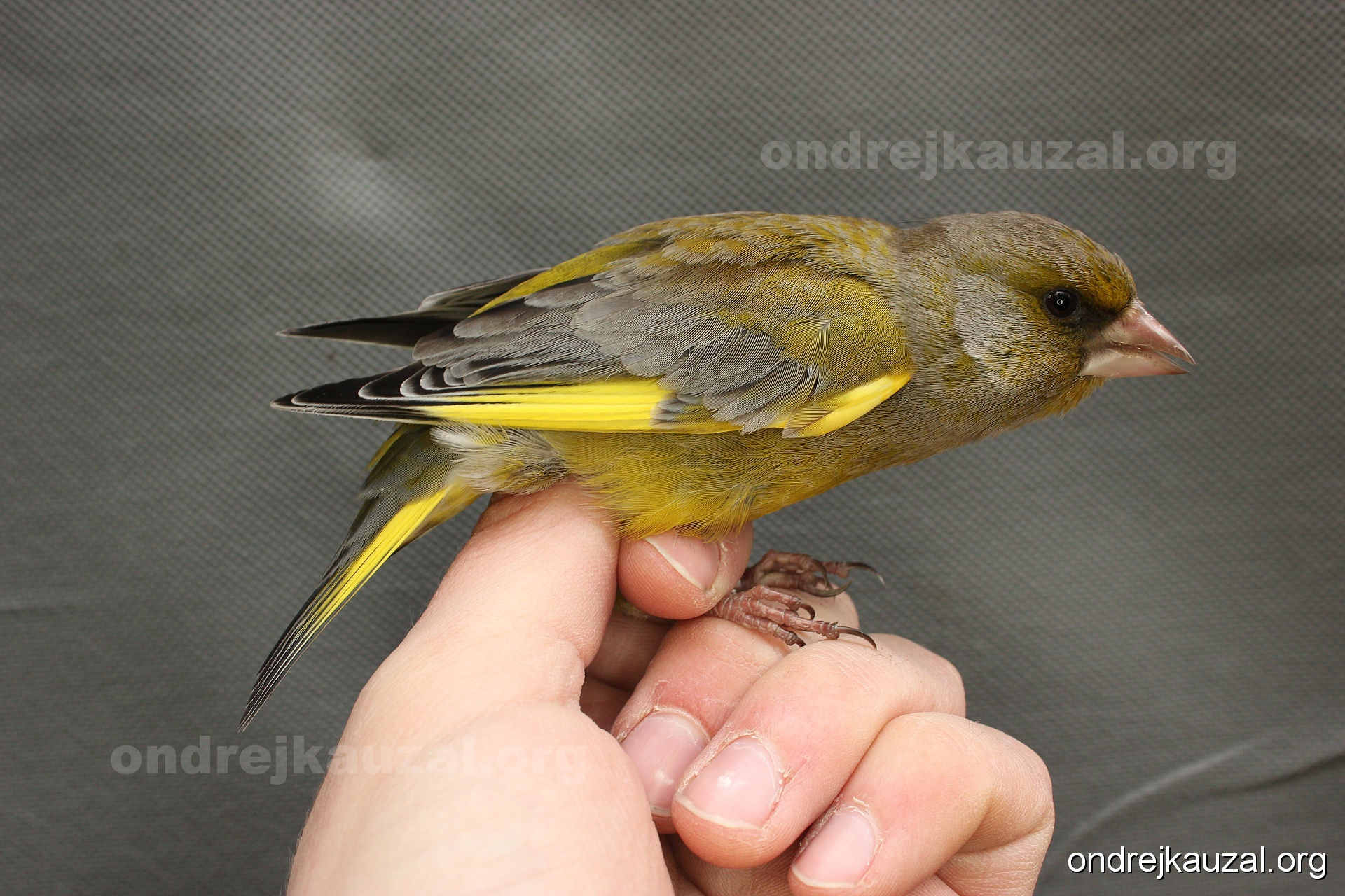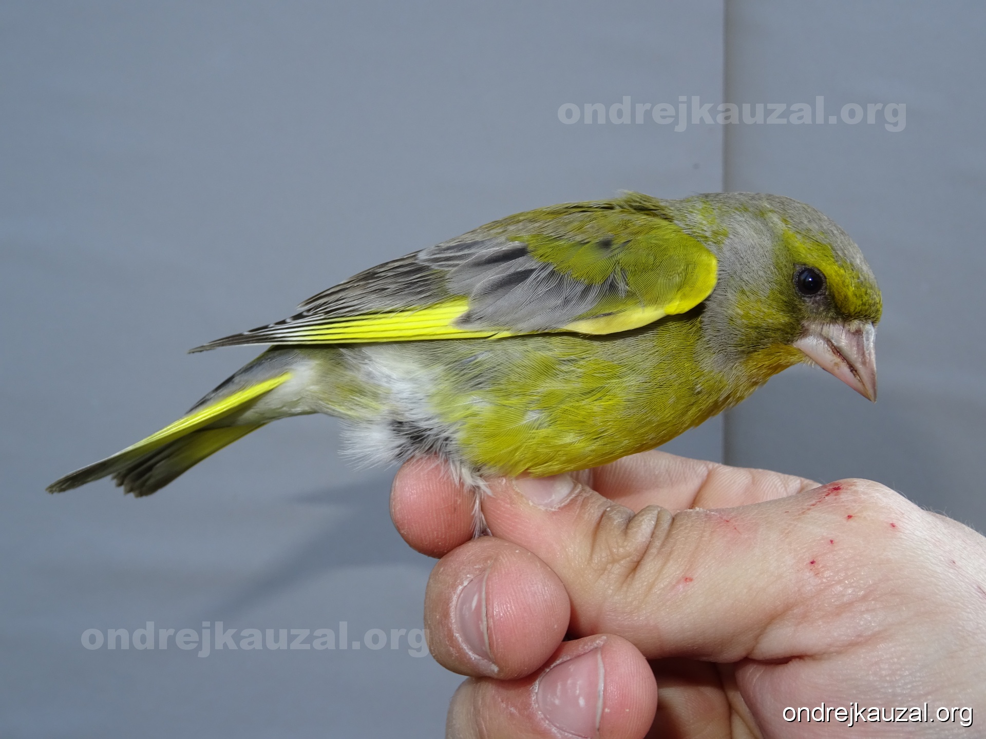 An interesting individual, albeit being in the first year of its life, it has moulted three of its primaries (P5 – P7). Greenfinches occasionally include moult of some primaries during their partial postjuvenile moult.