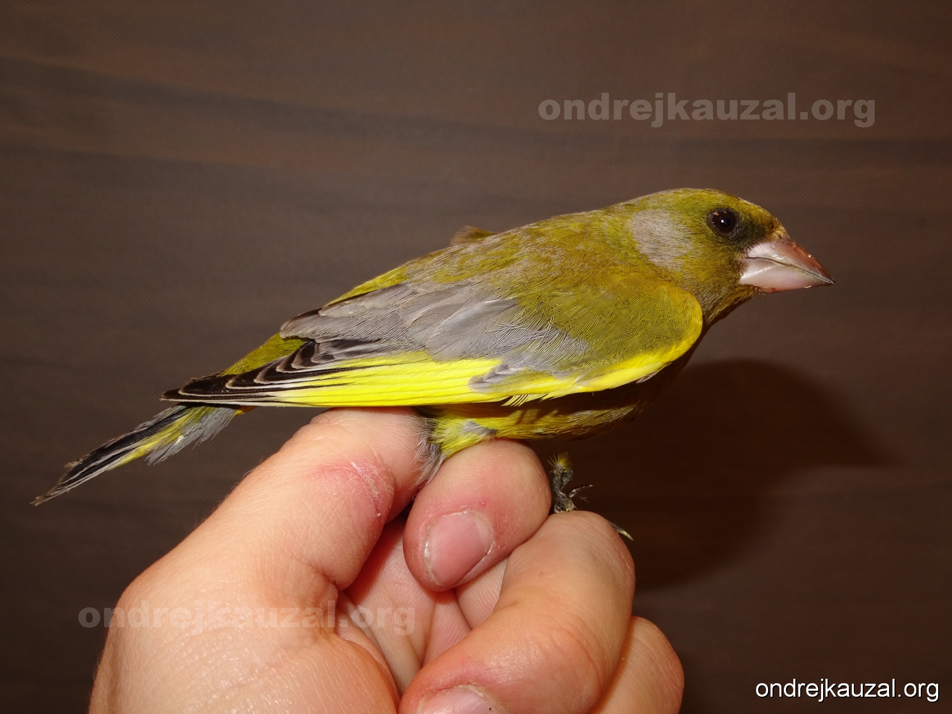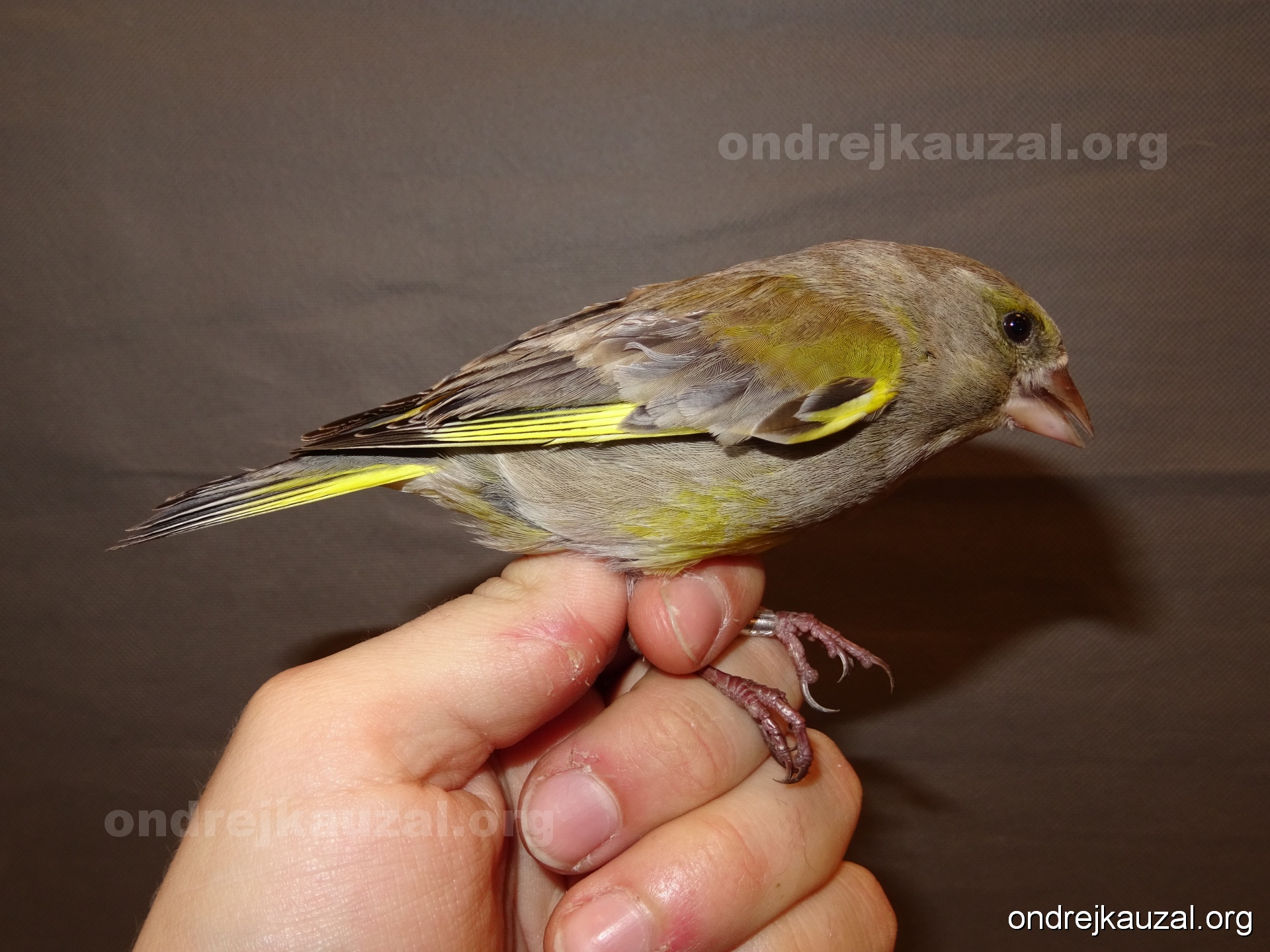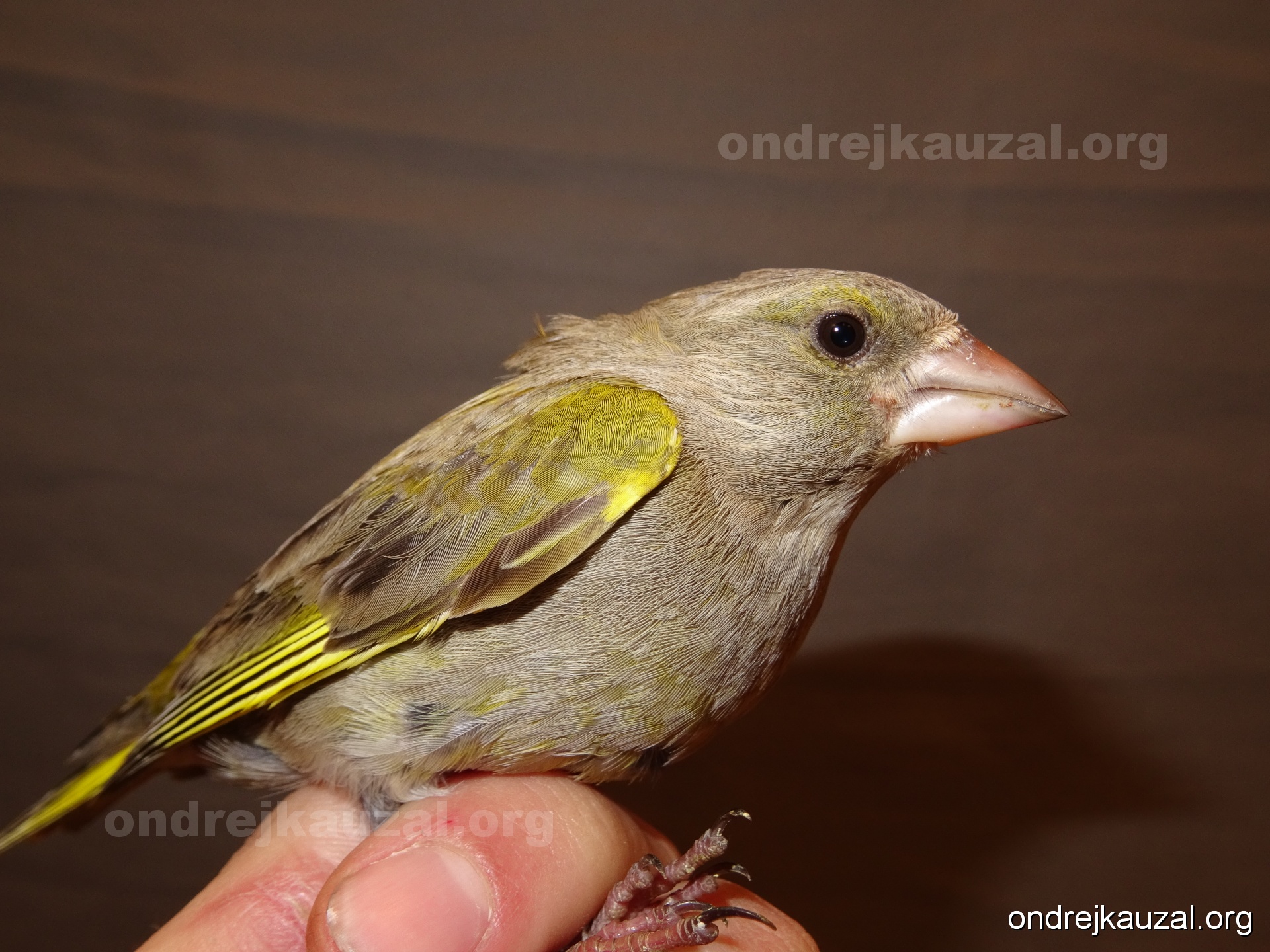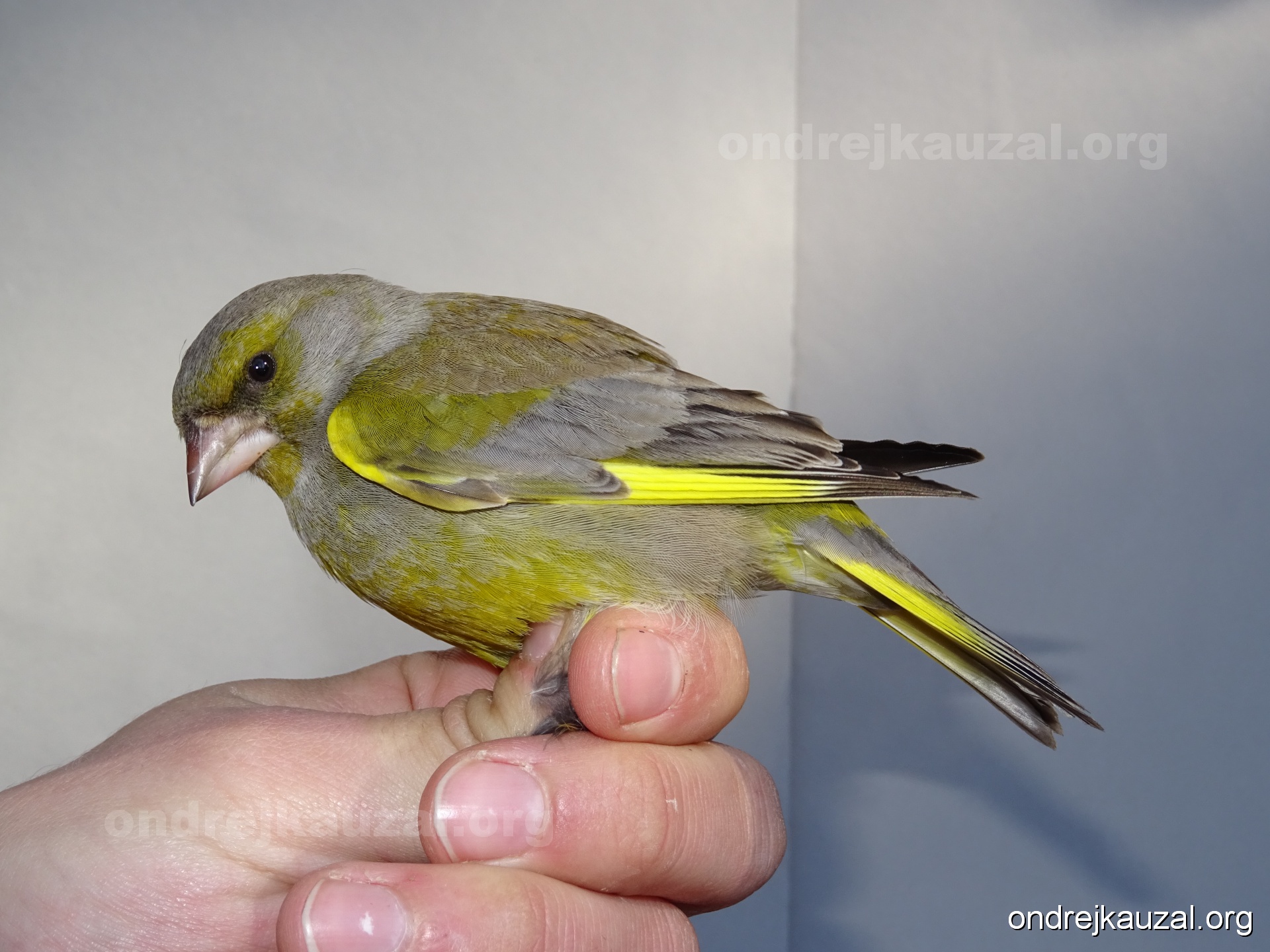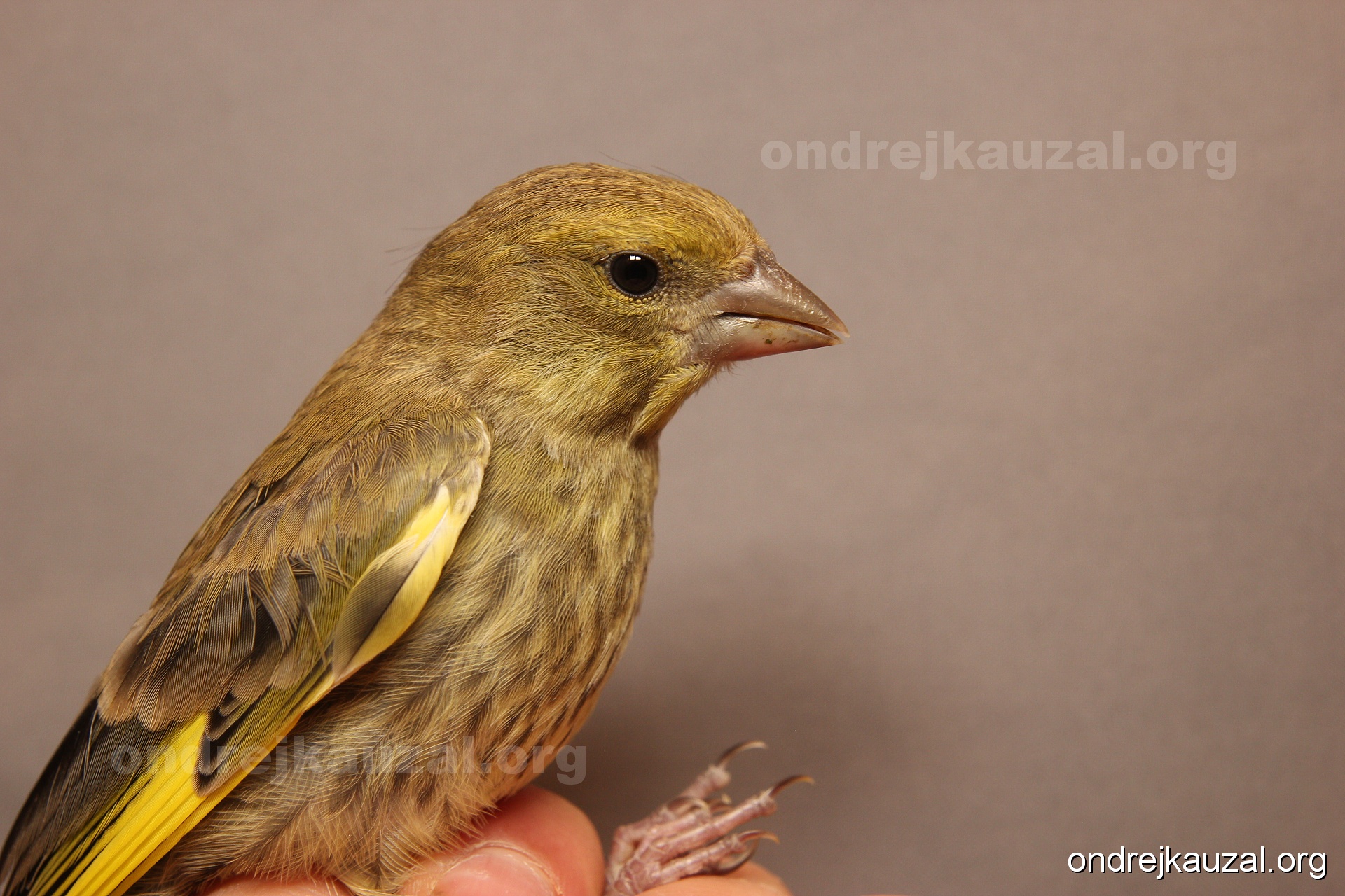 An interesting individual, albeit being in the first year of its life, it has moulted three of its primaries (P5 – P7). Greenfinches occasionally include moult of some primaries during their partial postjuvenile moult.