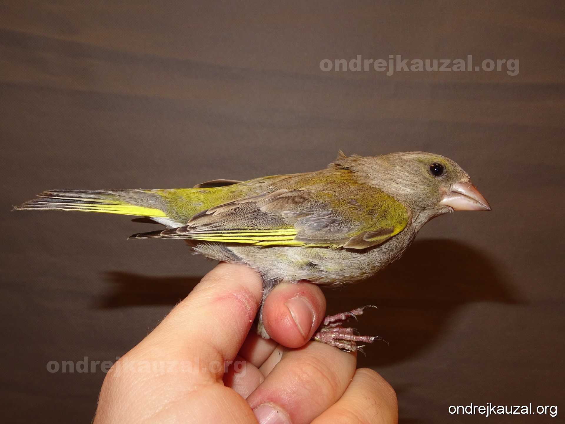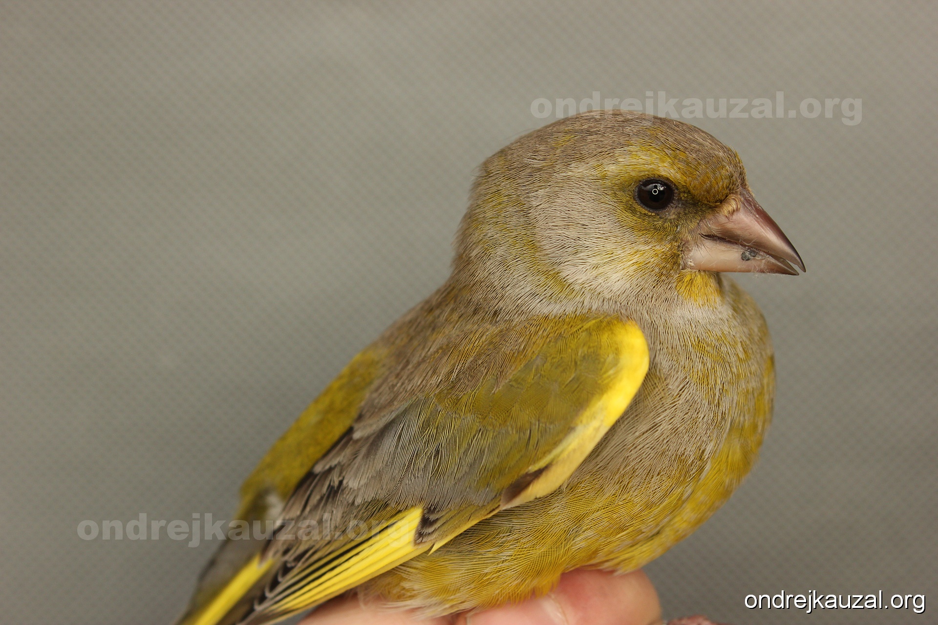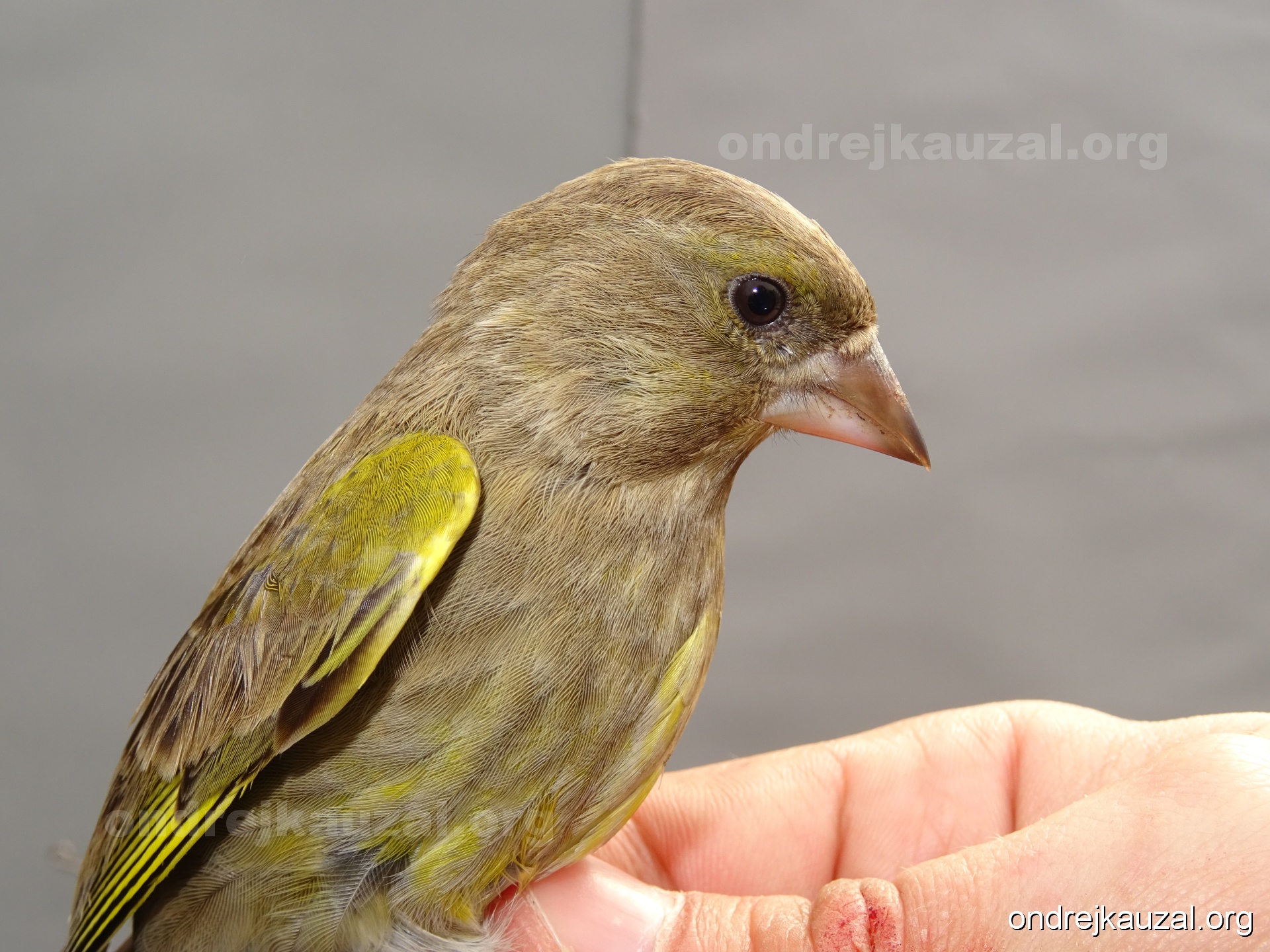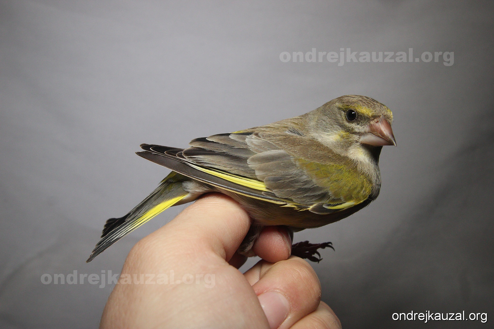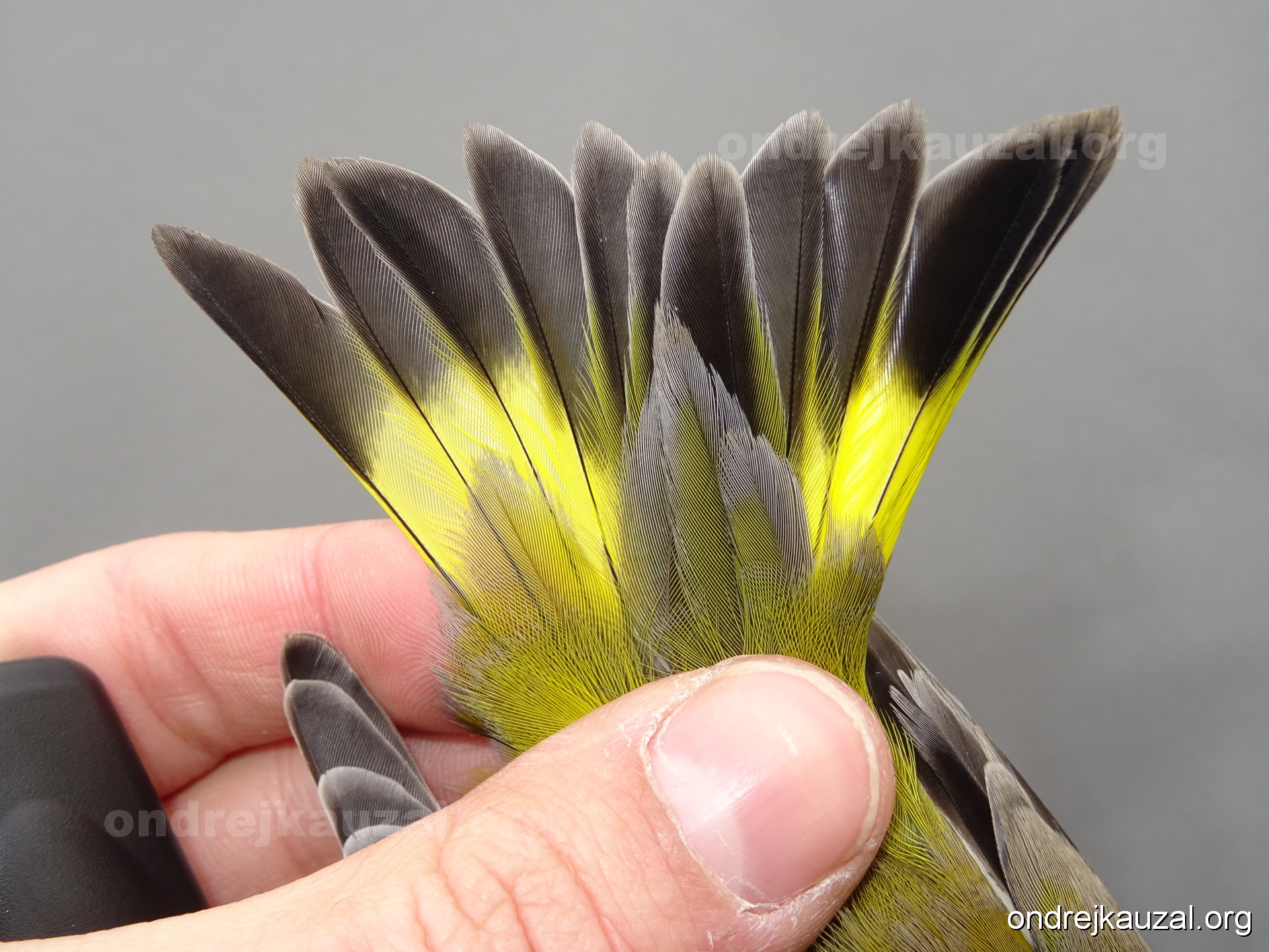 An interesting individual, albeit being in the first year of its life, it has moulted three of its primaries (P5 – P7). Greenfinches occasionally include moult of some primaries during their partial postjuvenile moult.